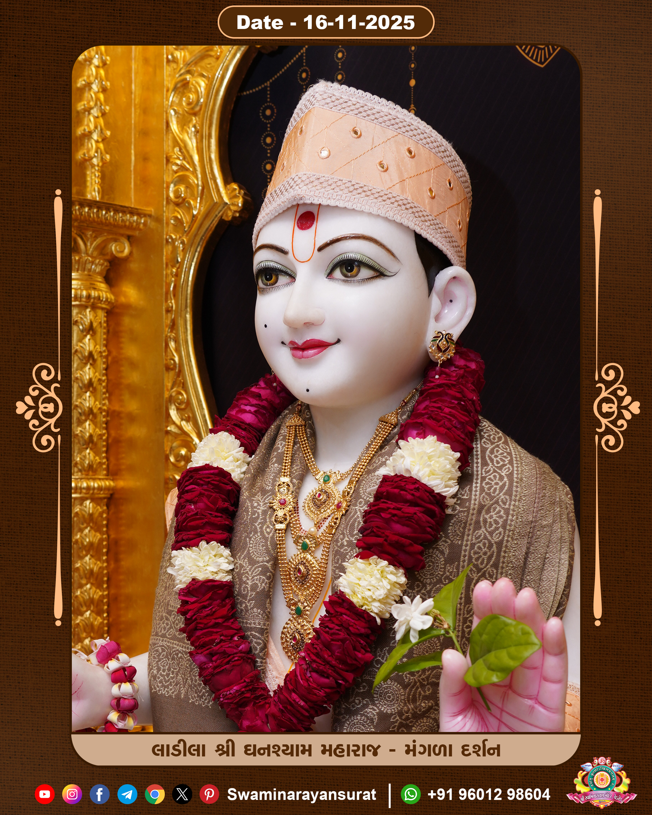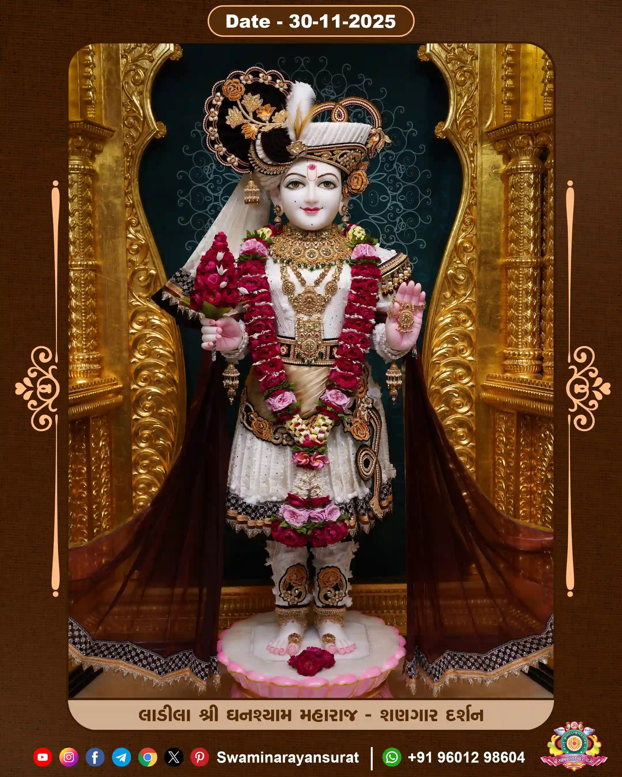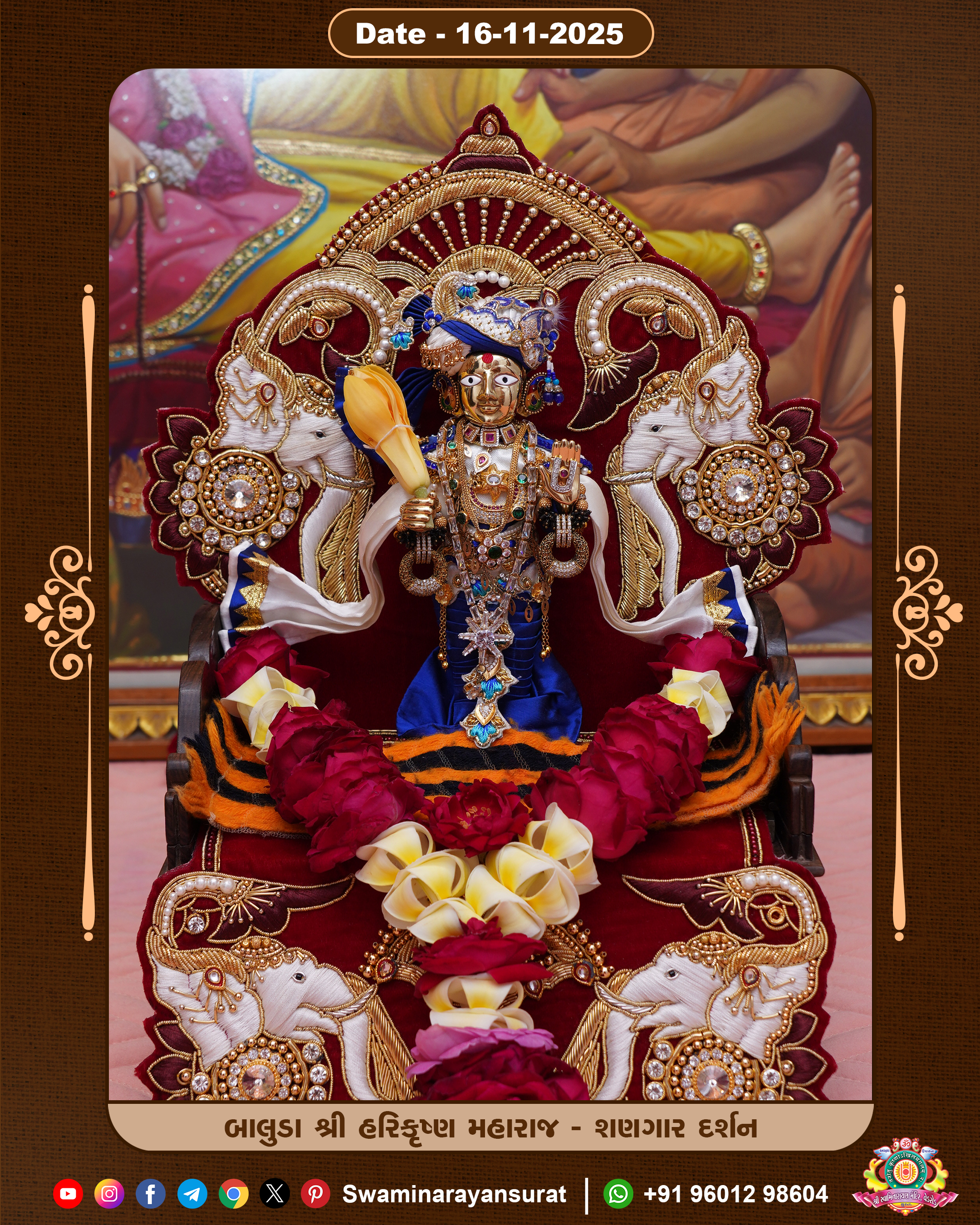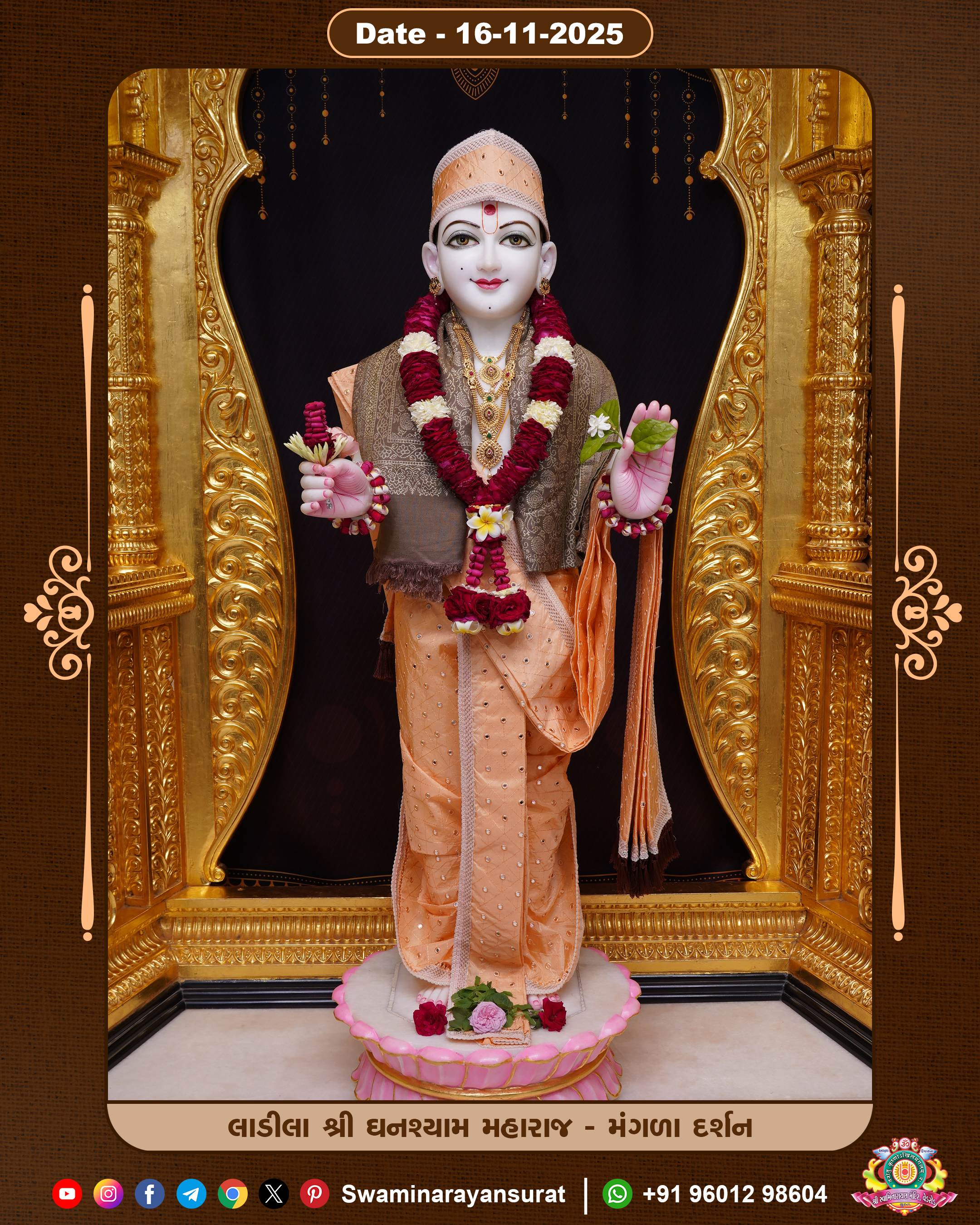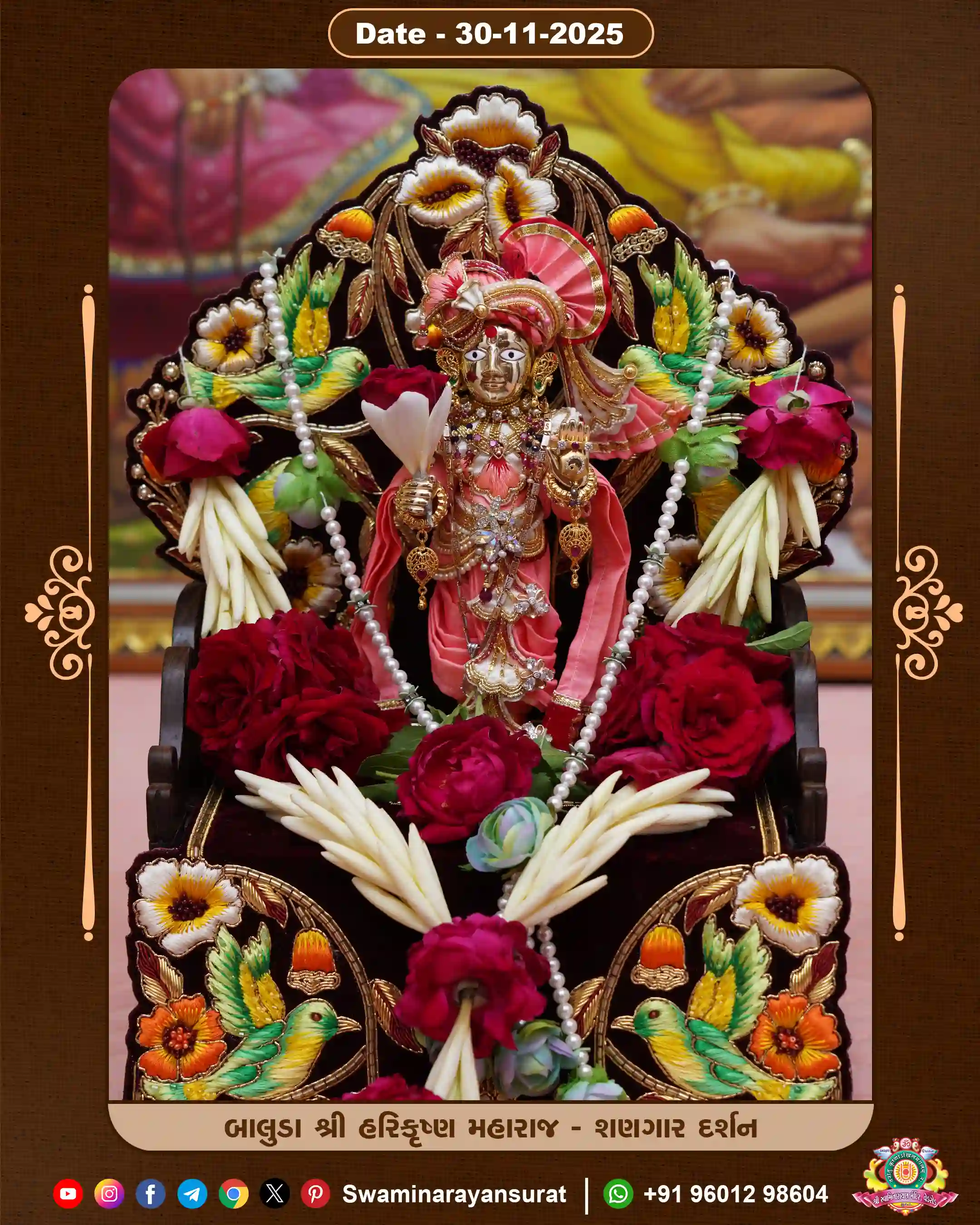 Shree Swaminarayan Temple, VedRoad is a Spiritual Organization Which falls under the region Of Vadtal Temple (The Headquarter Of Laxminarayan Dev Gadi). It is the First Organization Which is Constructed By Pink Stone With Beautiful and Marvellous Carving in Surat Of Swaminarayan Sampraday, Vadtal desh Which is increasing Pride & Prestige of Surat City, This temple contains One Main Shrine under which the idol of Ladila Shree Ghanshyam Maharaj is installed. P. Pu. Sadguru Shree Prabhucharandasji Swami is the Creator of this divine Organization. By the Several Activities & appearance Many devotees feels Easy in difficult Circumstances. He with his approx. 15 Saints & Devotees does Several Social & Spiritual Activities to fulfill the goal of Swaminarayan Sampraday, to do Worship with religious practices.