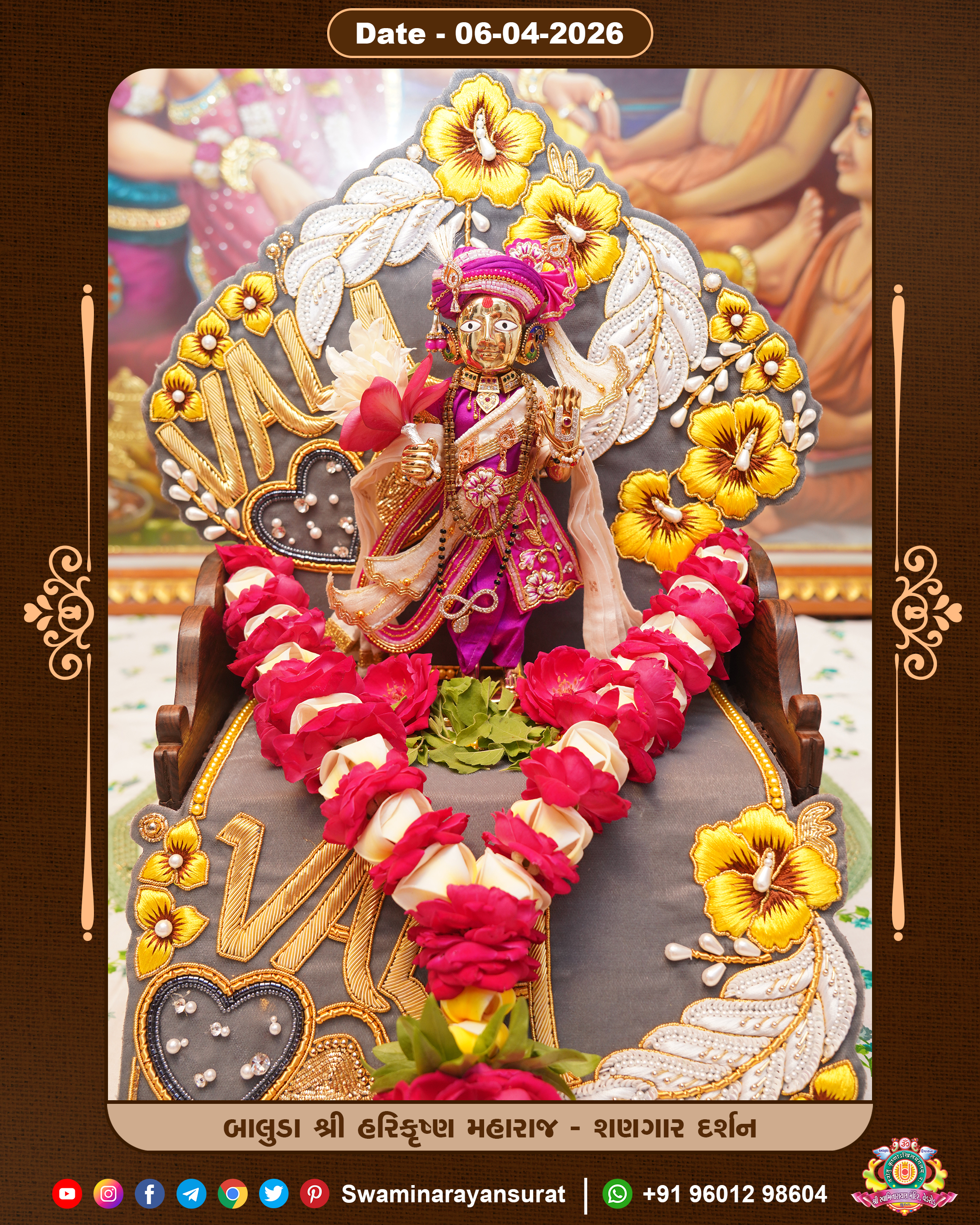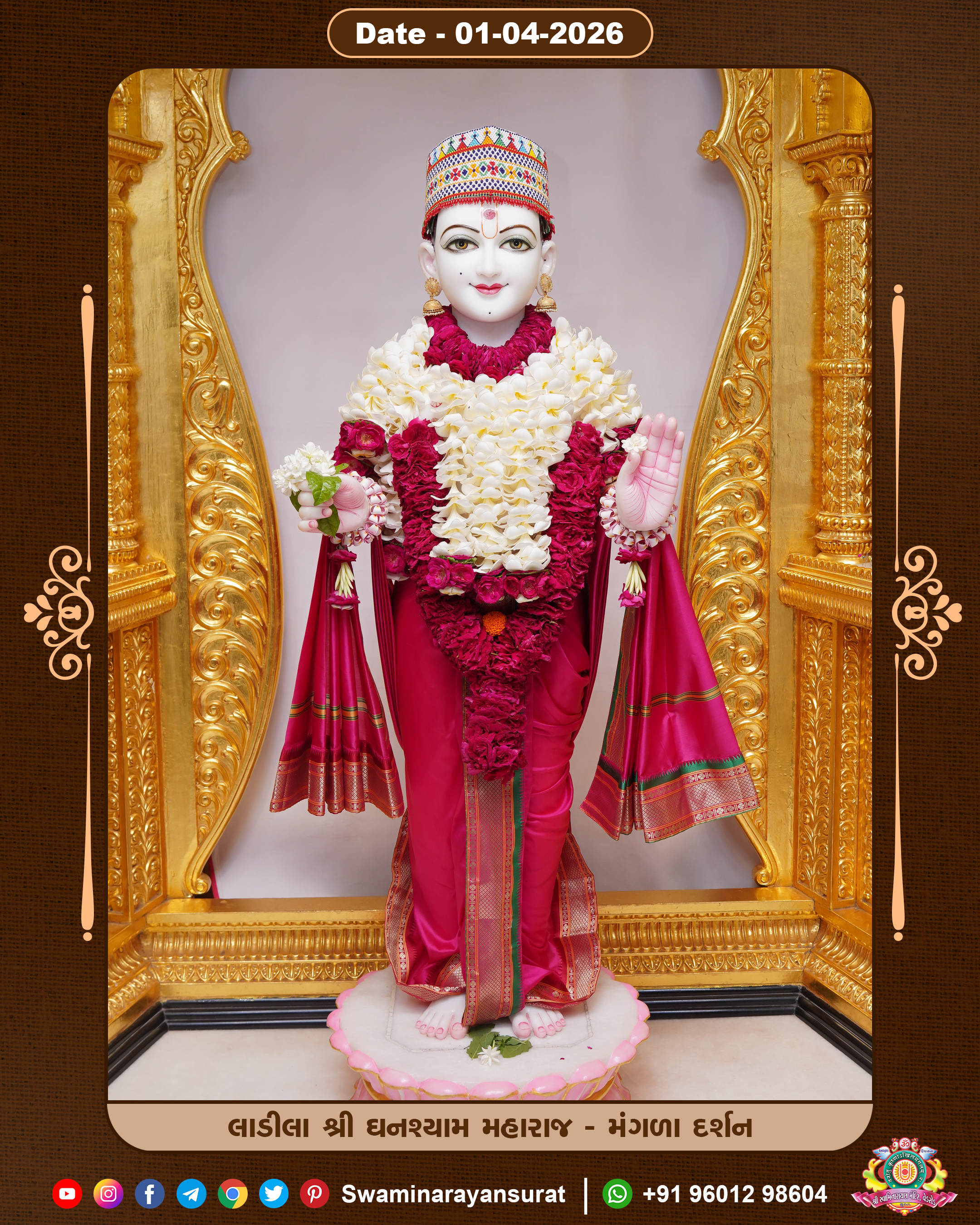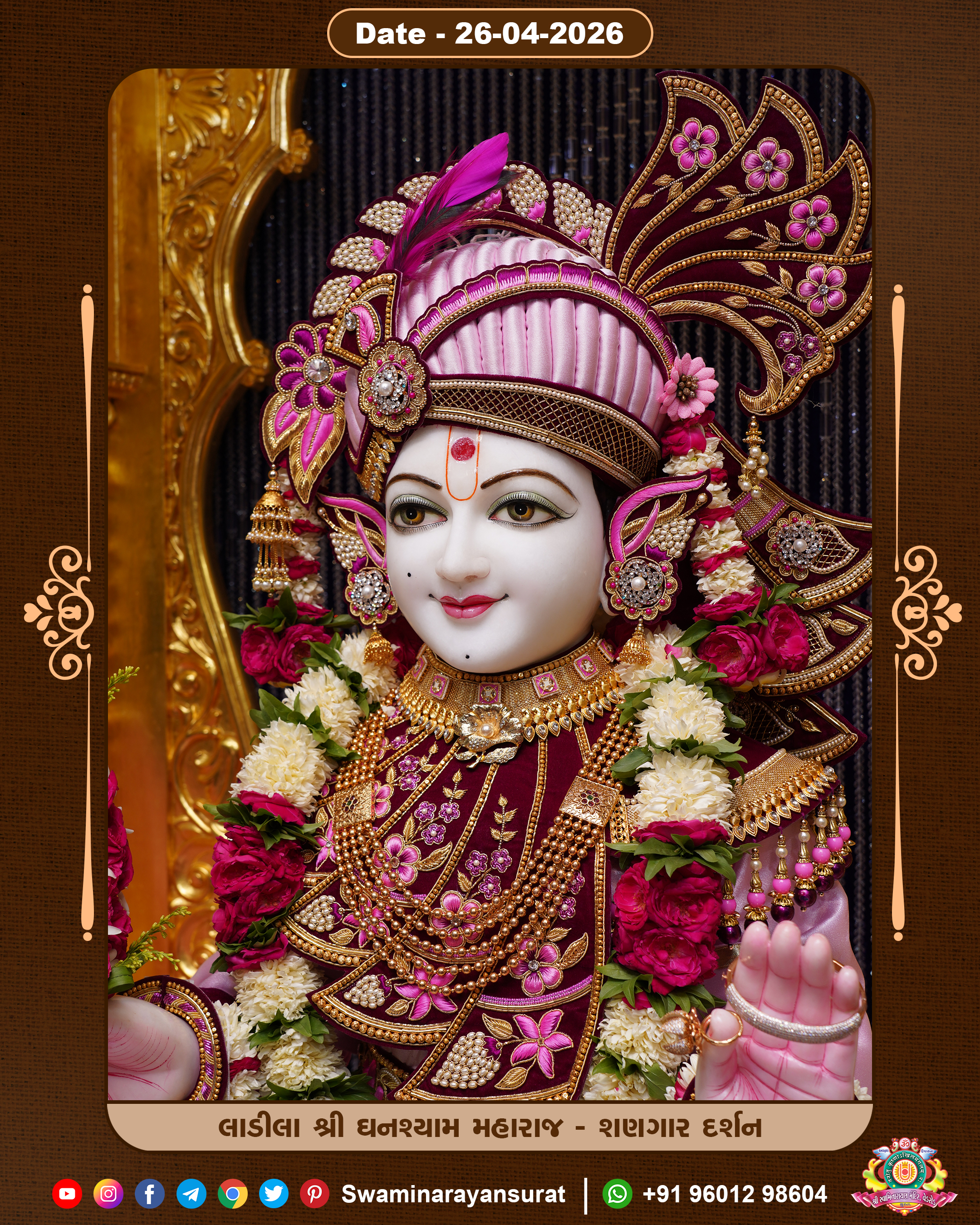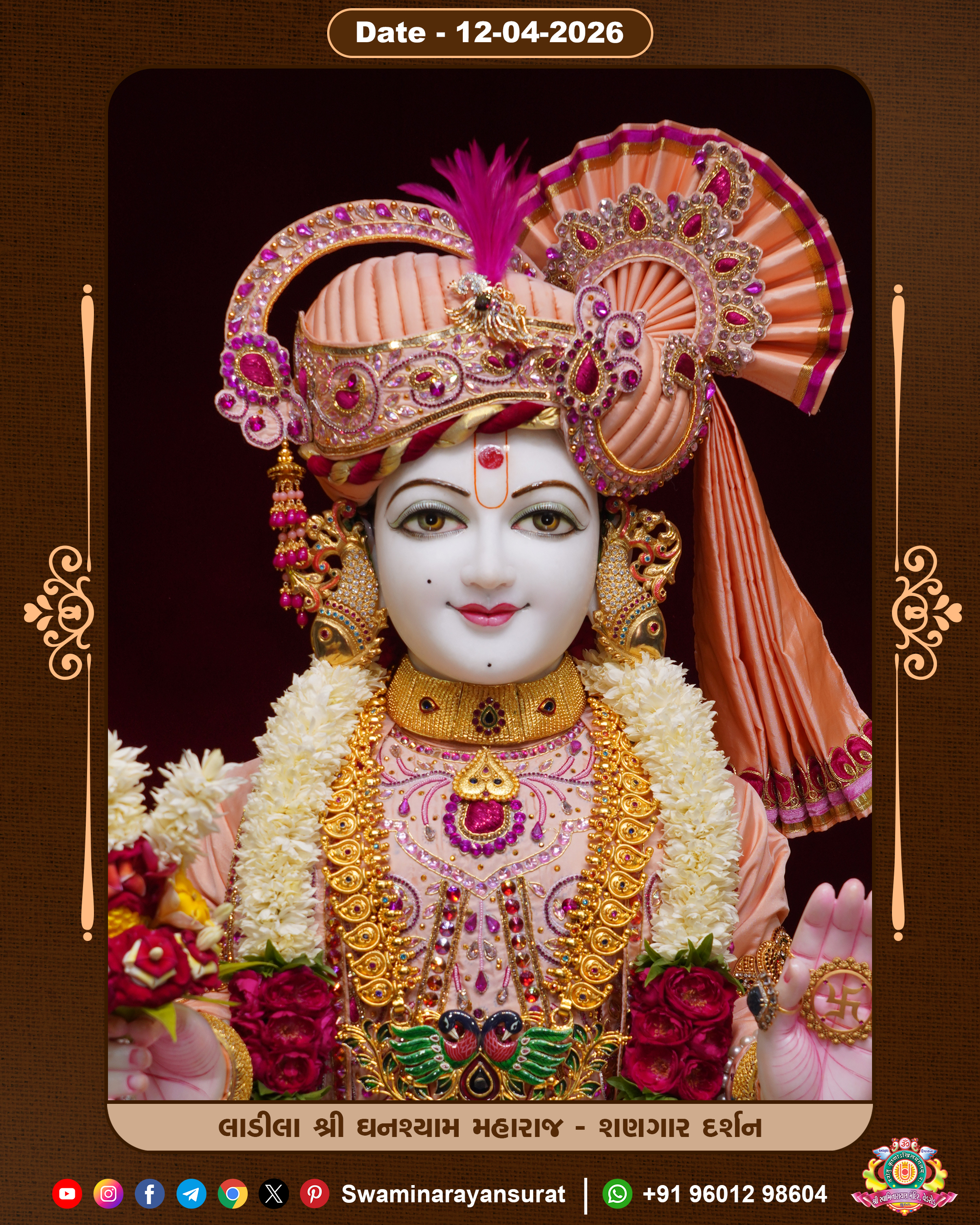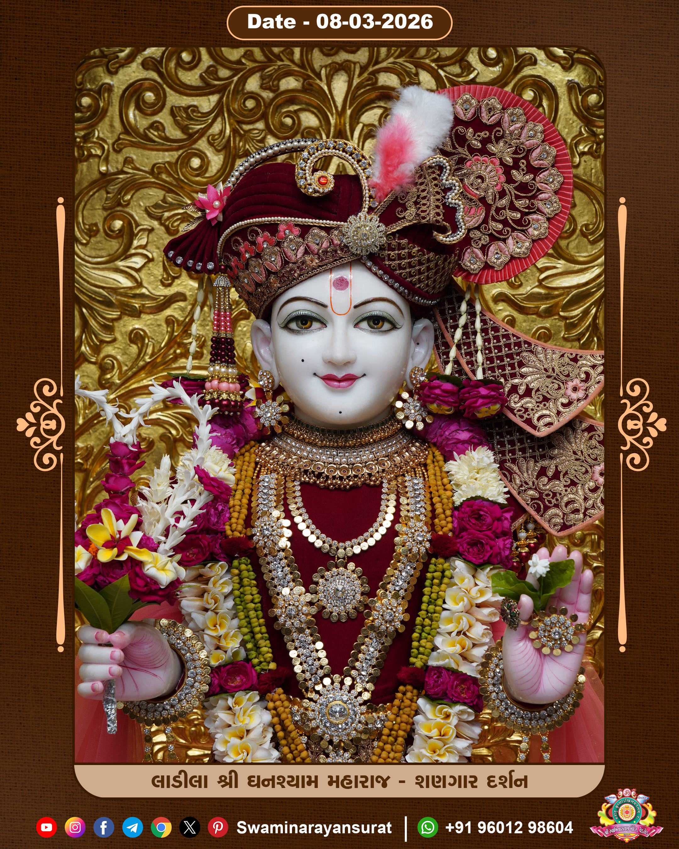 Shree Swaminarayan Temple, VedRoad is a Spiritual Organization Which falls under the region Of Vadtal Temple (The Headquarter Of Laxminarayan Dev Gadi). It is the First Organization Which is Constructed By Pink Stone With Beautiful and Marvellous Carving in Surat Of Swaminarayan Sampraday, Vadtal desh Which is increasing Pride & Prestige of Surat City, This temple contains One Main Shrine under which the idol of Ladila Shree Ghanshyam Maharaj is installed. P. Pu. Sadguru Shree Prabhucharandasji Swami is the Creator of this divine Organization. By the Several Activities & appearance Many devotees feels Easy in difficult Circumstances. He with his approx. 15 Saints & Devotees does Several Social & Spiritual Activities to fulfill the goal of Swaminarayan Sampraday, to do Worship with religious practices.