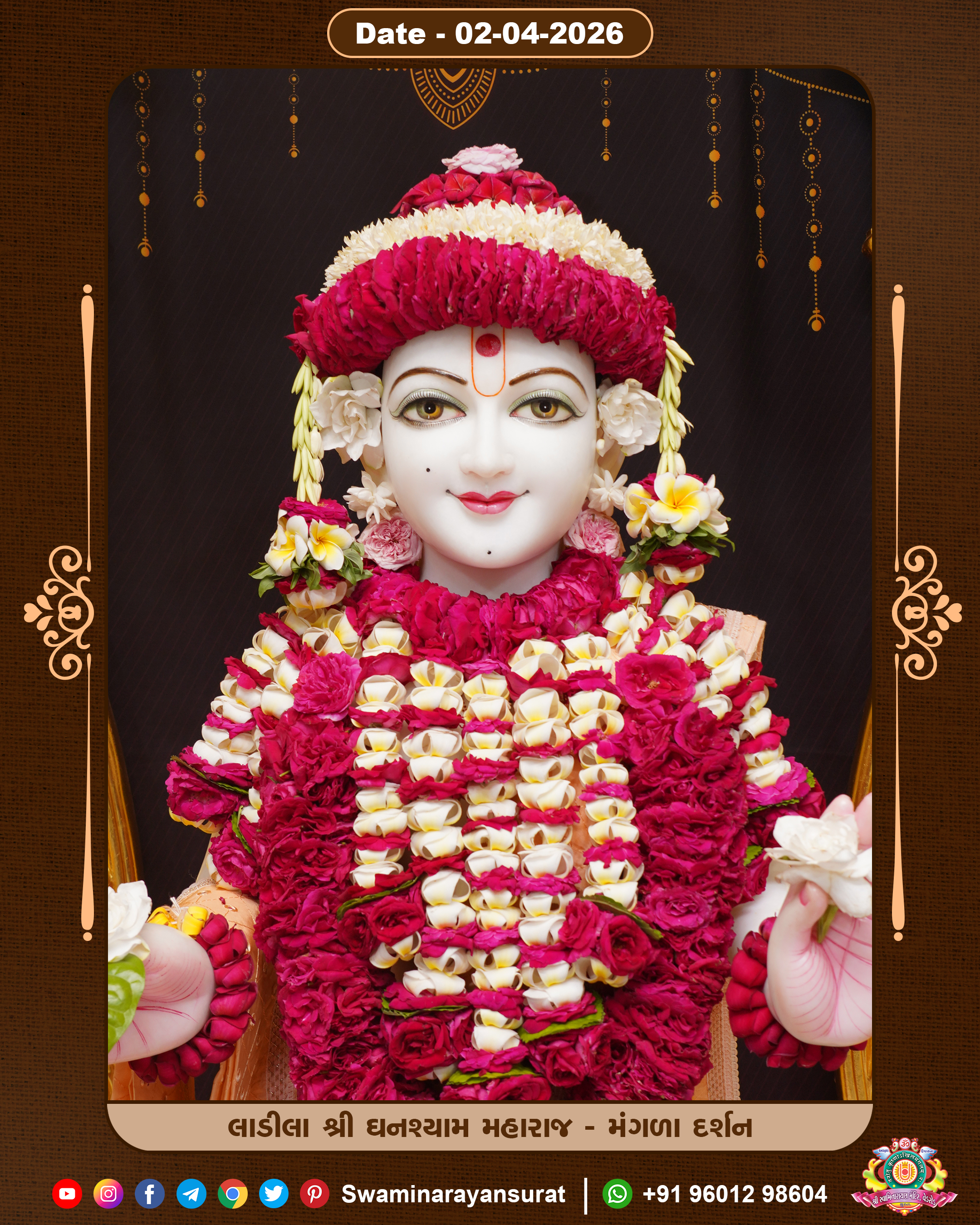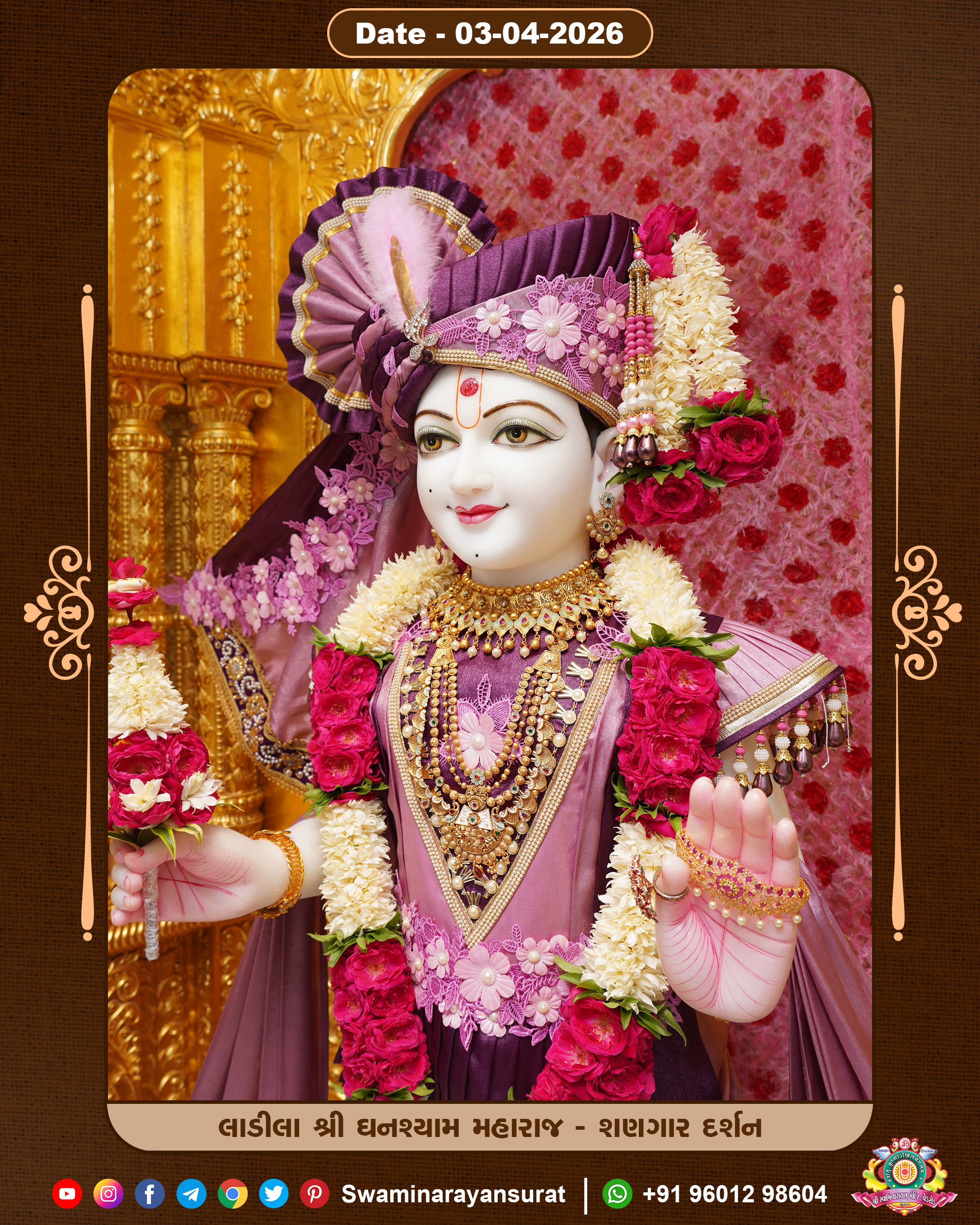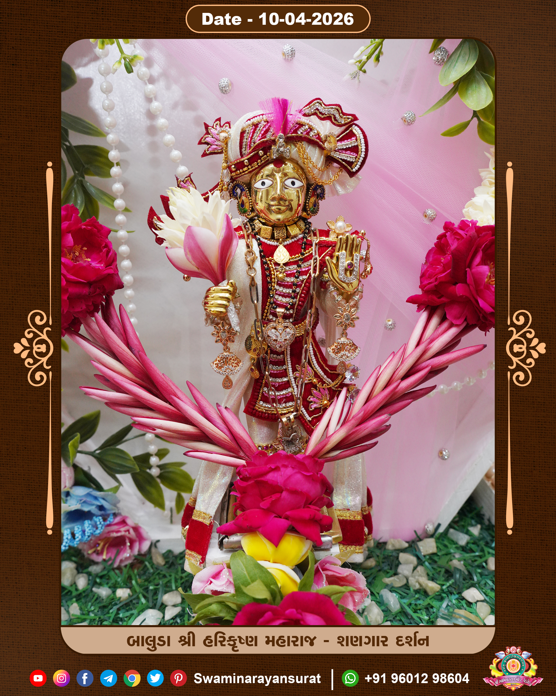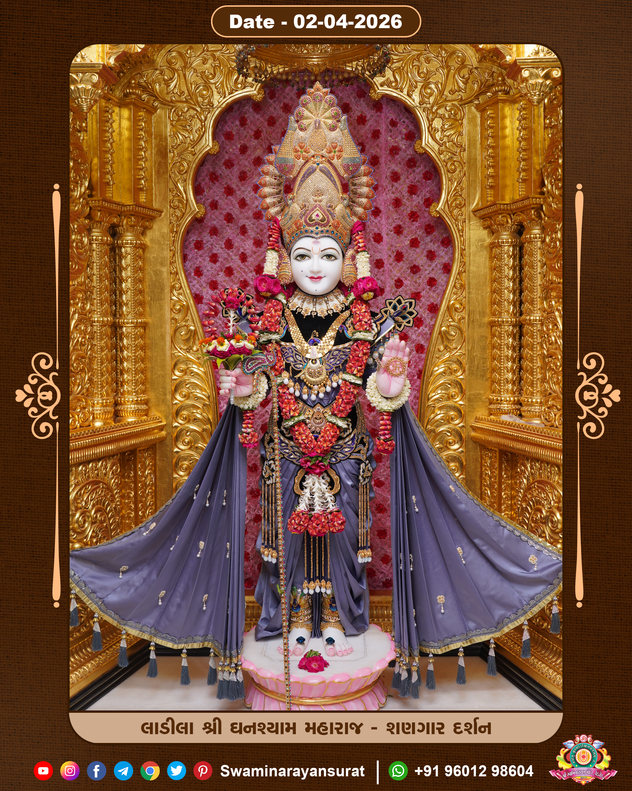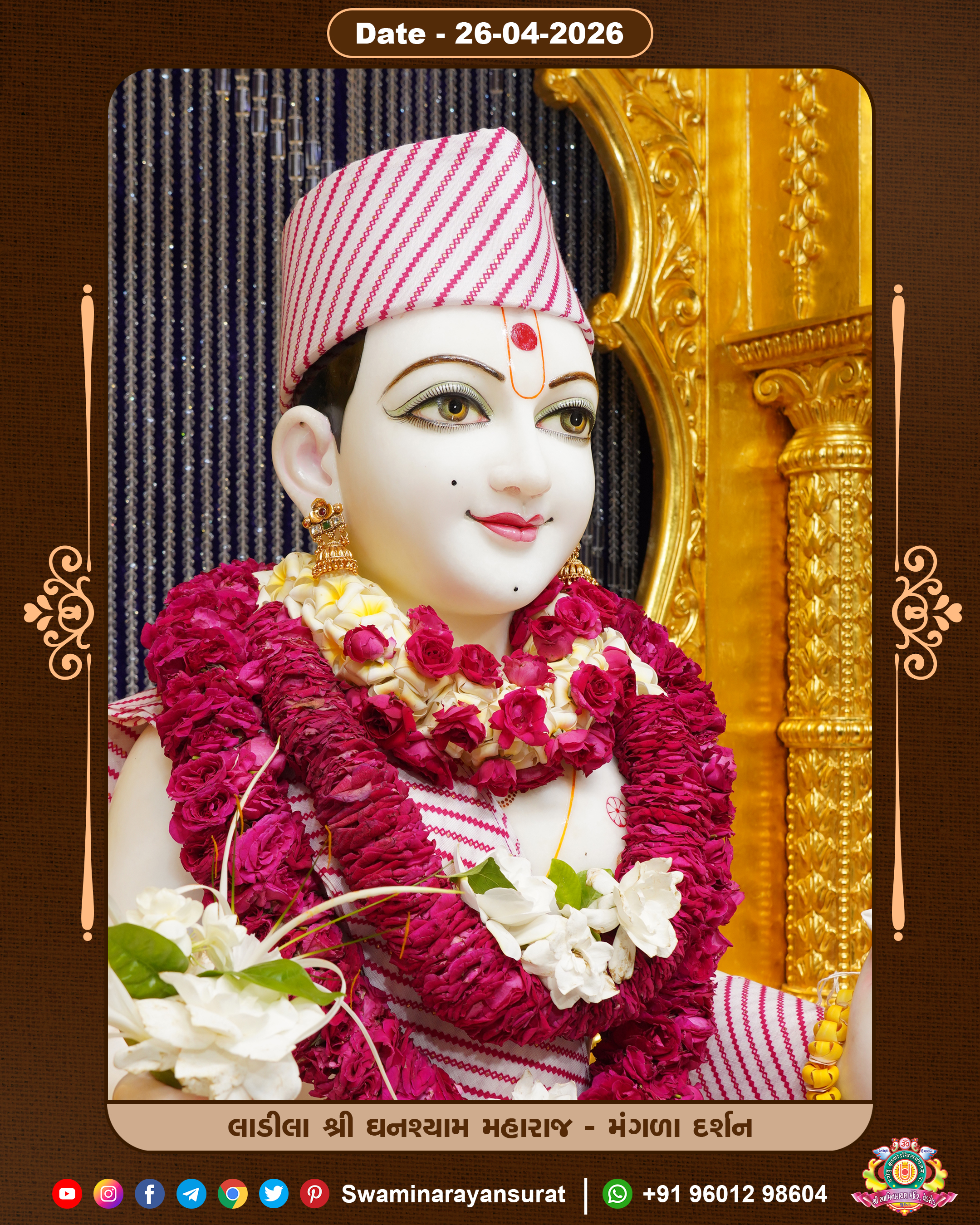 Shree Swaminarayan Temple, VedRoad is a Spiritual Organization Which falls under the region Of Vadtal Temple (The Headquarter Of Laxminarayan Dev Gadi). It is the First Organization Which is Constructed By Pink Stone With Beautiful and Marvellous Carving in Surat Of Swaminarayan Sampraday, Vadtal desh Which is increasing Pride & Prestige of Surat City, This temple contains One Main Shrine under which the idol of Ladila Shree Ghanshyam Maharaj is installed. P. Pu. Sadguru Shree Prabhucharandasji Swami is the Creator of this divine Organization. By the Several Activities & appearance Many devotees feels Easy in difficult Circumstances. He with his approx. 15 Saints & Devotees does Several Social & Spiritual Activities to fulfill the goal of Swaminarayan Sampraday, to do Worship with religious practices.