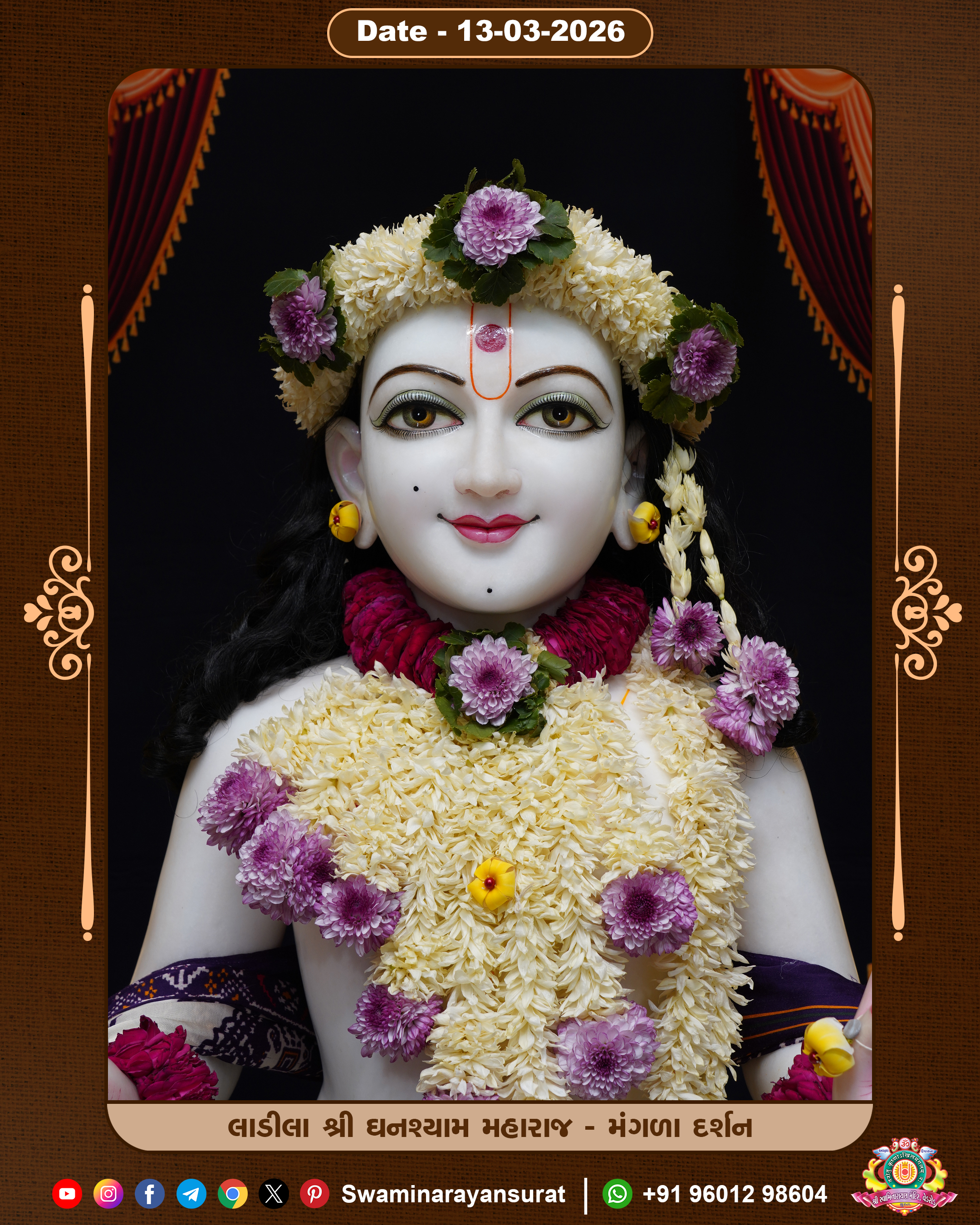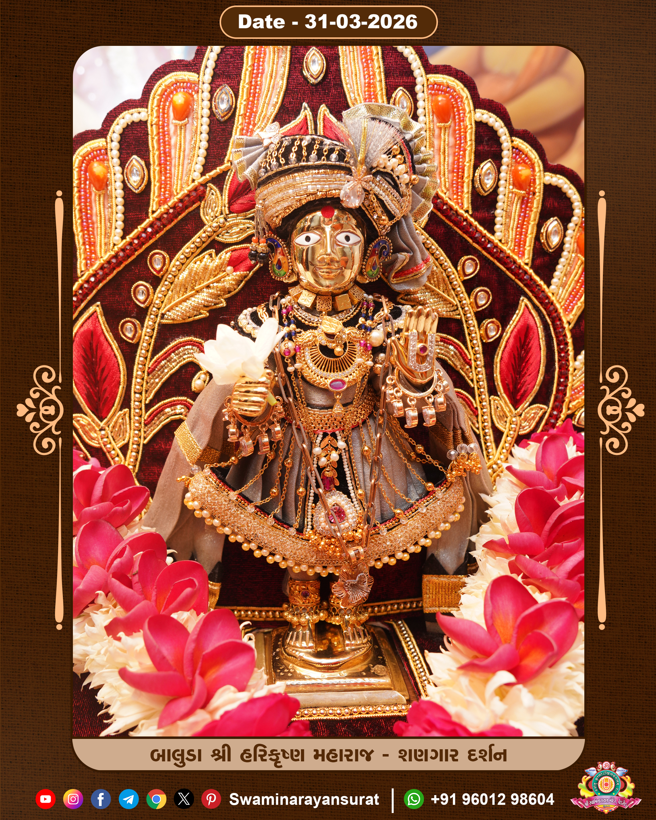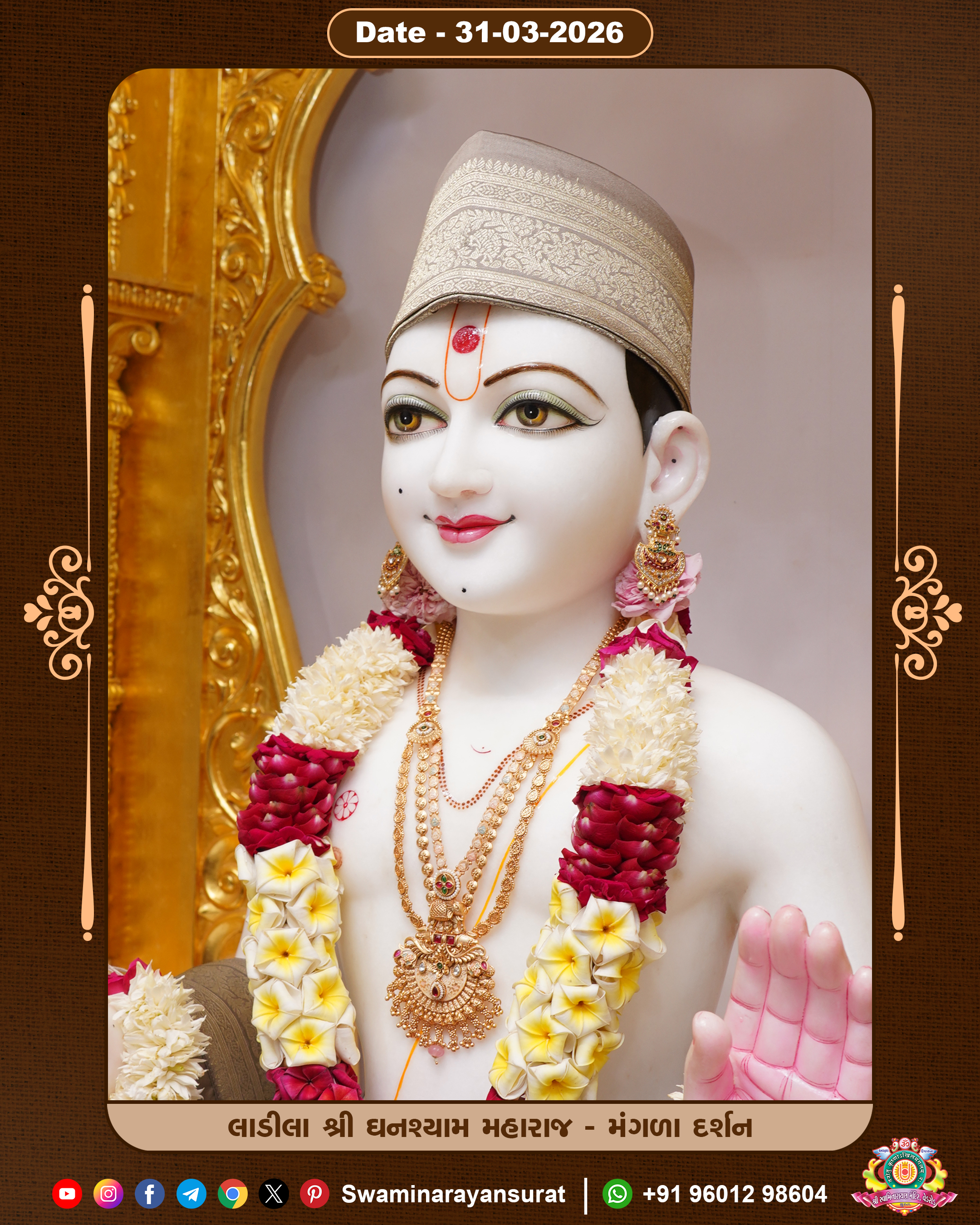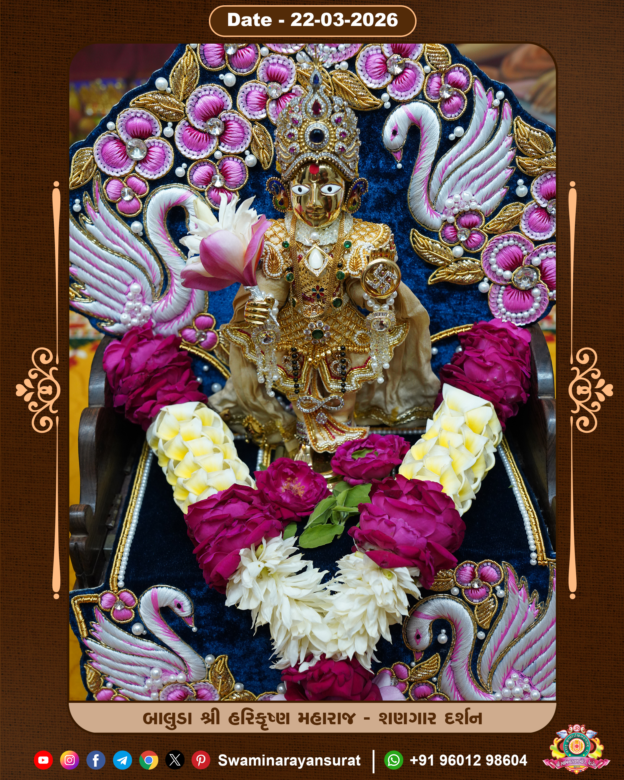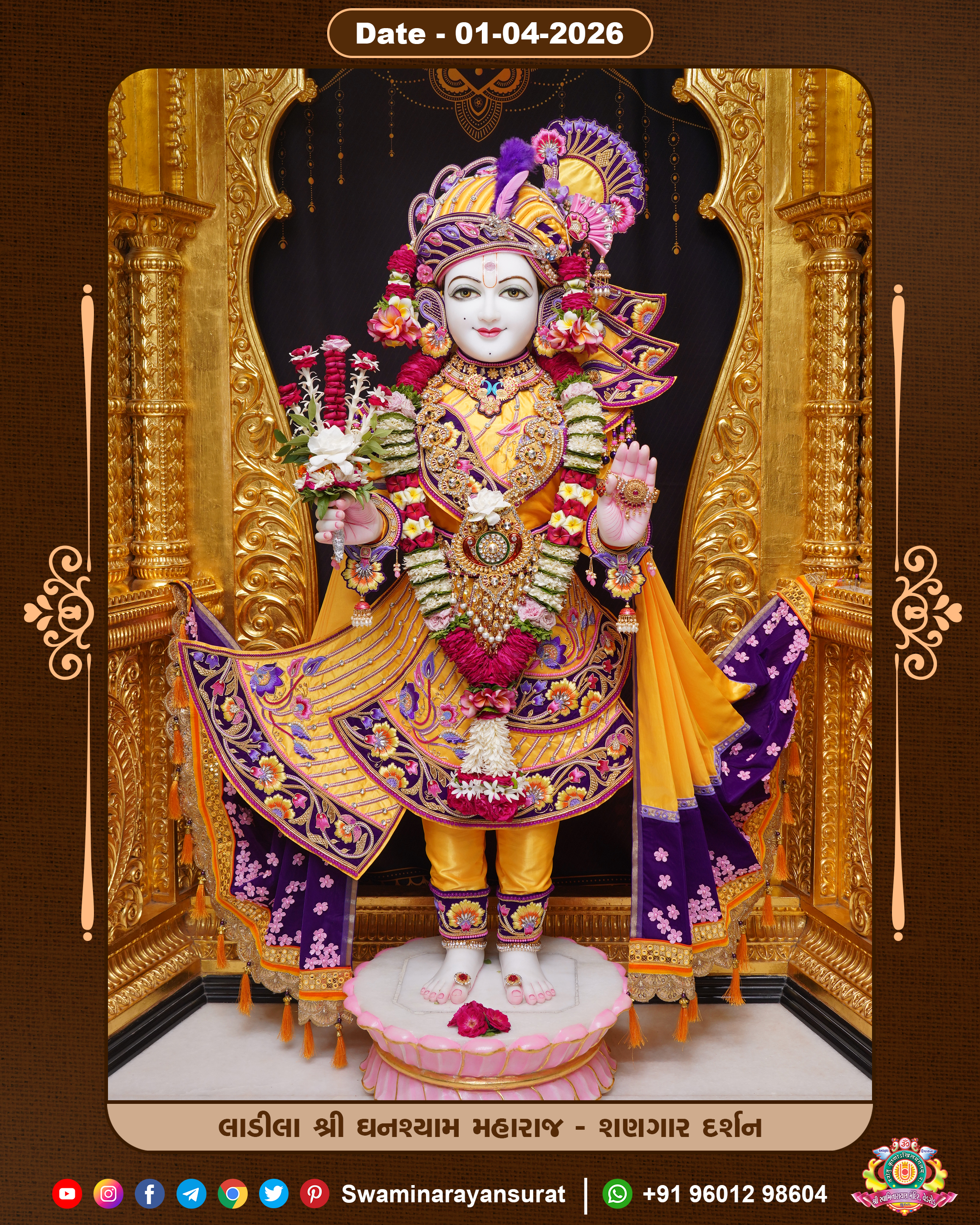 Shree Swaminarayan Temple, VedRoad is a Spiritual Organization Which falls under the region Of Vadtal Temple (The Headquarter Of Laxminarayan Dev Gadi). It is the First Organization Which is Constructed By Pink Stone With Beautiful and Marvellous Carving in Surat Of Swaminarayan Sampraday, Vadtal desh Which is increasing Pride & Prestige of Surat City, This temple contains One Main Shrine under which the idol of Ladila Shree Ghanshyam Maharaj is installed. P. Pu. Sadguru Shree Prabhucharandasji Swami is the Creator of this divine Organization. By the Several Activities & appearance Many devotees feels Easy in difficult Circumstances. He with his approx. 15 Saints & Devotees does Several Social & Spiritual Activities to fulfill the goal of Swaminarayan Sampraday, to do Worship with religious practices.