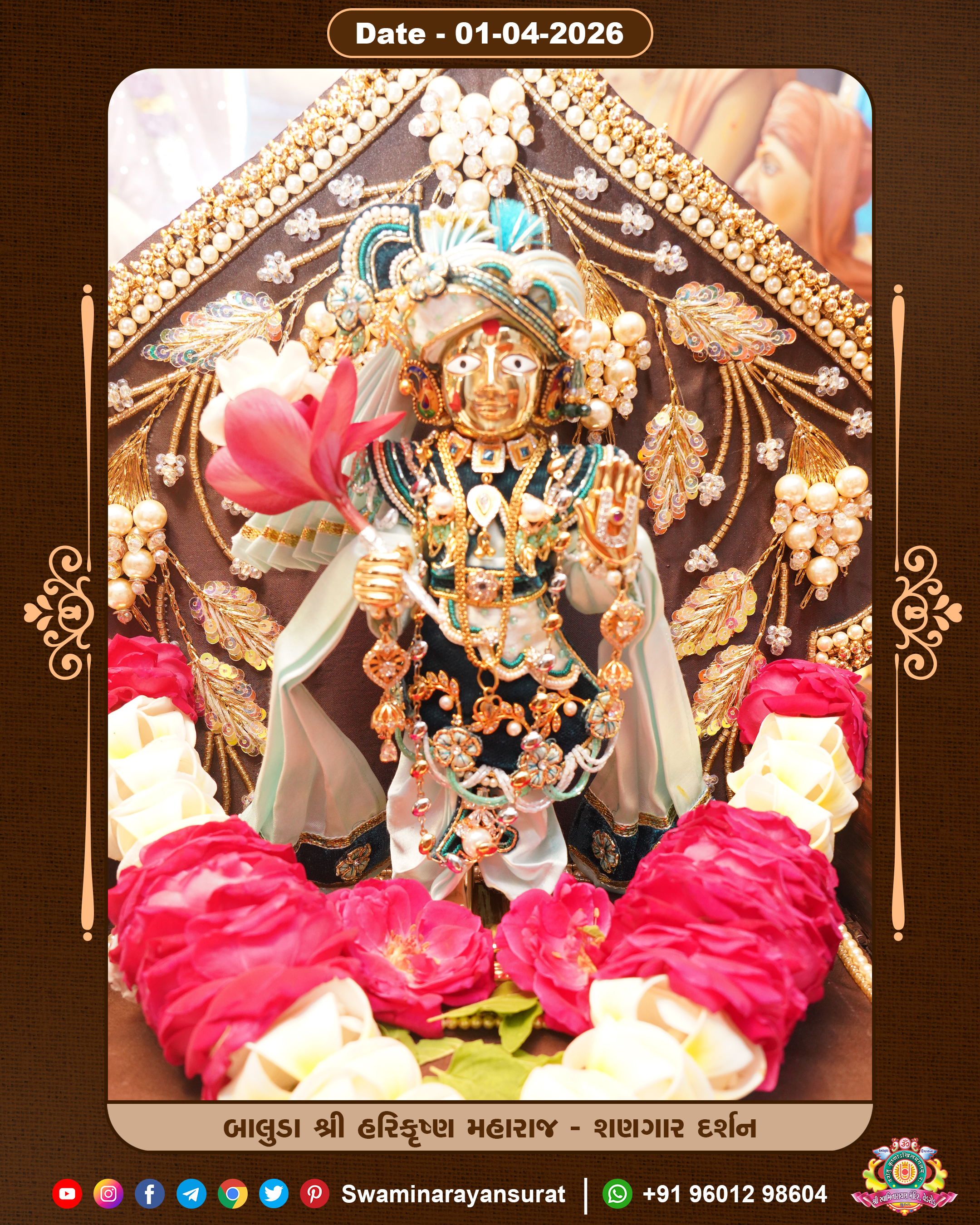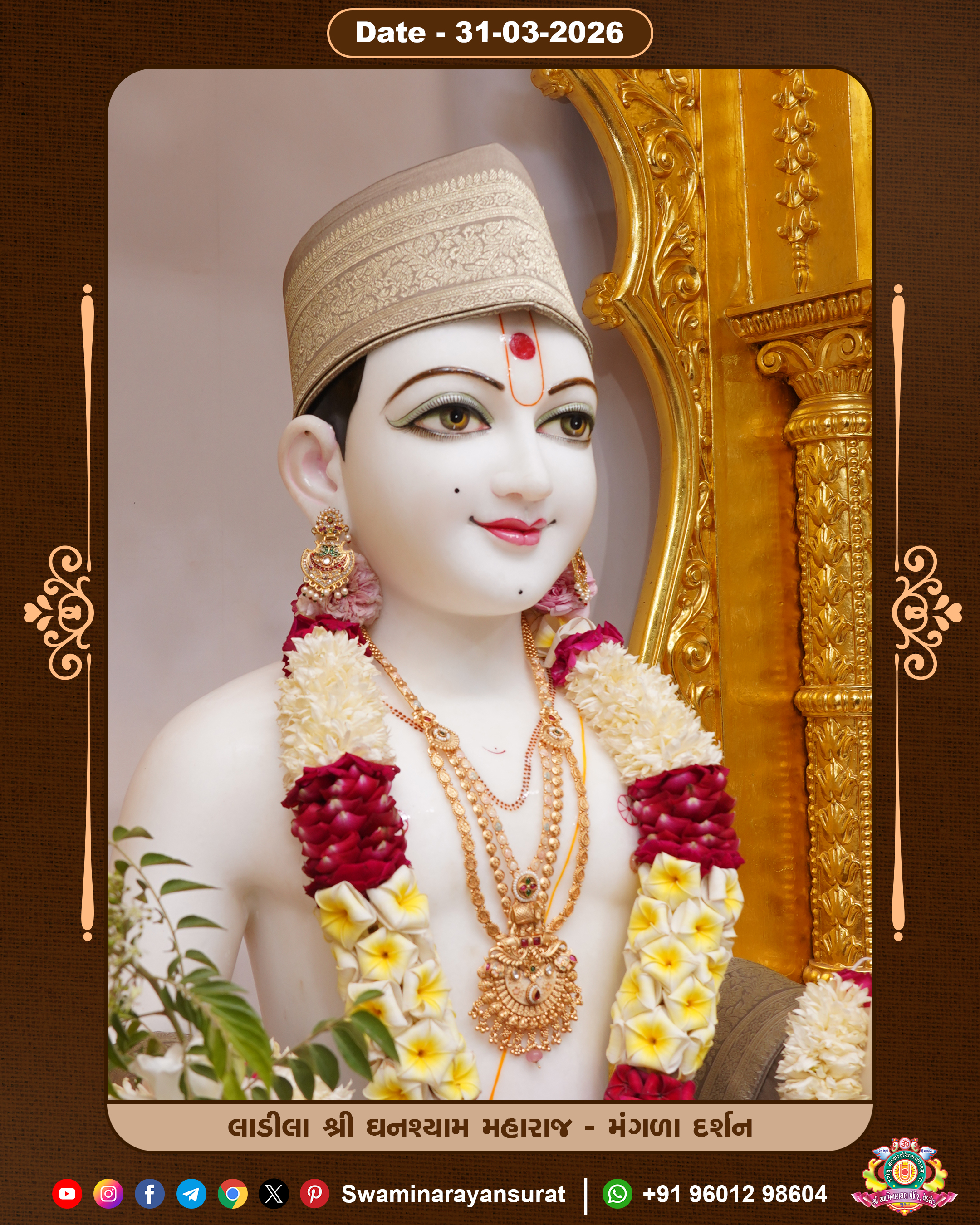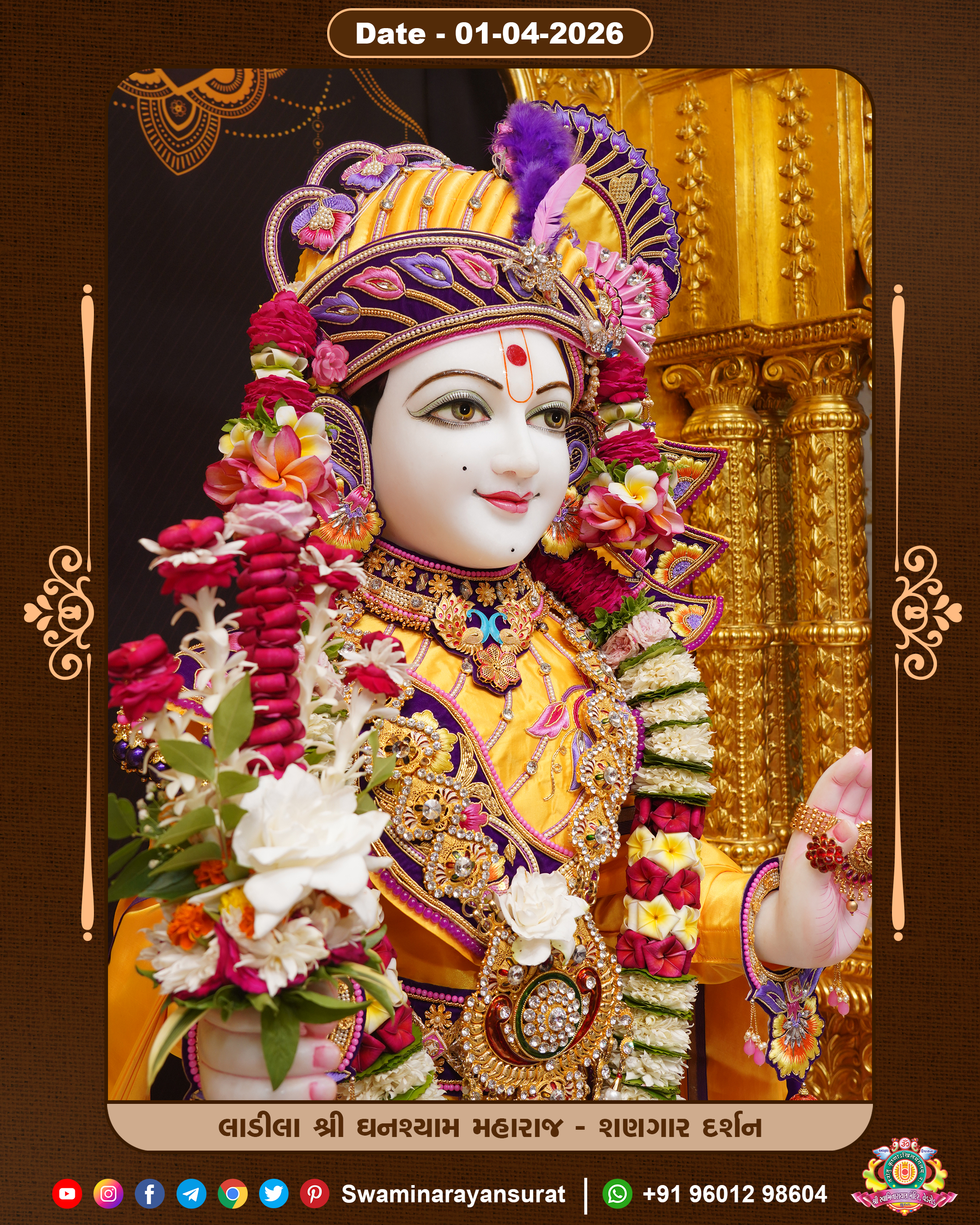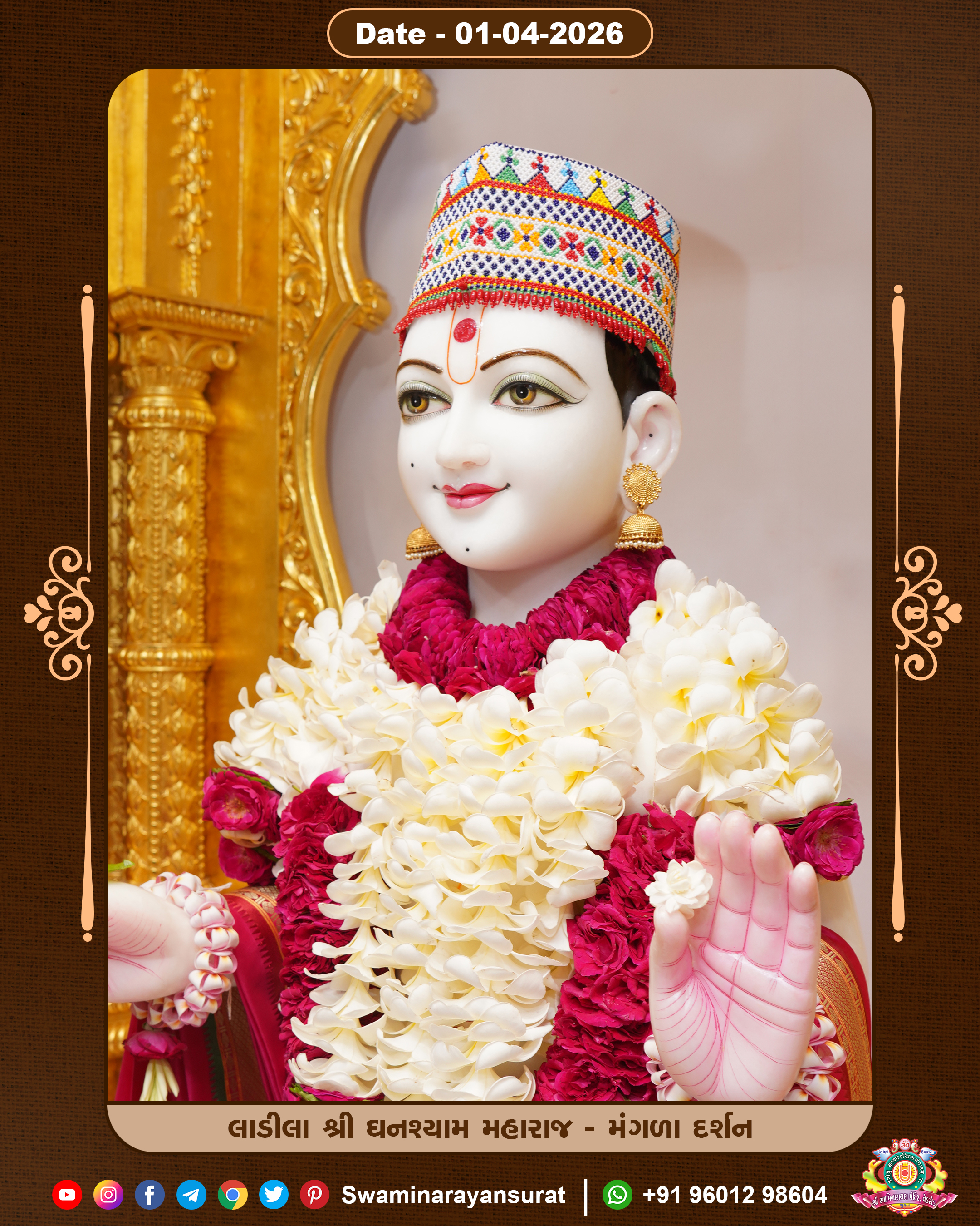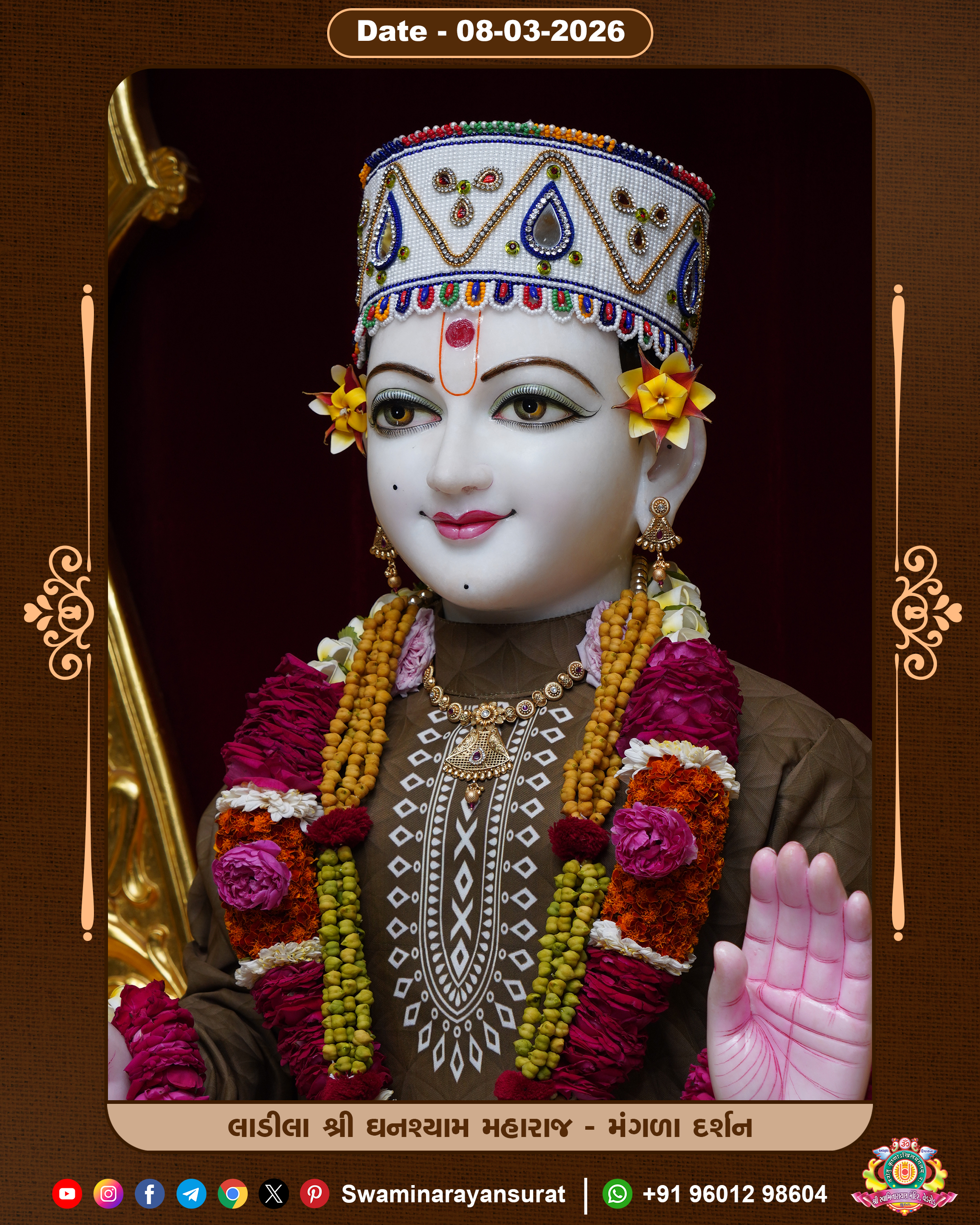Shree Swaminarayan Temple, VedRoad is a Spiritual Organization Which falls under the region Of Vadtal Temple (The Headquarter Of Laxminarayan Dev Gadi). It is the First Organization Which is Constructed By Pink Stone With Beautiful and Marvellous Carving in Surat Of Swaminarayan Sampraday, Vadtal desh Which is increasing Pride & Prestige of Surat City, This temple contains One Main Shrine under which the idol of Ladila Shree Ghanshyam Maharaj is installed. P. Pu. Sadguru Shree Prabhucharandasji Swami is the Creator of this divine Organization. By the Several Activities & appearance Many devotees feels Easy in difficult Circumstances. He with his approx. 15 Saints & Devotees does Several Social & Spiritual Activities to fulfill the goal of Swaminarayan Sampraday, to do Worship with religious practices.