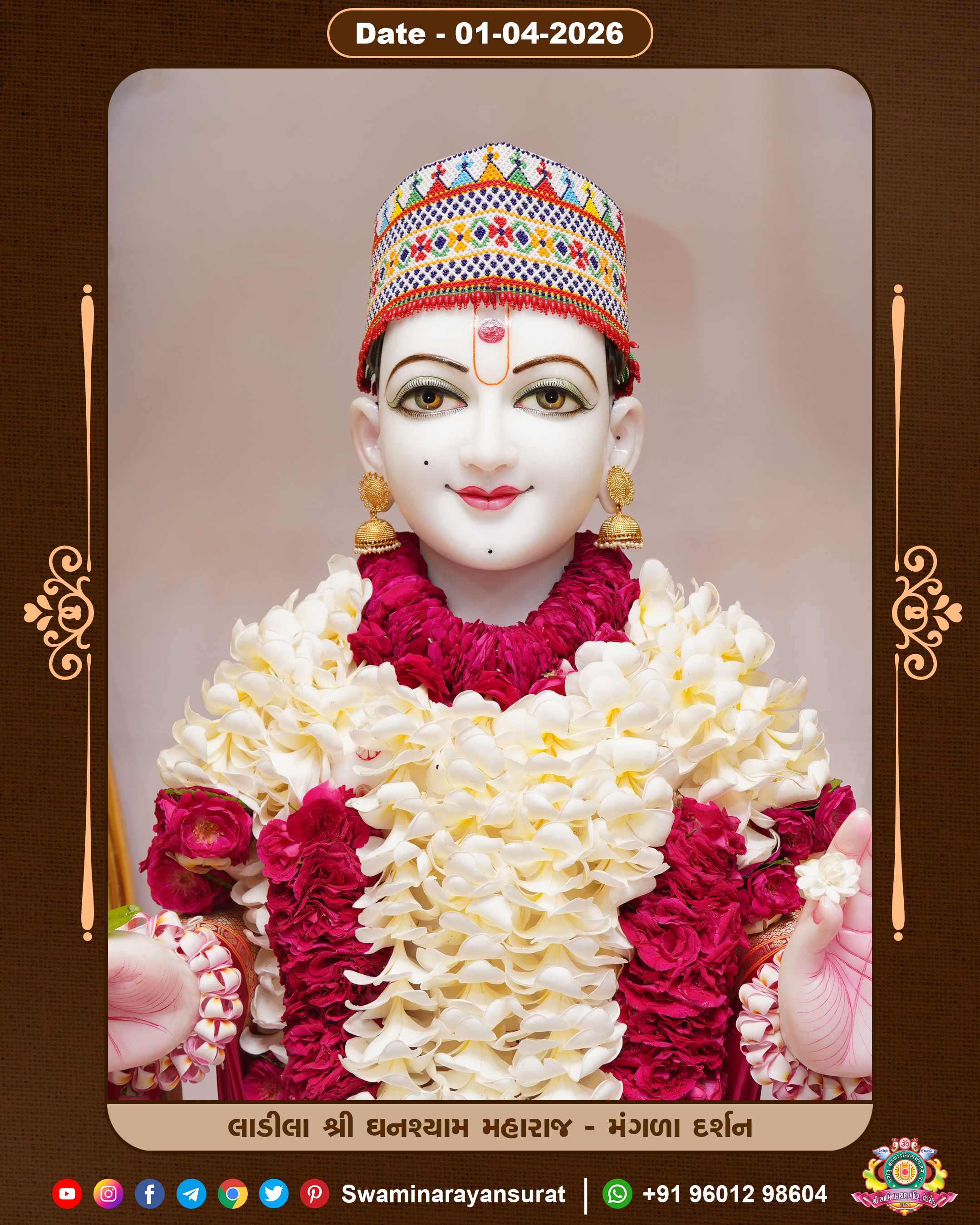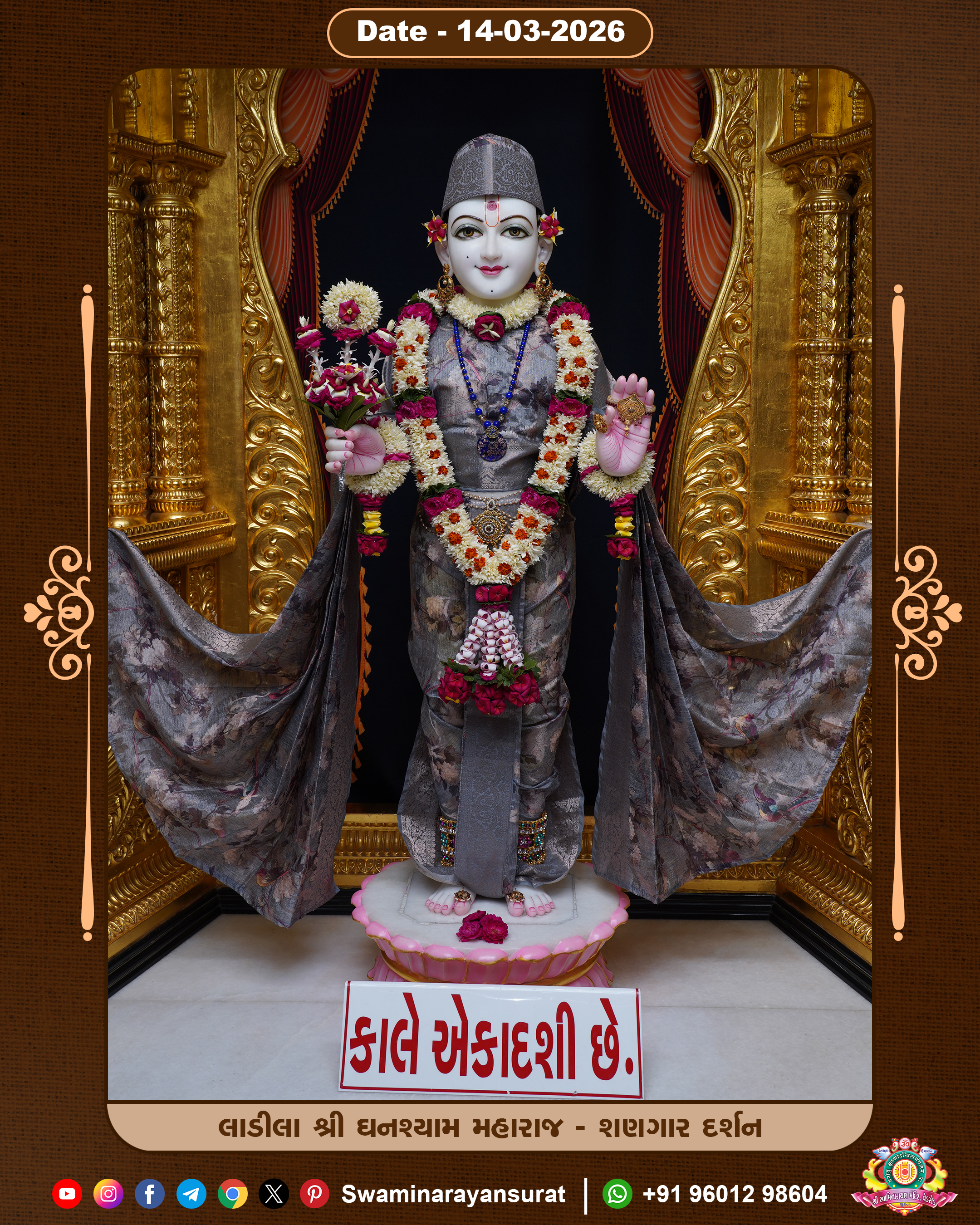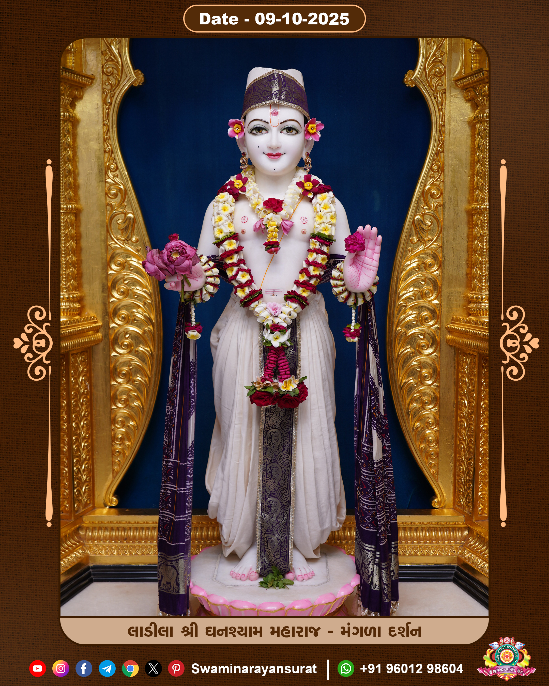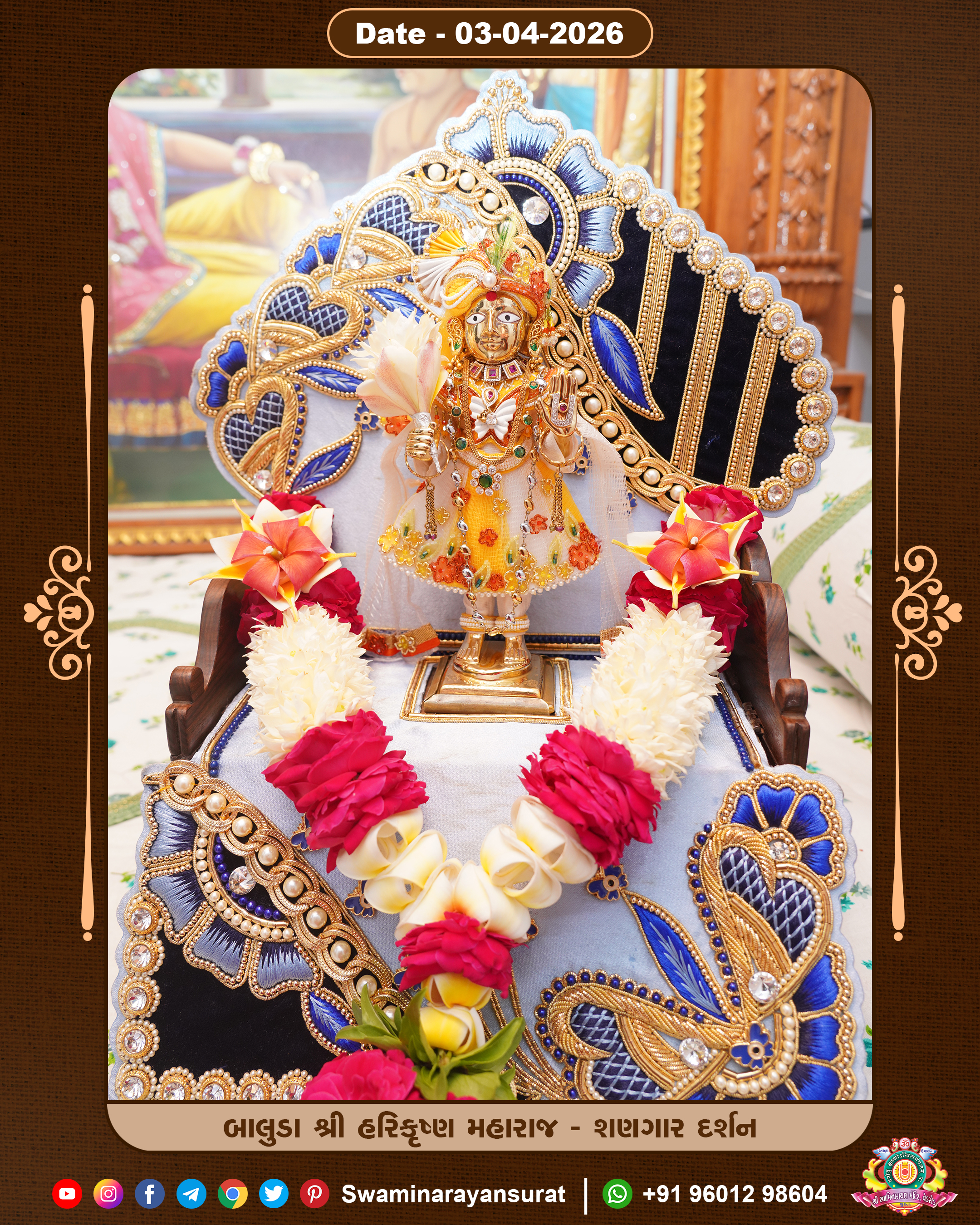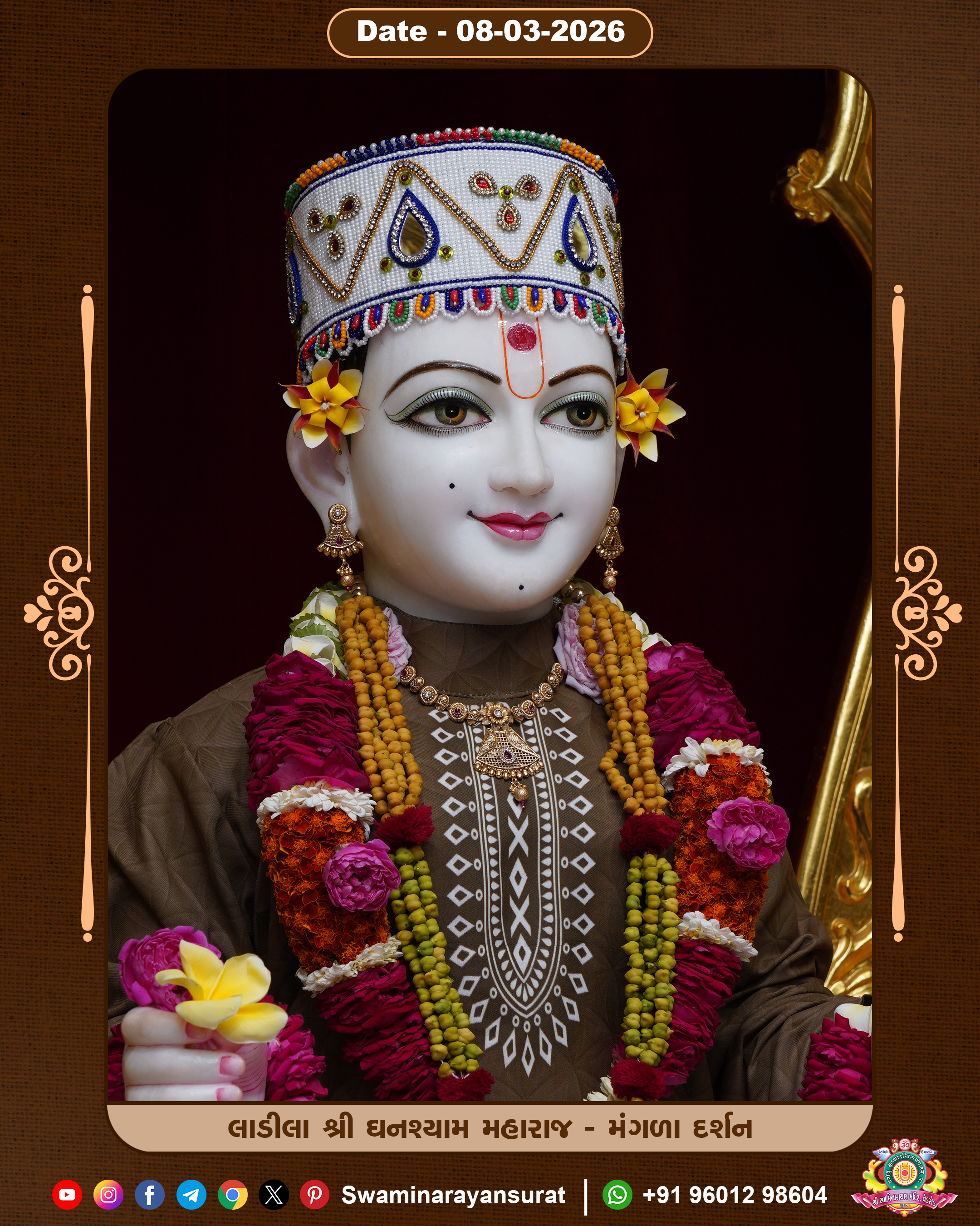 Shree Swaminarayan Temple, VedRoad is a Spiritual Organization Which falls under the region Of Vadtal Temple (The Headquarter Of Laxminarayan Dev Gadi). It is the First Organization Which is Constructed By Pink Stone With Beautiful and Marvellous Carving in Surat Of Swaminarayan Sampraday, Vadtal desh Which is increasing Pride & Prestige of Surat City, This temple contains One Main Shrine under which the idol of Ladila Shree Ghanshyam Maharaj is installed. P. Pu. Sadguru Shree Prabhucharandasji Swami is the Creator of this divine Organization. By the Several Activities & appearance Many devotees feels Easy in difficult Circumstances. He with his approx. 15 Saints & Devotees does Several Social & Spiritual Activities to fulfill the goal of Swaminarayan Sampraday, to do Worship with religious practices.