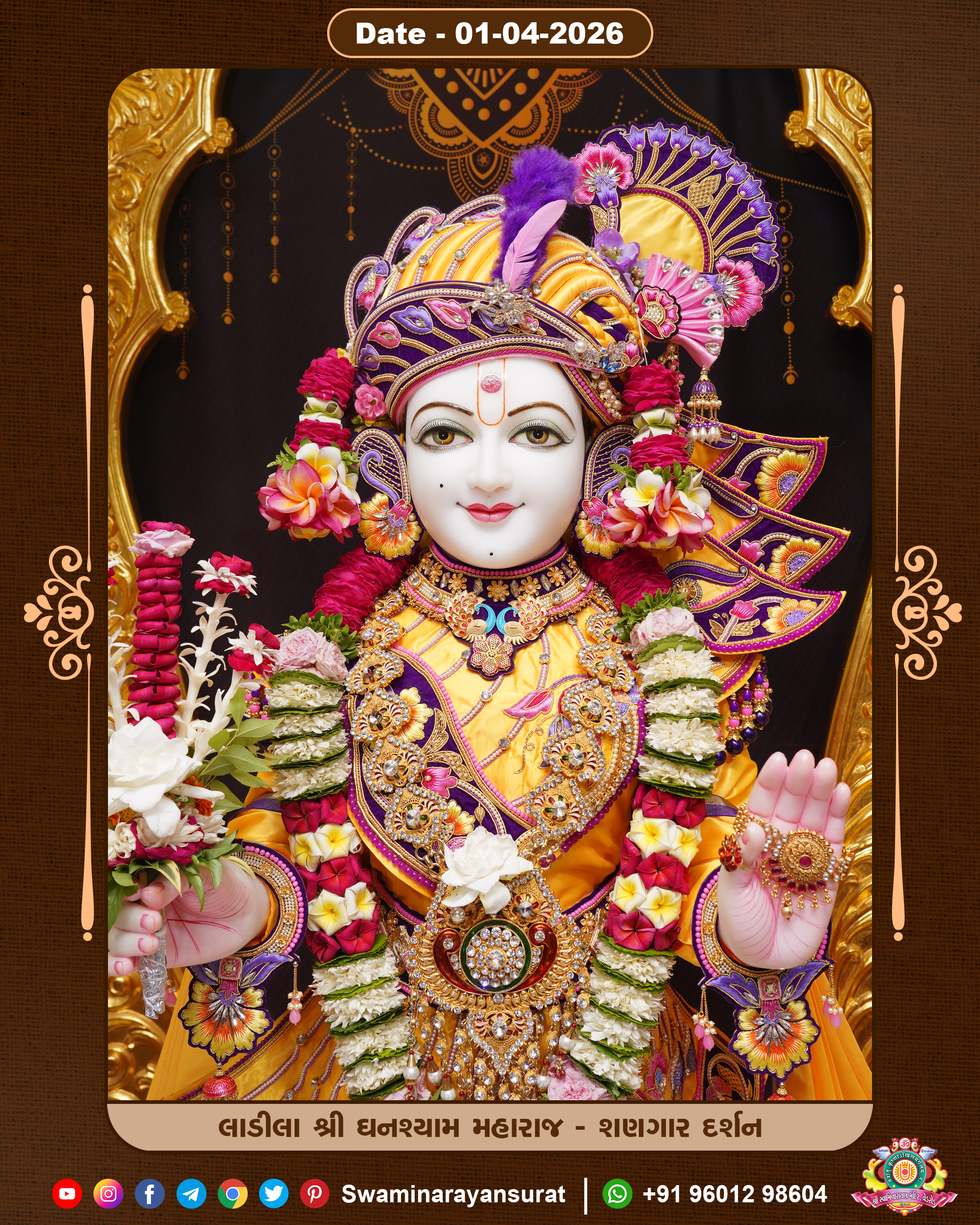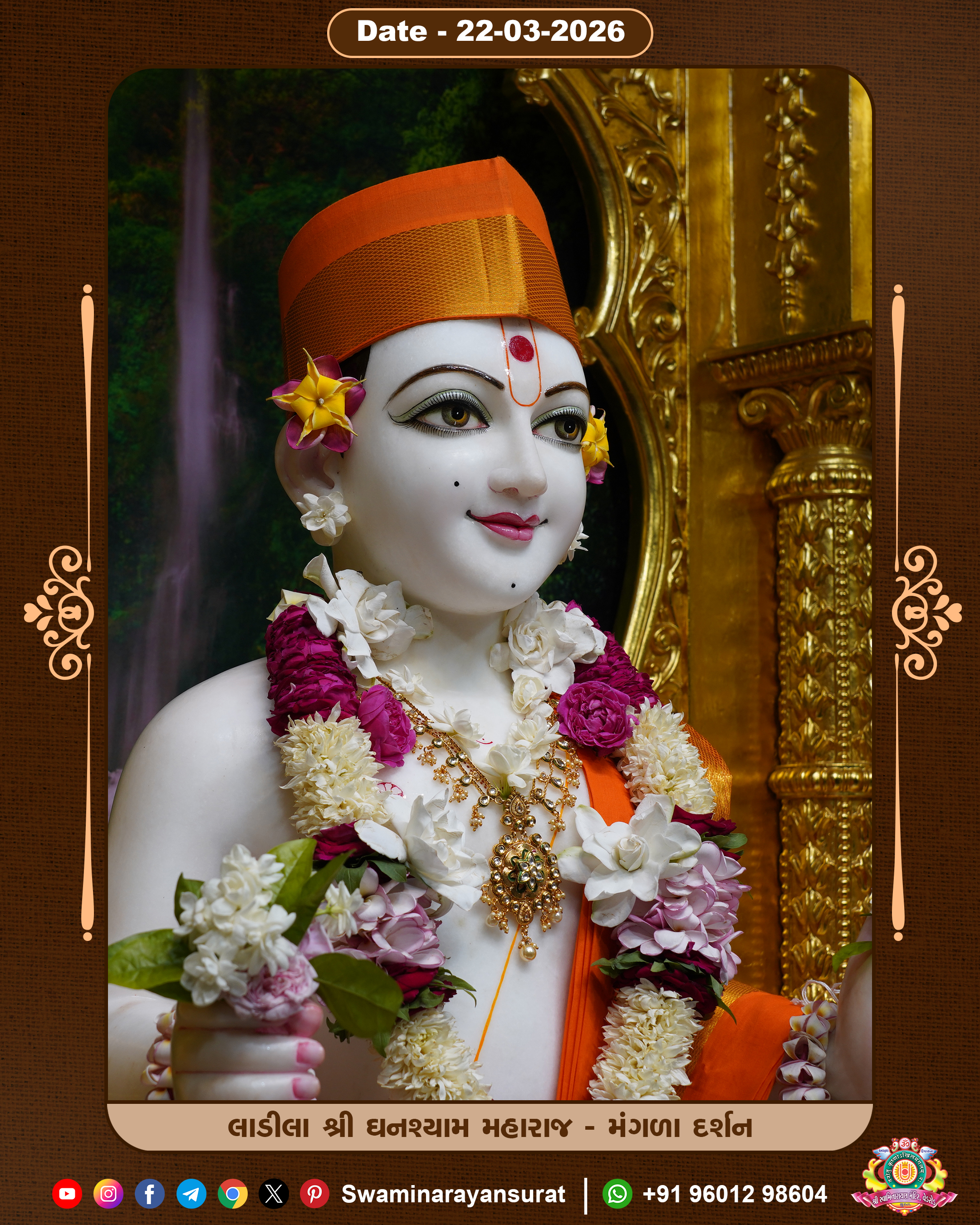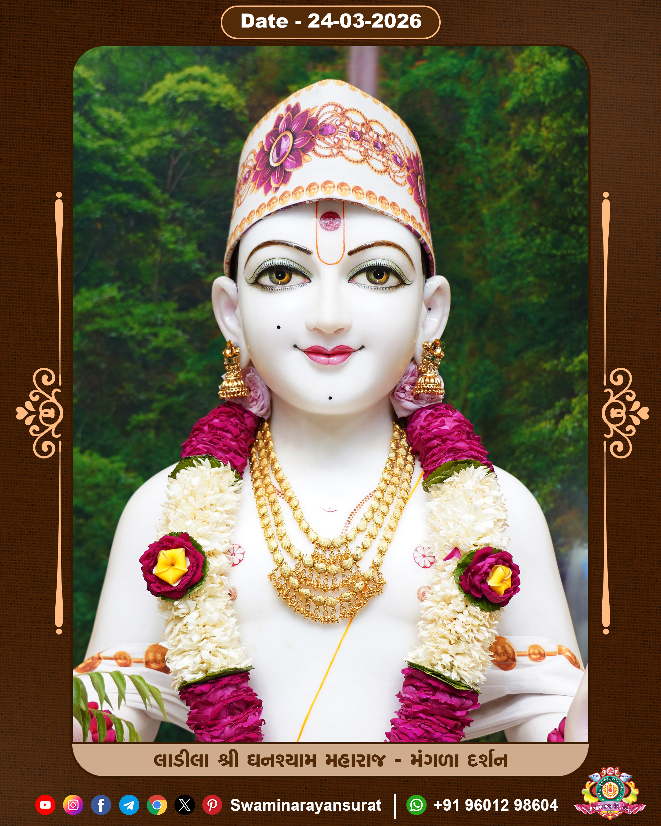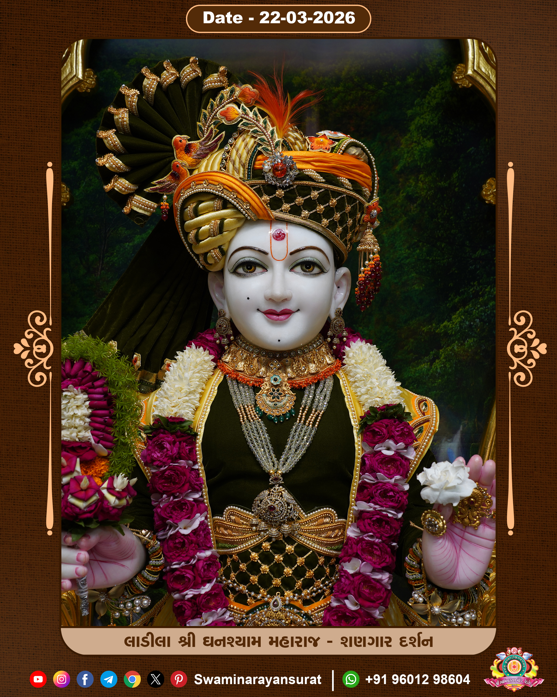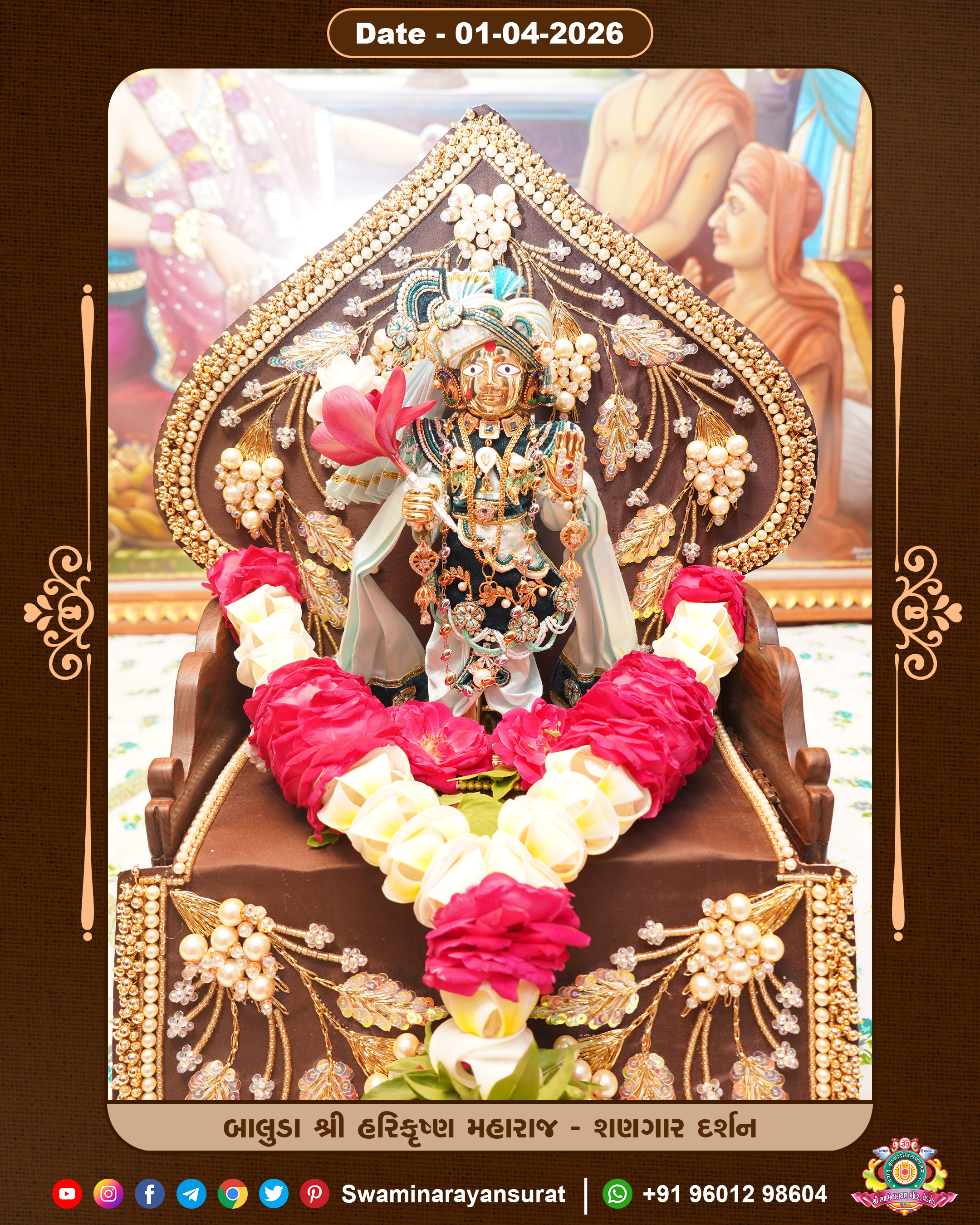 Shree Swaminarayan Temple, VedRoad is a Spiritual Organization Which falls under the region Of Vadtal Temple (The Headquarter Of Laxminarayan Dev Gadi). It is the First Organization Which is Constructed By Pink Stone With Beautiful and Marvellous Carving in Surat Of Swaminarayan Sampraday, Vadtal desh Which is increasing Pride & Prestige of Surat City, This temple contains One Main Shrine under which the idol of Ladila Shree Ghanshyam Maharaj is installed. P. Pu. Sadguru Shree Prabhucharandasji Swami is the Creator of this divine Organization. By the Several Activities & appearance Many devotees feels Easy in difficult Circumstances. He with his approx. 15 Saints & Devotees does Several Social & Spiritual Activities to fulfill the goal of Swaminarayan Sampraday, to do Worship with religious practices.