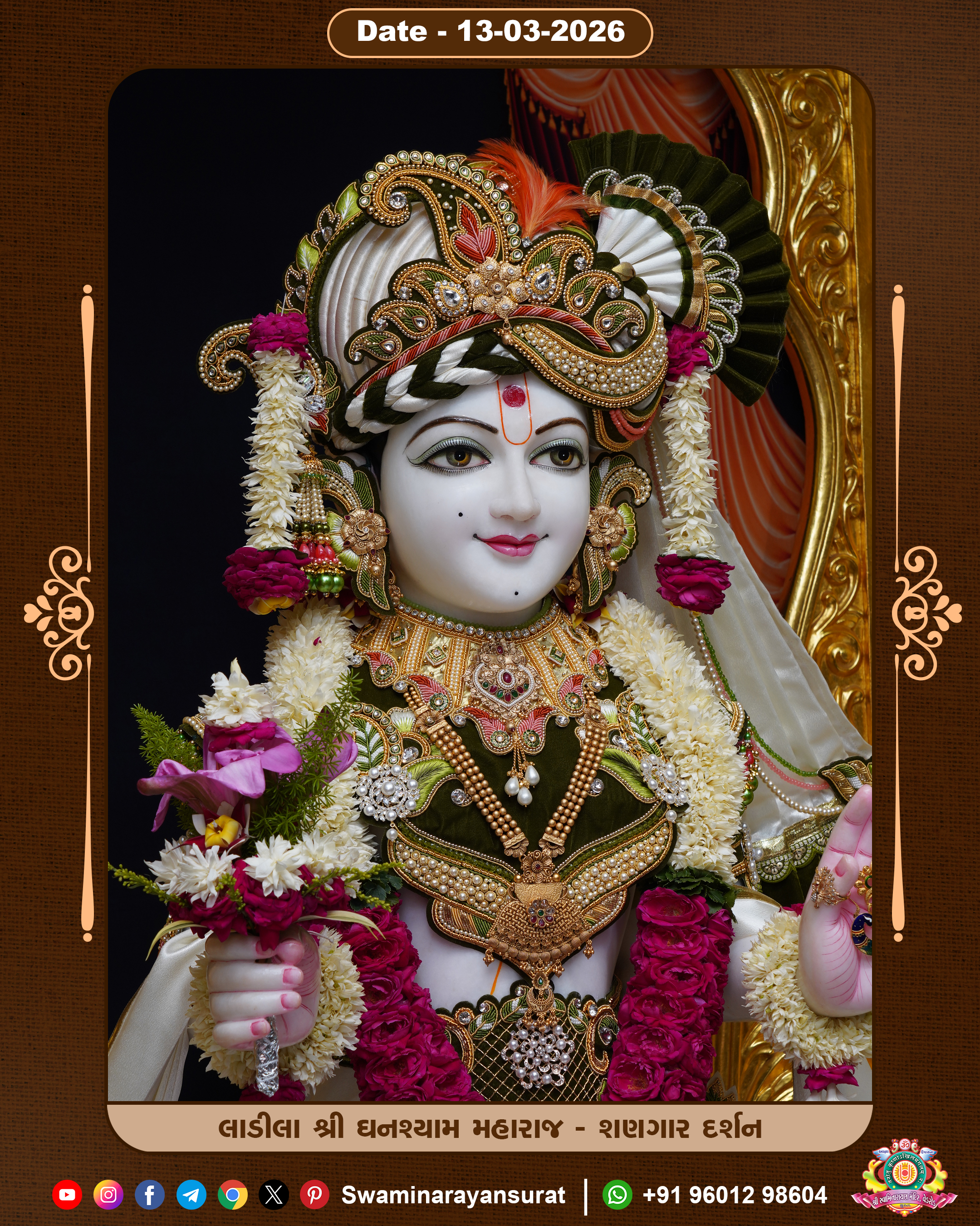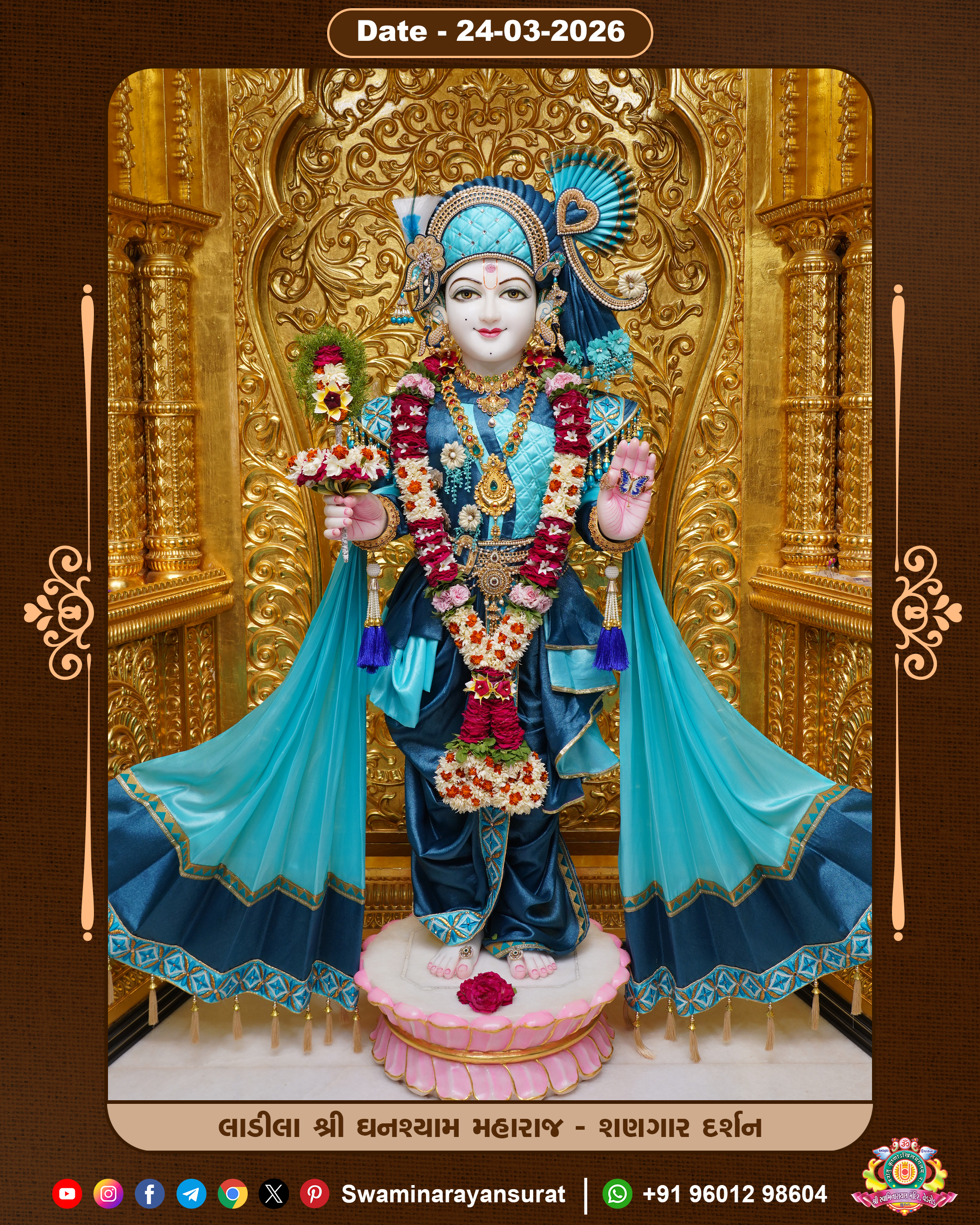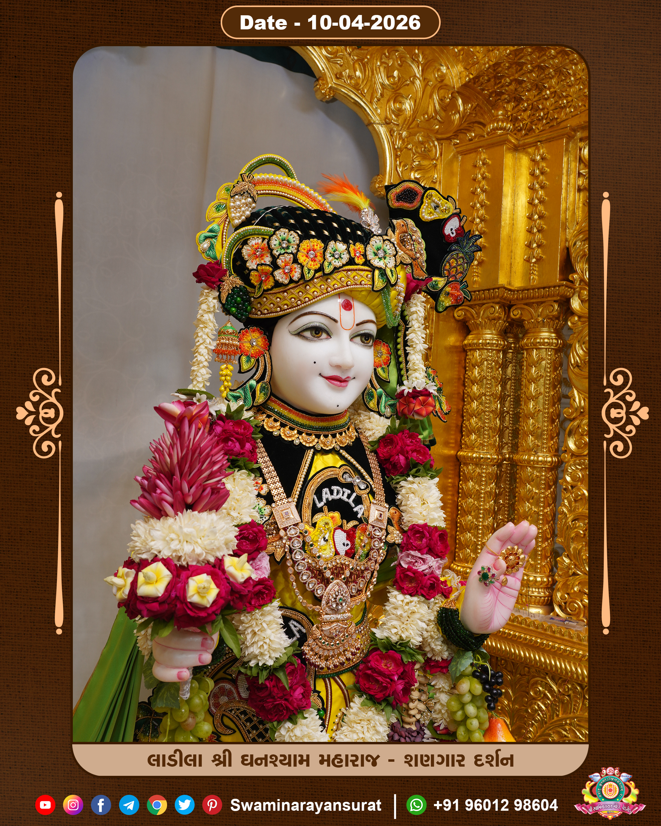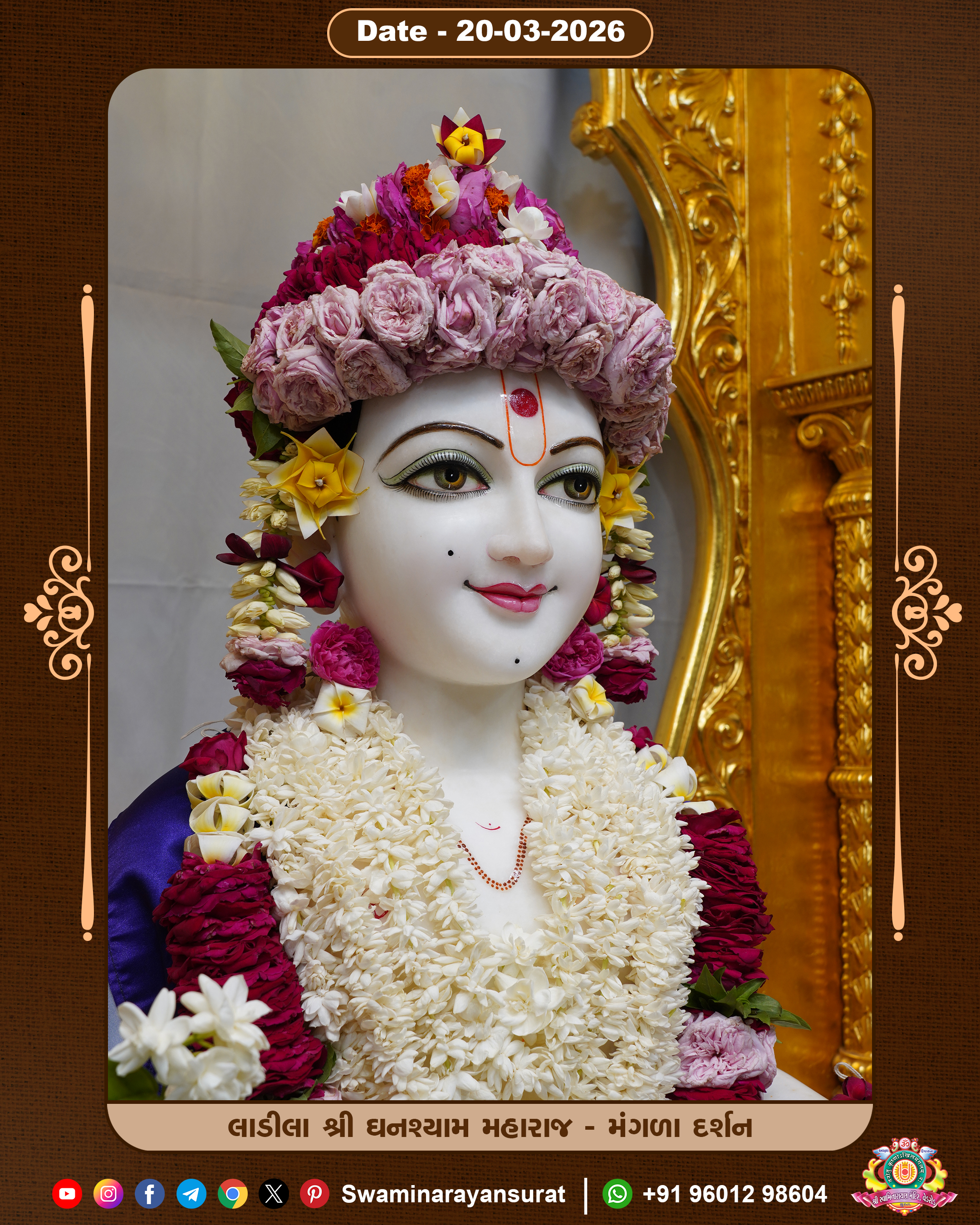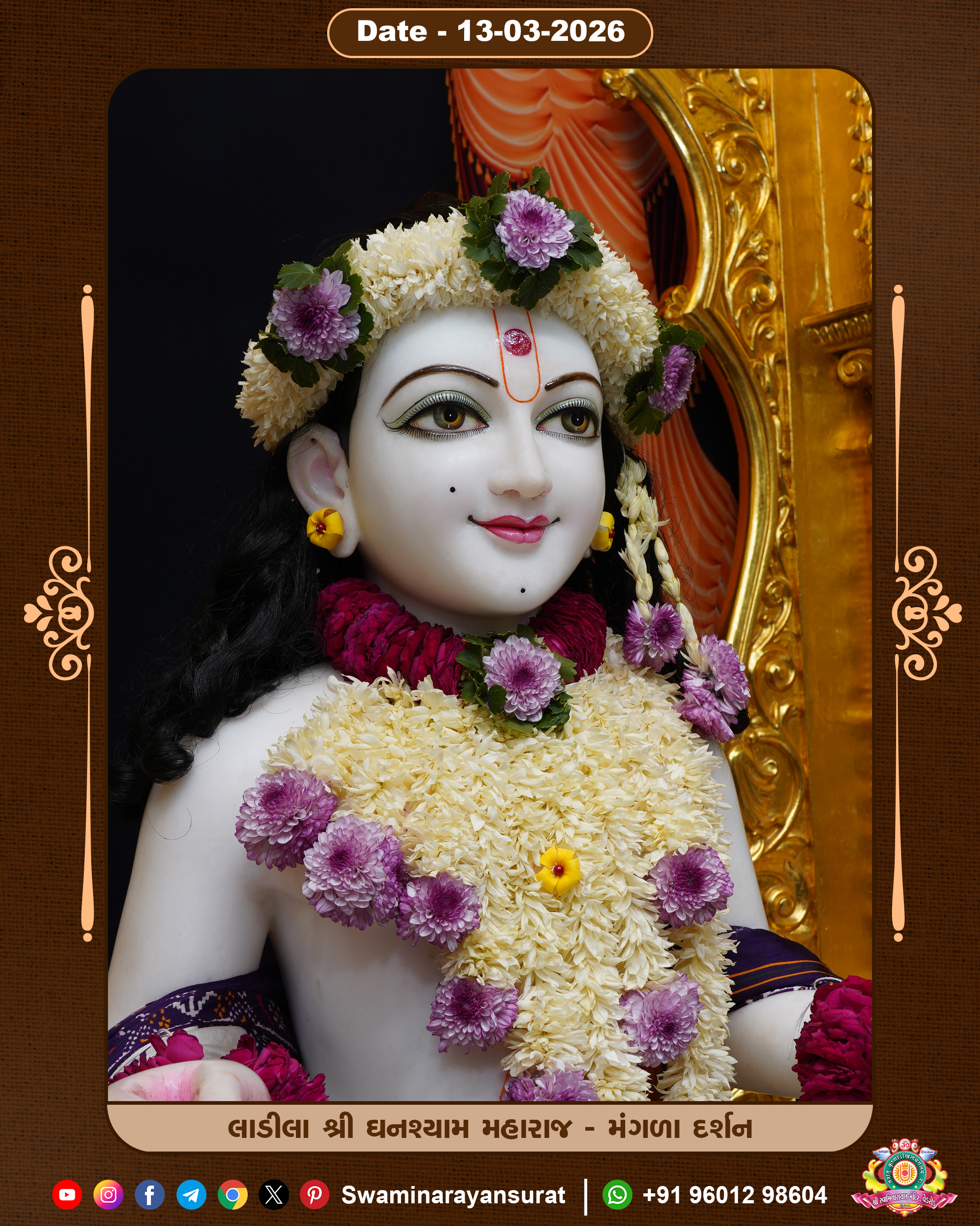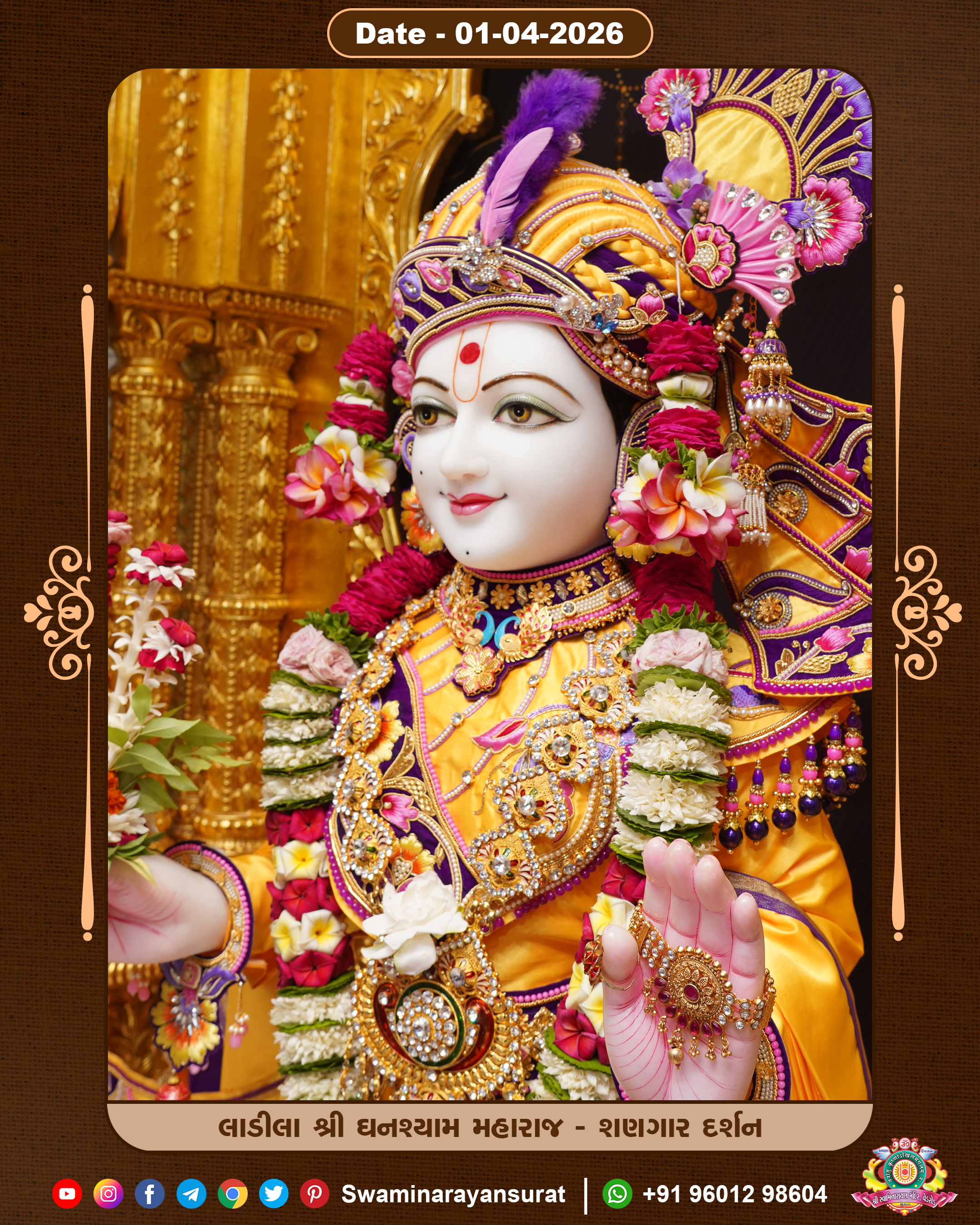 Shree Swaminarayan Temple, VedRoad is a Spiritual Organization Which falls under the region Of Vadtal Temple (The Headquarter Of Laxminarayan Dev Gadi). It is the First Organization Which is Constructed By Pink Stone With Beautiful and Marvellous Carving in Surat Of Swaminarayan Sampraday, Vadtal desh Which is increasing Pride & Prestige of Surat City, This temple contains One Main Shrine under which the idol of Ladila Shree Ghanshyam Maharaj is installed. P. Pu. Sadguru Shree Prabhucharandasji Swami is the Creator of this divine Organization. By the Several Activities & appearance Many devotees feels Easy in difficult Circumstances. He with his approx. 15 Saints & Devotees does Several Social & Spiritual Activities to fulfill the goal of Swaminarayan Sampraday, to do Worship with religious practices.