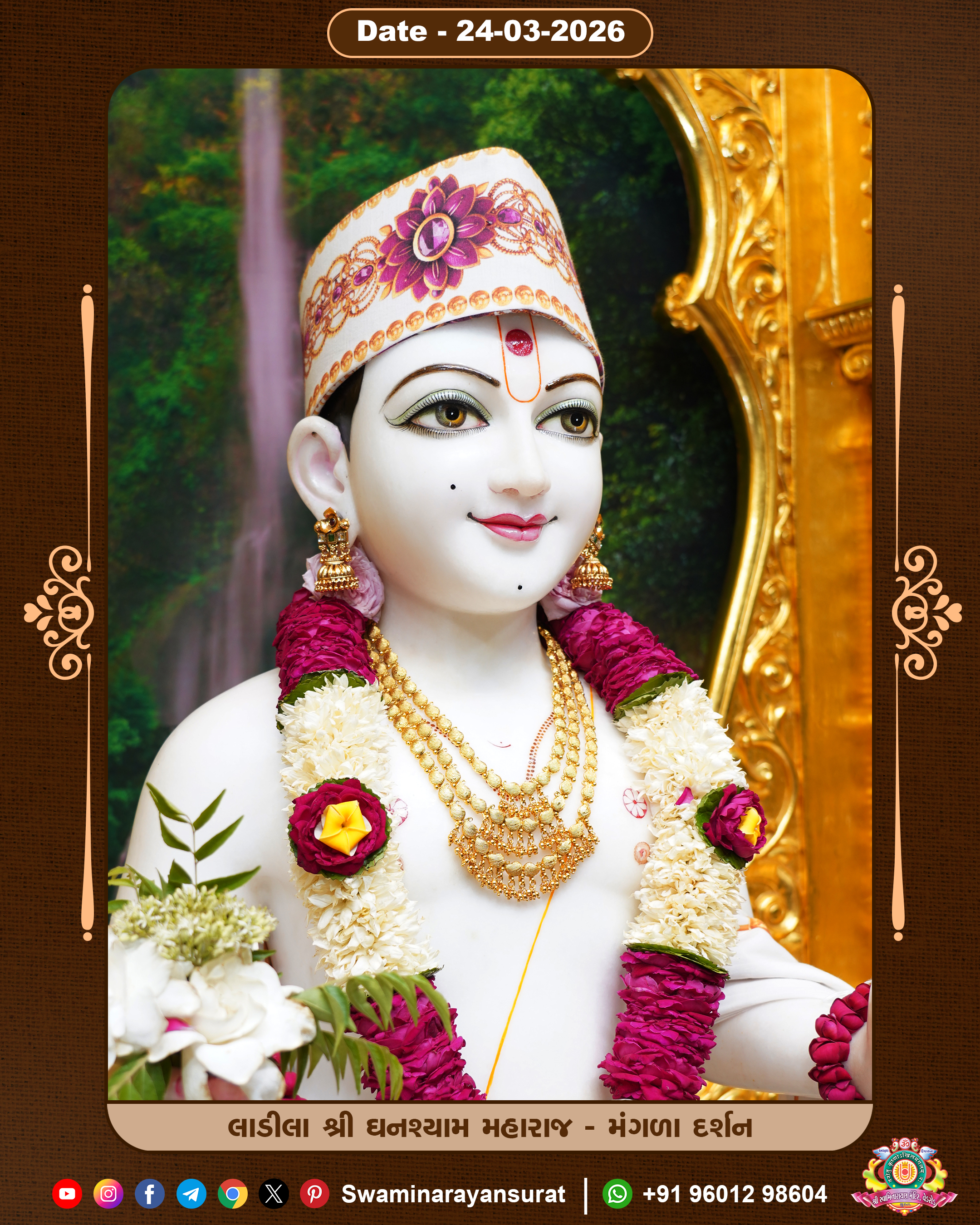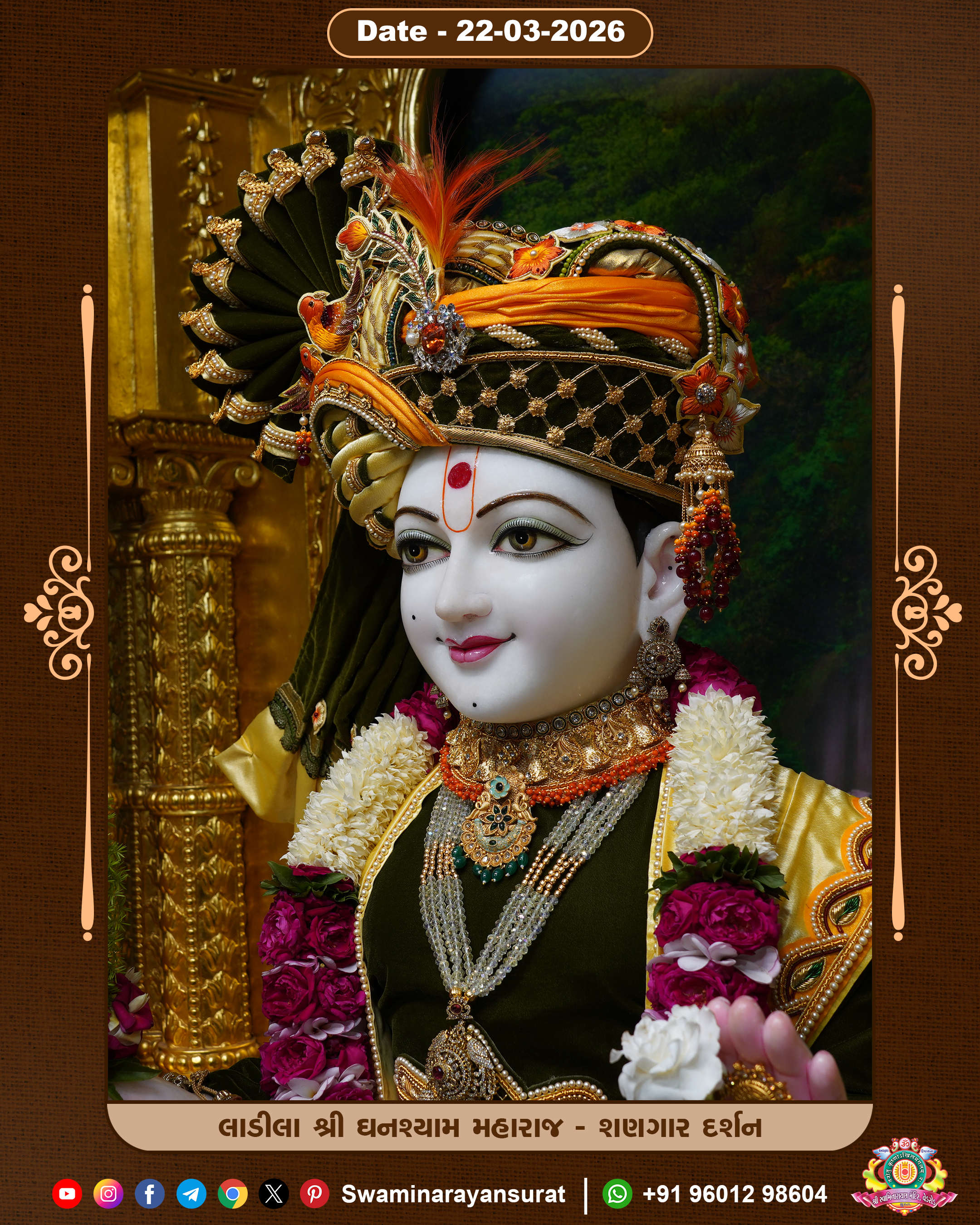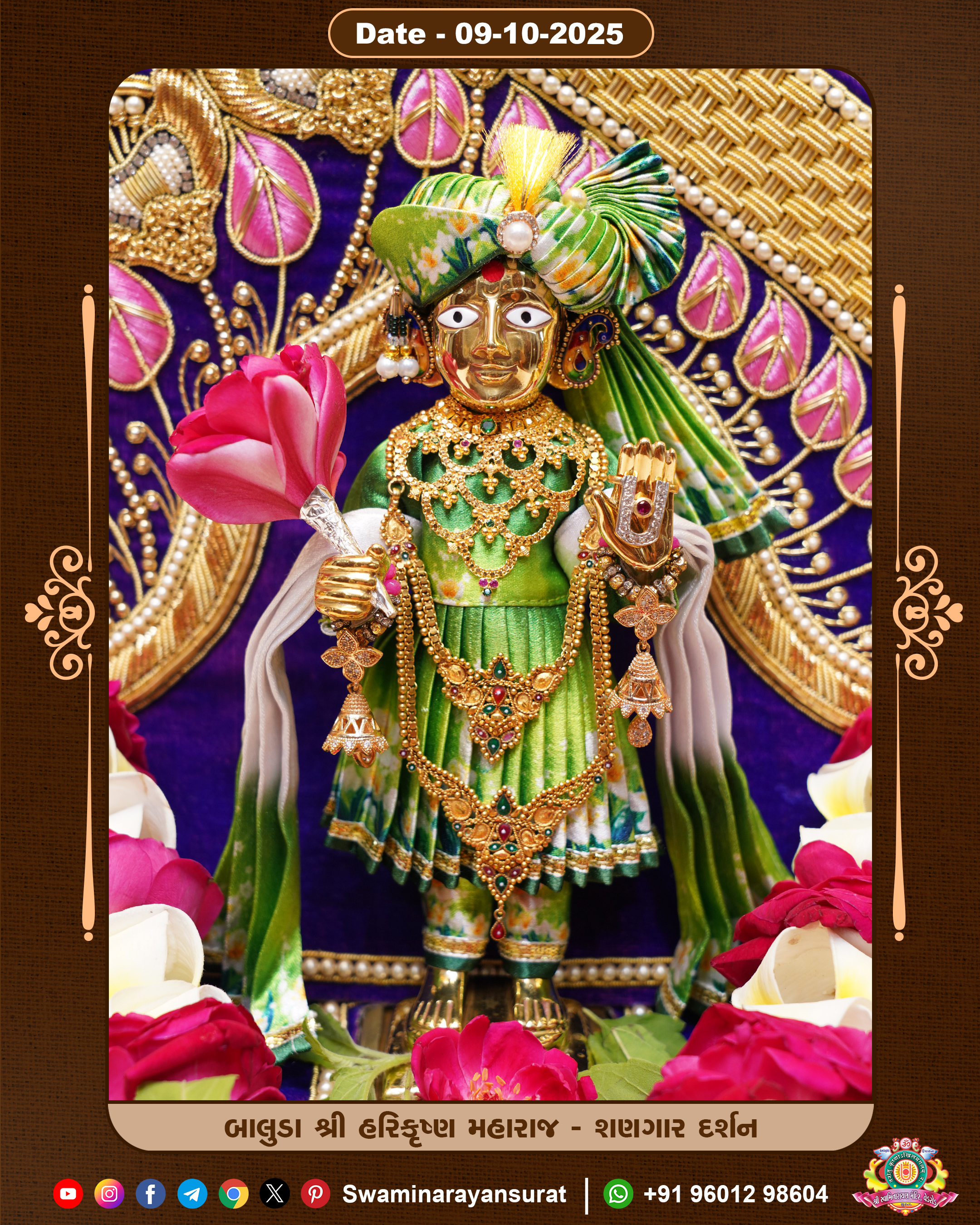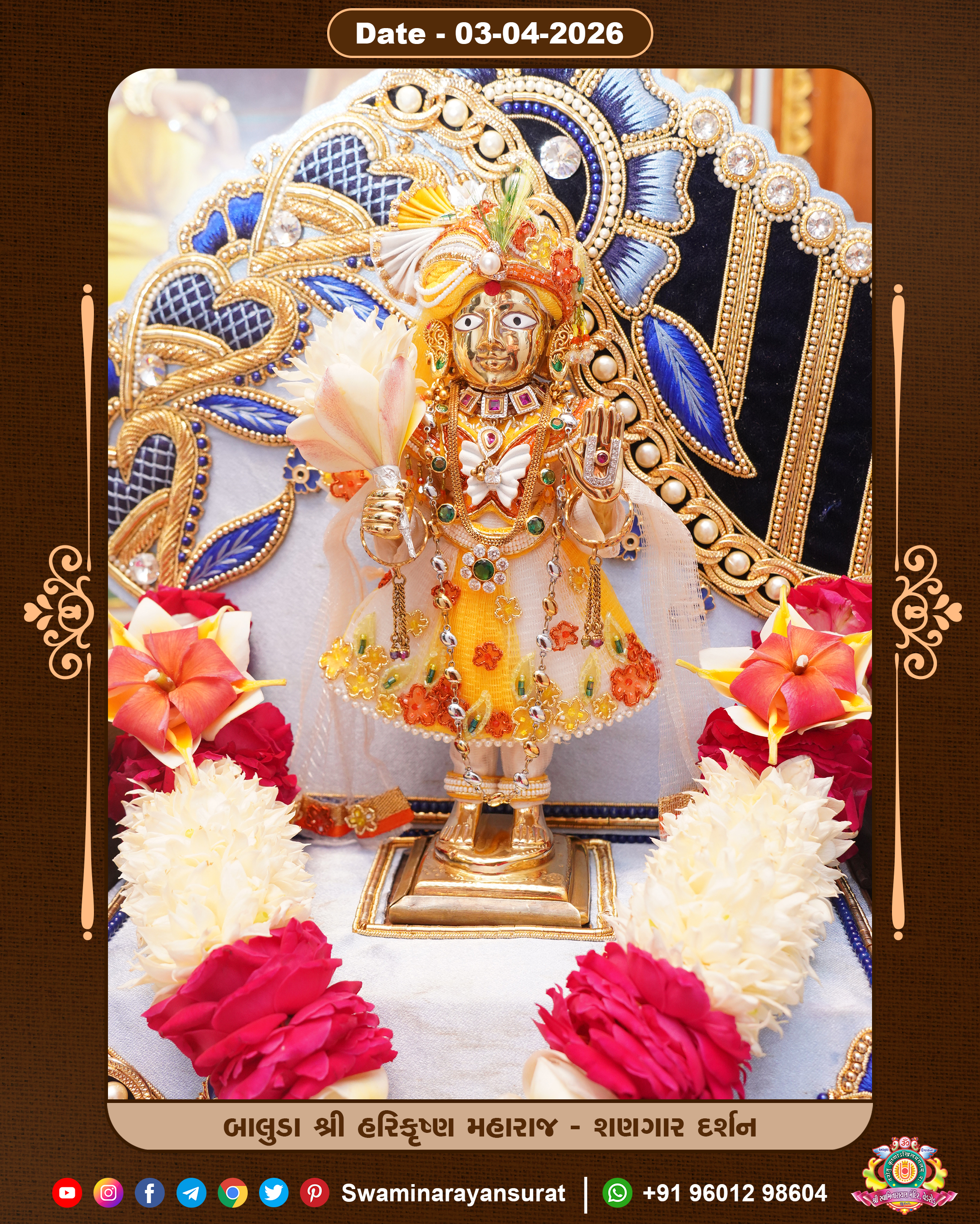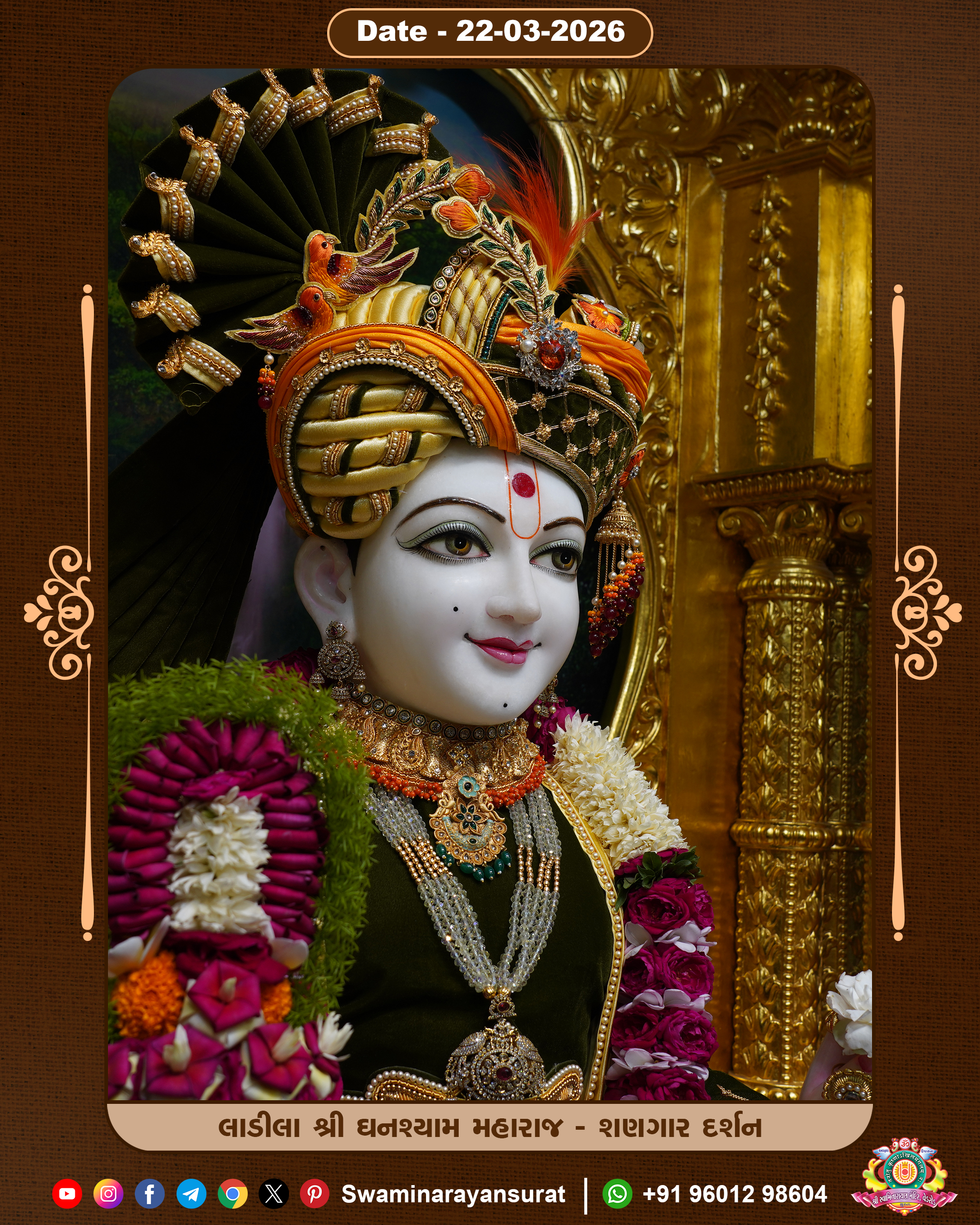 Shree Swaminarayan Temple, VedRoad is a Spiritual Organization Which falls under the region Of Vadtal Temple (The Headquarter Of Laxminarayan Dev Gadi). It is the First Organization Which is Constructed By Pink Stone With Beautiful and Marvellous Carving in Surat Of Swaminarayan Sampraday, Vadtal desh Which is increasing Pride & Prestige of Surat City, This temple contains One Main Shrine under which the idol of Ladila Shree Ghanshyam Maharaj is installed. P. Pu. Sadguru Shree Prabhucharandasji Swami is the Creator of this divine Organization. By the Several Activities & appearance Many devotees feels Easy in difficult Circumstances. He with his approx. 15 Saints & Devotees does Several Social & Spiritual Activities to fulfill the goal of Swaminarayan Sampraday, to do Worship with religious practices.