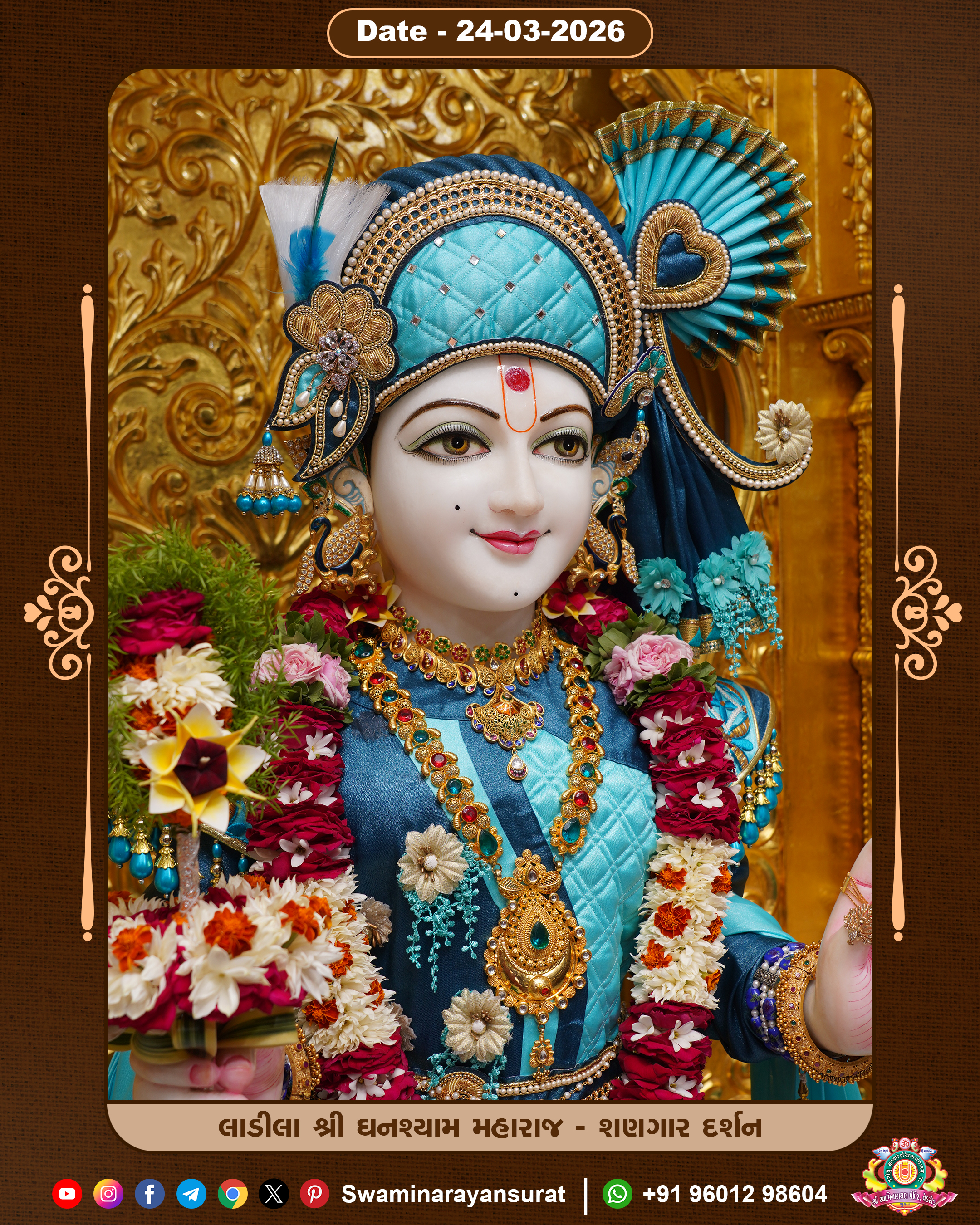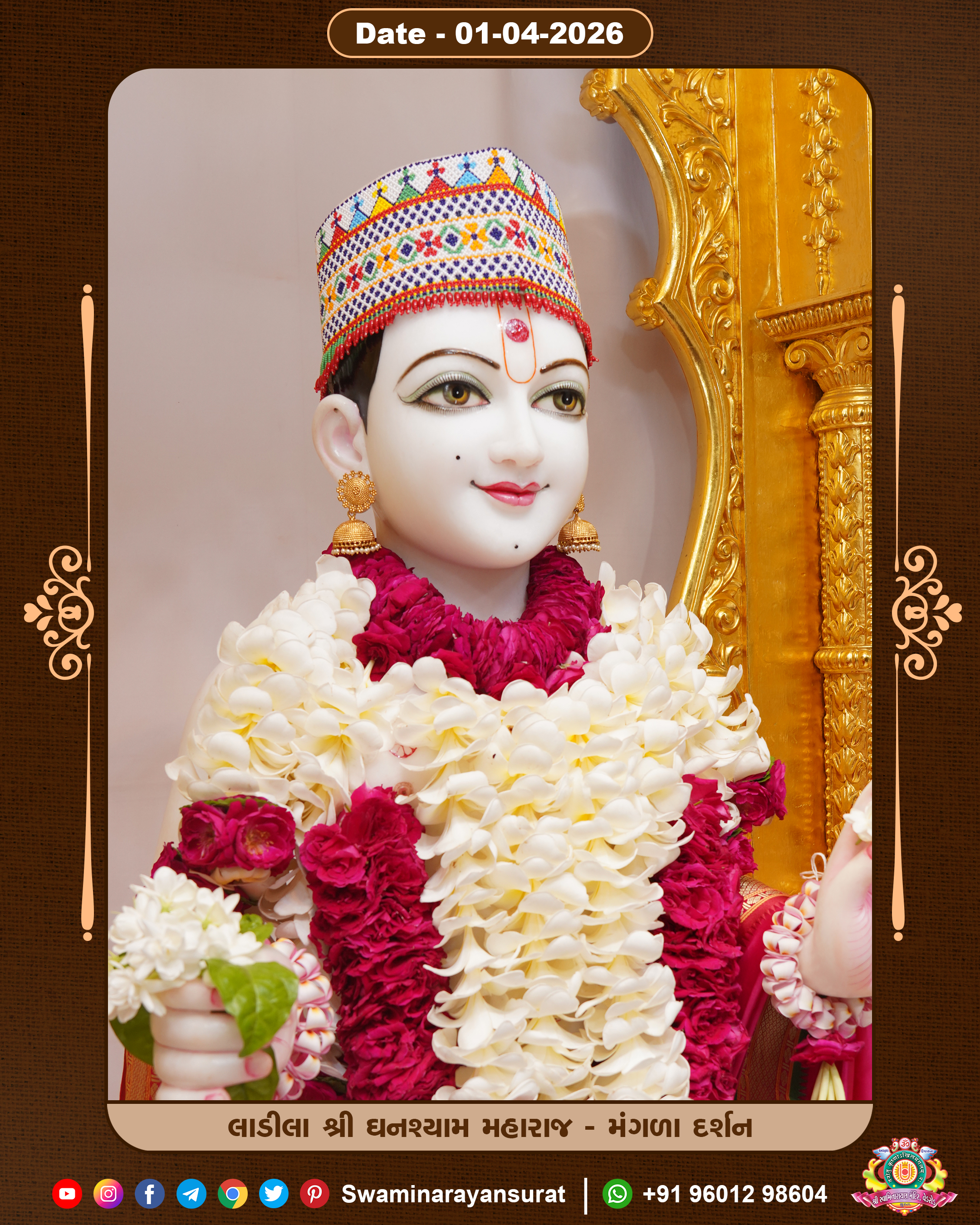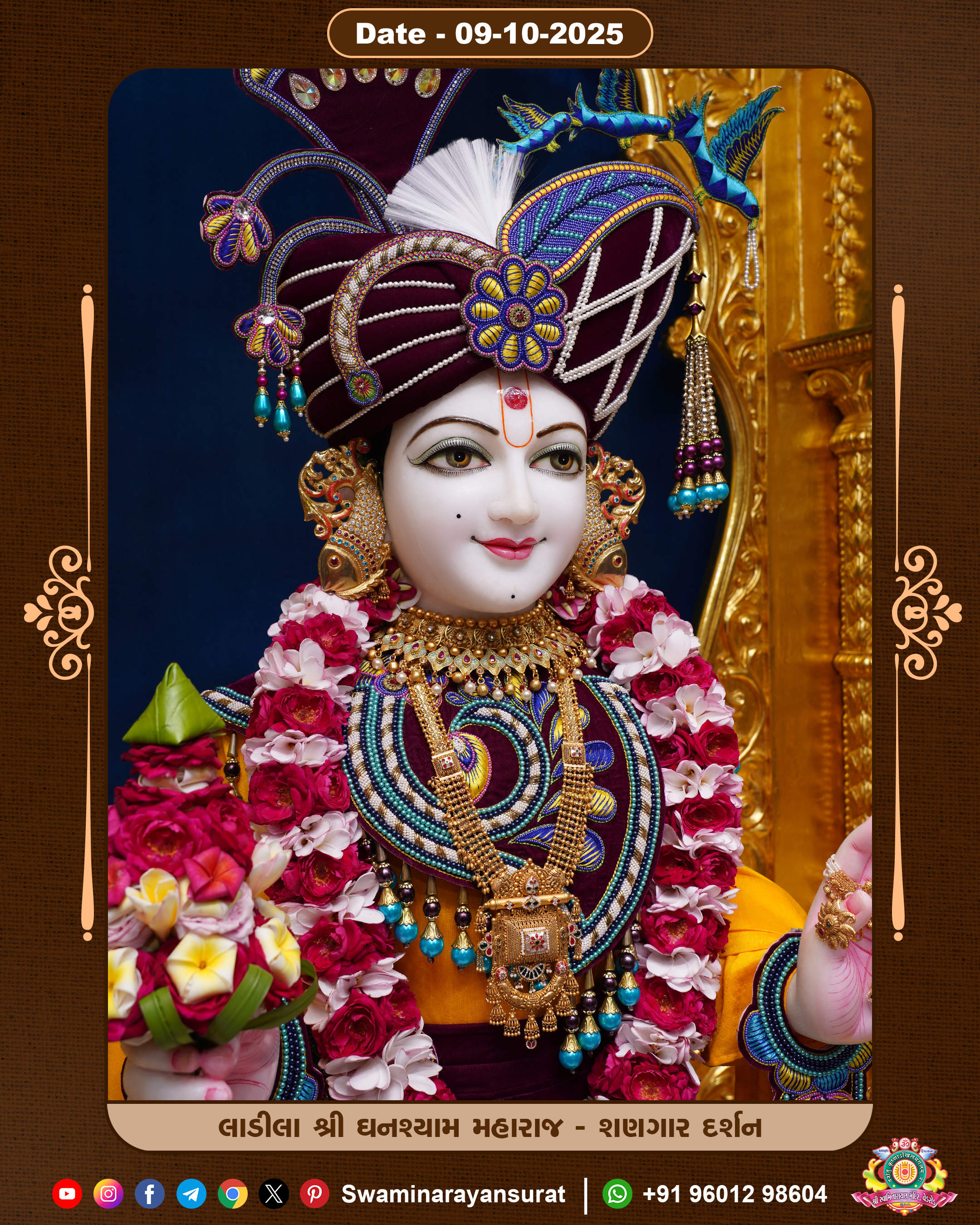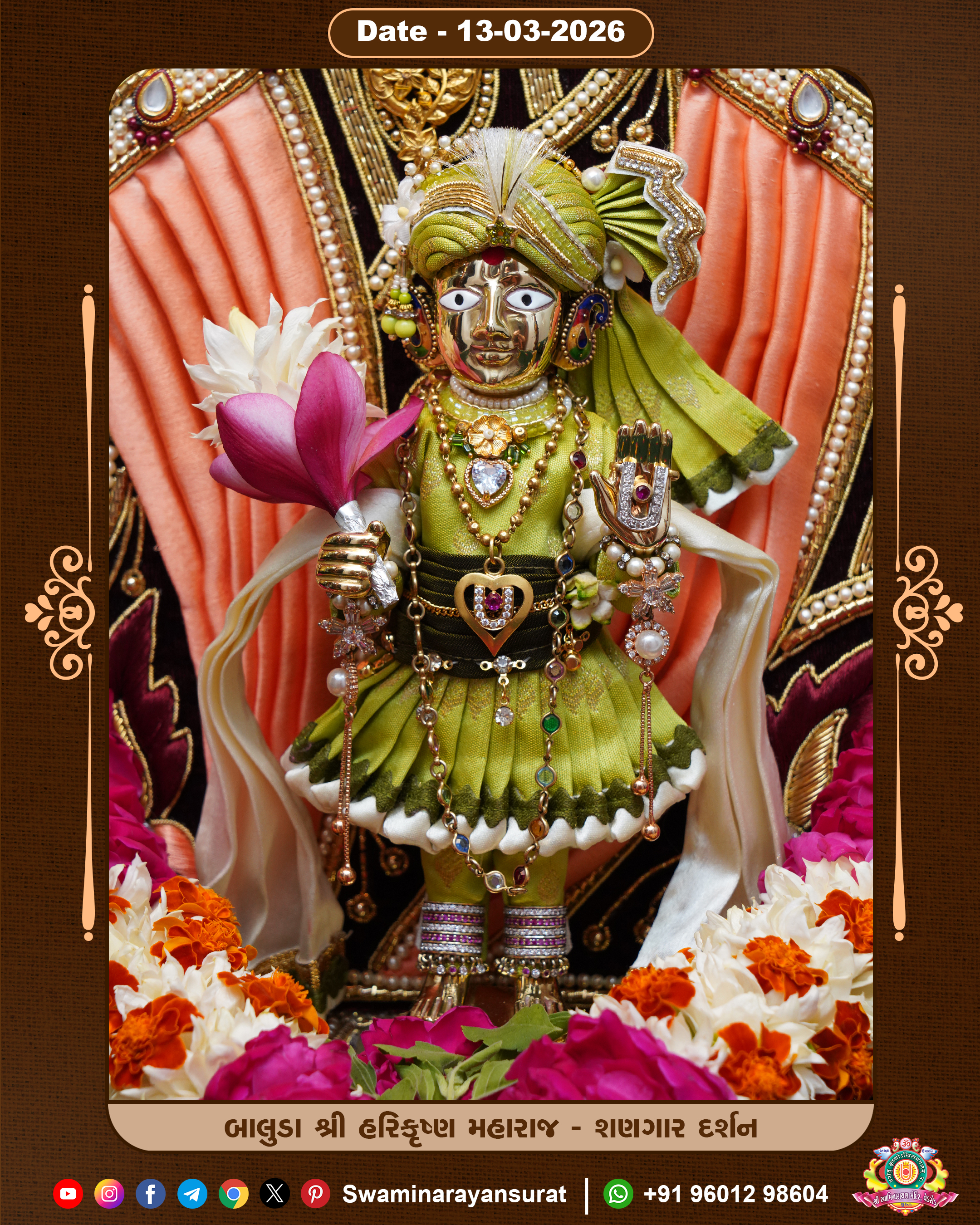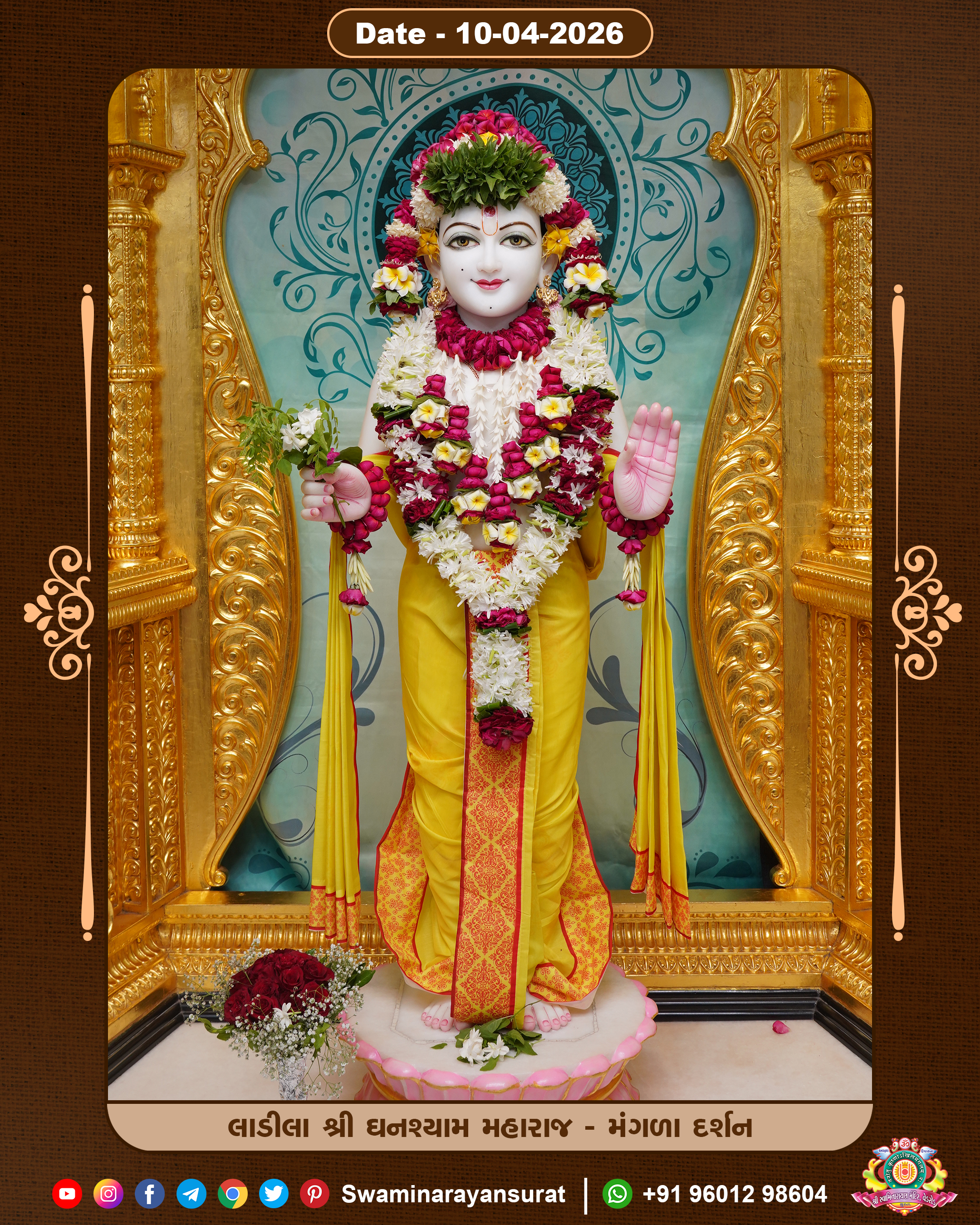 Shree Swaminarayan Temple, VedRoad is a Spiritual Organization Which falls under the region Of Vadtal Temple (The Headquarter Of Laxminarayan Dev Gadi). It is the First Organization Which is Constructed By Pink Stone With Beautiful and Marvellous Carving in Surat Of Swaminarayan Sampraday, Vadtal desh Which is increasing Pride & Prestige of Surat City, This temple contains One Main Shrine under which the idol of Ladila Shree Ghanshyam Maharaj is installed. P. Pu. Sadguru Shree Prabhucharandasji Swami is the Creator of this divine Organization. By the Several Activities & appearance Many devotees feels Easy in difficult Circumstances. He with his approx. 15 Saints & Devotees does Several Social & Spiritual Activities to fulfill the goal of Swaminarayan Sampraday, to do Worship with religious practices.