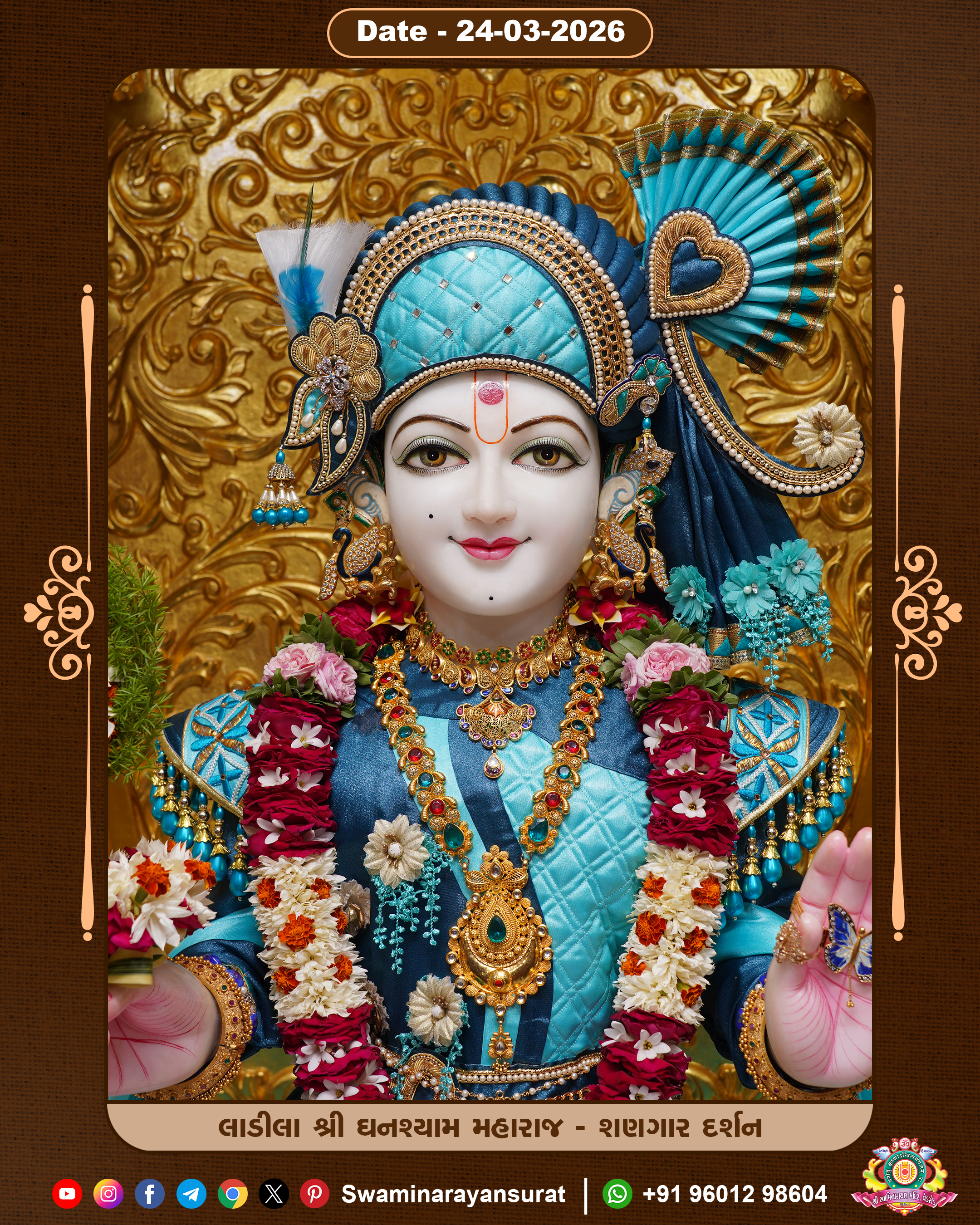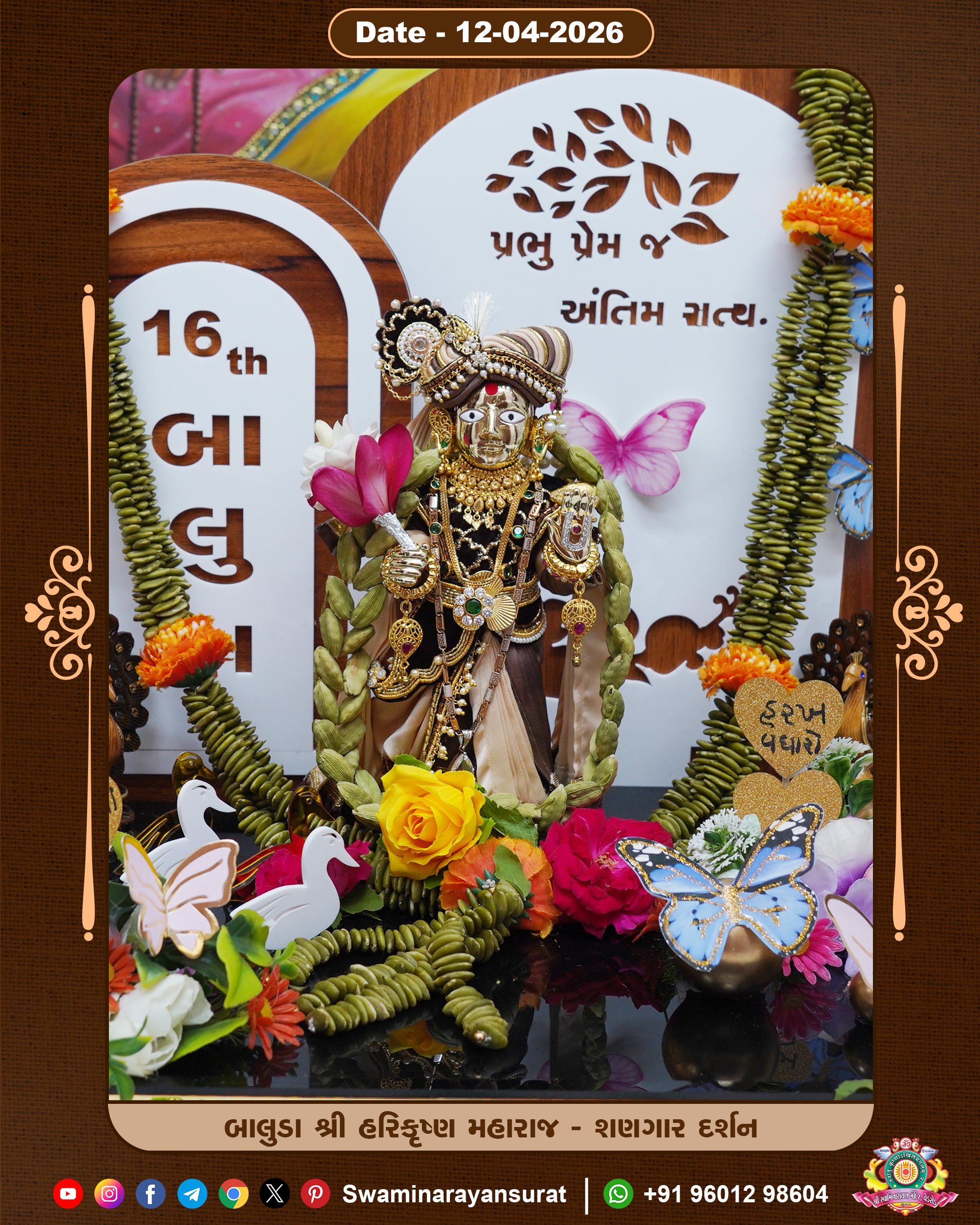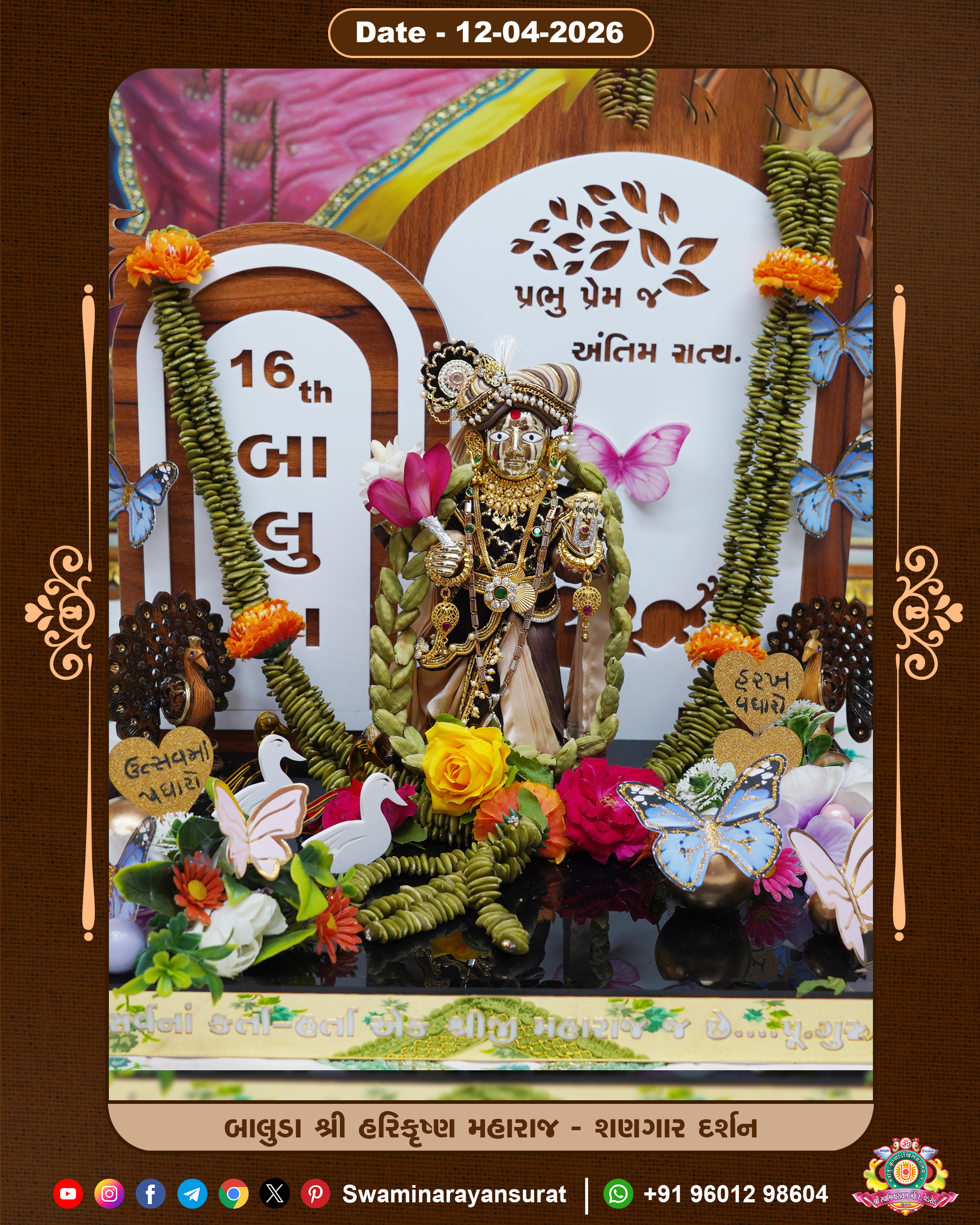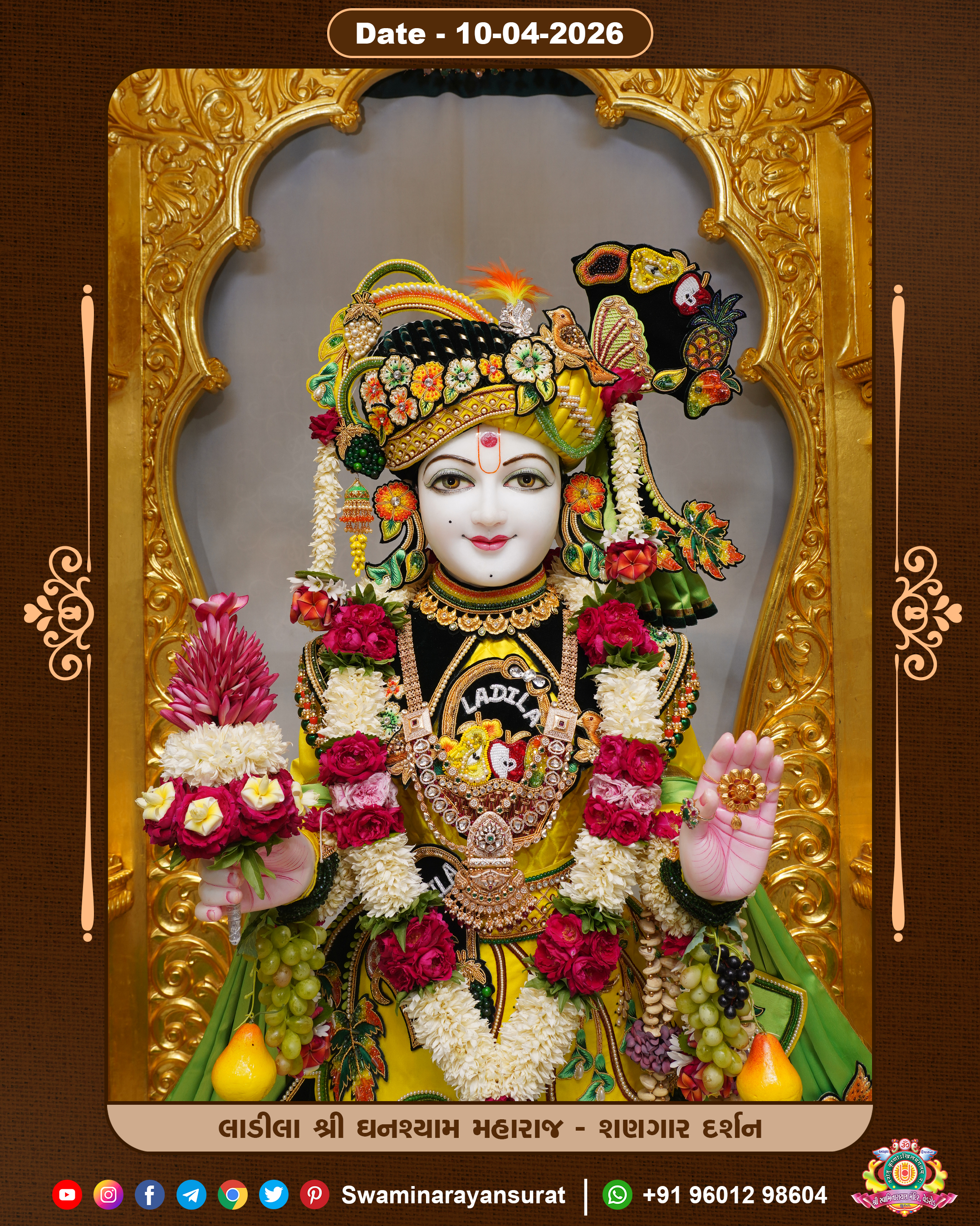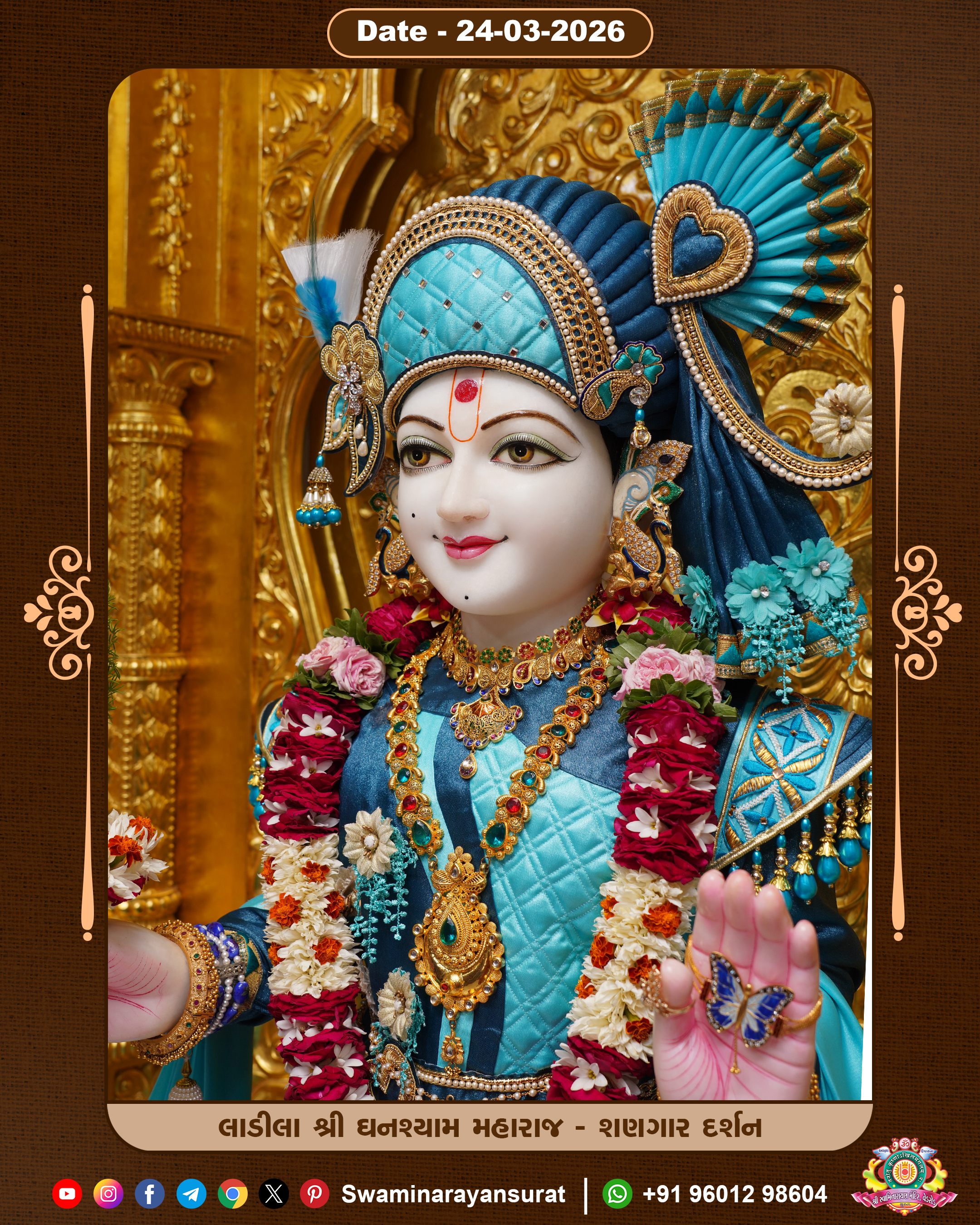 Shree Swaminarayan Temple, VedRoad is a Spiritual Organization Which falls under the region Of Vadtal Temple (The Headquarter Of Laxminarayan Dev Gadi). It is the First Organization Which is Constructed By Pink Stone With Beautiful and Marvellous Carving in Surat Of Swaminarayan Sampraday, Vadtal desh Which is increasing Pride & Prestige of Surat City, This temple contains One Main Shrine under which the idol of Ladila Shree Ghanshyam Maharaj is installed. P. Pu. Sadguru Shree Prabhucharandasji Swami is the Creator of this divine Organization. By the Several Activities & appearance Many devotees feels Easy in difficult Circumstances. He with his approx. 15 Saints & Devotees does Several Social & Spiritual Activities to fulfill the goal of Swaminarayan Sampraday, to do Worship with religious practices.