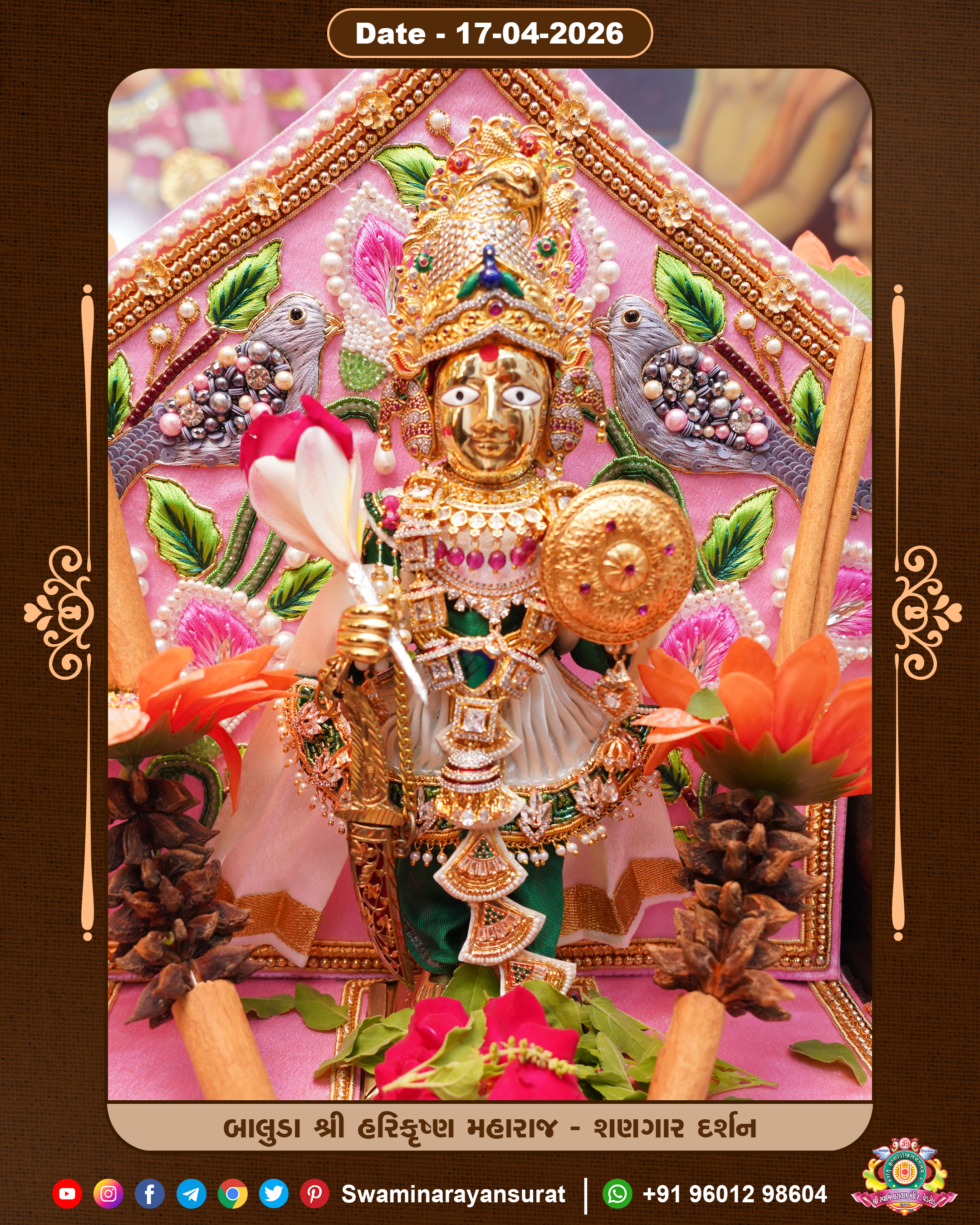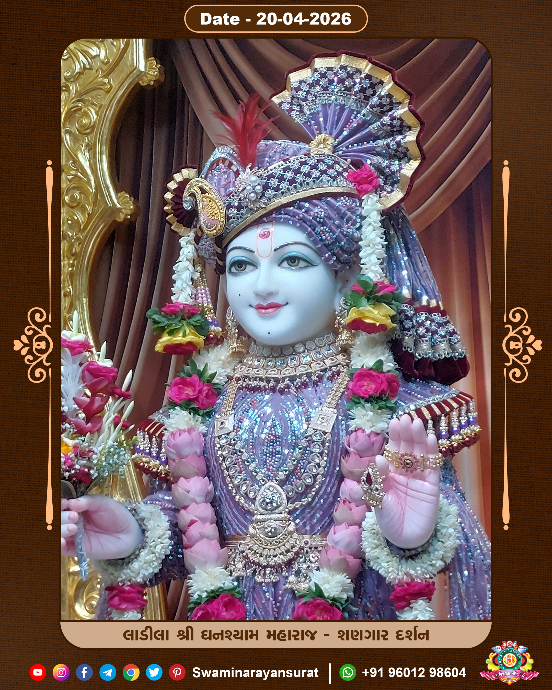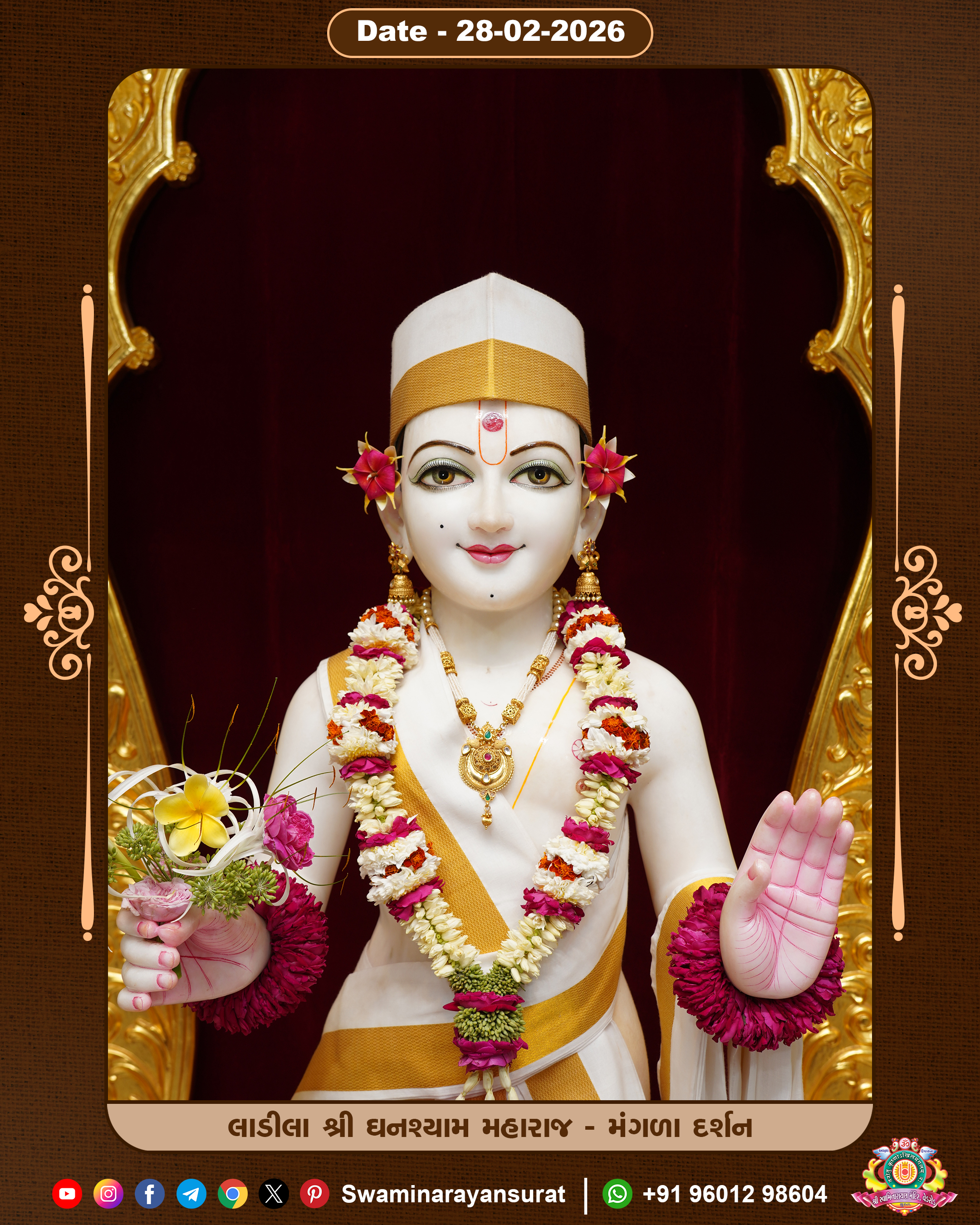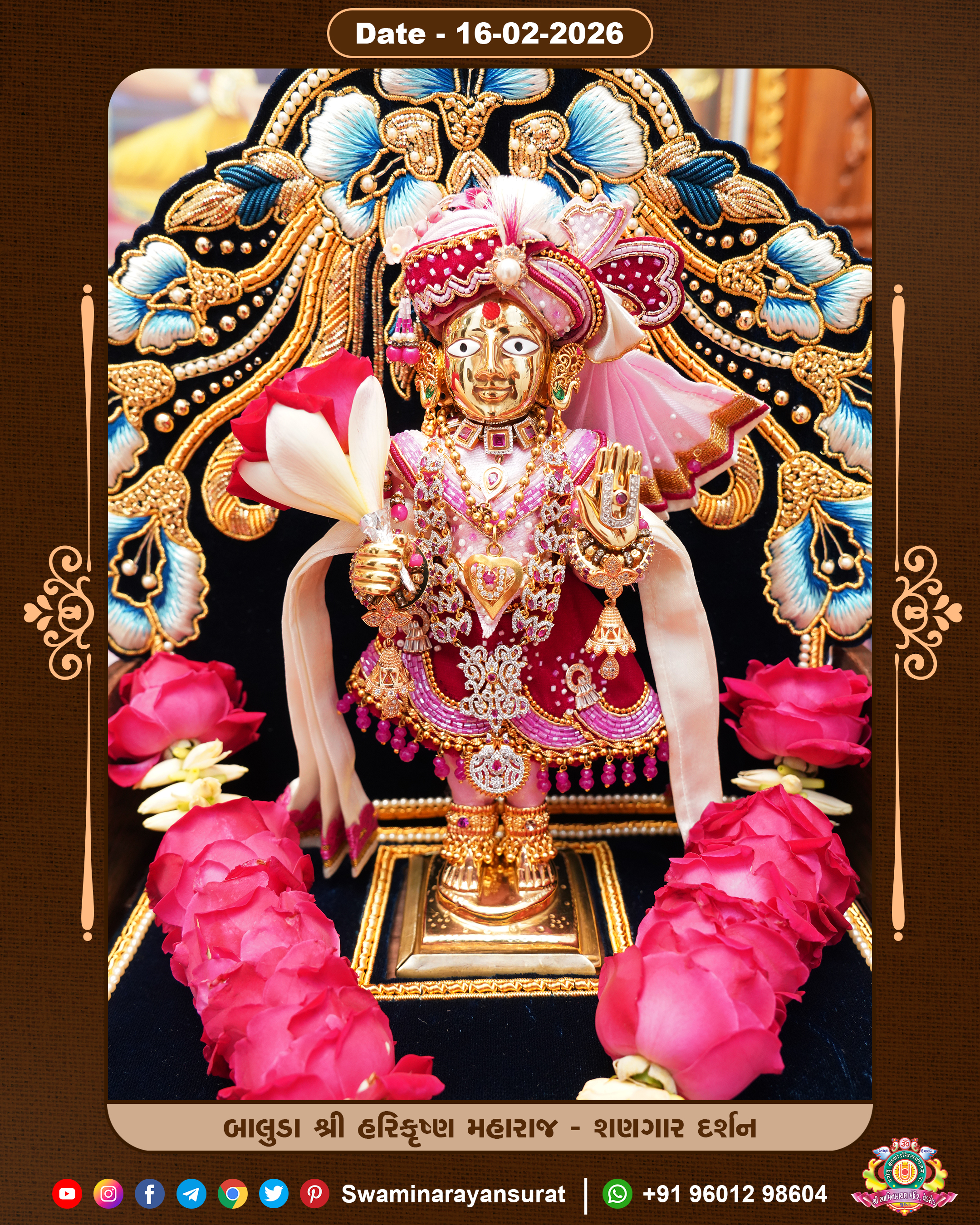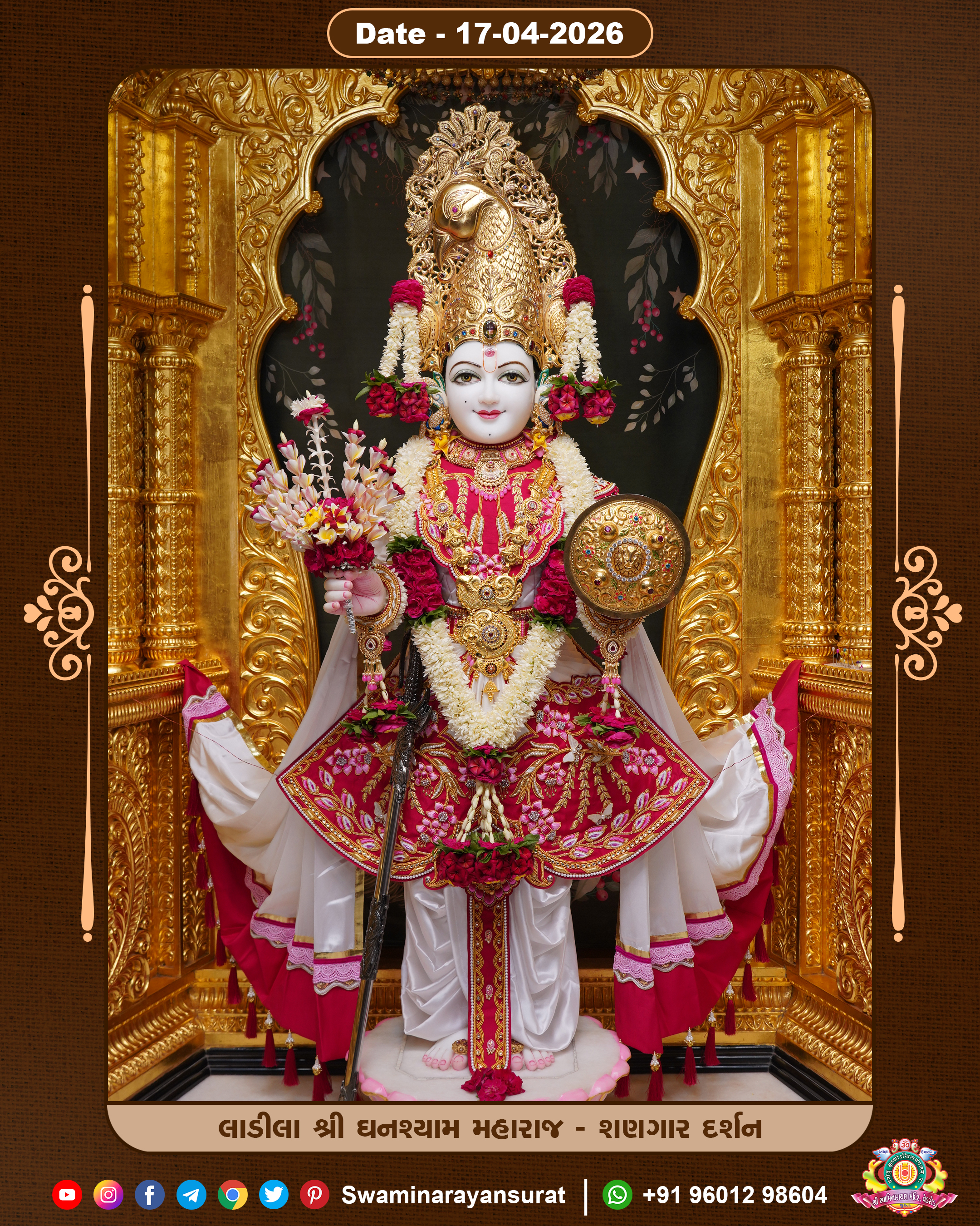 Shree Swaminarayan Temple, VedRoad is a Spiritual Organization Which falls under the region Of Vadtal Temple (The Headquarter Of Laxminarayan Dev Gadi). It is the First Organization Which is Constructed By Pink Stone With Beautiful and Marvellous Carving in Surat Of Swaminarayan Sampraday, Vadtal desh Which is increasing Pride & Prestige of Surat City, This temple contains One Main Shrine under which the idol of Ladila Shree Ghanshyam Maharaj is installed. P. Pu. Sadguru Shree Prabhucharandasji Swami is the Creator of this divine Organization. By the Several Activities & appearance Many devotees feels Easy in difficult Circumstances. He with his approx. 15 Saints & Devotees does Several Social & Spiritual Activities to fulfill the goal of Swaminarayan Sampraday, to do Worship with religious practices.