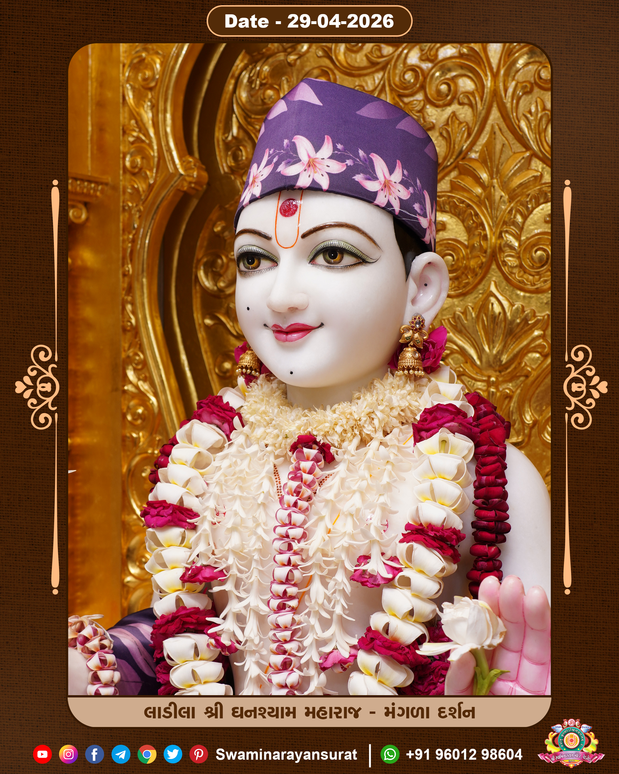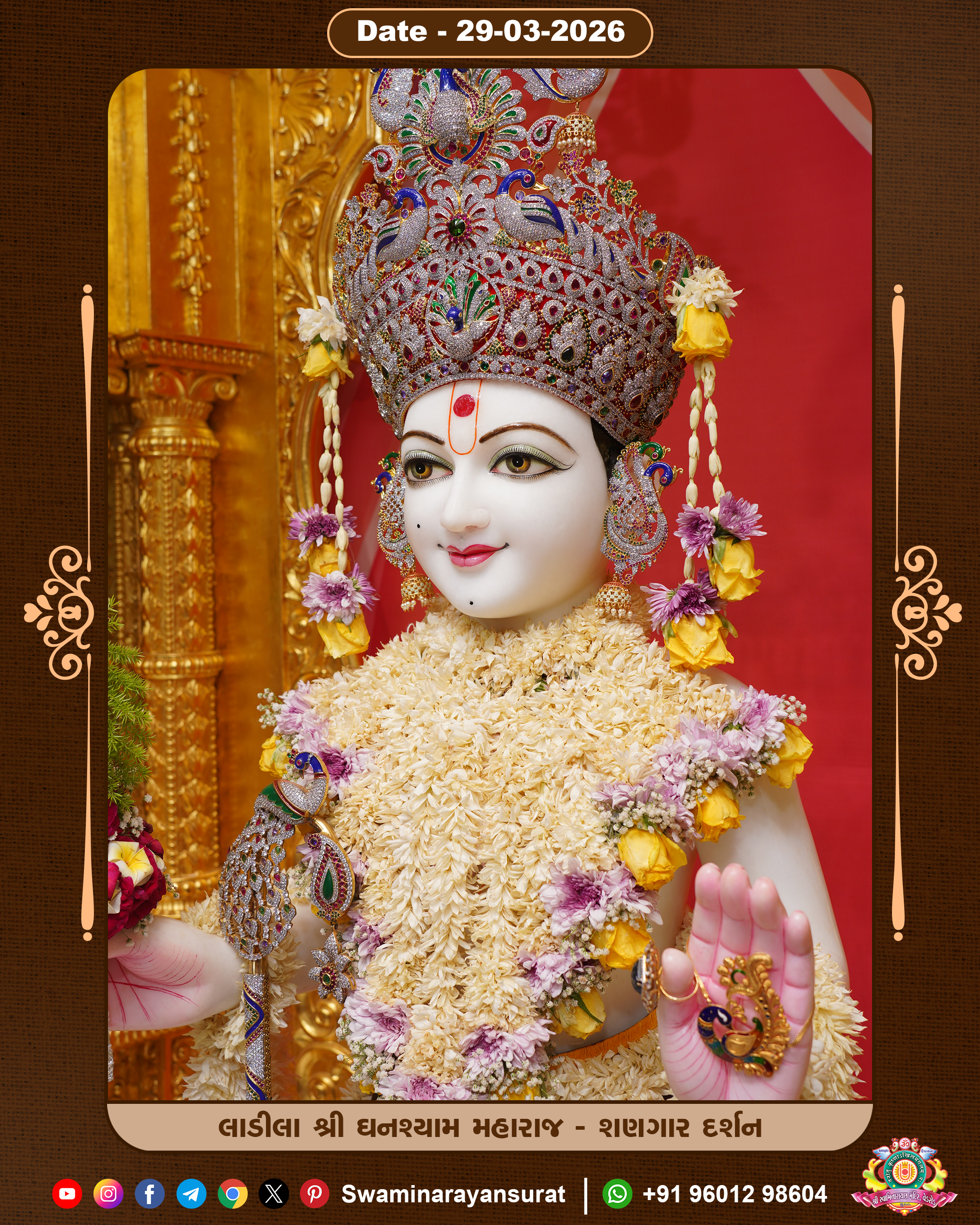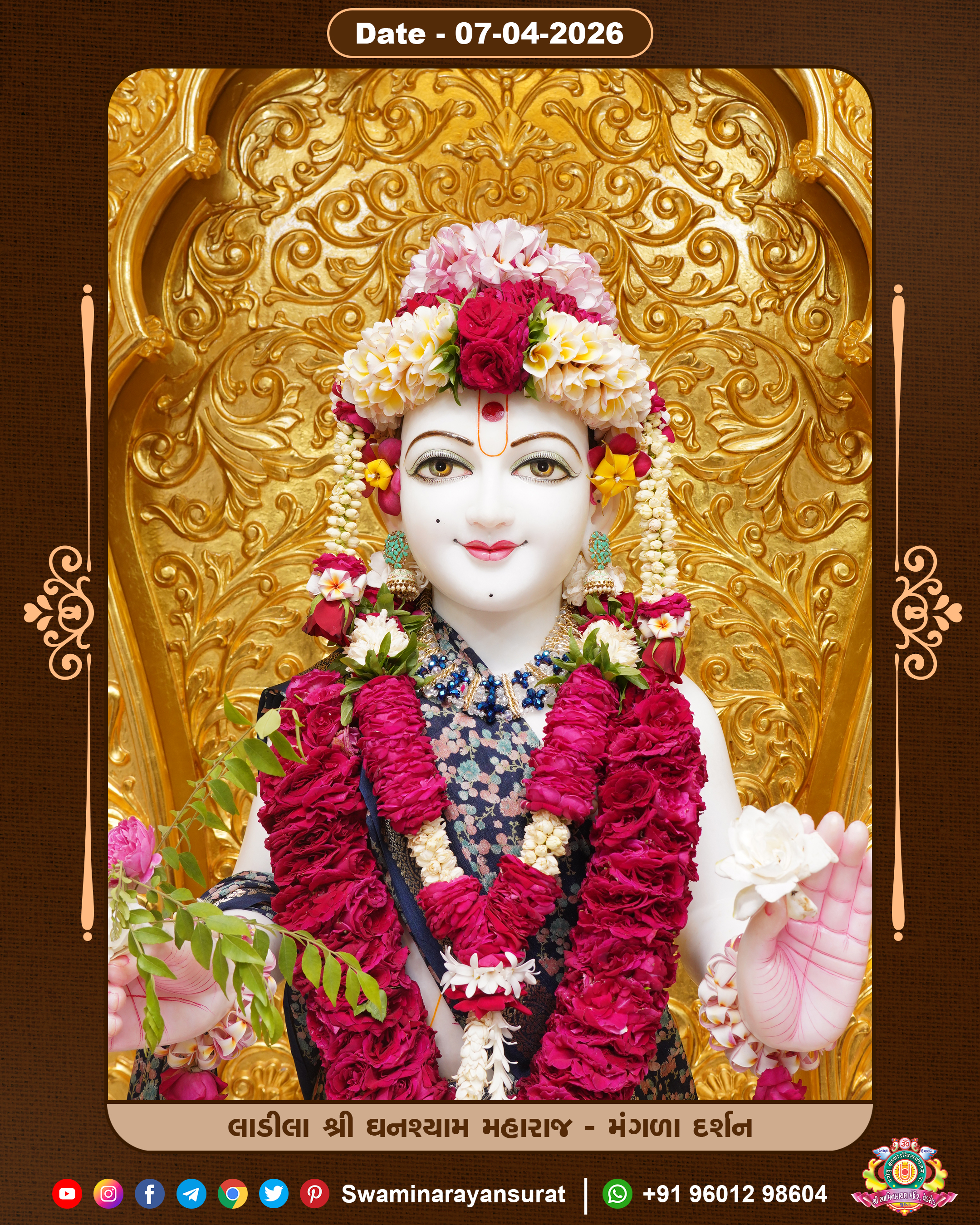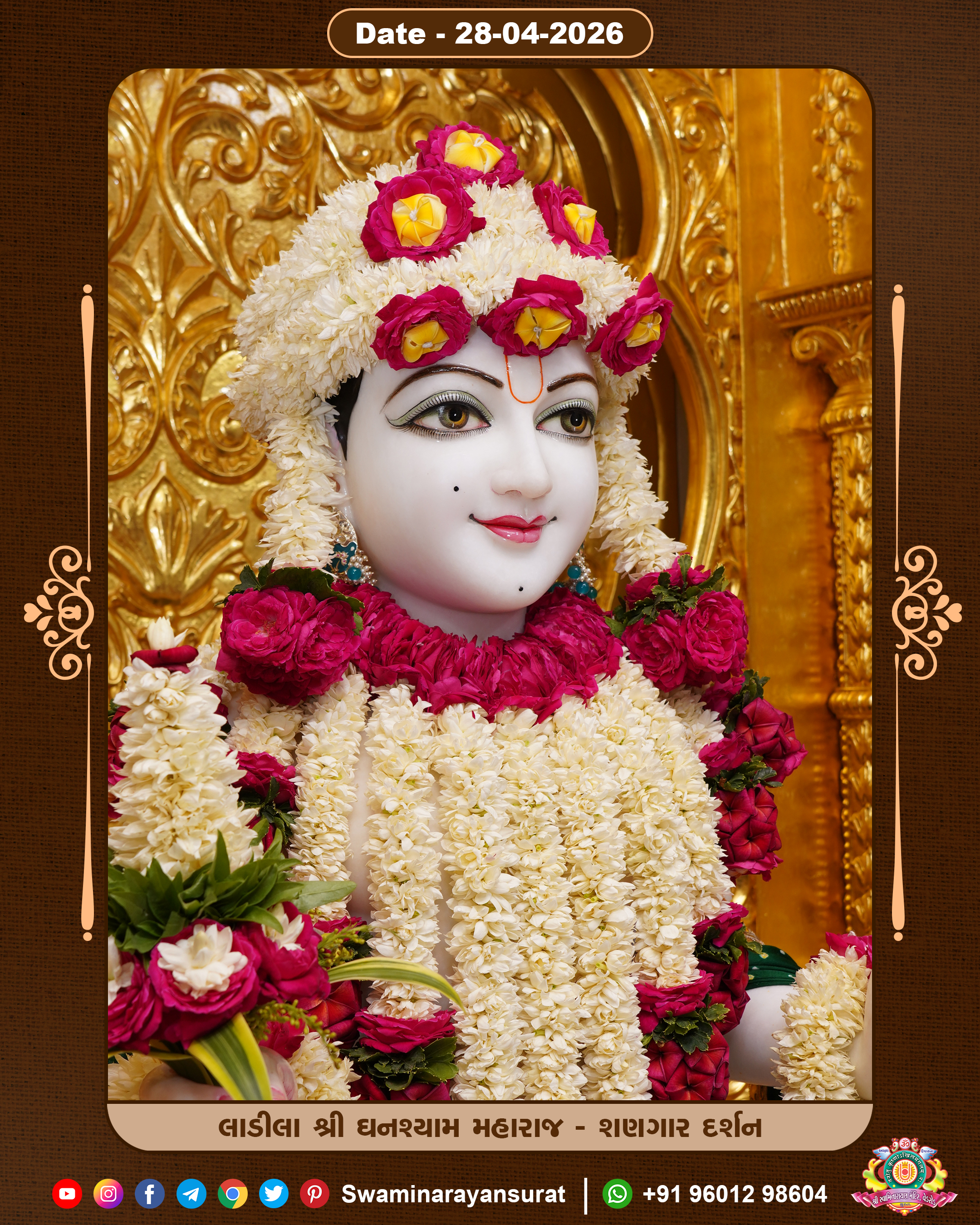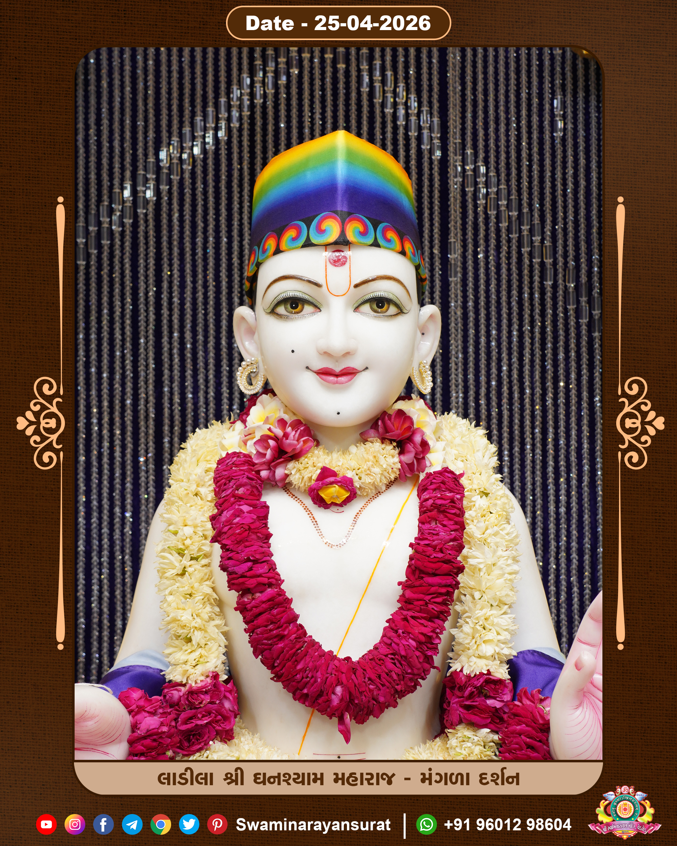 Shree Swaminarayan Temple, VedRoad is a Spiritual Organization Which falls under the region Of Vadtal Temple (The Headquarter Of Laxminarayan Dev Gadi). It is the First Organization Which is Constructed By Pink Stone With Beautiful and Marvellous Carving in Surat Of Swaminarayan Sampraday, Vadtal desh Which is increasing Pride & Prestige of Surat City, This temple contains One Main Shrine under which the idol of Ladila Shree Ghanshyam Maharaj is installed. P. Pu. Sadguru Shree Prabhucharandasji Swami is the Creator of this divine Organization. By the Several Activities & appearance Many devotees feels Easy in difficult Circumstances. He with his approx. 15 Saints & Devotees does Several Social & Spiritual Activities to fulfill the goal of Swaminarayan Sampraday, to do Worship with religious practices.