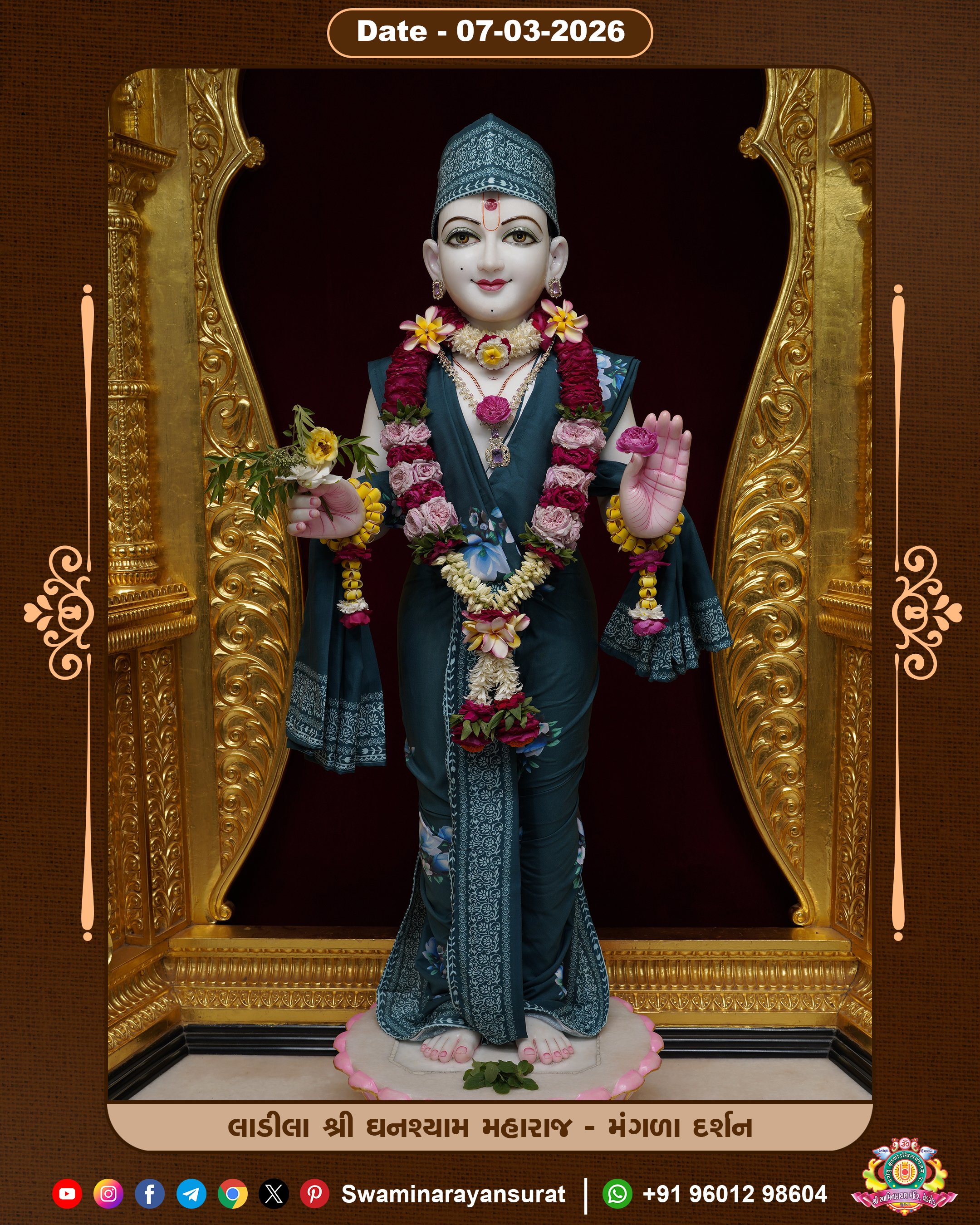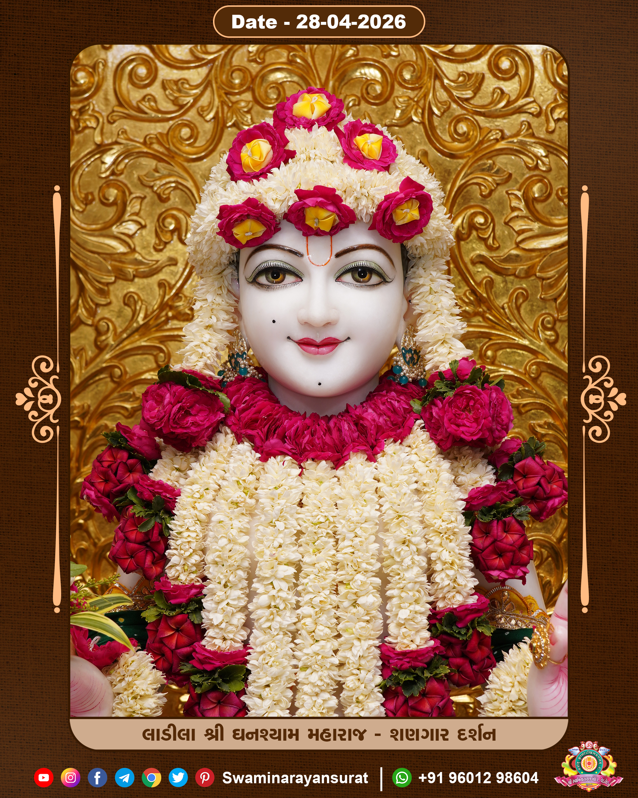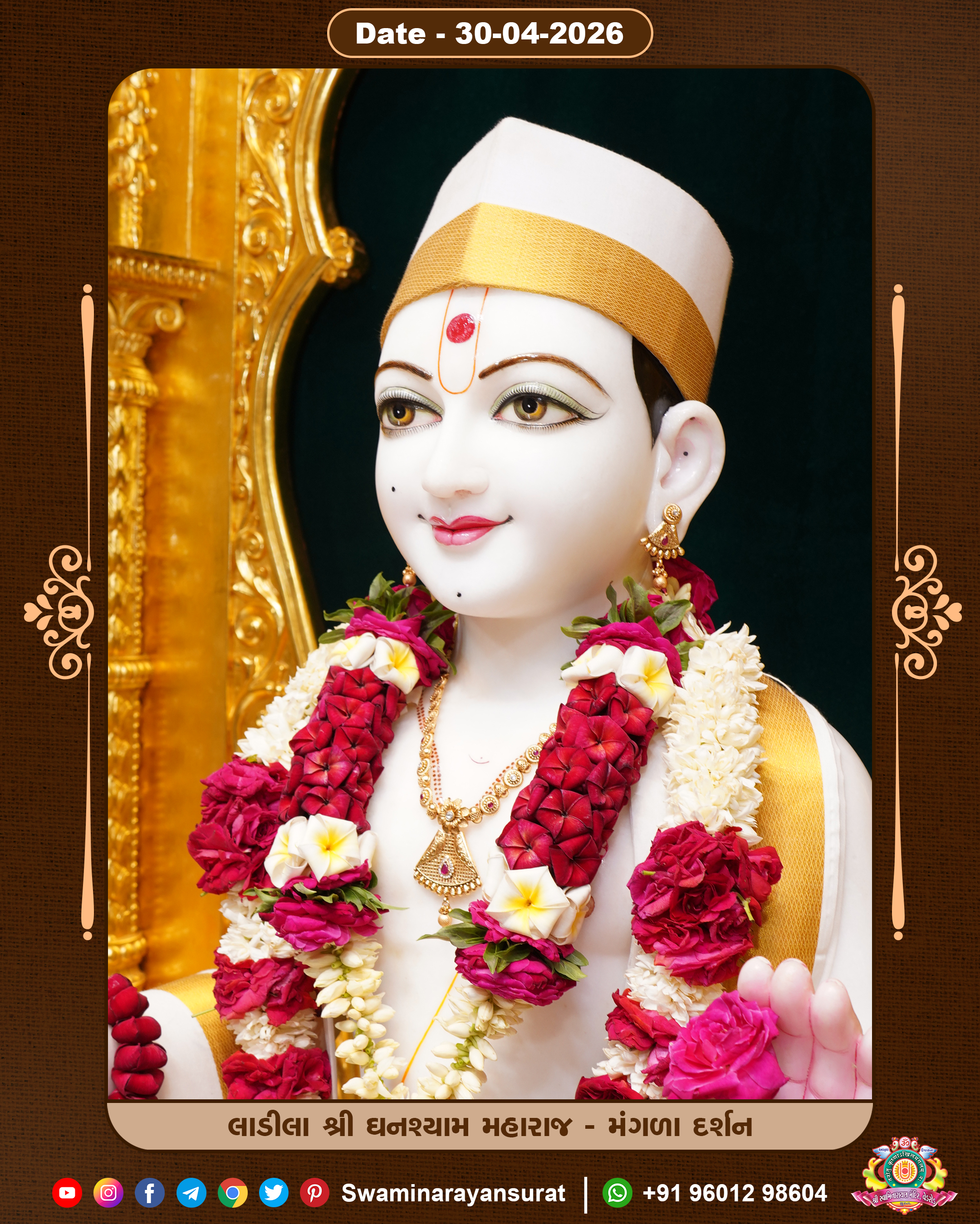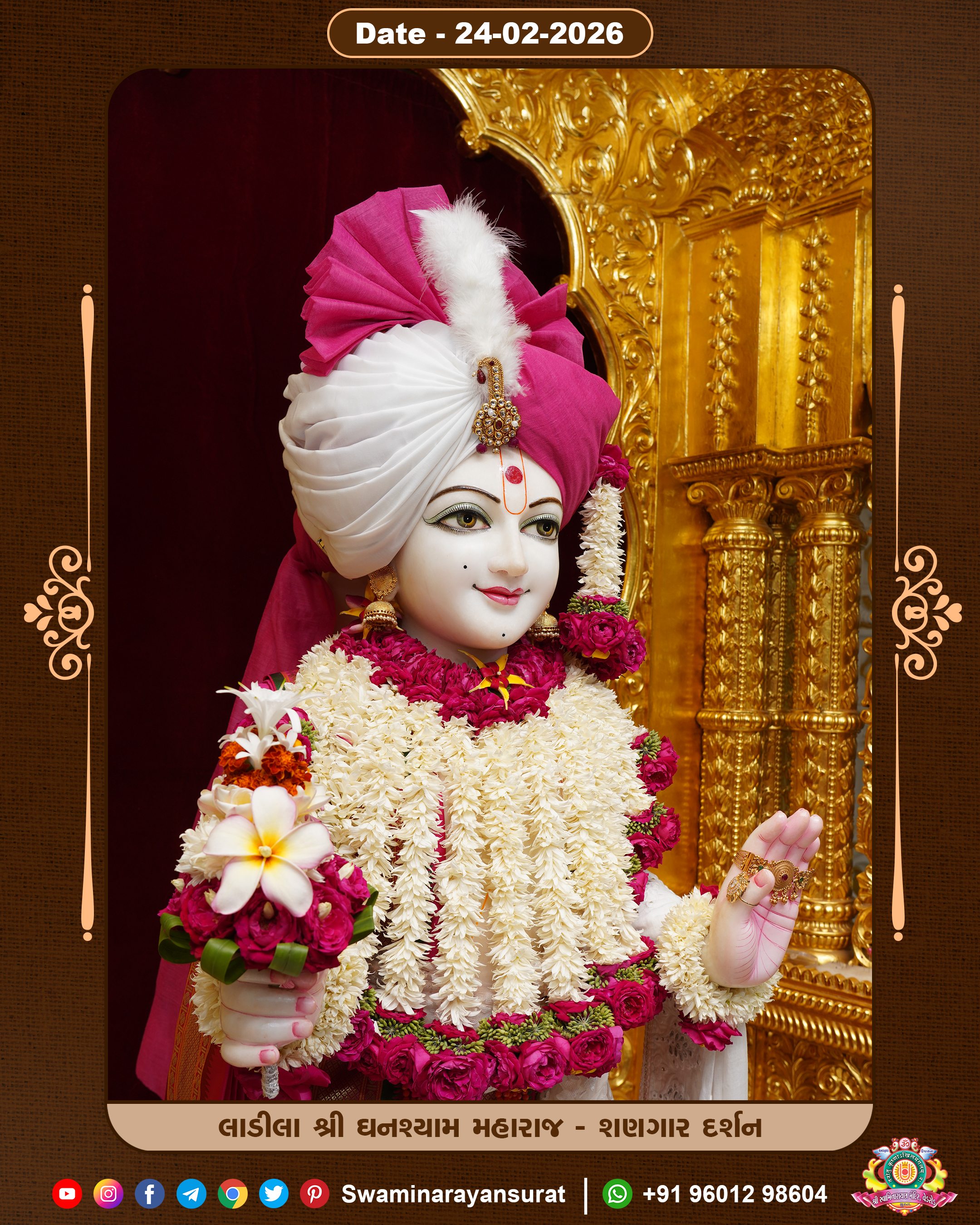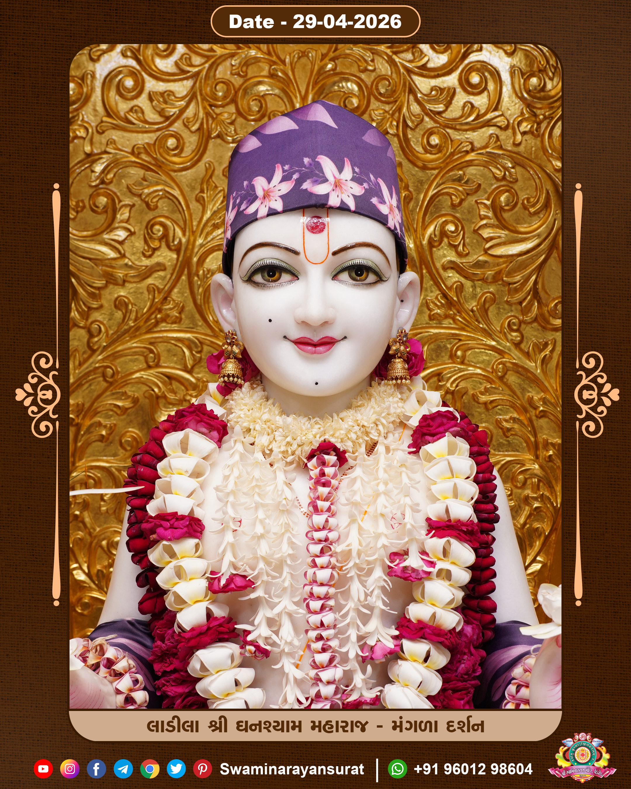 Shree Swaminarayan Temple, VedRoad is a Spiritual Organization Which falls under the region Of Vadtal Temple (The Headquarter Of Laxminarayan Dev Gadi). It is the First Organization Which is Constructed By Pink Stone With Beautiful and Marvellous Carving in Surat Of Swaminarayan Sampraday, Vadtal desh Which is increasing Pride & Prestige of Surat City, This temple contains One Main Shrine under which the idol of Ladila Shree Ghanshyam Maharaj is installed. P. Pu. Sadguru Shree Prabhucharandasji Swami is the Creator of this divine Organization. By the Several Activities & appearance Many devotees feels Easy in difficult Circumstances. He with his approx. 15 Saints & Devotees does Several Social & Spiritual Activities to fulfill the goal of Swaminarayan Sampraday, to do Worship with religious practices.