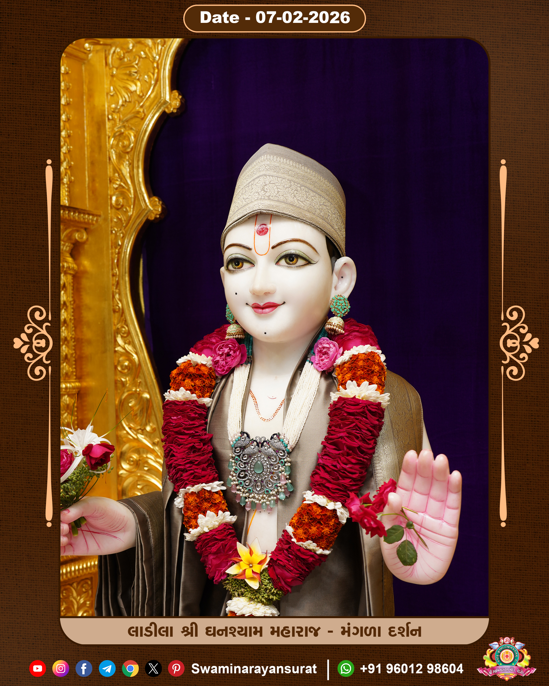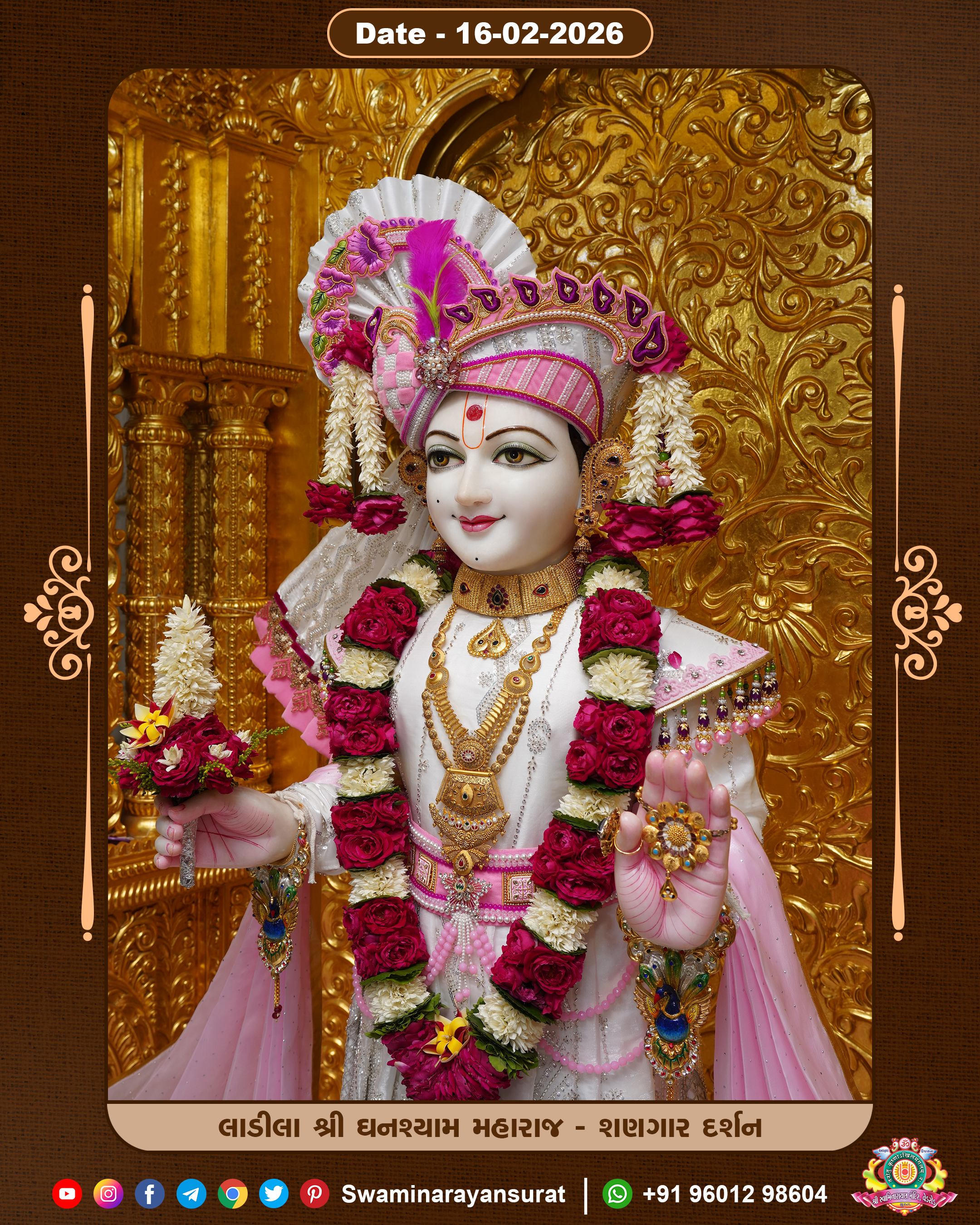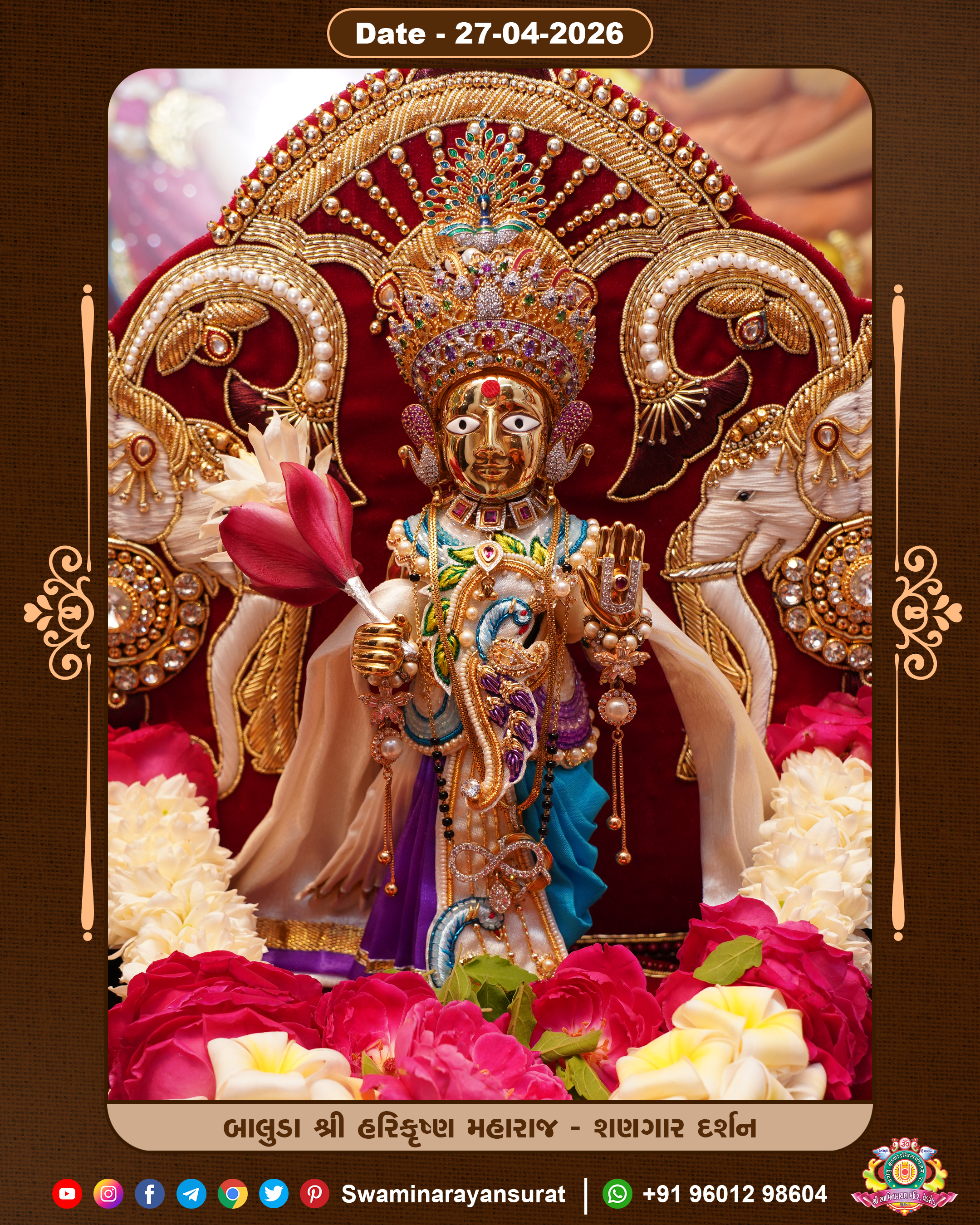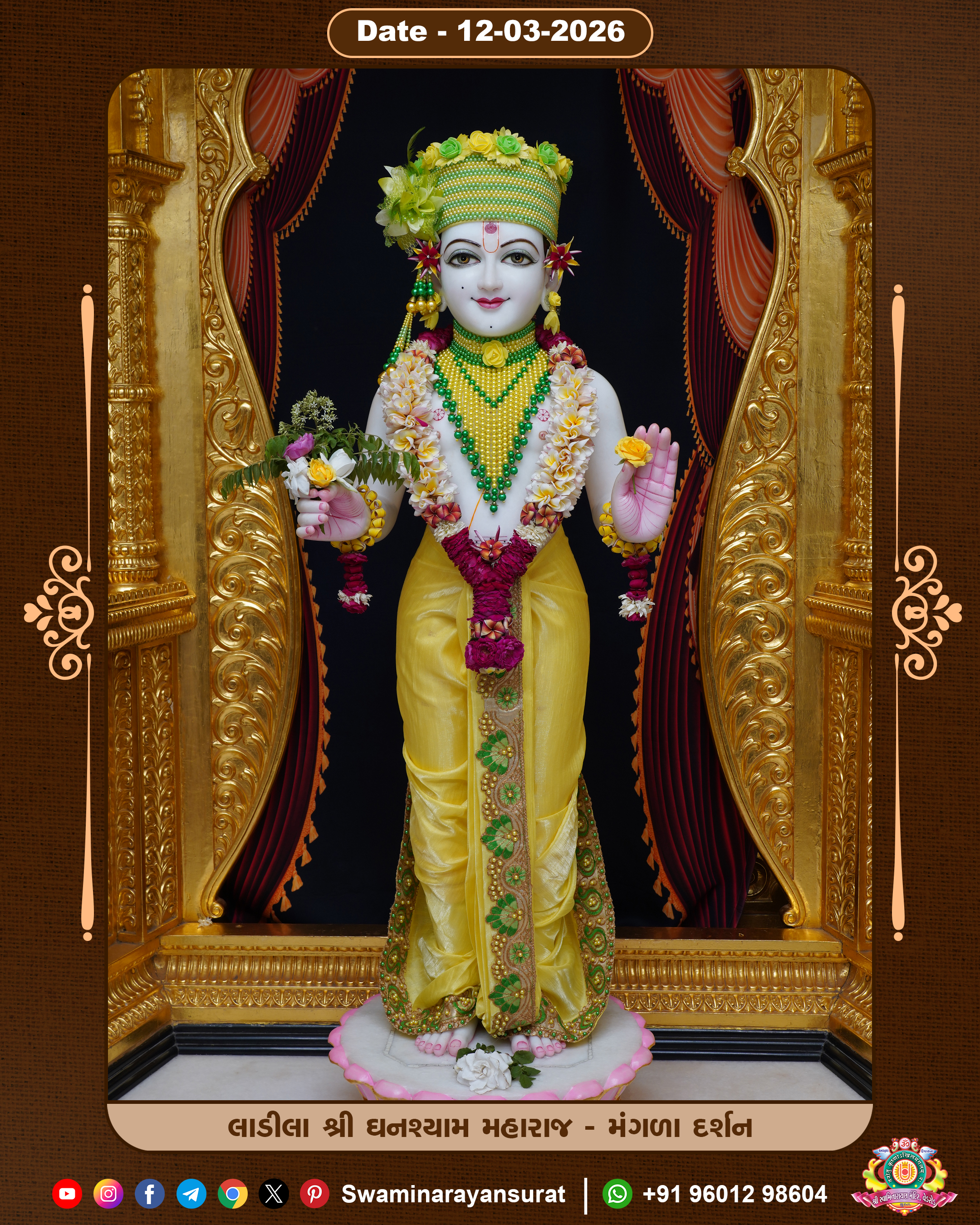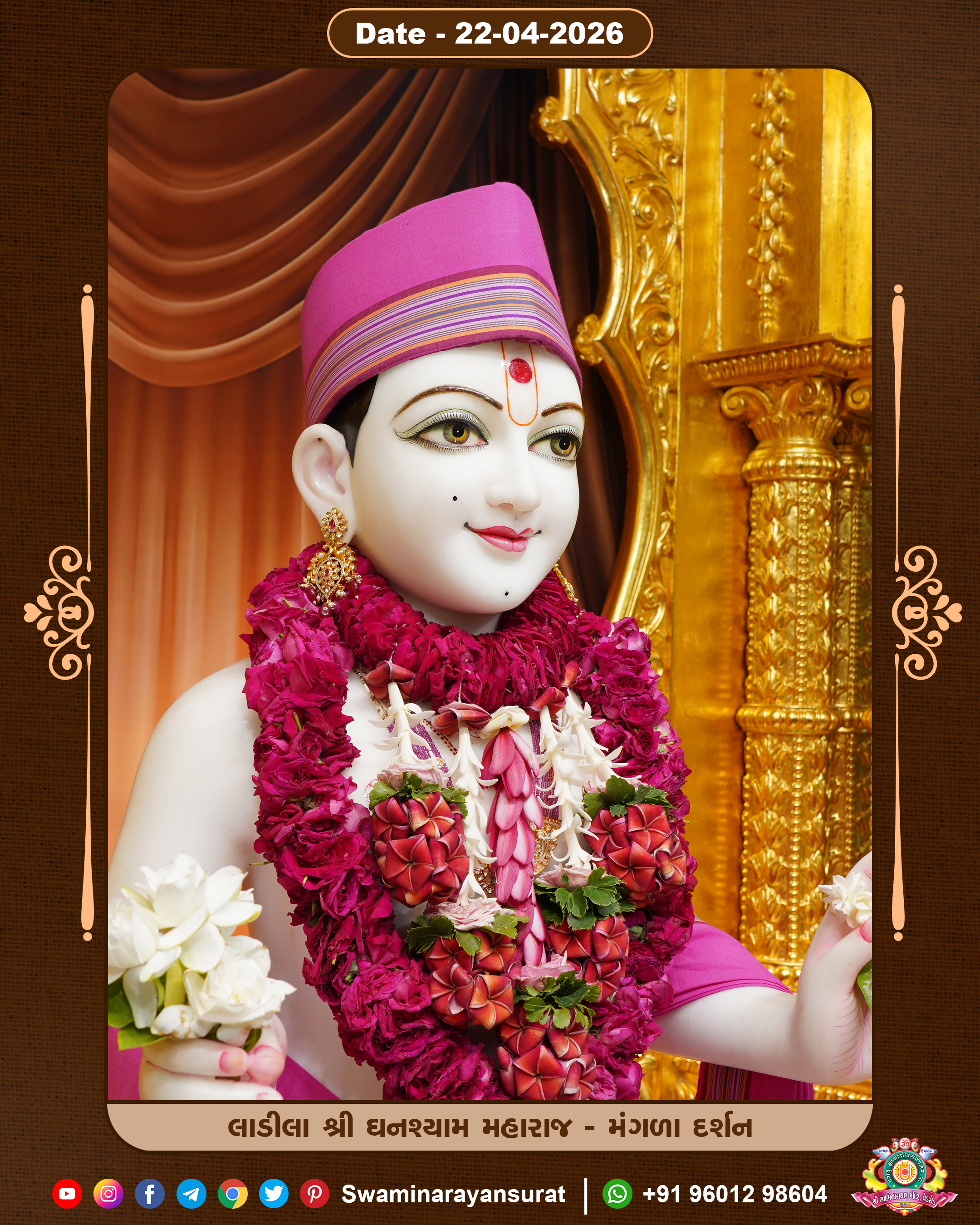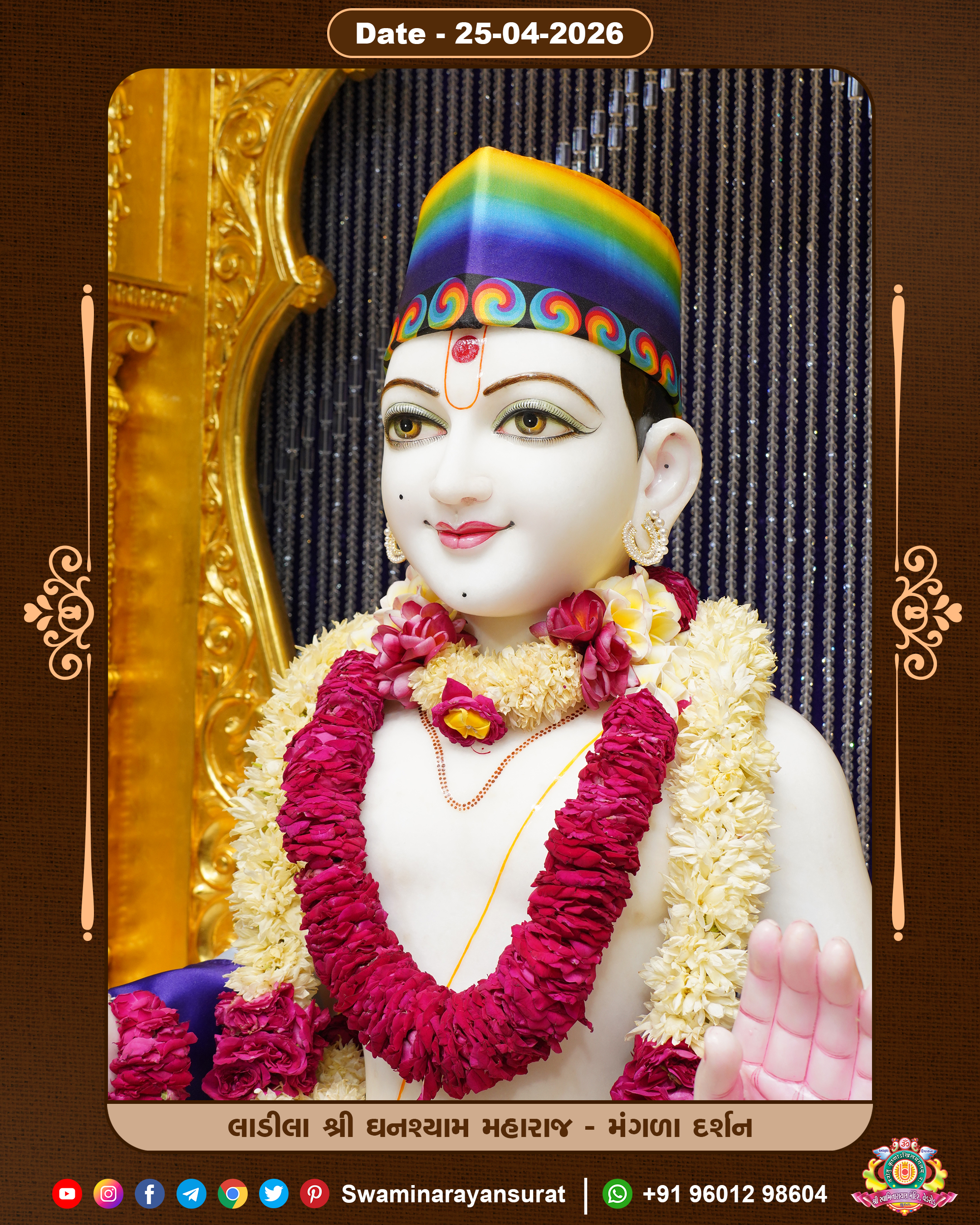 Shree Swaminarayan Temple, VedRoad is a Spiritual Organization Which falls under the region Of Vadtal Temple (The Headquarter Of Laxminarayan Dev Gadi). It is the First Organization Which is Constructed By Pink Stone With Beautiful and Marvellous Carving in Surat Of Swaminarayan Sampraday, Vadtal desh Which is increasing Pride & Prestige of Surat City, This temple contains One Main Shrine under which the idol of Ladila Shree Ghanshyam Maharaj is installed. P. Pu. Sadguru Shree Prabhucharandasji Swami is the Creator of this divine Organization. By the Several Activities & appearance Many devotees feels Easy in difficult Circumstances. He with his approx. 15 Saints & Devotees does Several Social & Spiritual Activities to fulfill the goal of Swaminarayan Sampraday, to do Worship with religious practices.