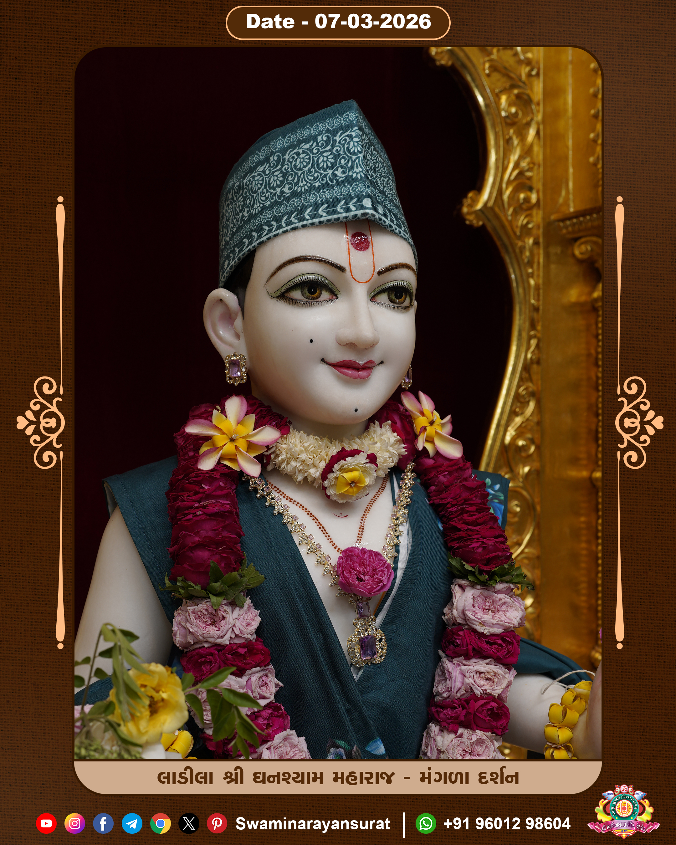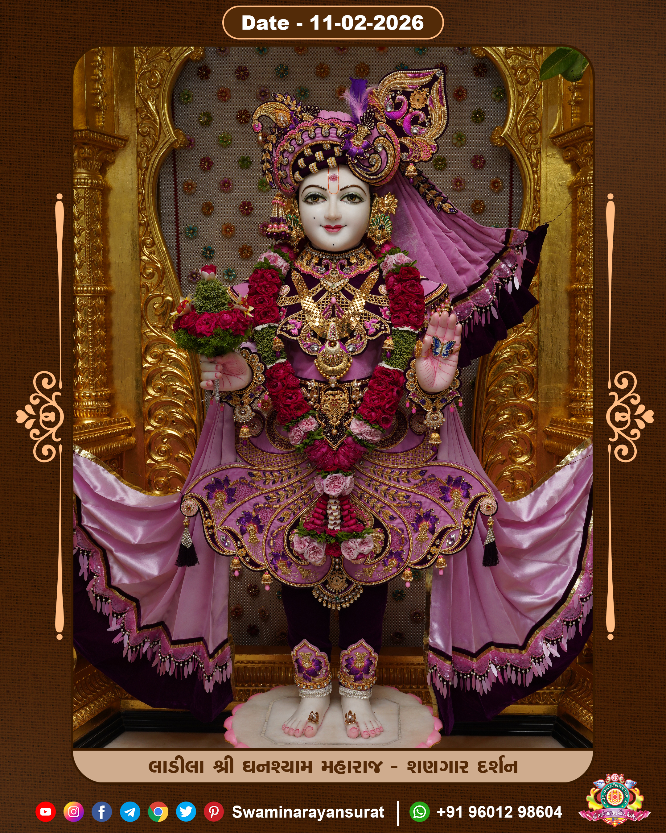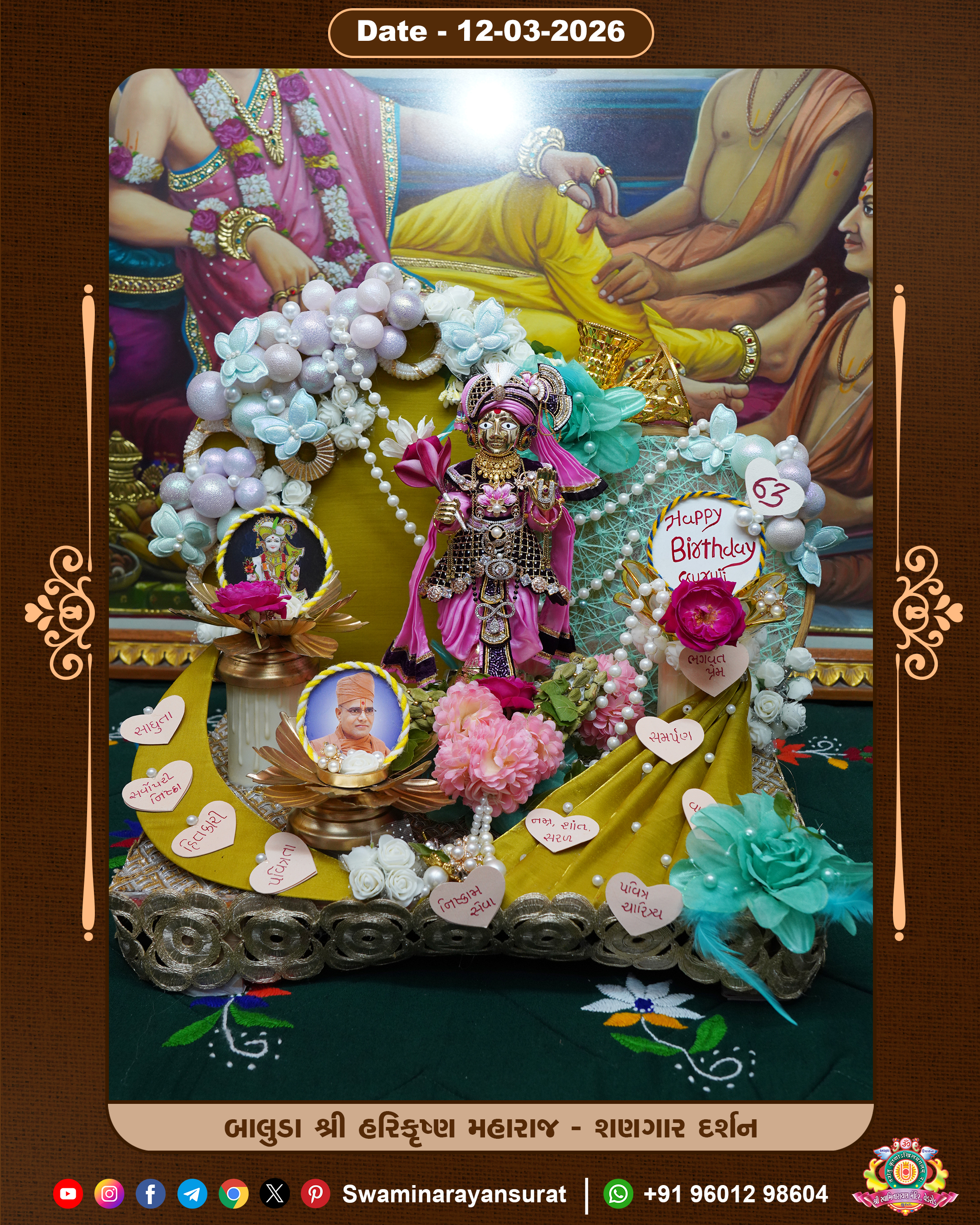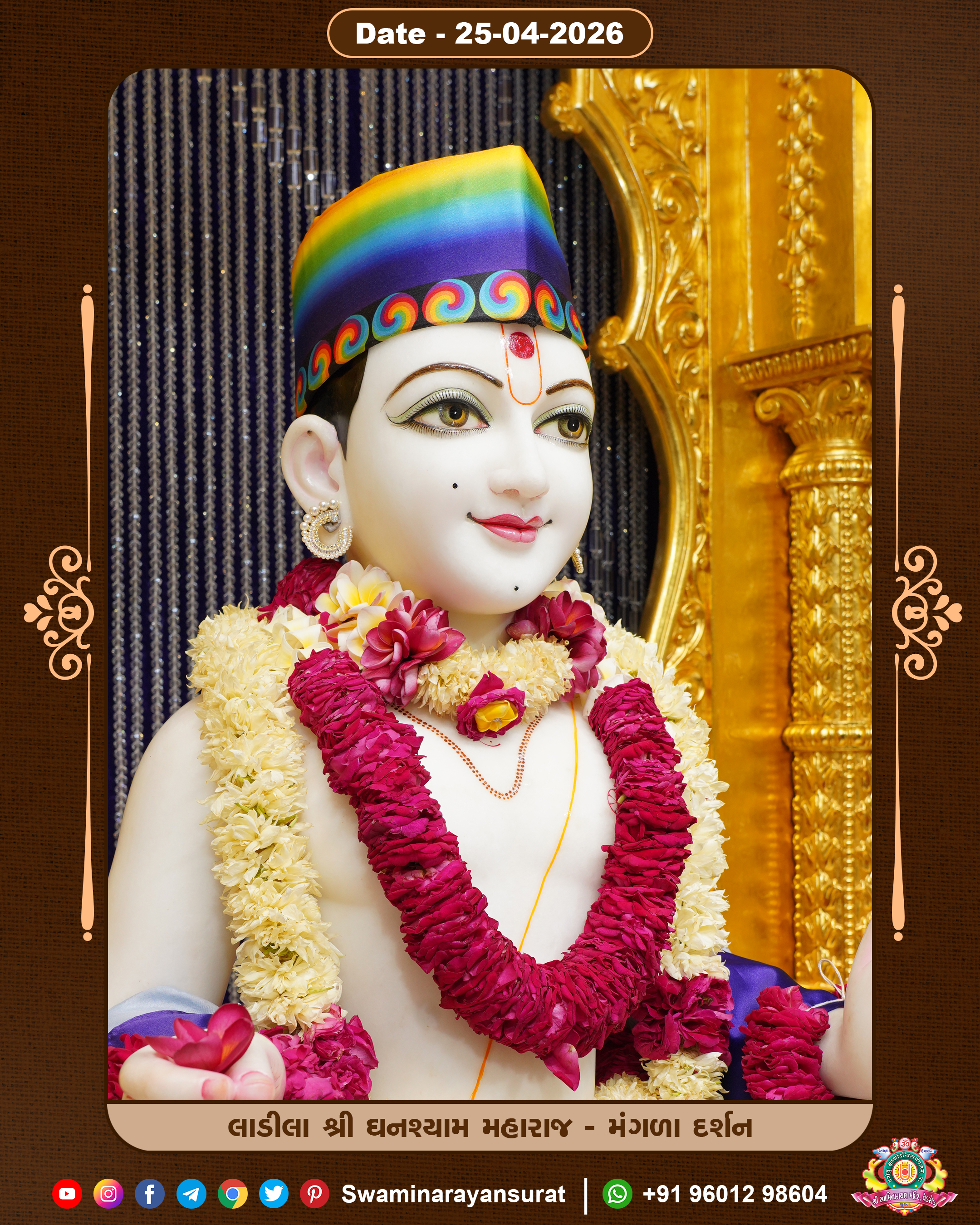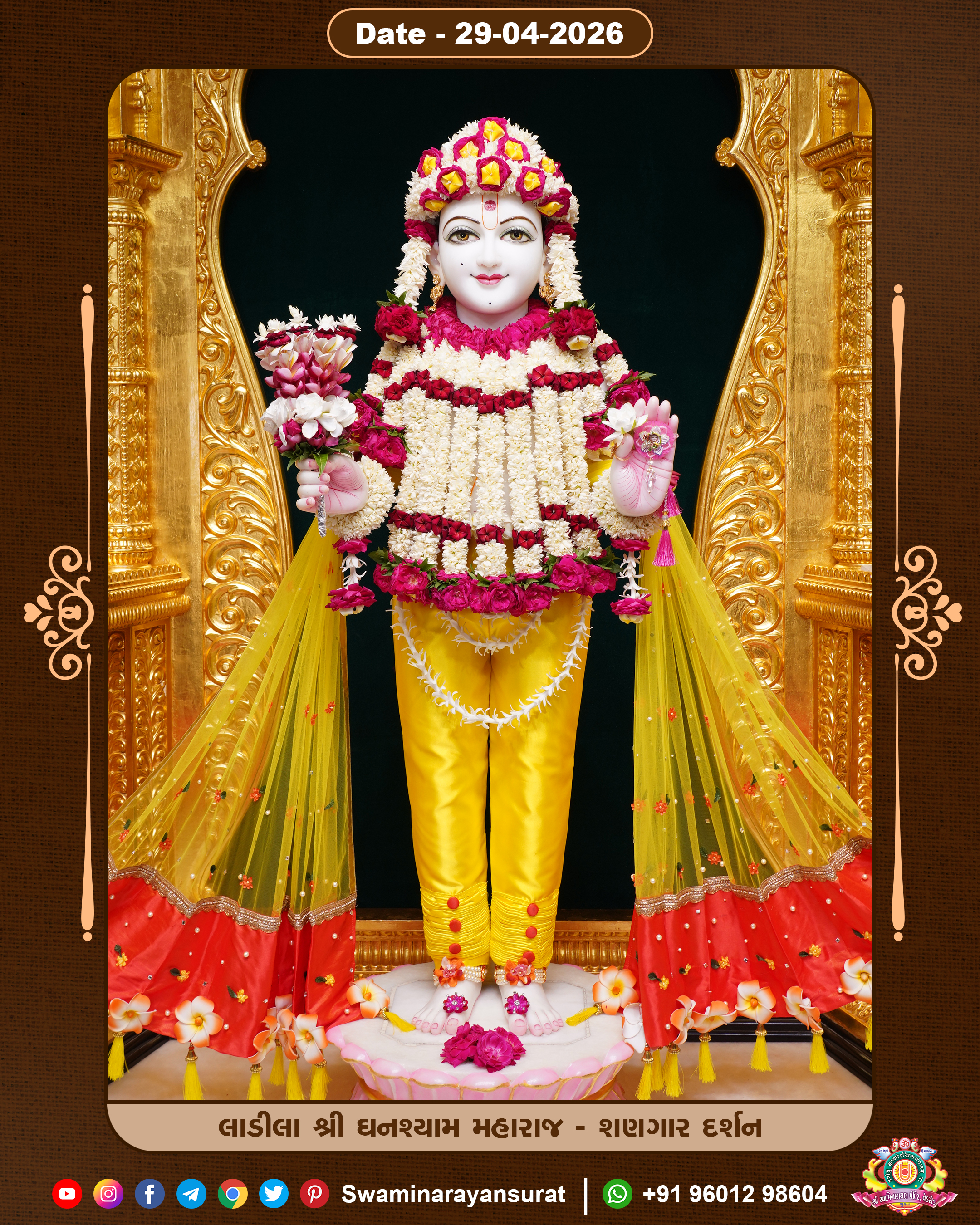 Shree Swaminarayan Temple, VedRoad is a Spiritual Organization Which falls under the region Of Vadtal Temple (The Headquarter Of Laxminarayan Dev Gadi). It is the First Organization Which is Constructed By Pink Stone With Beautiful and Marvellous Carving in Surat Of Swaminarayan Sampraday, Vadtal desh Which is increasing Pride & Prestige of Surat City, This temple contains One Main Shrine under which the idol of Ladila Shree Ghanshyam Maharaj is installed. P. Pu. Sadguru Shree Prabhucharandasji Swami is the Creator of this divine Organization. By the Several Activities & appearance Many devotees feels Easy in difficult Circumstances. He with his approx. 15 Saints & Devotees does Several Social & Spiritual Activities to fulfill the goal of Swaminarayan Sampraday, to do Worship with religious practices.