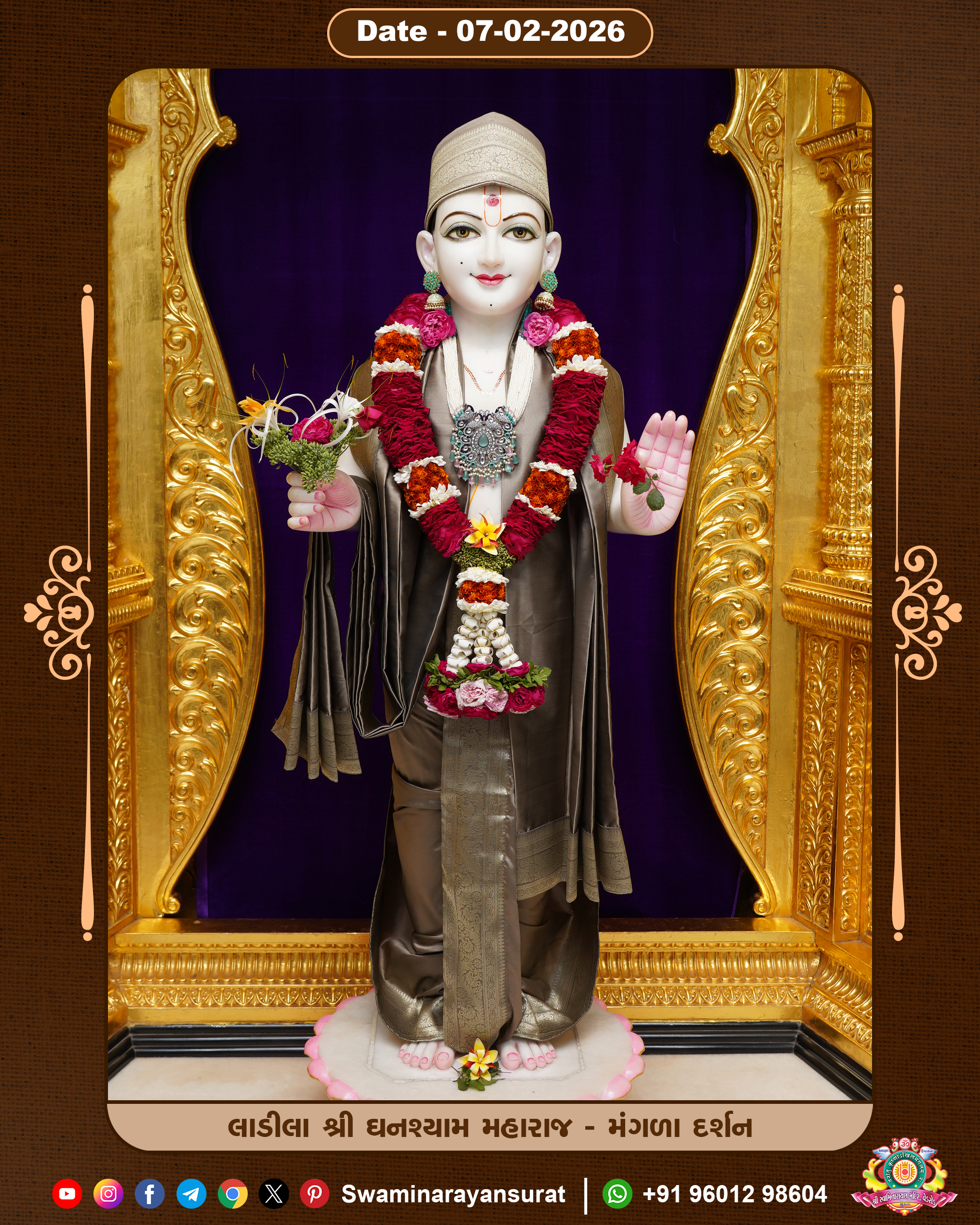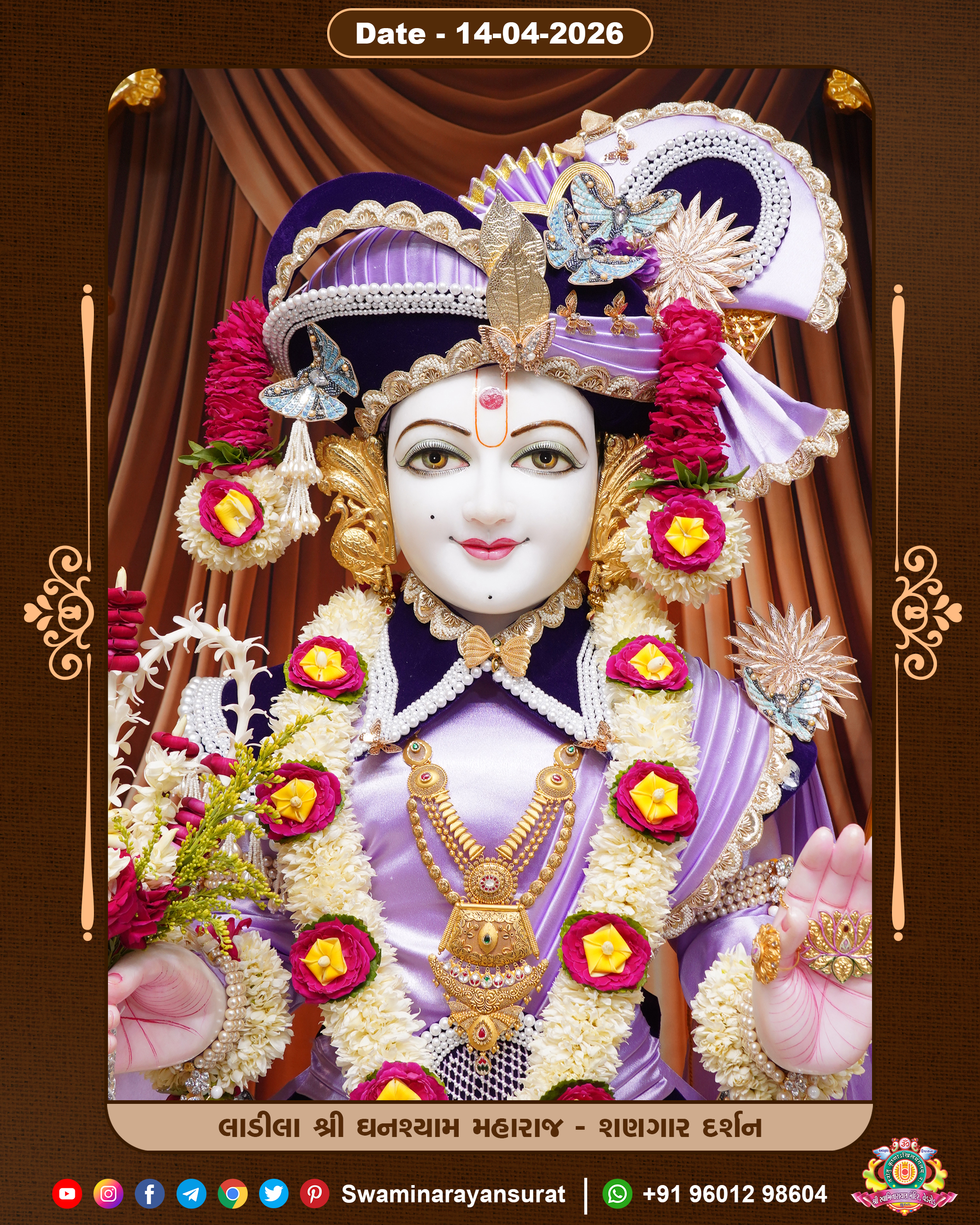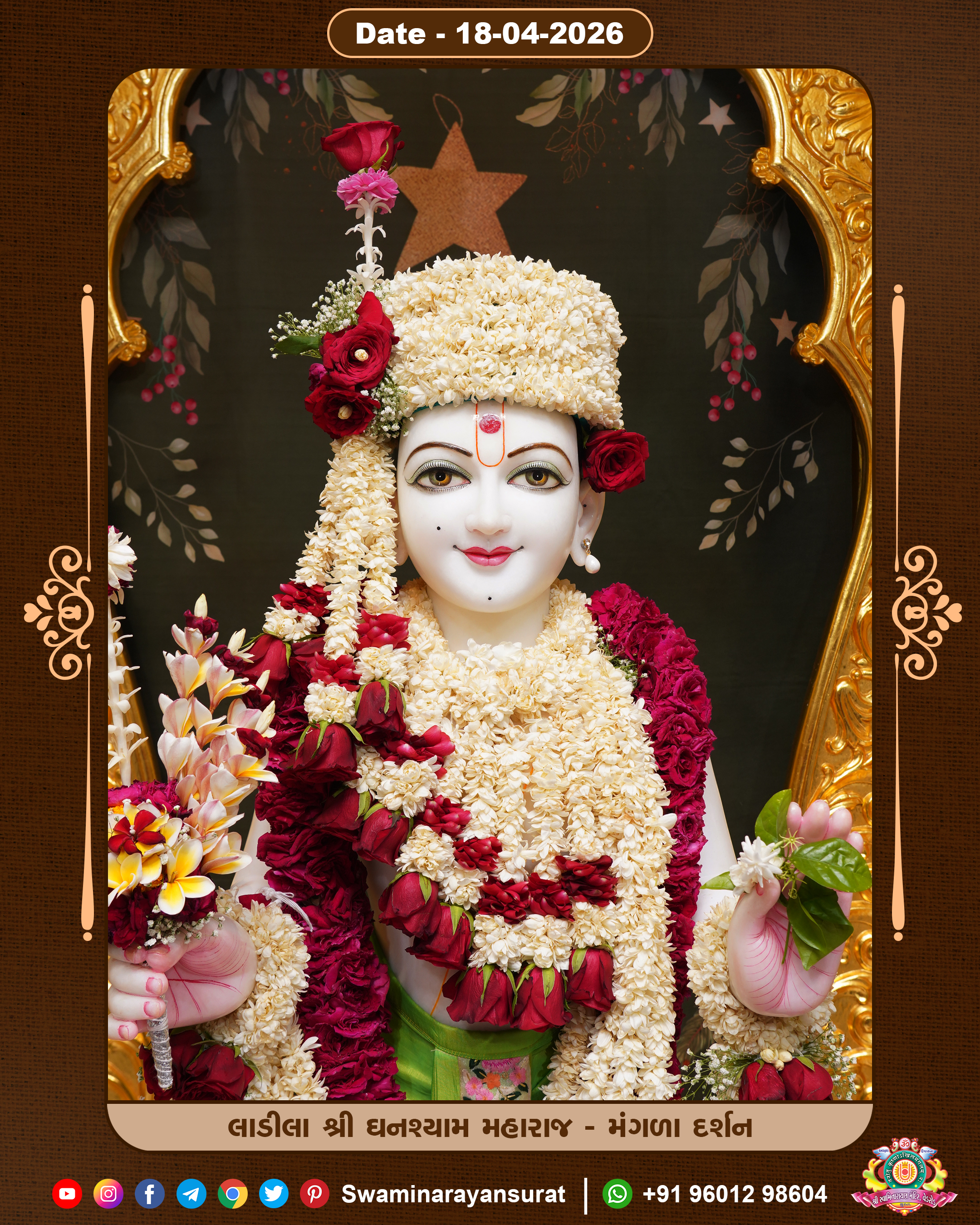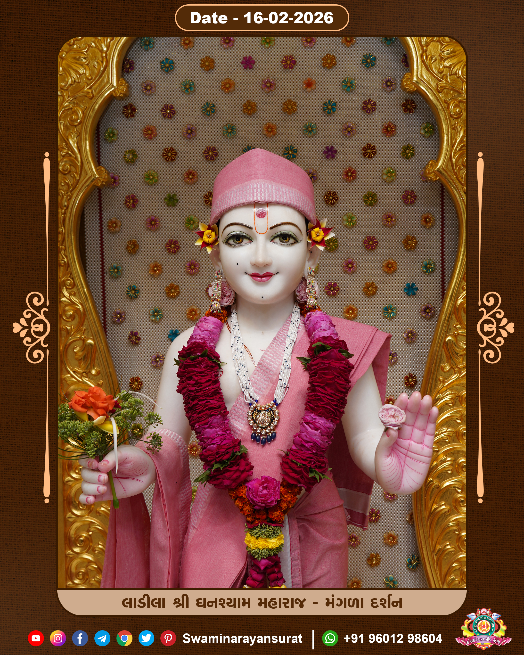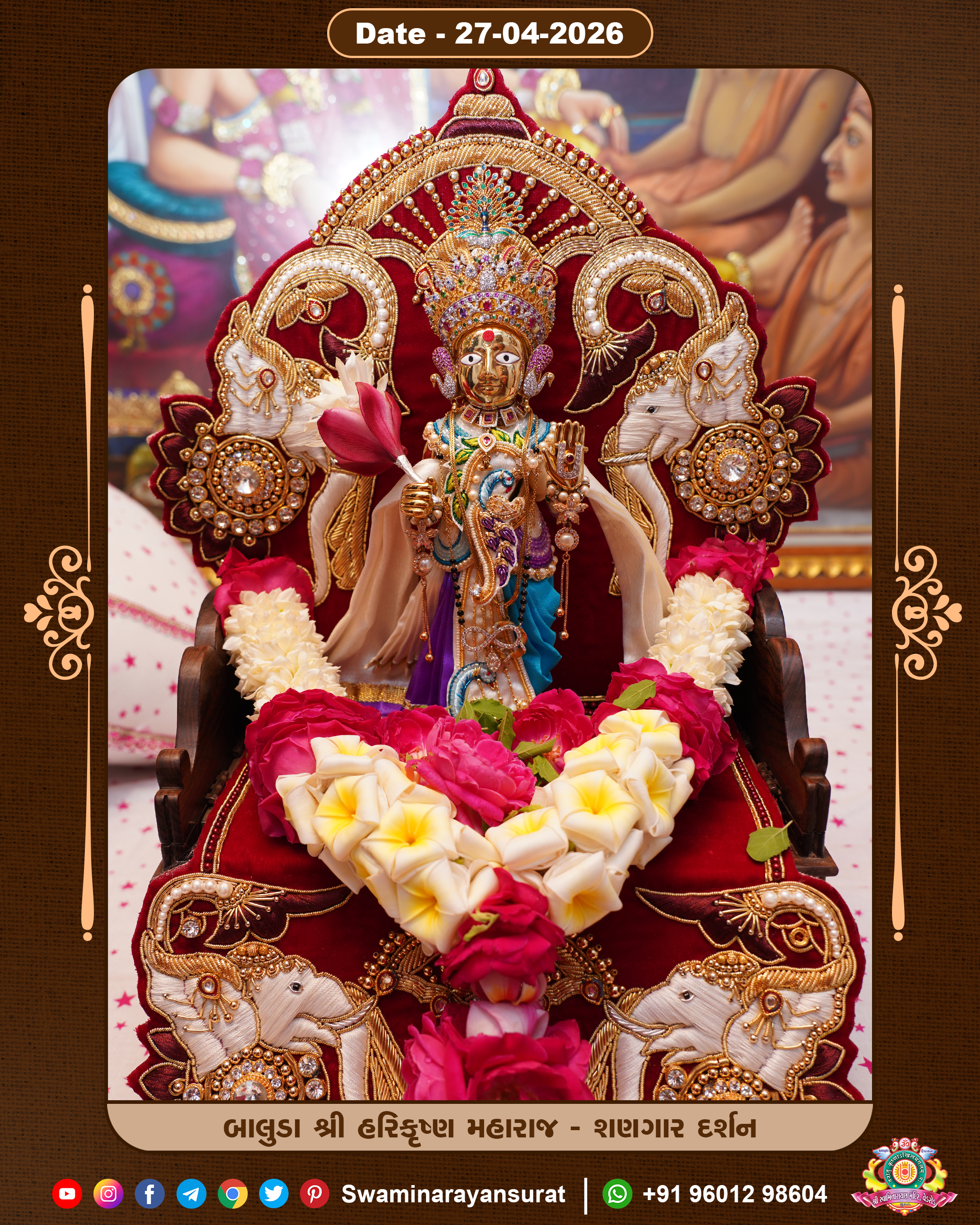 Shree Swaminarayan Temple, VedRoad is a Spiritual Organization Which falls under the region Of Vadtal Temple (The Headquarter Of Laxminarayan Dev Gadi). It is the First Organization Which is Constructed By Pink Stone With Beautiful and Marvellous Carving in Surat Of Swaminarayan Sampraday, Vadtal desh Which is increasing Pride & Prestige of Surat City, This temple contains One Main Shrine under which the idol of Ladila Shree Ghanshyam Maharaj is installed. P. Pu. Sadguru Shree Prabhucharandasji Swami is the Creator of this divine Organization. By the Several Activities & appearance Many devotees feels Easy in difficult Circumstances. He with his approx. 15 Saints & Devotees does Several Social & Spiritual Activities to fulfill the goal of Swaminarayan Sampraday, to do Worship with religious practices.