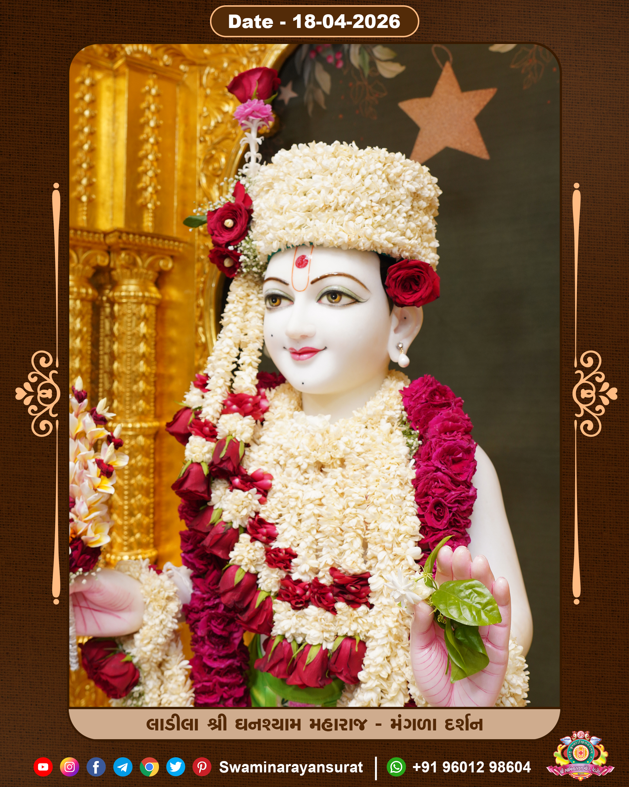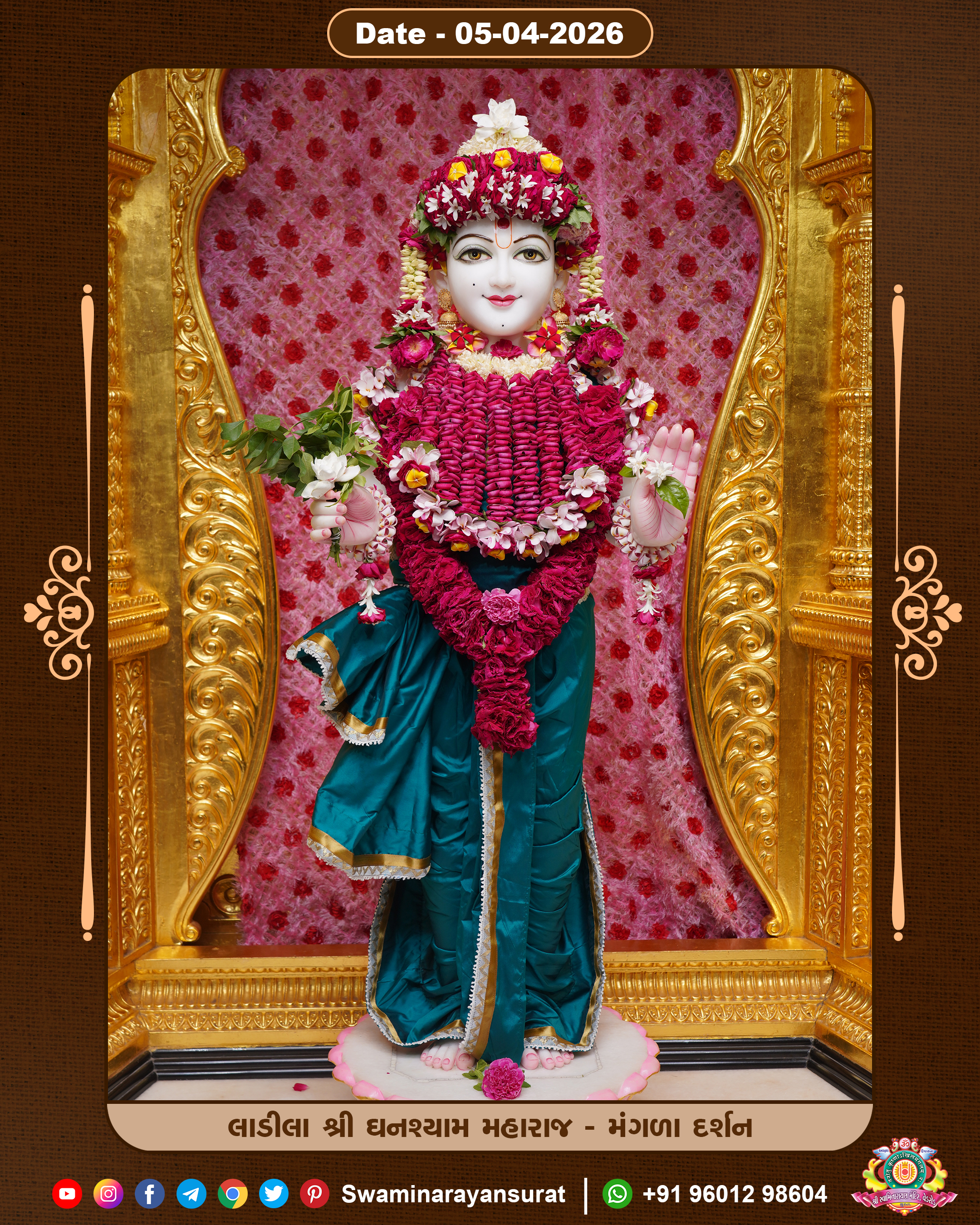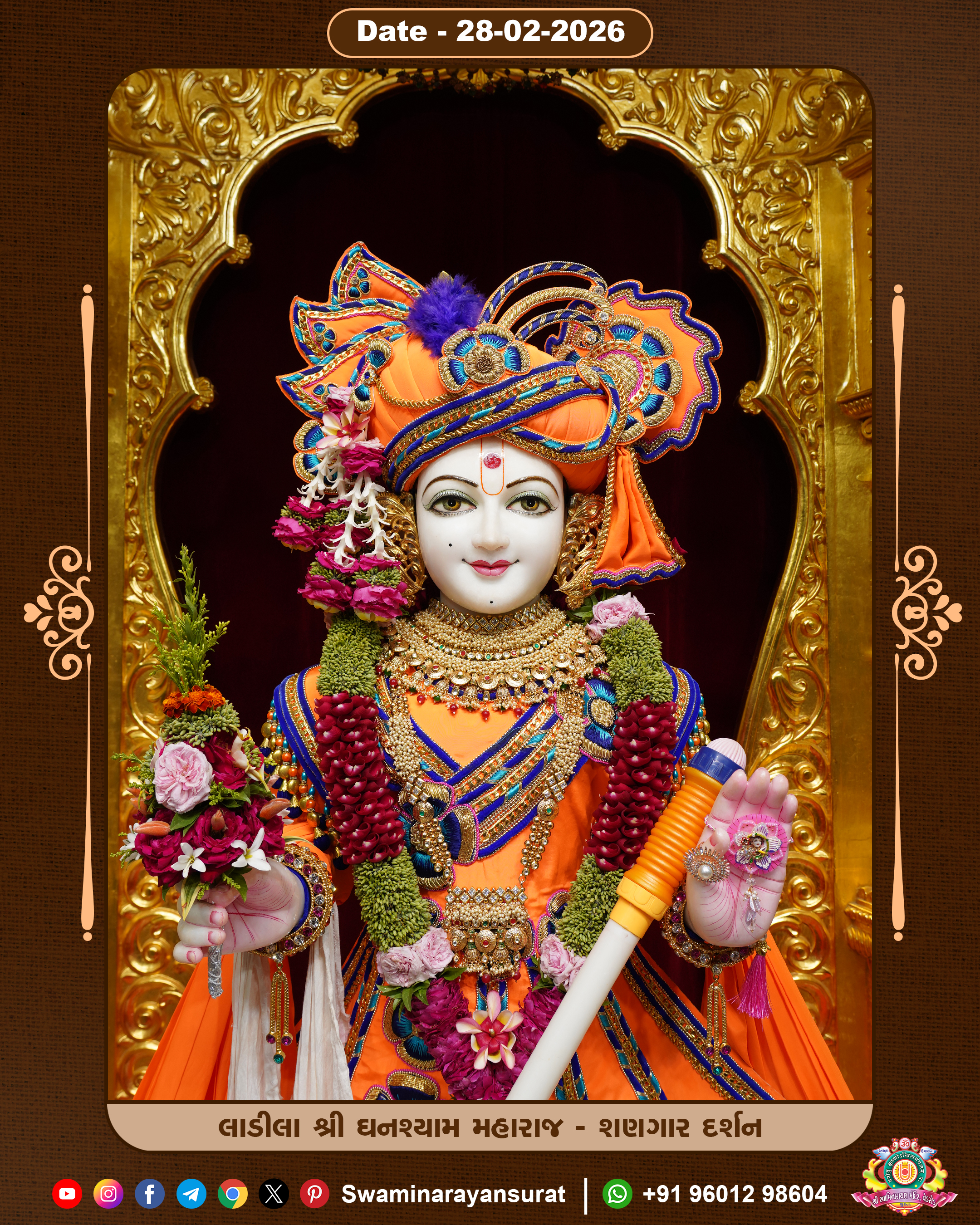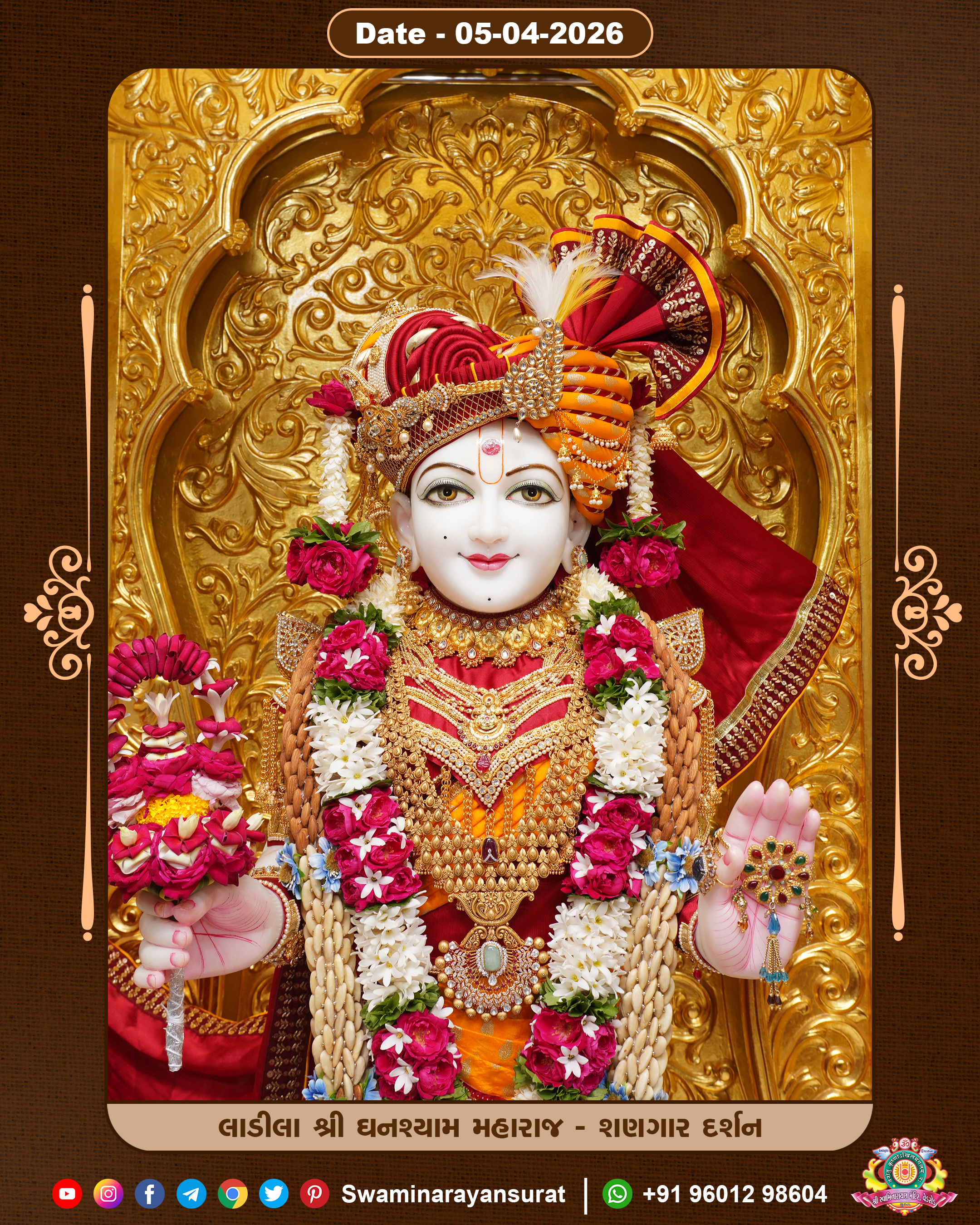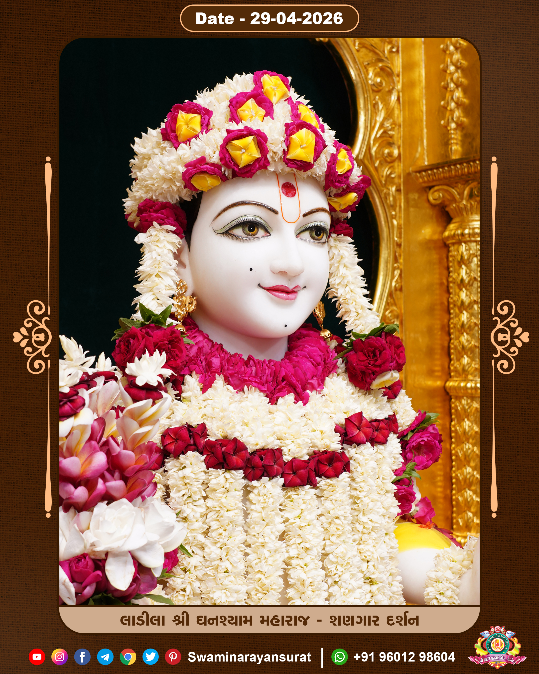 Shree Swaminarayan Temple, VedRoad is a Spiritual Organization Which falls under the region Of Vadtal Temple (The Headquarter Of Laxminarayan Dev Gadi). It is the First Organization Which is Constructed By Pink Stone With Beautiful and Marvellous Carving in Surat Of Swaminarayan Sampraday, Vadtal desh Which is increasing Pride & Prestige of Surat City, This temple contains One Main Shrine under which the idol of Ladila Shree Ghanshyam Maharaj is installed. P. Pu. Sadguru Shree Prabhucharandasji Swami is the Creator of this divine Organization. By the Several Activities & appearance Many devotees feels Easy in difficult Circumstances. He with his approx. 15 Saints & Devotees does Several Social & Spiritual Activities to fulfill the goal of Swaminarayan Sampraday, to do Worship with religious practices.