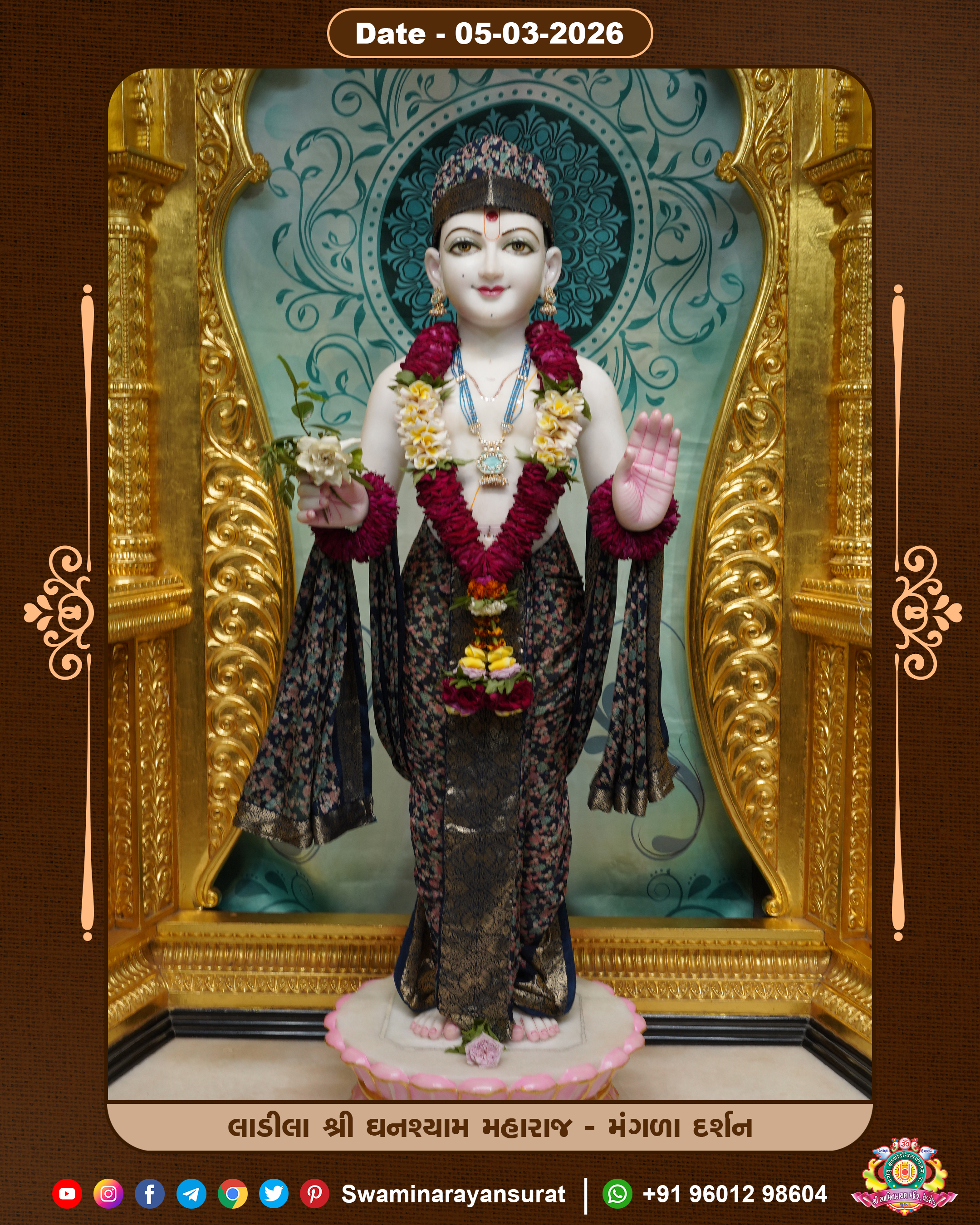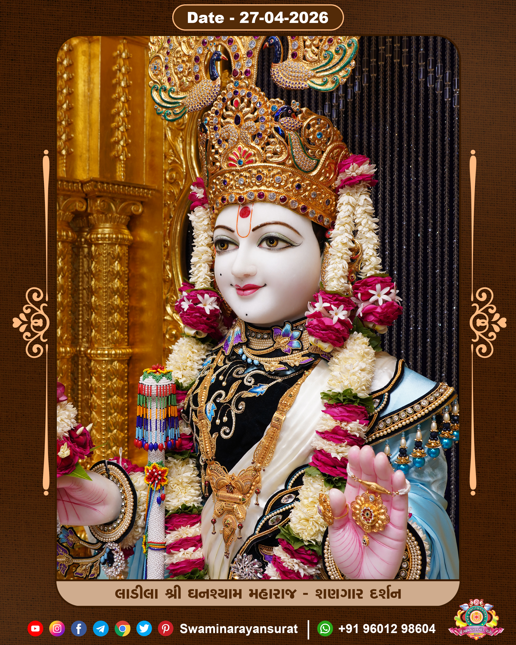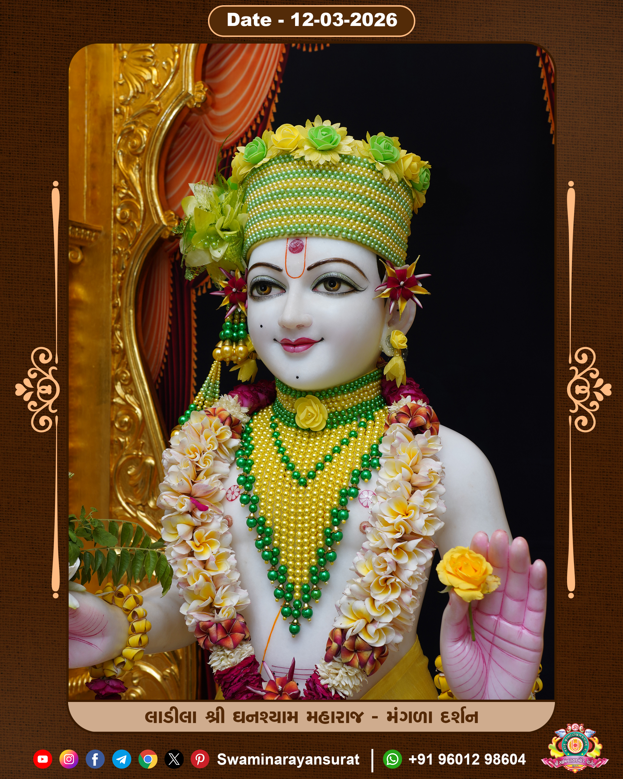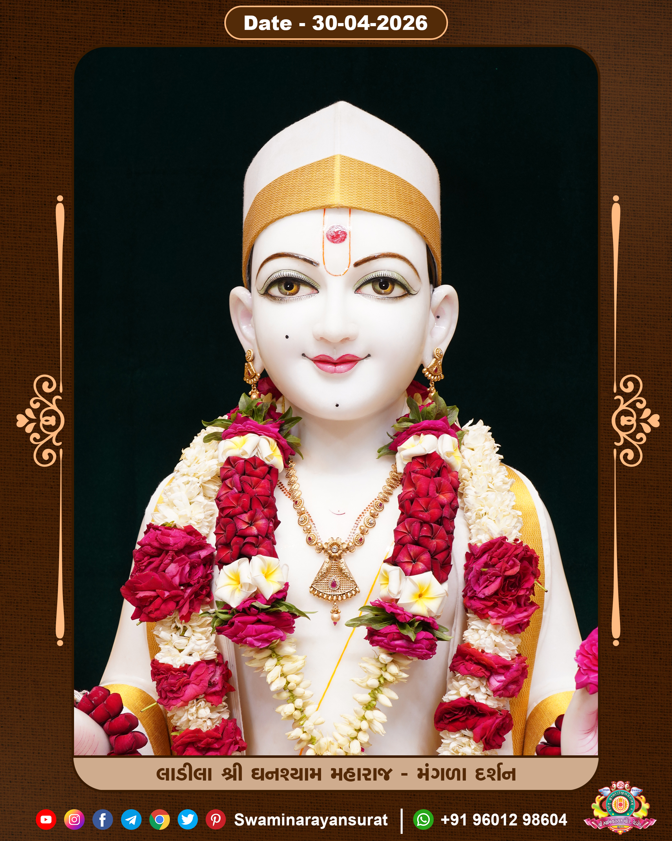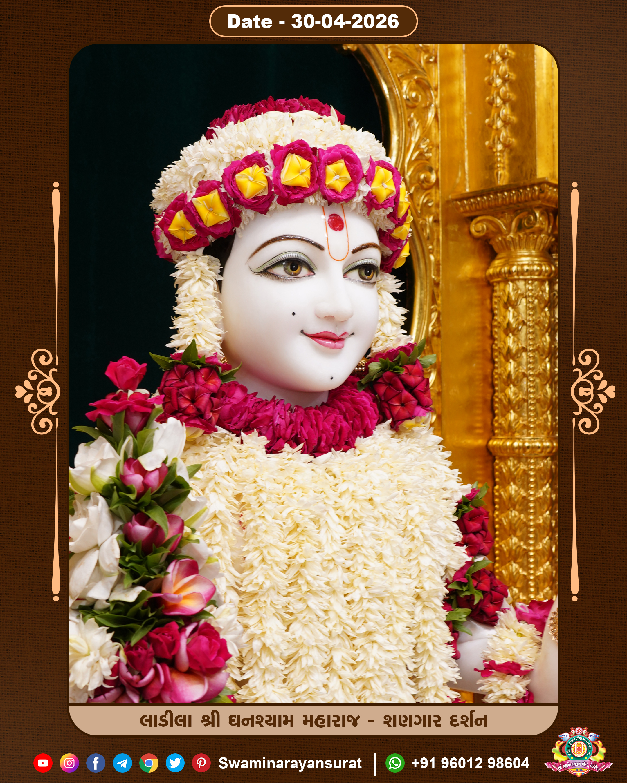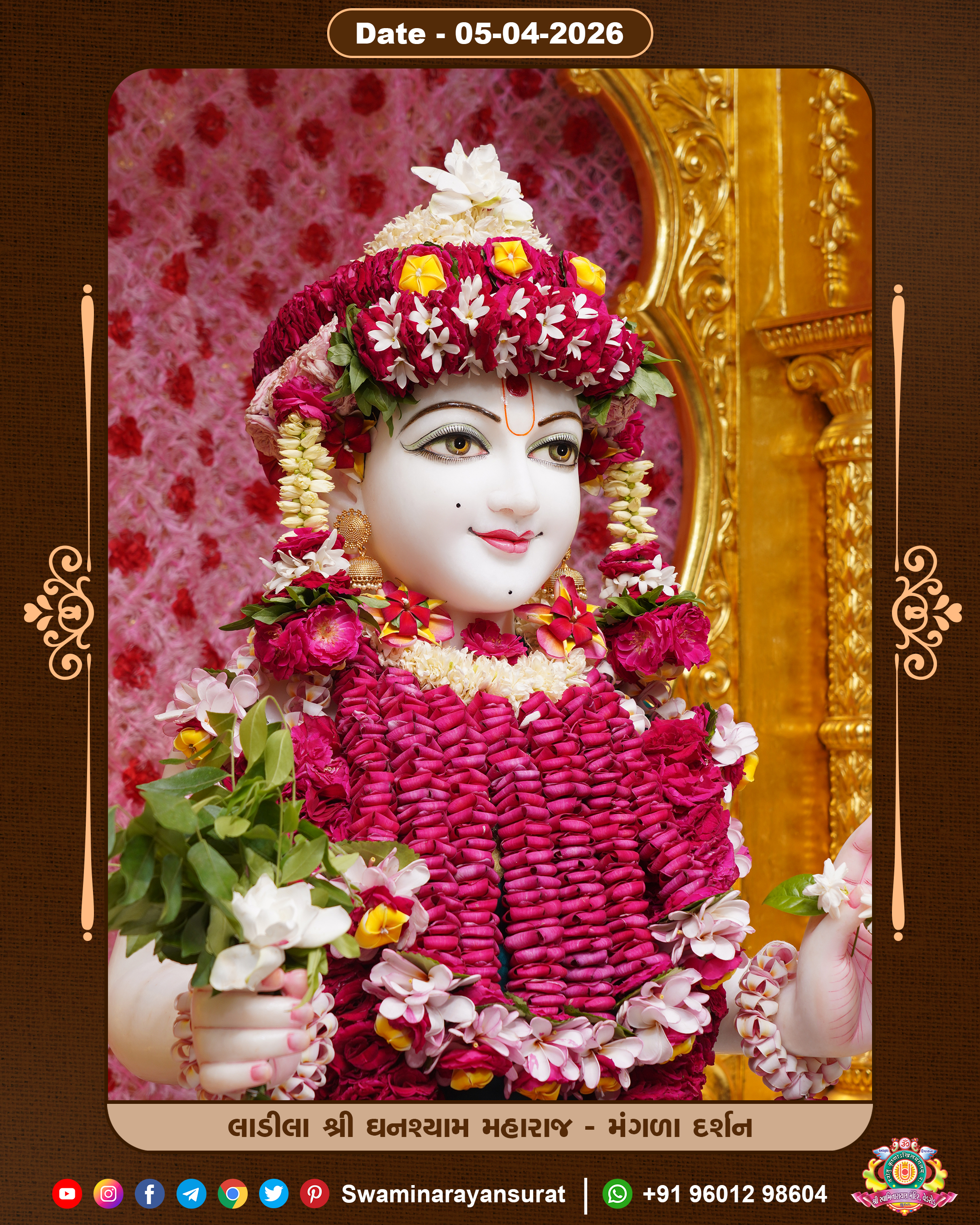 Shree Swaminarayan Temple, VedRoad is a Spiritual Organization Which falls under the region Of Vadtal Temple (The Headquarter Of Laxminarayan Dev Gadi). It is the First Organization Which is Constructed By Pink Stone With Beautiful and Marvellous Carving in Surat Of Swaminarayan Sampraday, Vadtal desh Which is increasing Pride & Prestige of Surat City, This temple contains One Main Shrine under which the idol of Ladila Shree Ghanshyam Maharaj is installed. P. Pu. Sadguru Shree Prabhucharandasji Swami is the Creator of this divine Organization. By the Several Activities & appearance Many devotees feels Easy in difficult Circumstances. He with his approx. 15 Saints & Devotees does Several Social & Spiritual Activities to fulfill the goal of Swaminarayan Sampraday, to do Worship with religious practices.