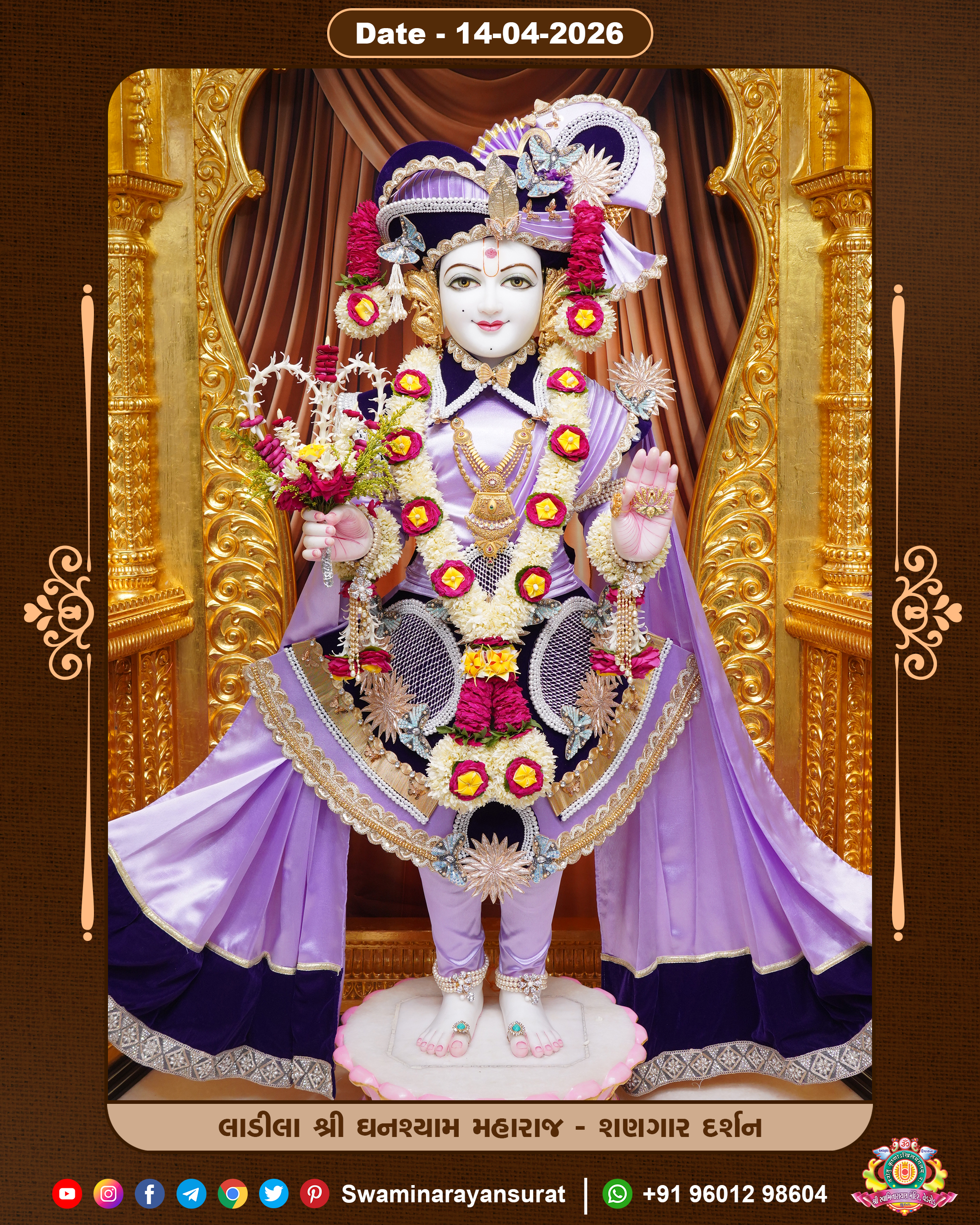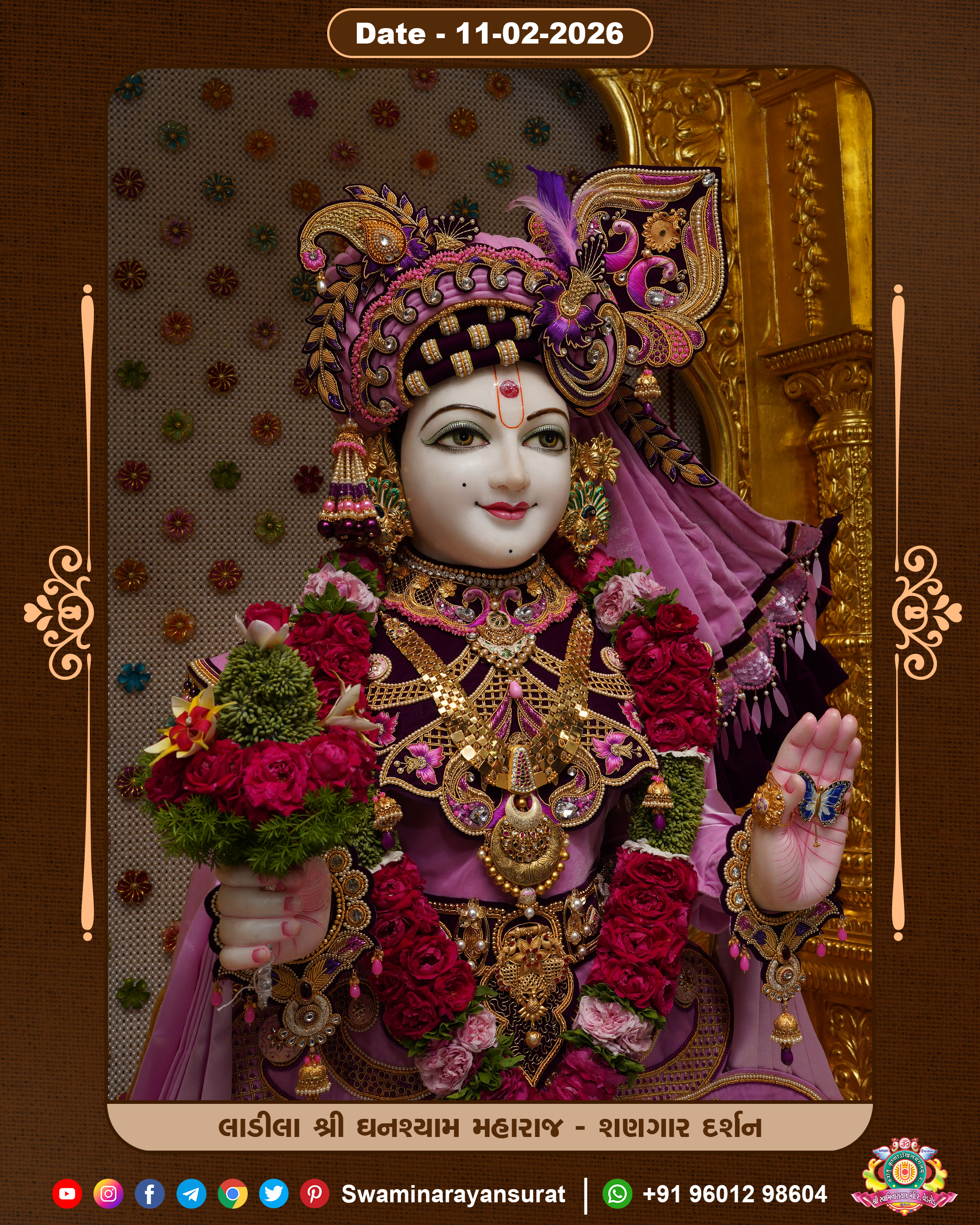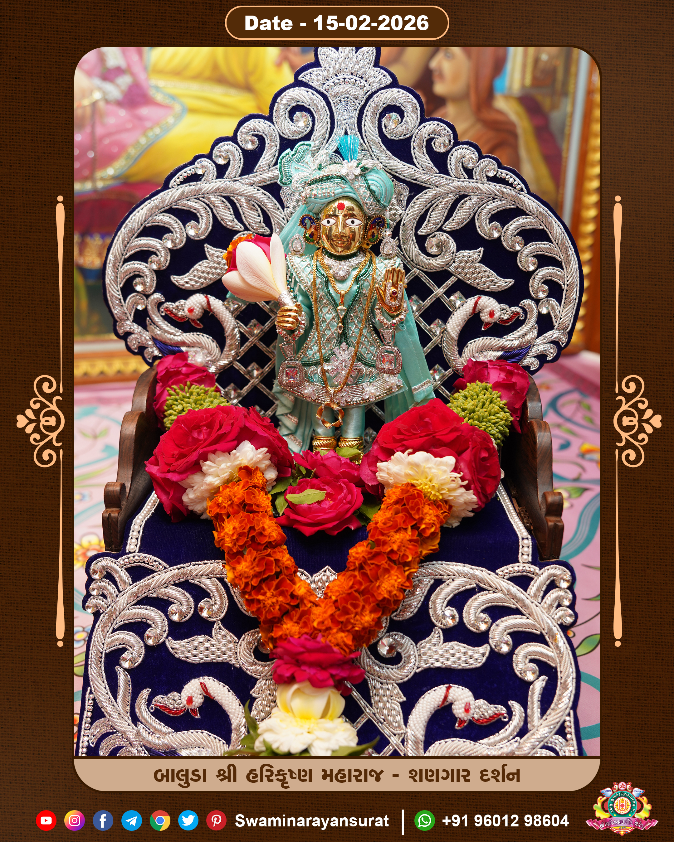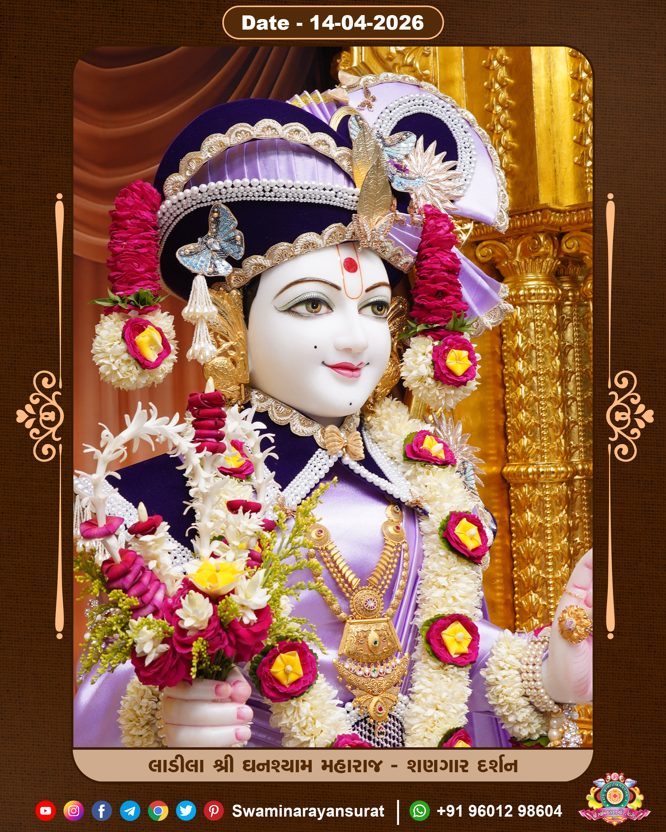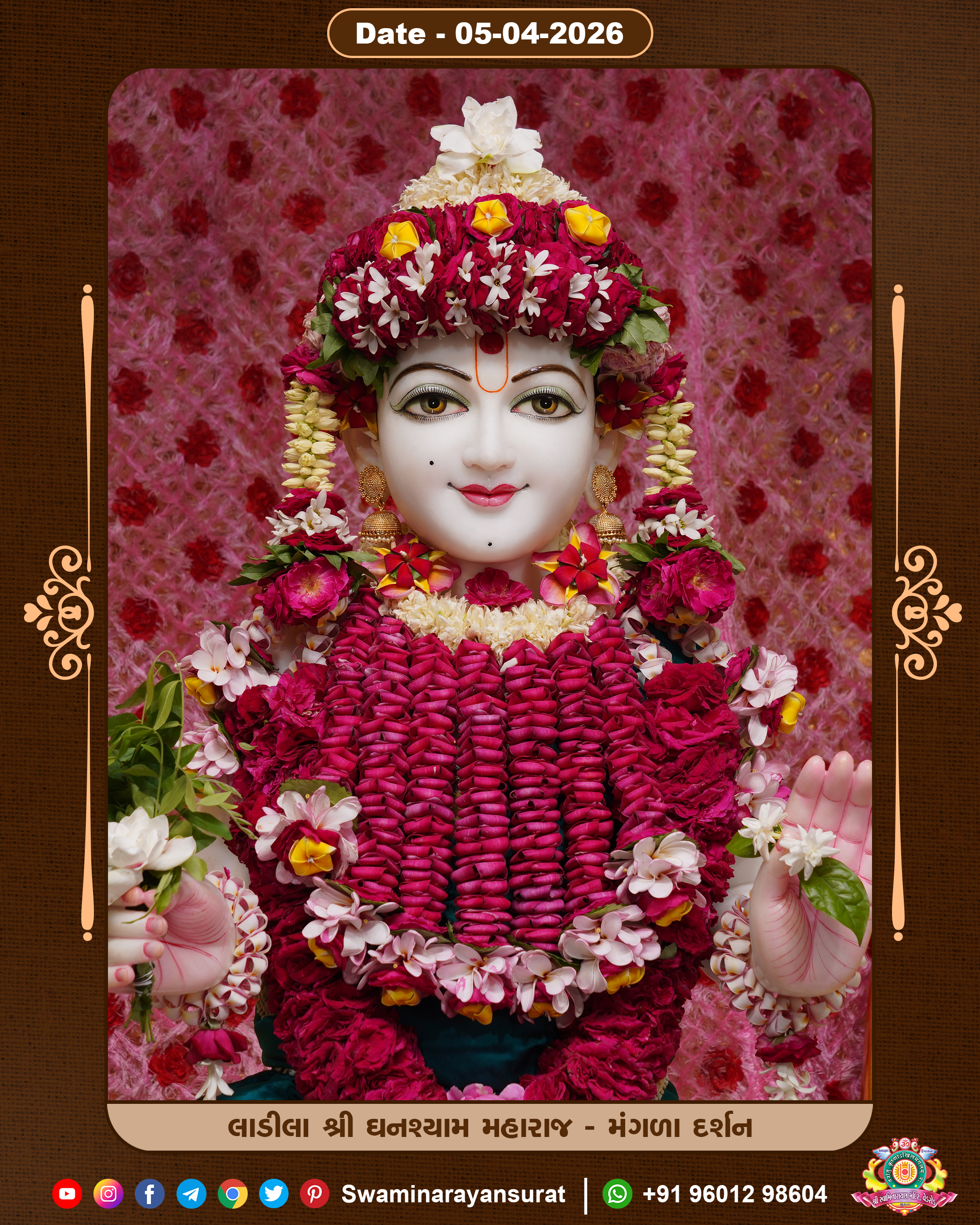 Shree Swaminarayan Temple, VedRoad is a Spiritual Organization Which falls under the region Of Vadtal Temple (The Headquarter Of Laxminarayan Dev Gadi). It is the First Organization Which is Constructed By Pink Stone With Beautiful and Marvellous Carving in Surat Of Swaminarayan Sampraday, Vadtal desh Which is increasing Pride & Prestige of Surat City, This temple contains One Main Shrine under which the idol of Ladila Shree Ghanshyam Maharaj is installed. P. Pu. Sadguru Shree Prabhucharandasji Swami is the Creator of this divine Organization. By the Several Activities & appearance Many devotees feels Easy in difficult Circumstances. He with his approx. 15 Saints & Devotees does Several Social & Spiritual Activities to fulfill the goal of Swaminarayan Sampraday, to do Worship with religious practices.