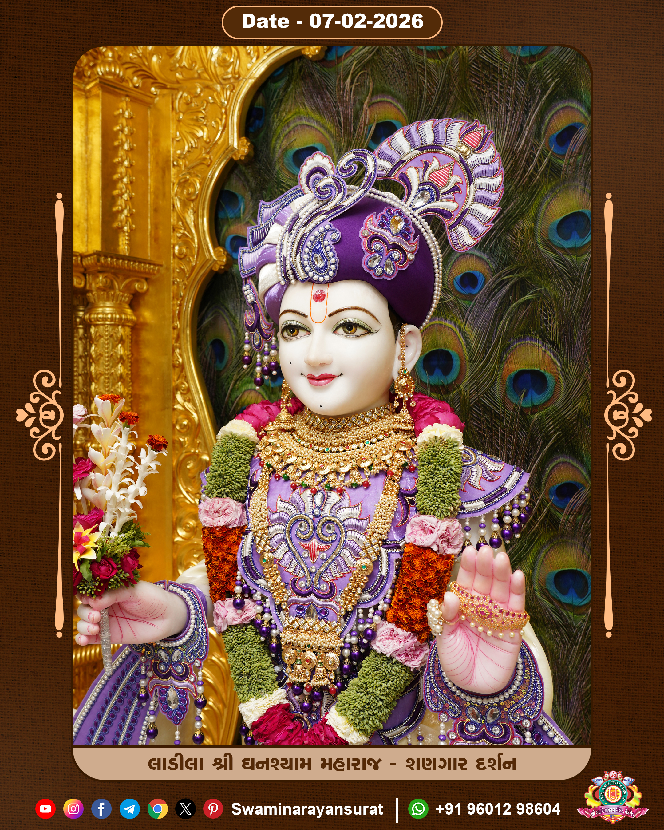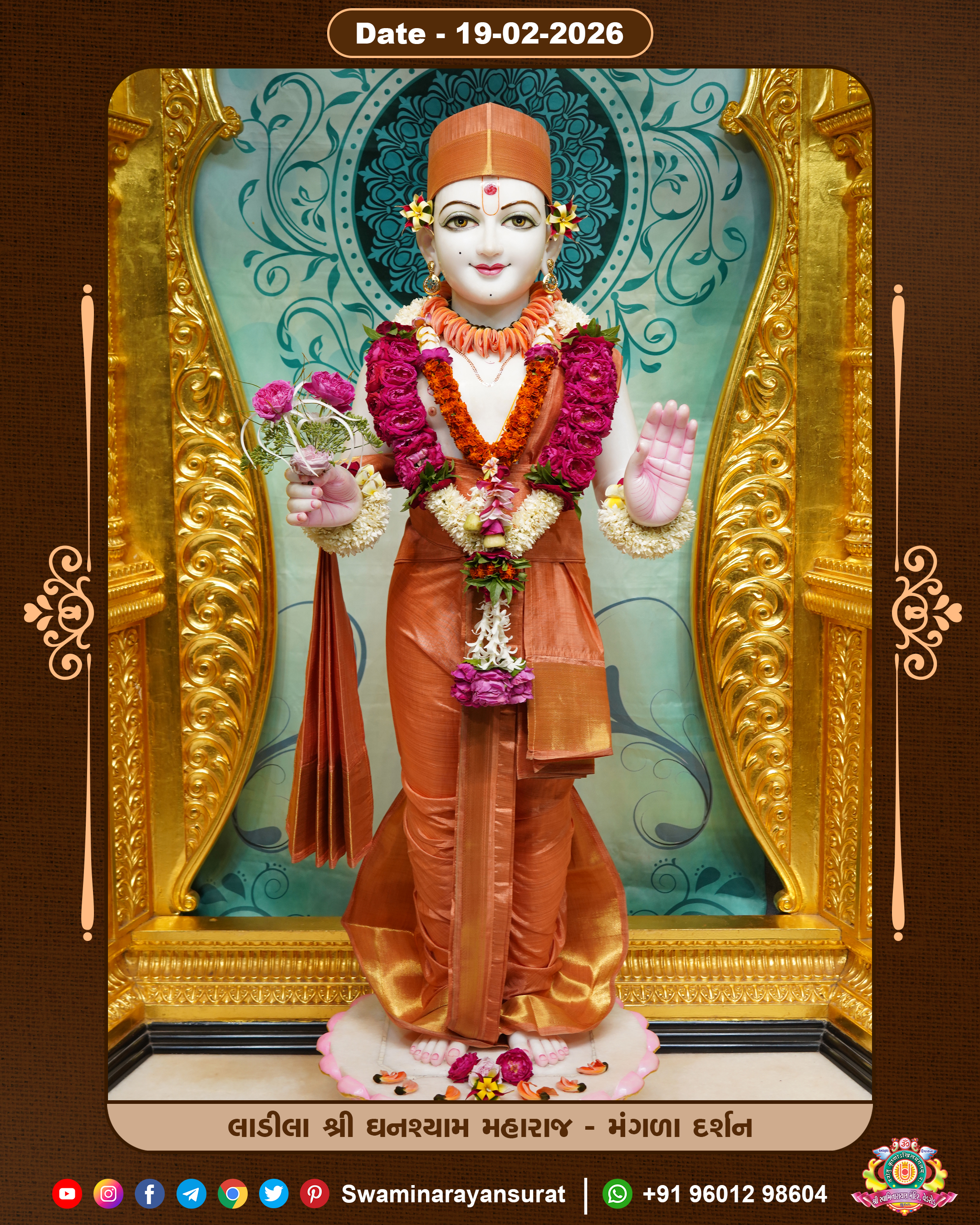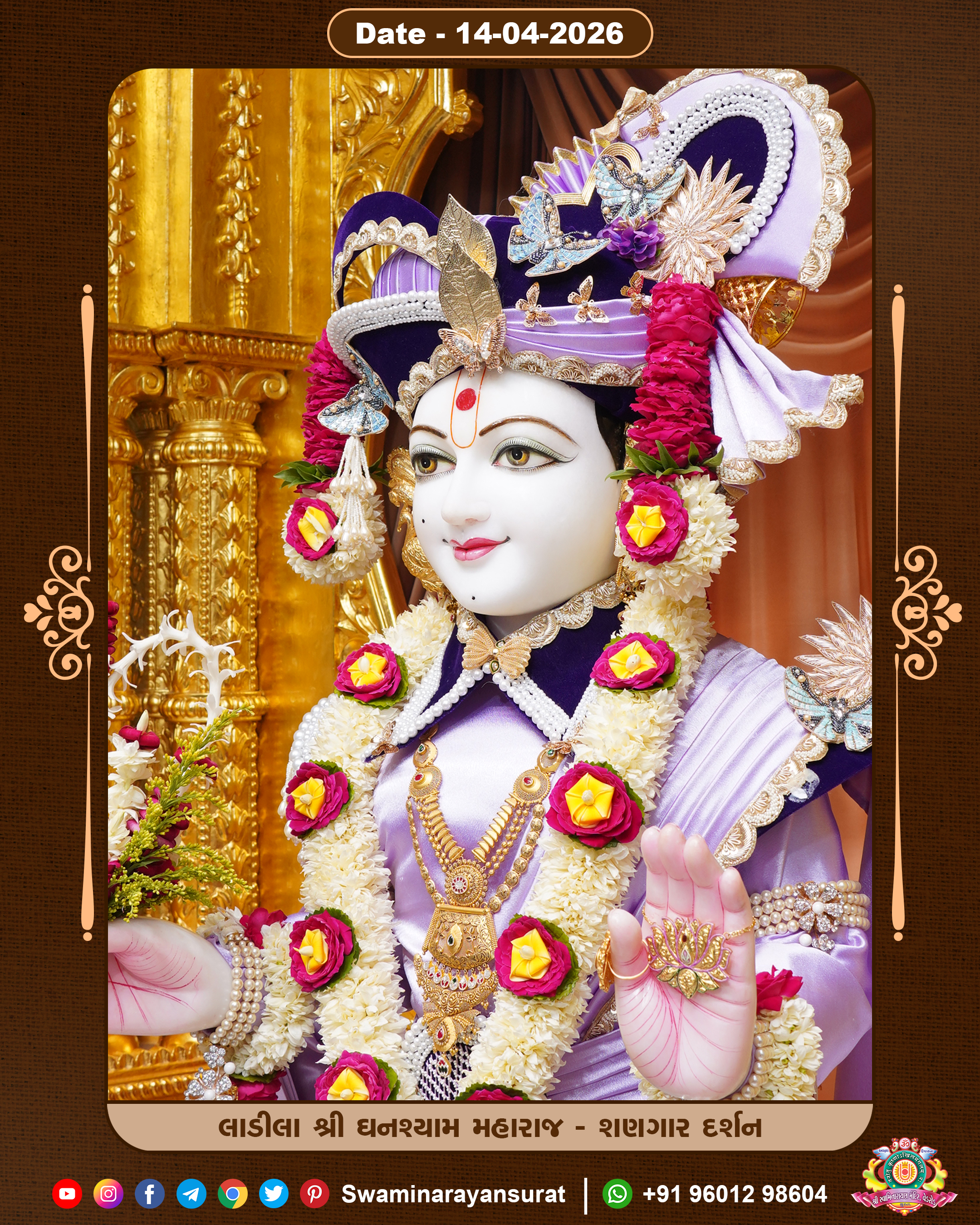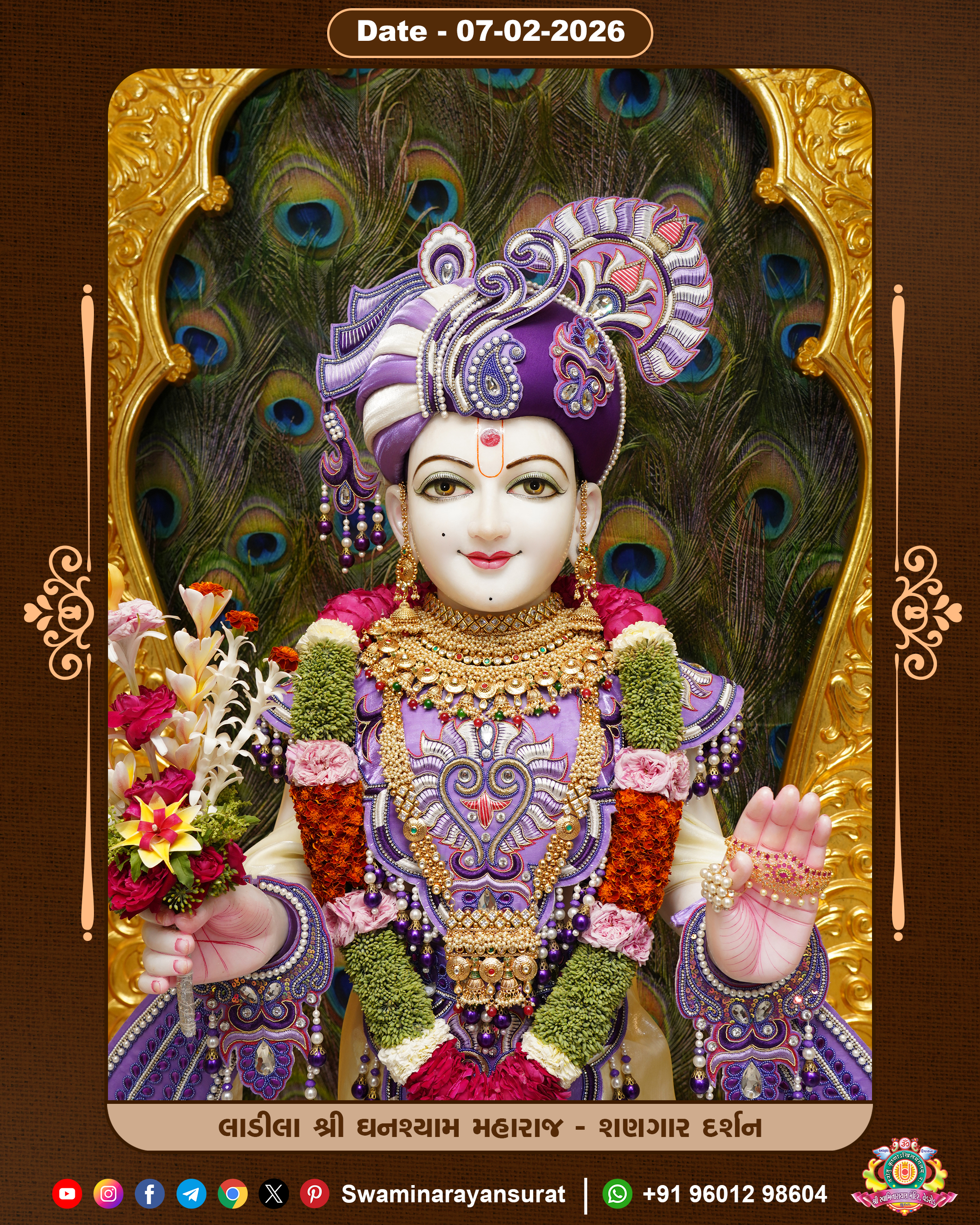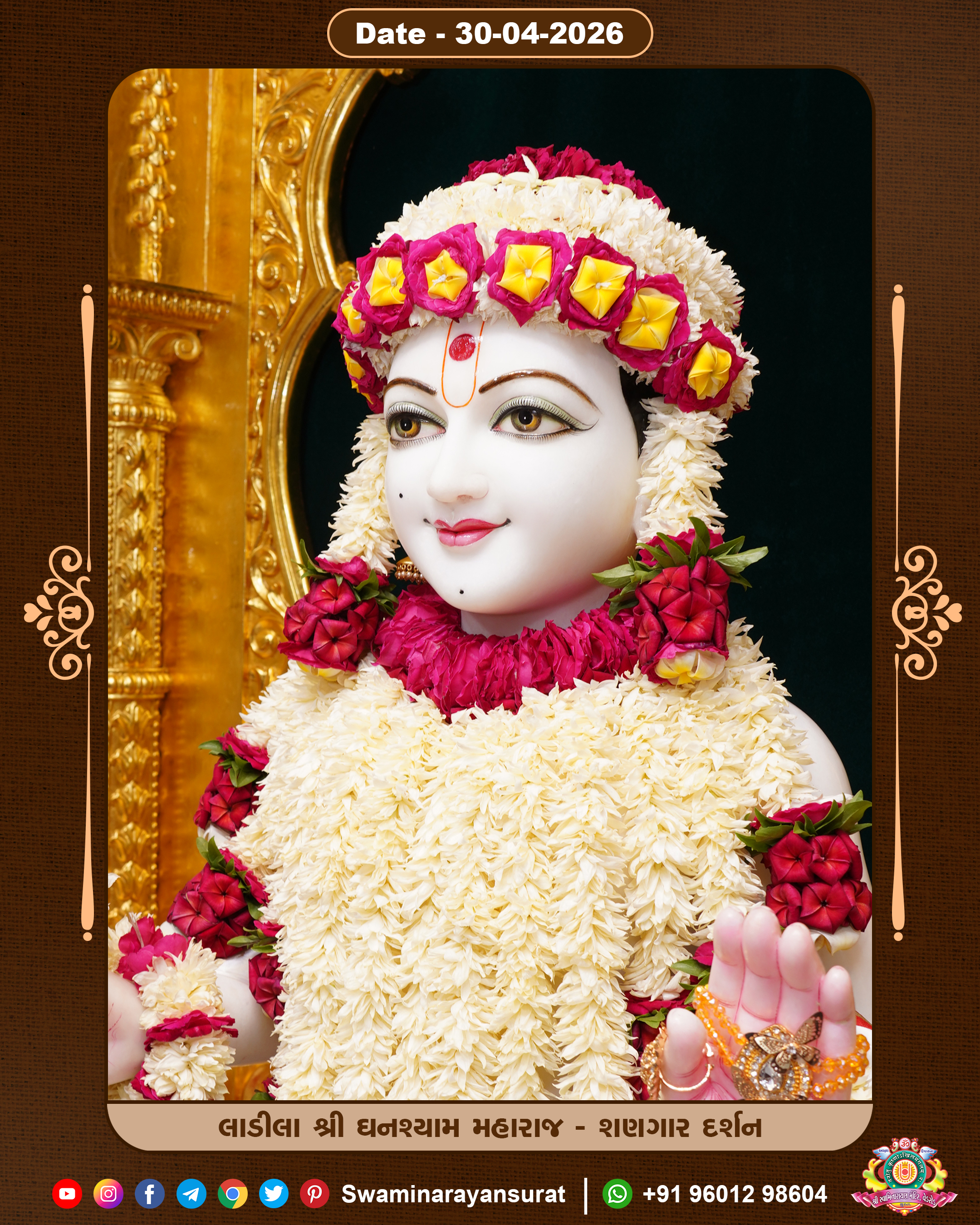 Shree Swaminarayan Temple, VedRoad is a Spiritual Organization Which falls under the region Of Vadtal Temple (The Headquarter Of Laxminarayan Dev Gadi). It is the First Organization Which is Constructed By Pink Stone With Beautiful and Marvellous Carving in Surat Of Swaminarayan Sampraday, Vadtal desh Which is increasing Pride & Prestige of Surat City, This temple contains One Main Shrine under which the idol of Ladila Shree Ghanshyam Maharaj is installed. P. Pu. Sadguru Shree Prabhucharandasji Swami is the Creator of this divine Organization. By the Several Activities & appearance Many devotees feels Easy in difficult Circumstances. He with his approx. 15 Saints & Devotees does Several Social & Spiritual Activities to fulfill the goal of Swaminarayan Sampraday, to do Worship with religious practices.