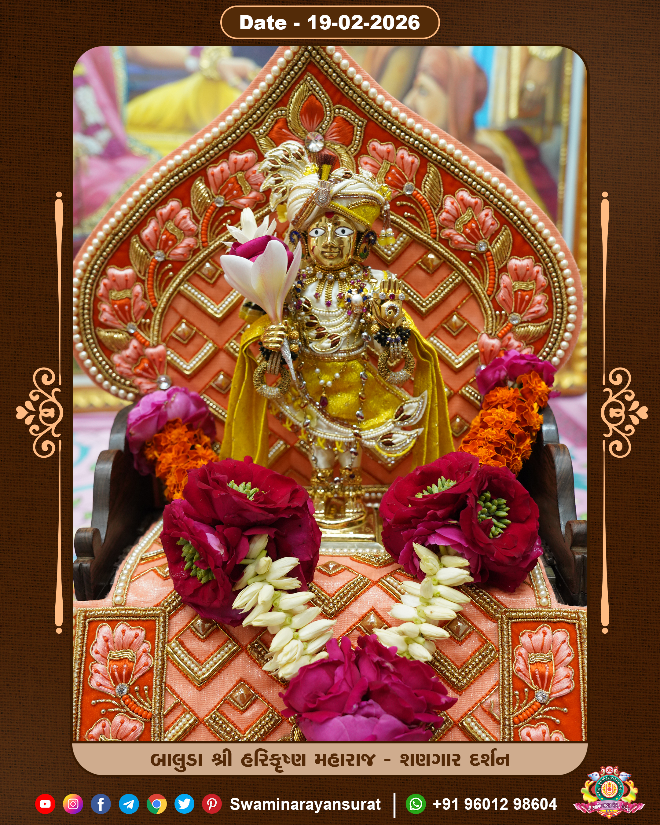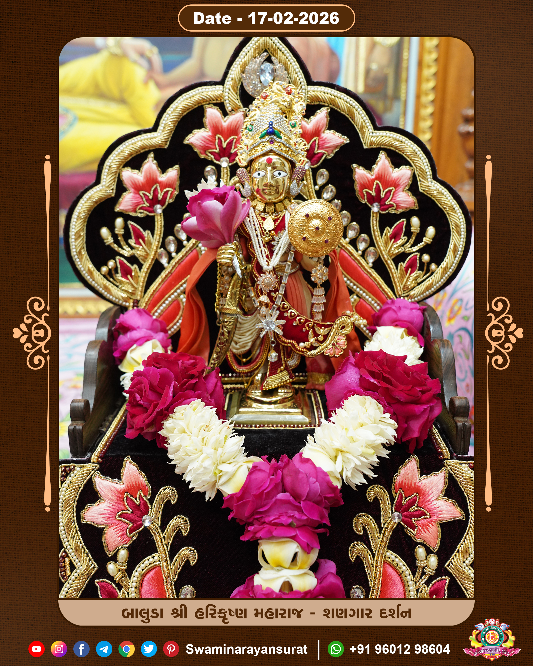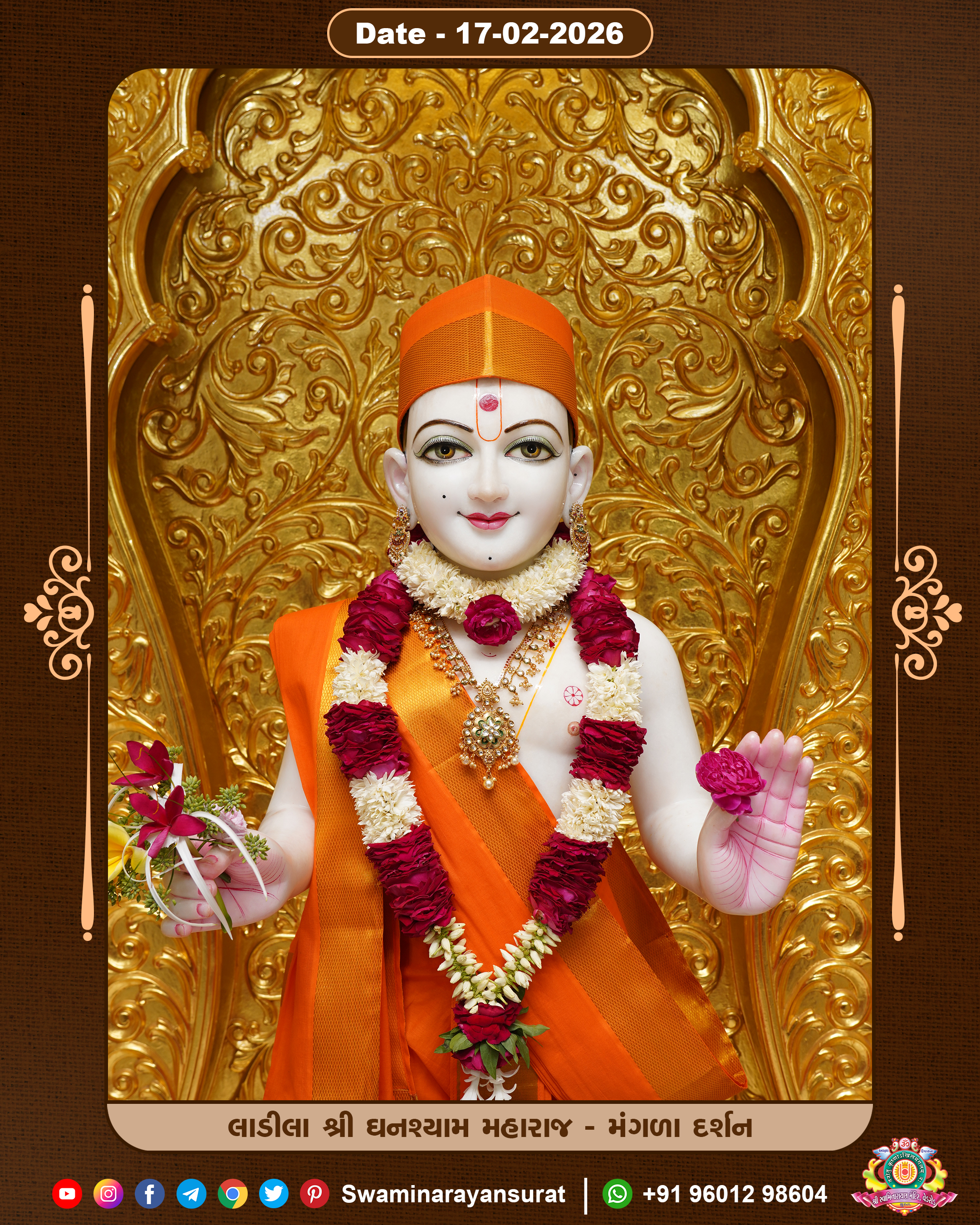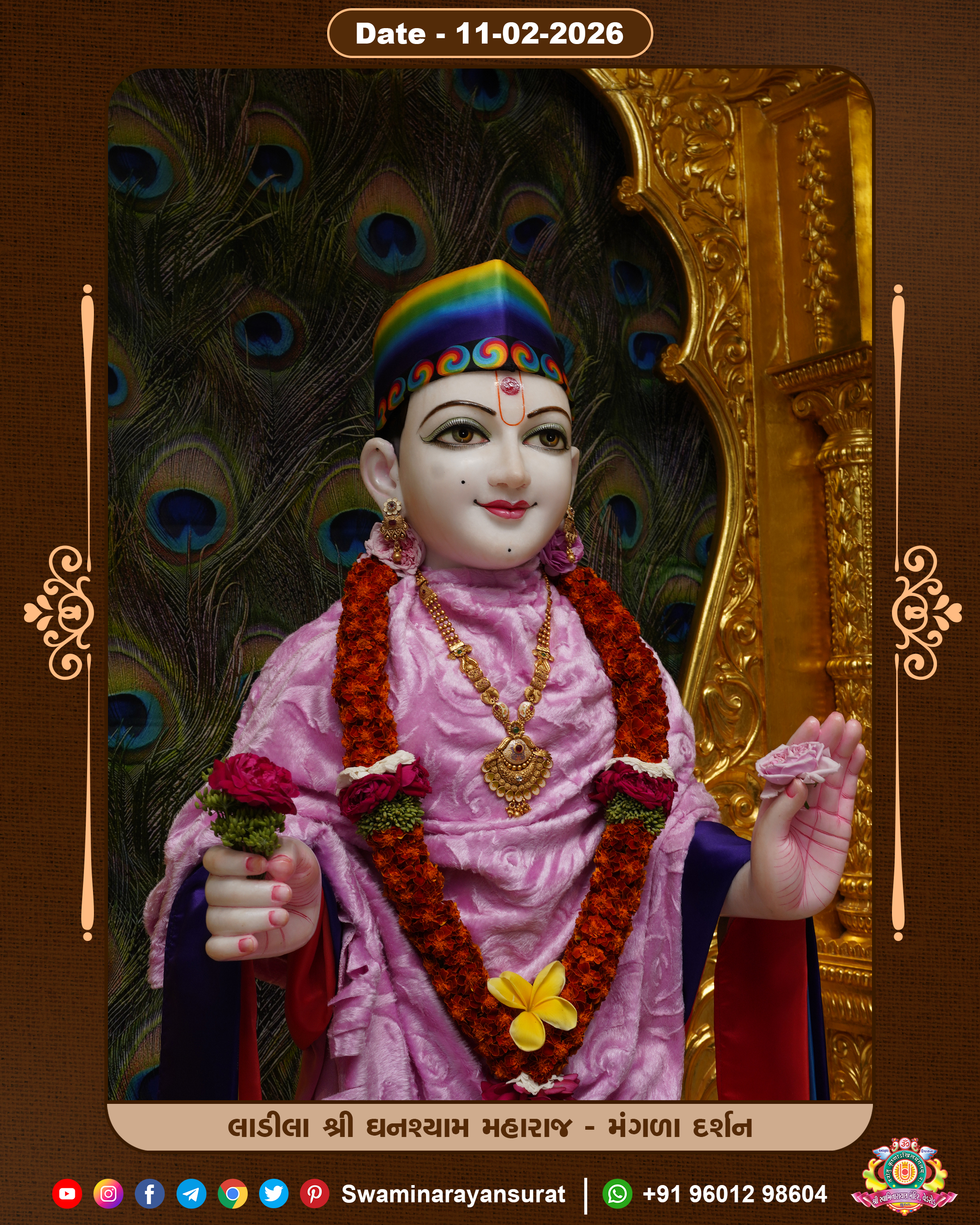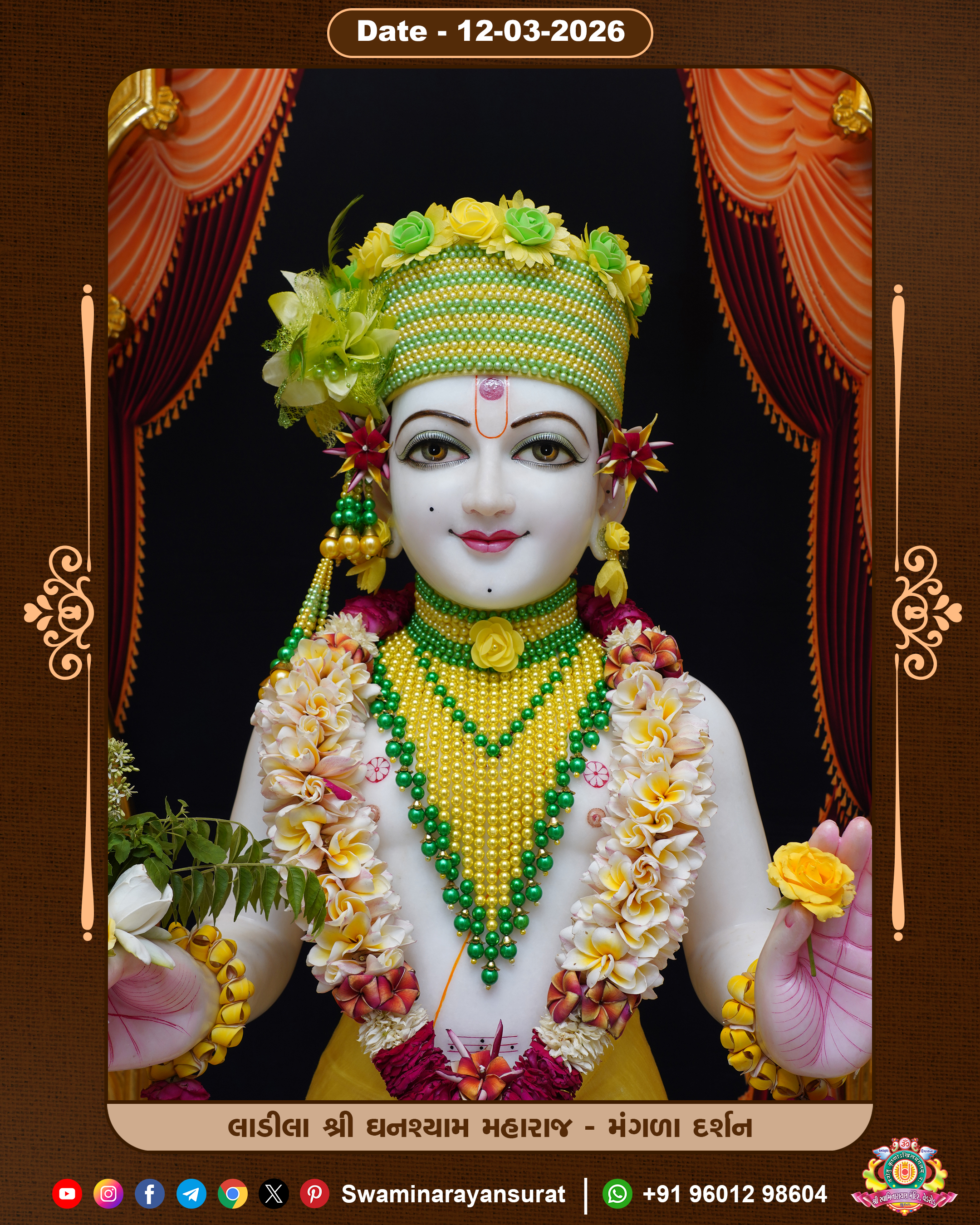 Shree Swaminarayan Temple, VedRoad is a Spiritual Organization Which falls under the region Of Vadtal Temple (The Headquarter Of Laxminarayan Dev Gadi). It is the First Organization Which is Constructed By Pink Stone With Beautiful and Marvellous Carving in Surat Of Swaminarayan Sampraday, Vadtal desh Which is increasing Pride & Prestige of Surat City, This temple contains One Main Shrine under which the idol of Ladila Shree Ghanshyam Maharaj is installed. P. Pu. Sadguru Shree Prabhucharandasji Swami is the Creator of this divine Organization. By the Several Activities & appearance Many devotees feels Easy in difficult Circumstances. He with his approx. 15 Saints & Devotees does Several Social & Spiritual Activities to fulfill the goal of Swaminarayan Sampraday, to do Worship with religious practices.