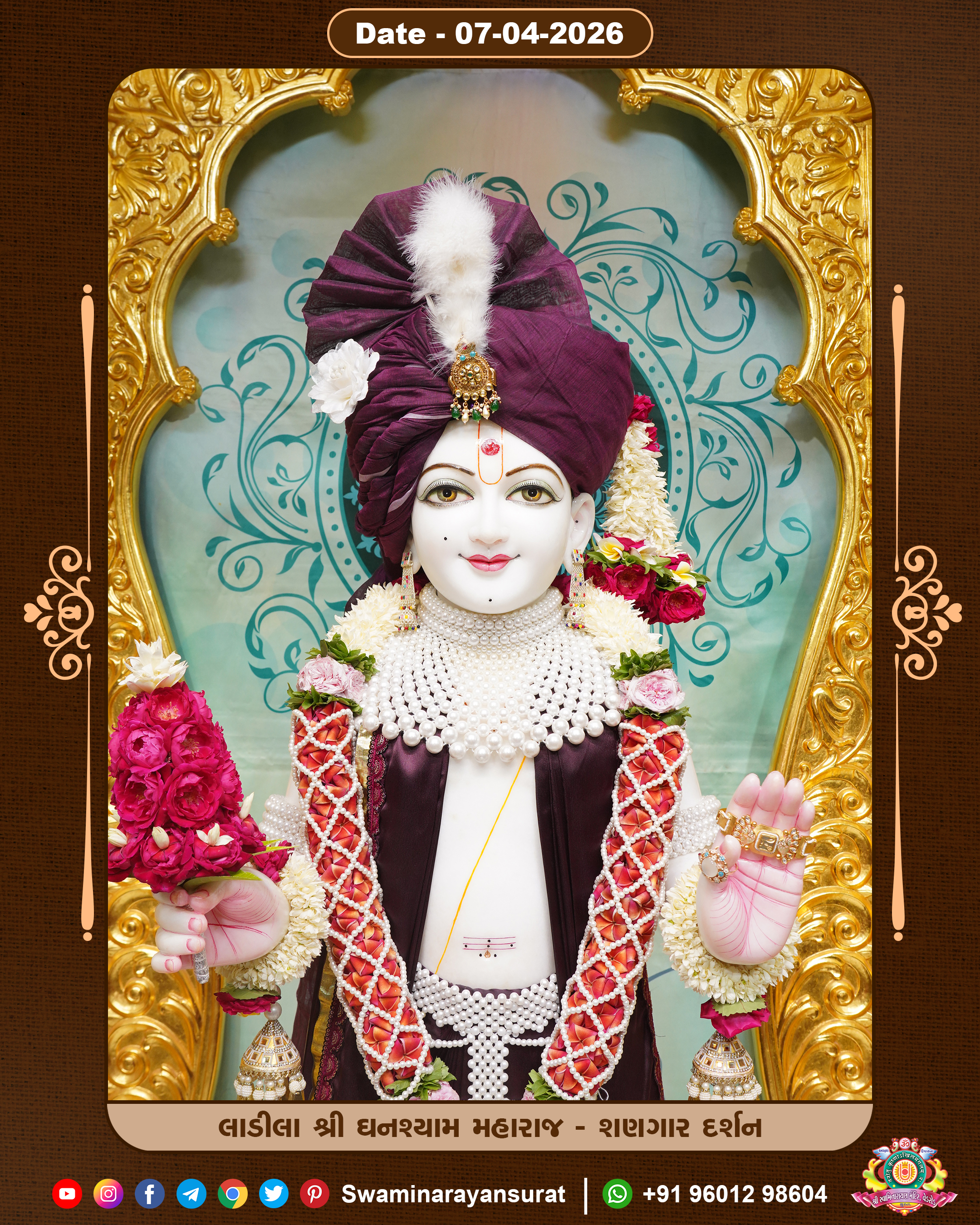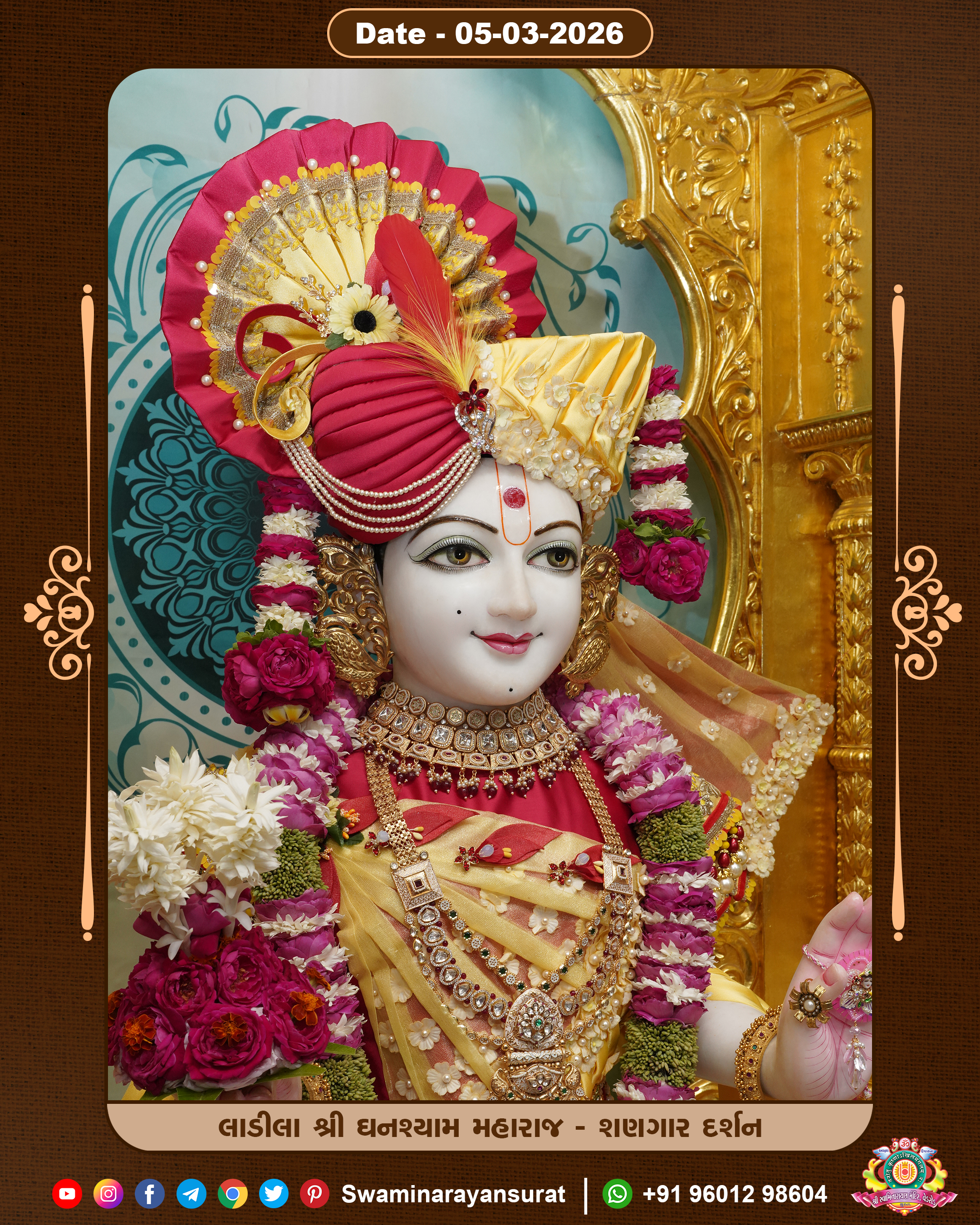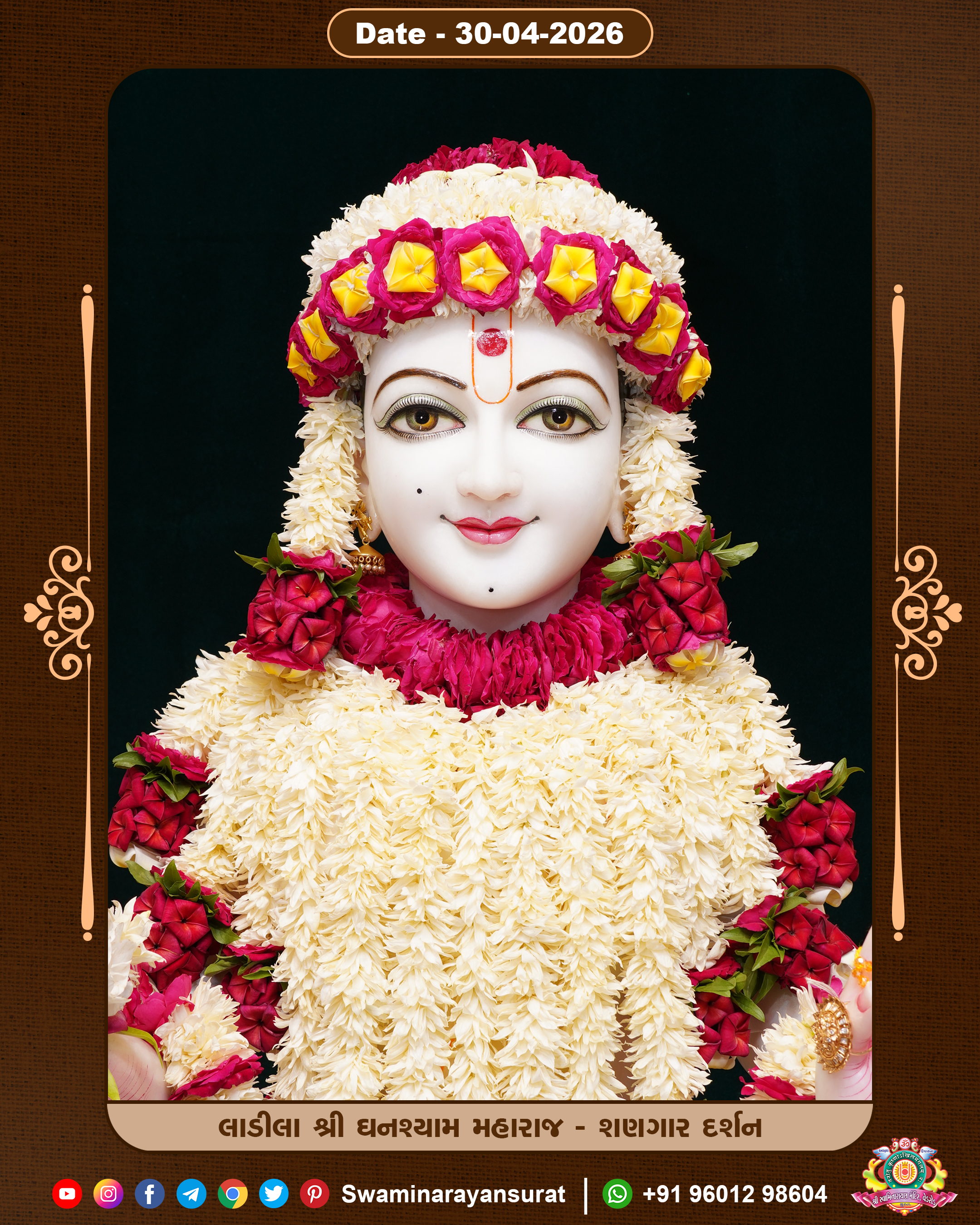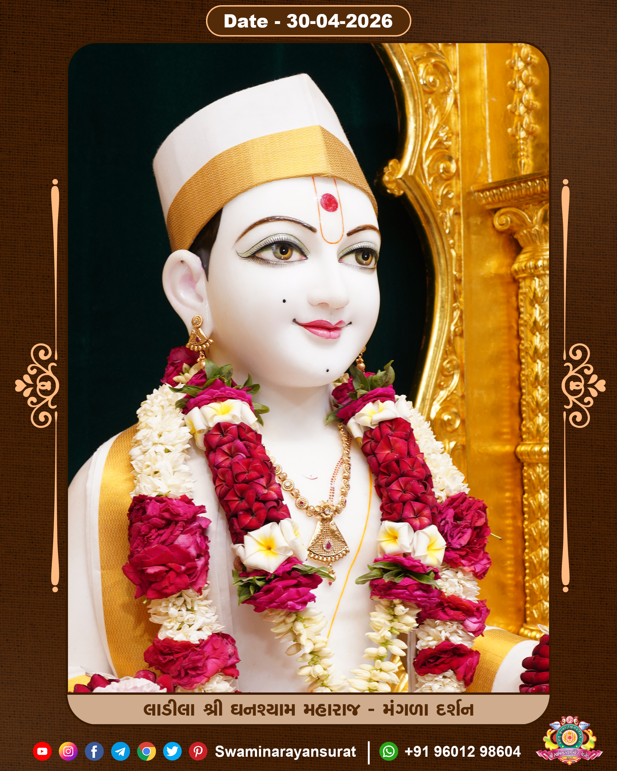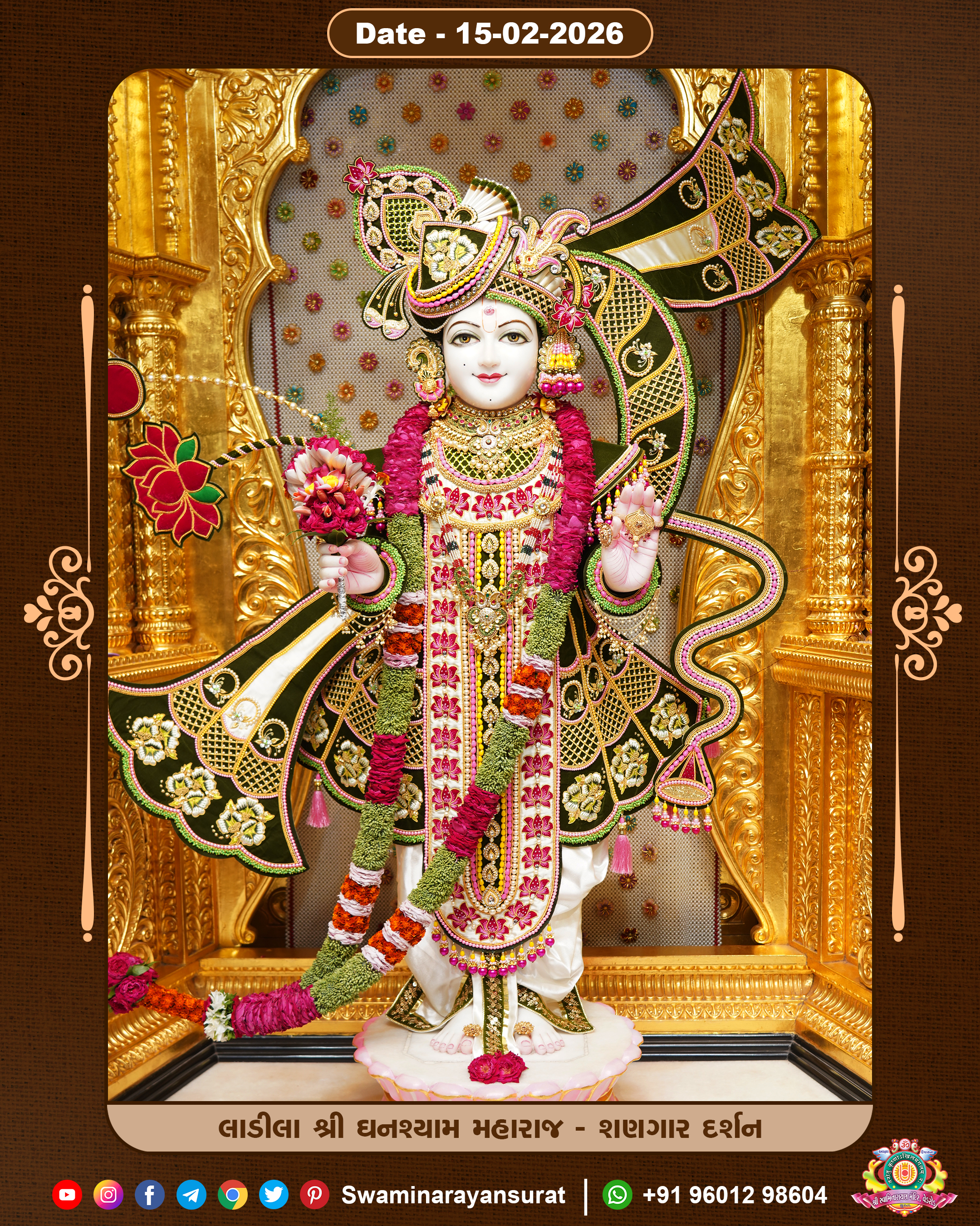 Shree Swaminarayan Temple, VedRoad is a Spiritual Organization Which falls under the region Of Vadtal Temple (The Headquarter Of Laxminarayan Dev Gadi). It is the First Organization Which is Constructed By Pink Stone With Beautiful and Marvellous Carving in Surat Of Swaminarayan Sampraday, Vadtal desh Which is increasing Pride & Prestige of Surat City, This temple contains One Main Shrine under which the idol of Ladila Shree Ghanshyam Maharaj is installed. P. Pu. Sadguru Shree Prabhucharandasji Swami is the Creator of this divine Organization. By the Several Activities & appearance Many devotees feels Easy in difficult Circumstances. He with his approx. 15 Saints & Devotees does Several Social & Spiritual Activities to fulfill the goal of Swaminarayan Sampraday, to do Worship with religious practices.