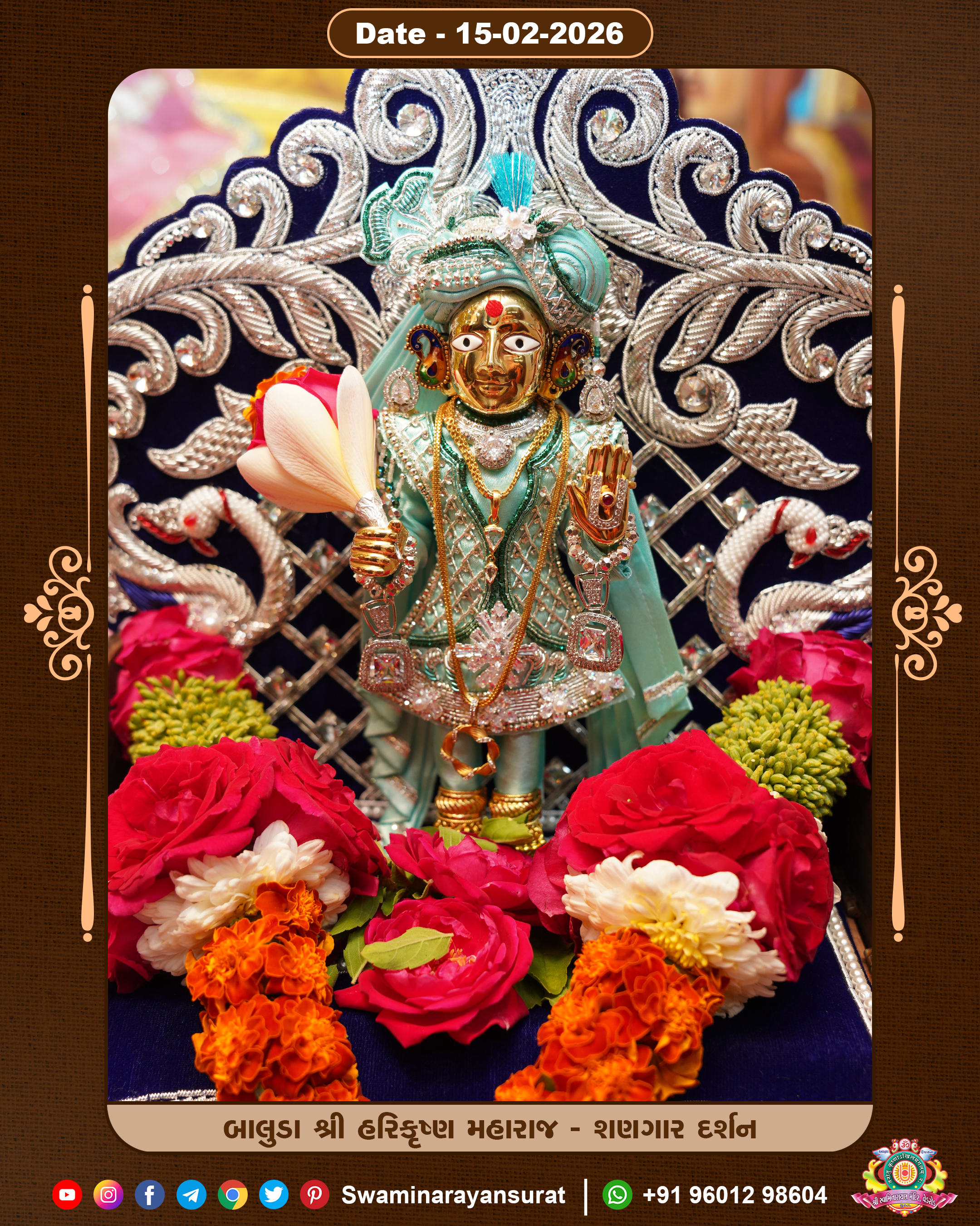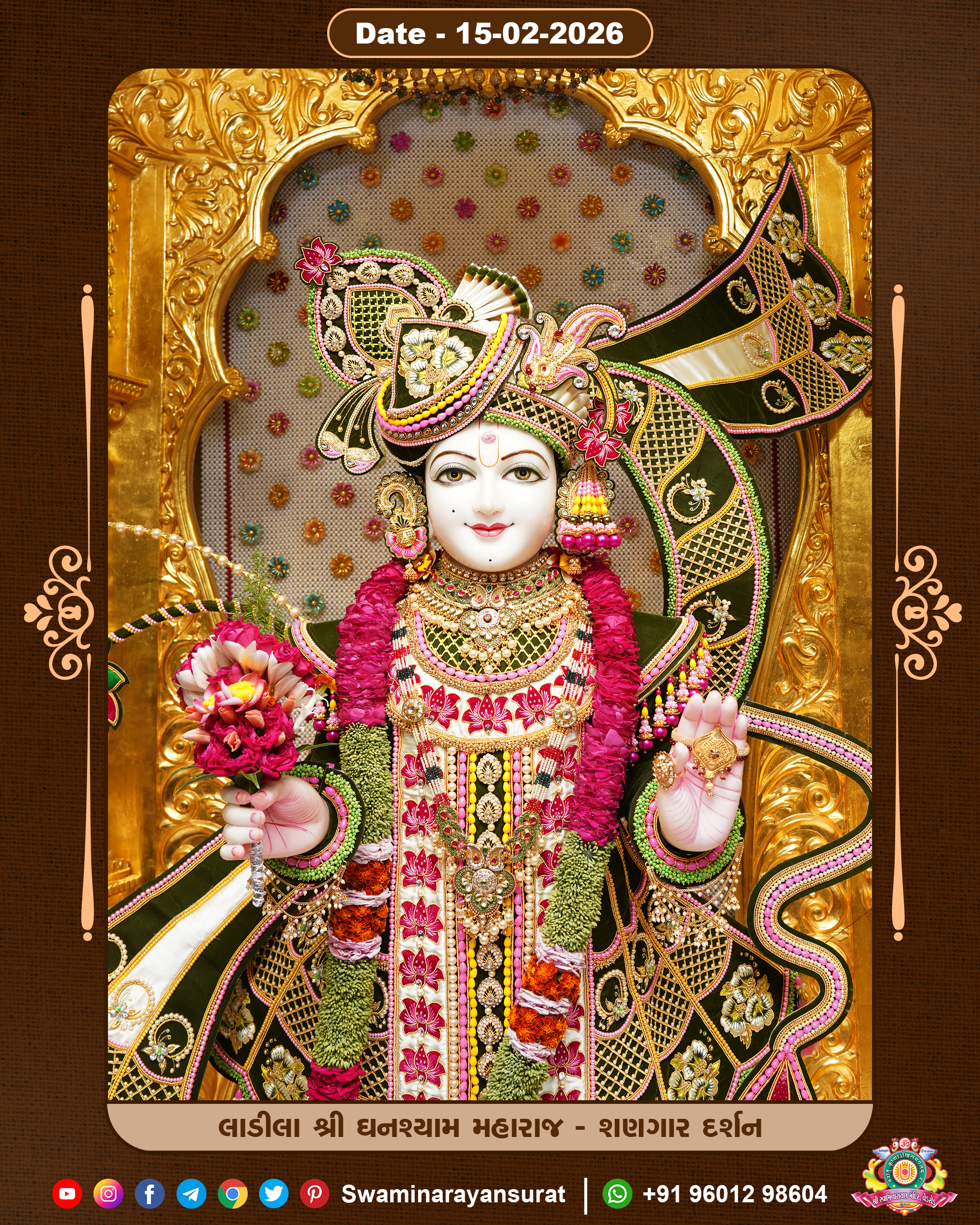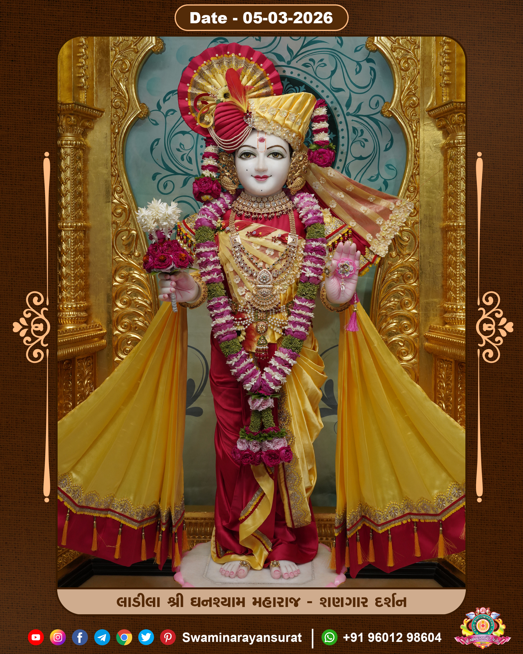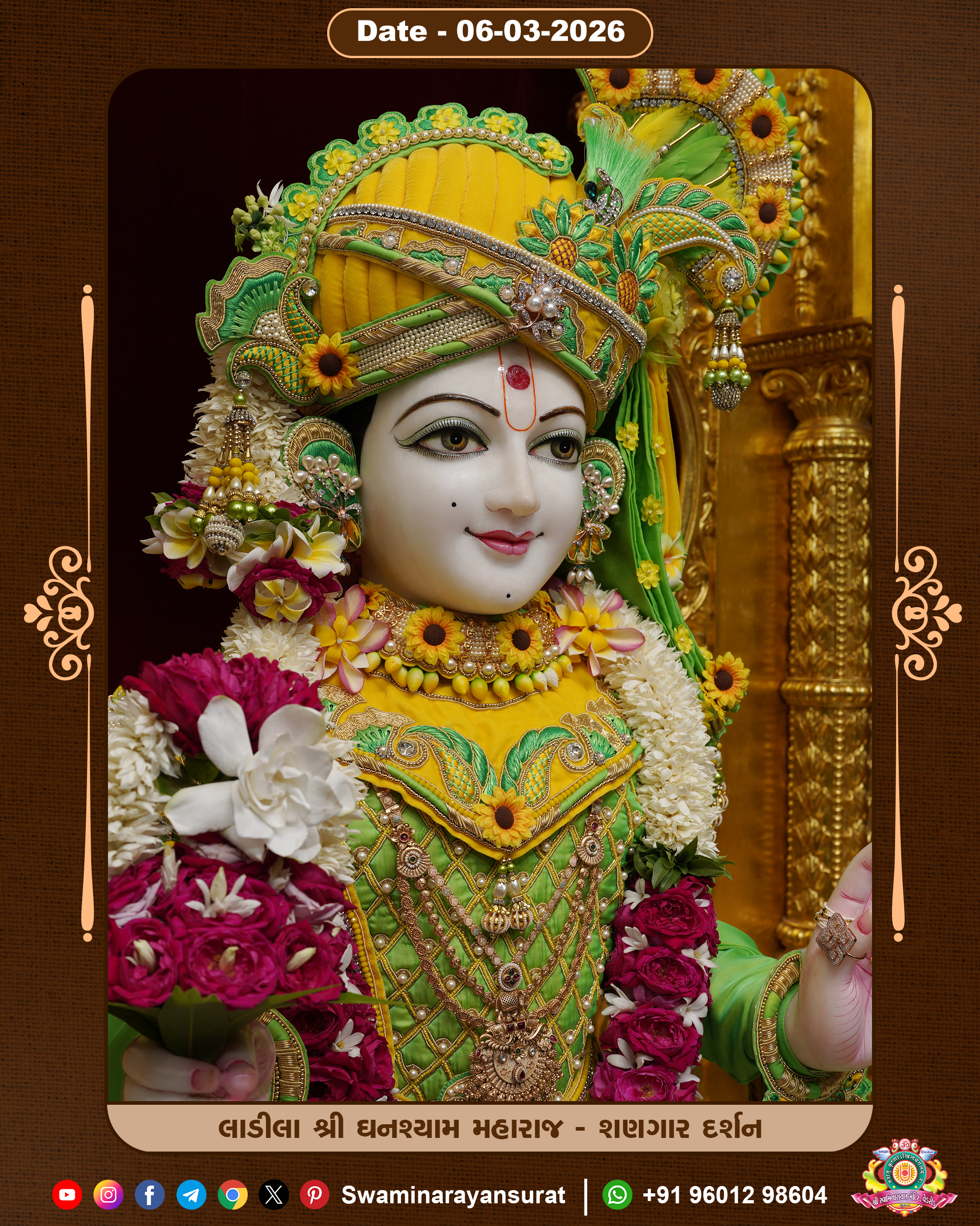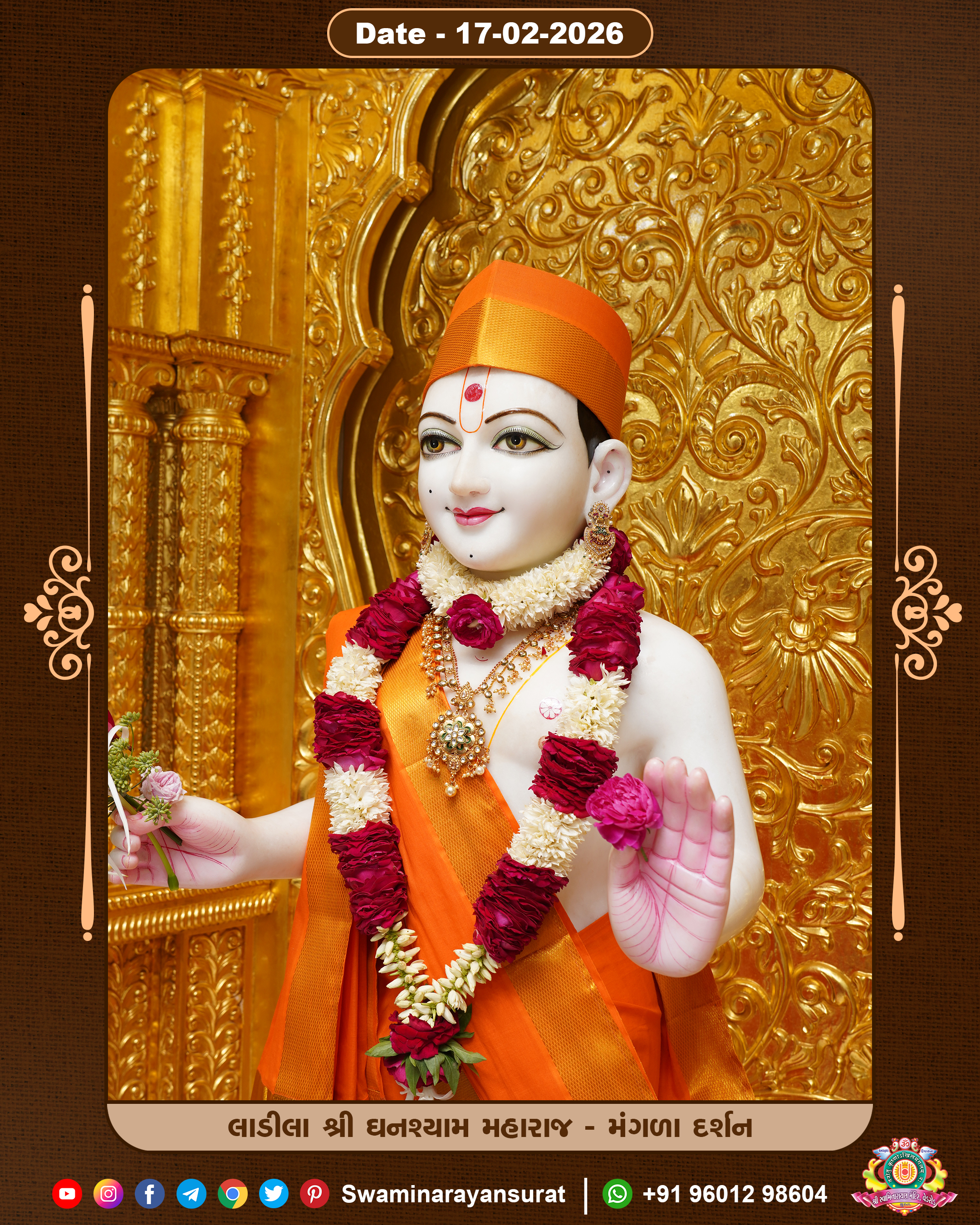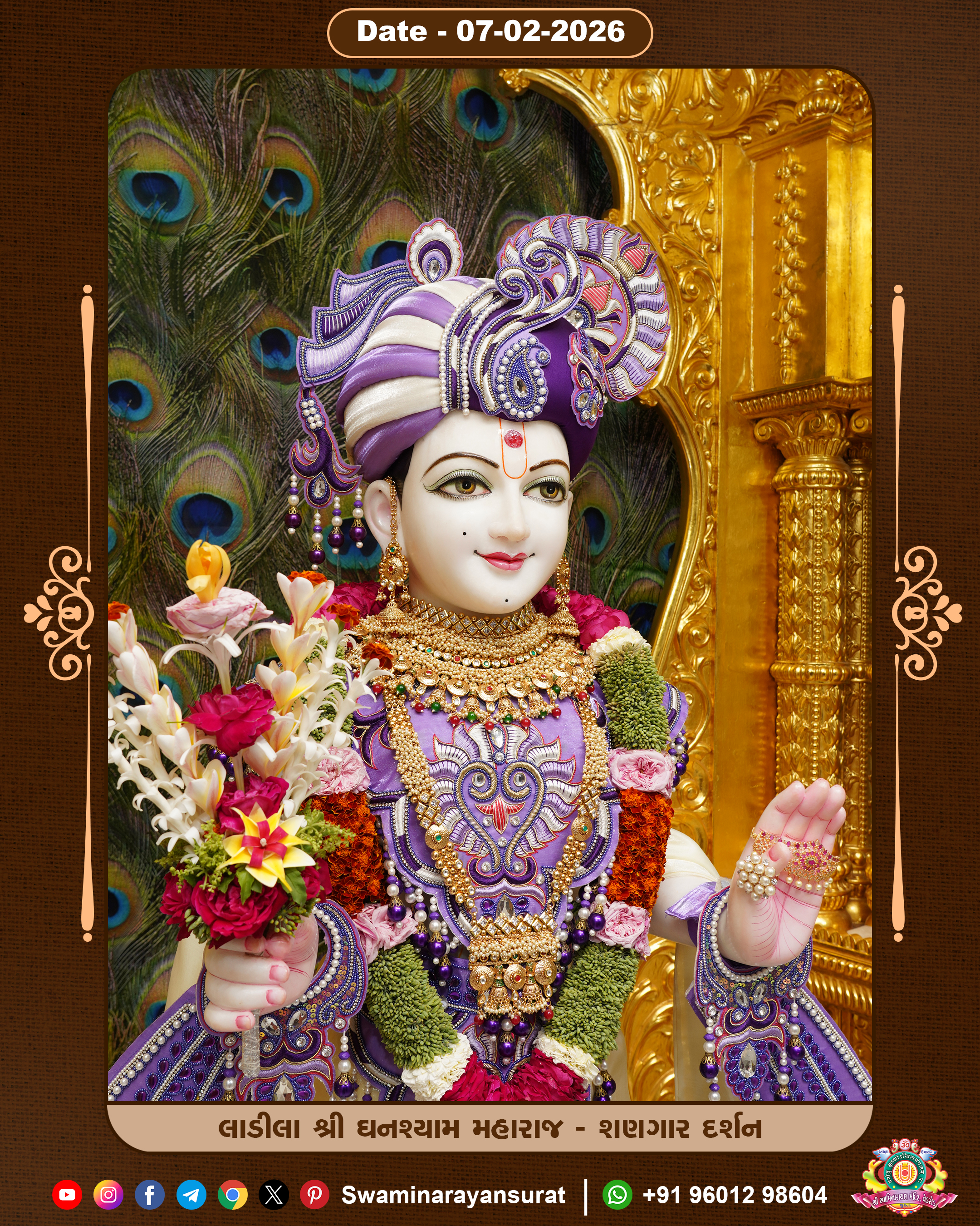 Shree Swaminarayan Temple, VedRoad is a Spiritual Organization Which falls under the region Of Vadtal Temple (The Headquarter Of Laxminarayan Dev Gadi). It is the First Organization Which is Constructed By Pink Stone With Beautiful and Marvellous Carving in Surat Of Swaminarayan Sampraday, Vadtal desh Which is increasing Pride & Prestige of Surat City, This temple contains One Main Shrine under which the idol of Ladila Shree Ghanshyam Maharaj is installed. P. Pu. Sadguru Shree Prabhucharandasji Swami is the Creator of this divine Organization. By the Several Activities & appearance Many devotees feels Easy in difficult Circumstances. He with his approx. 15 Saints & Devotees does Several Social & Spiritual Activities to fulfill the goal of Swaminarayan Sampraday, to do Worship with religious practices.