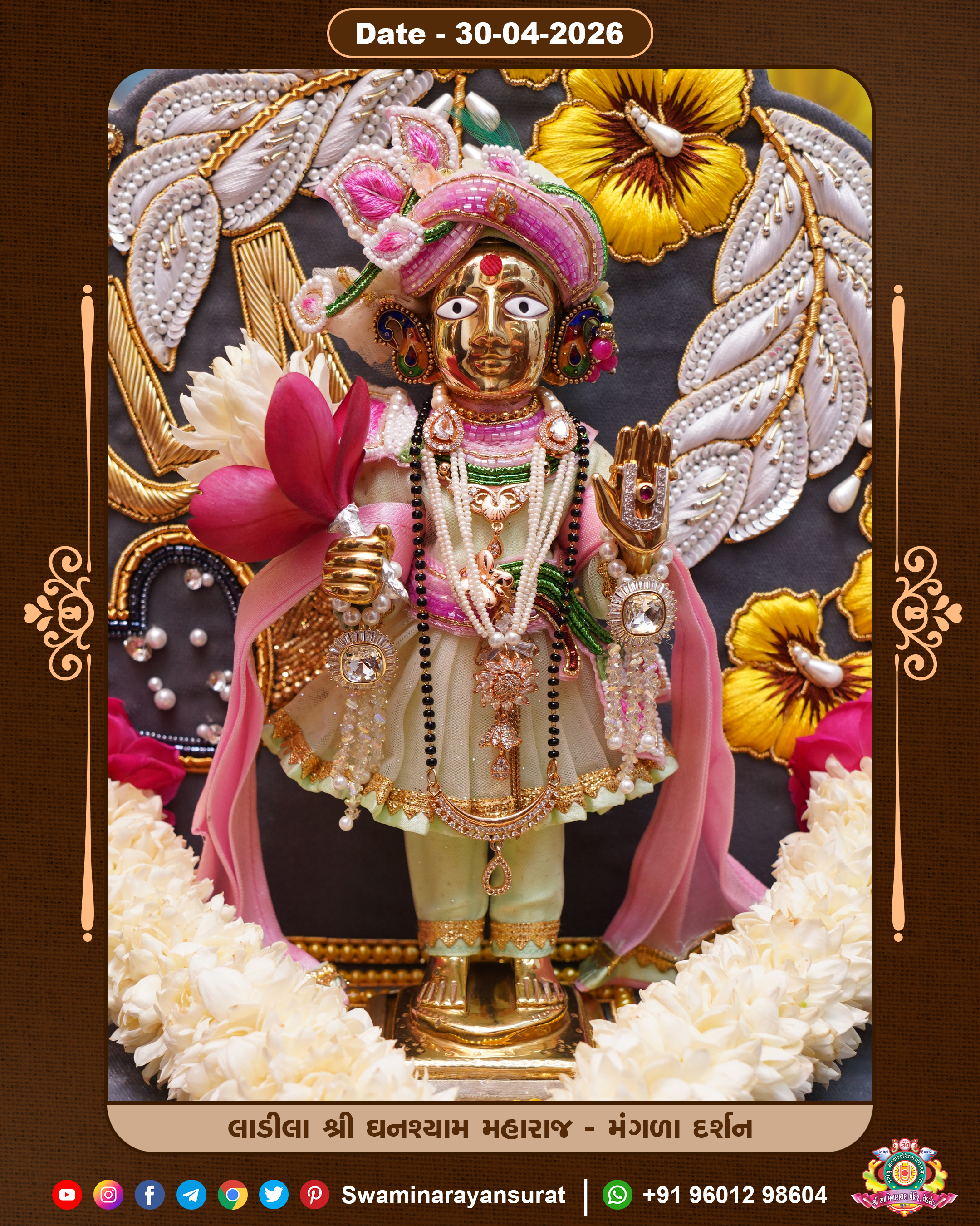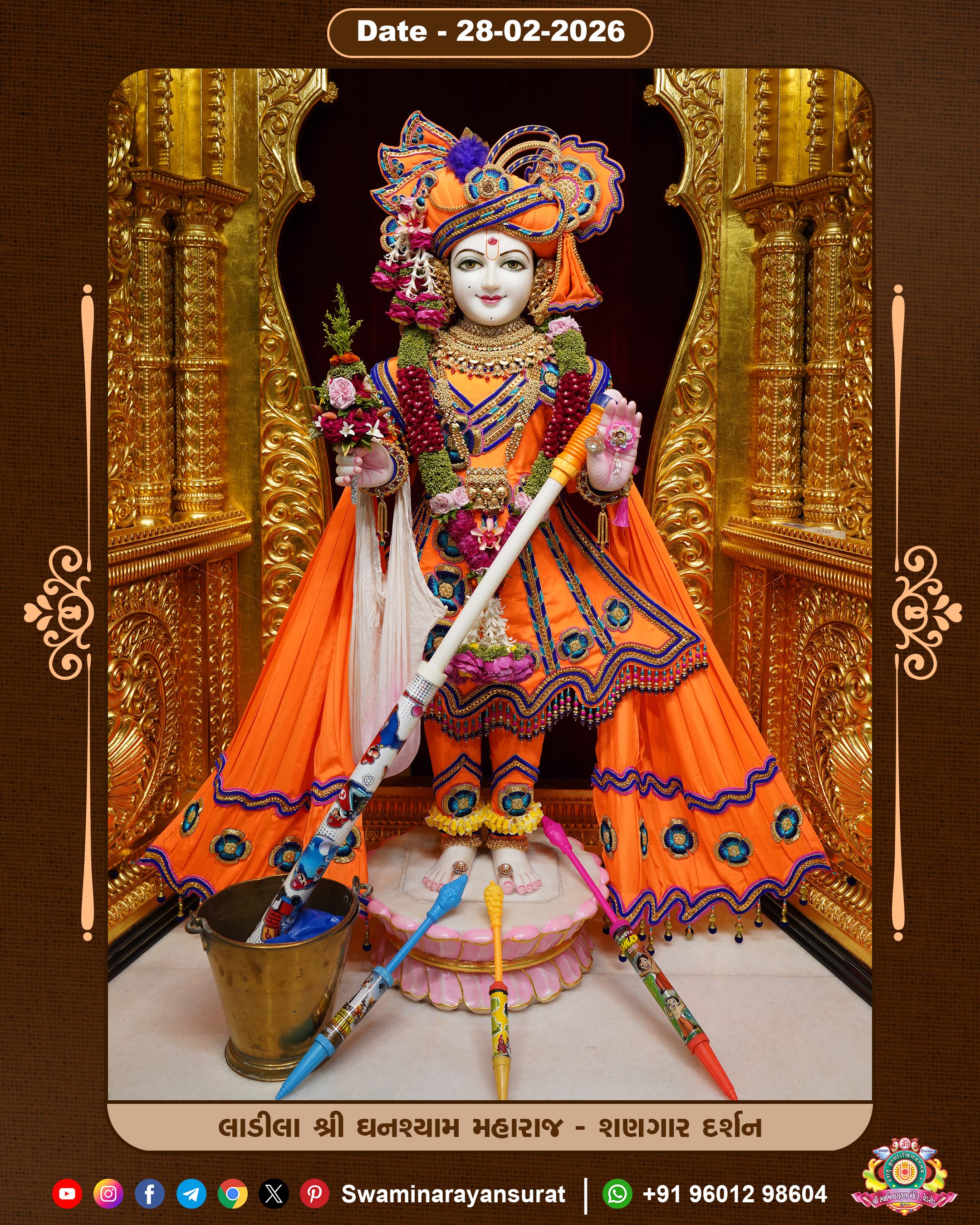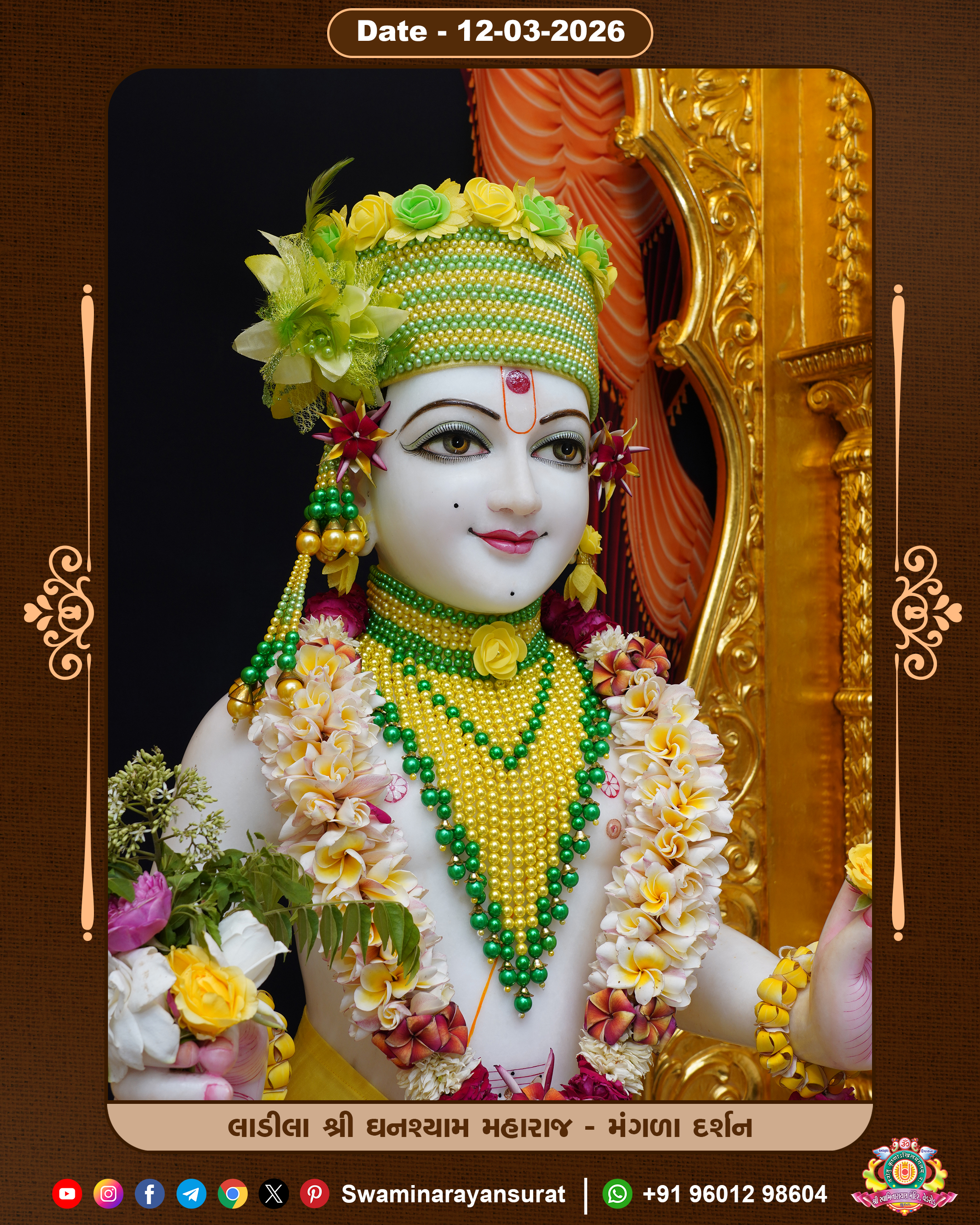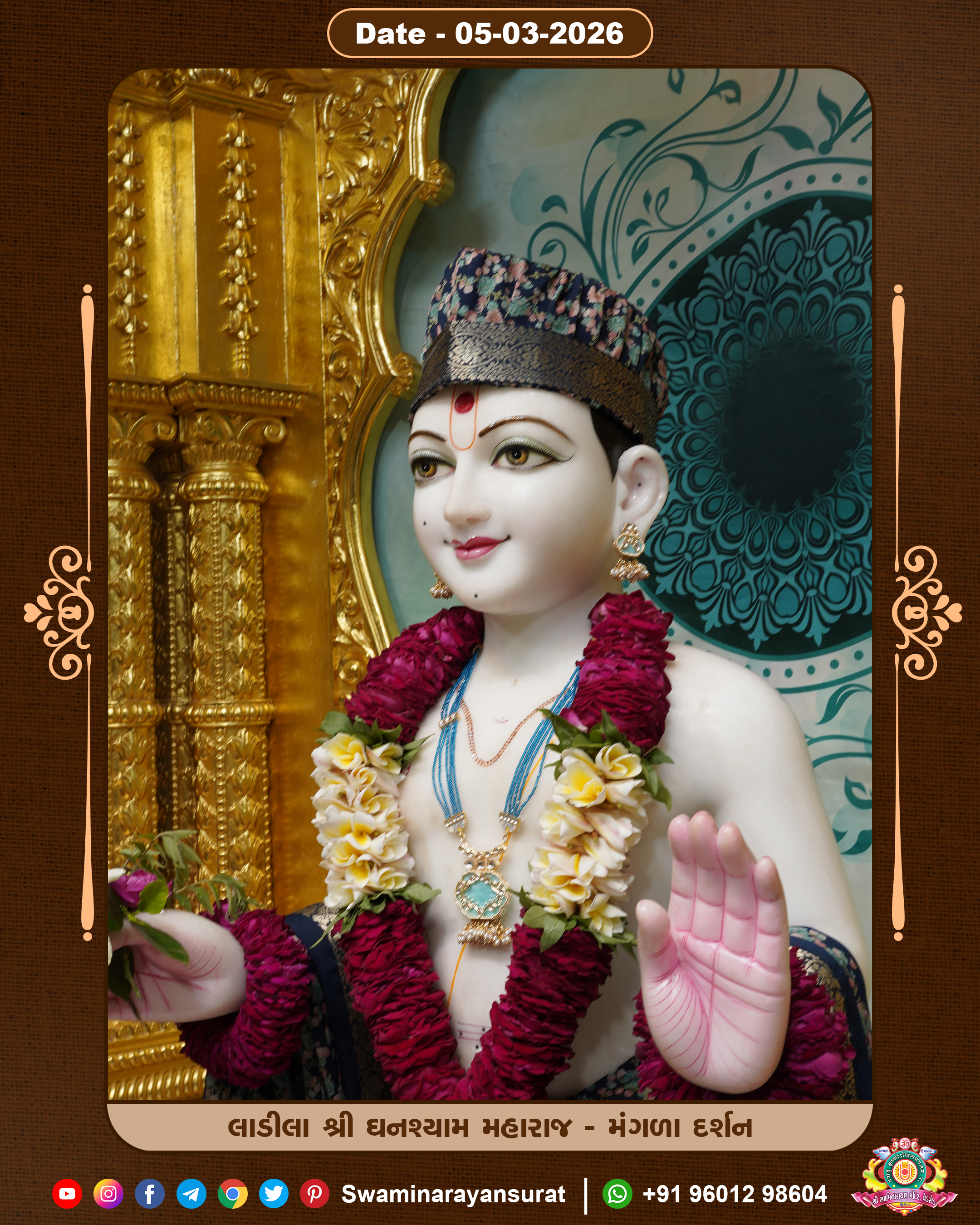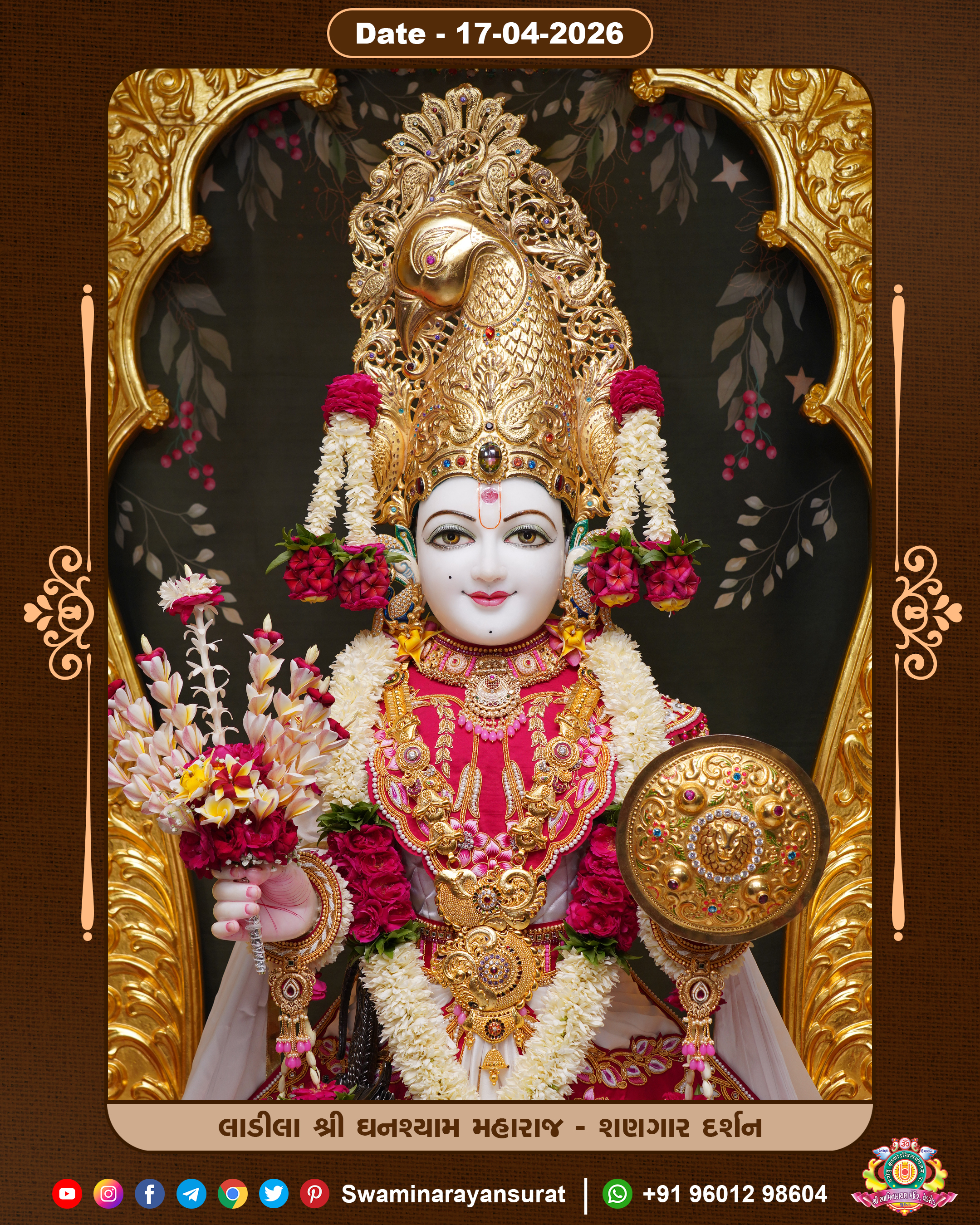 Shree Swaminarayan Temple, VedRoad is a Spiritual Organization Which falls under the region Of Vadtal Temple (The Headquarter Of Laxminarayan Dev Gadi). It is the First Organization Which is Constructed By Pink Stone With Beautiful and Marvellous Carving in Surat Of Swaminarayan Sampraday, Vadtal desh Which is increasing Pride & Prestige of Surat City, This temple contains One Main Shrine under which the idol of Ladila Shree Ghanshyam Maharaj is installed. P. Pu. Sadguru Shree Prabhucharandasji Swami is the Creator of this divine Organization. By the Several Activities & appearance Many devotees feels Easy in difficult Circumstances. He with his approx. 15 Saints & Devotees does Several Social & Spiritual Activities to fulfill the goal of Swaminarayan Sampraday, to do Worship with religious practices.