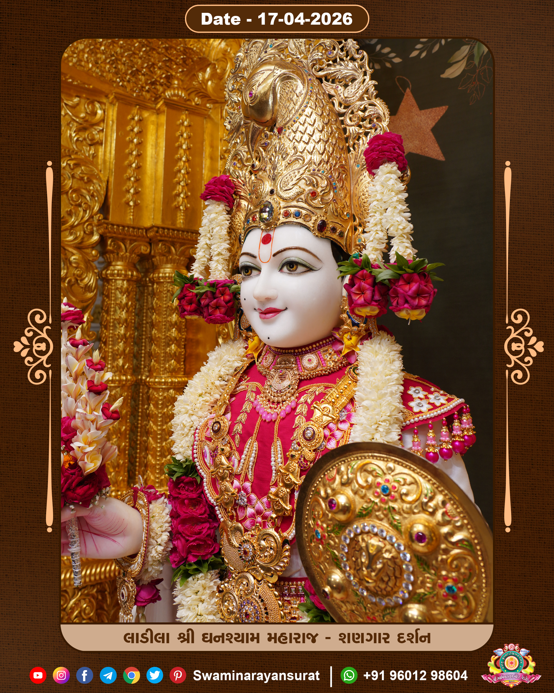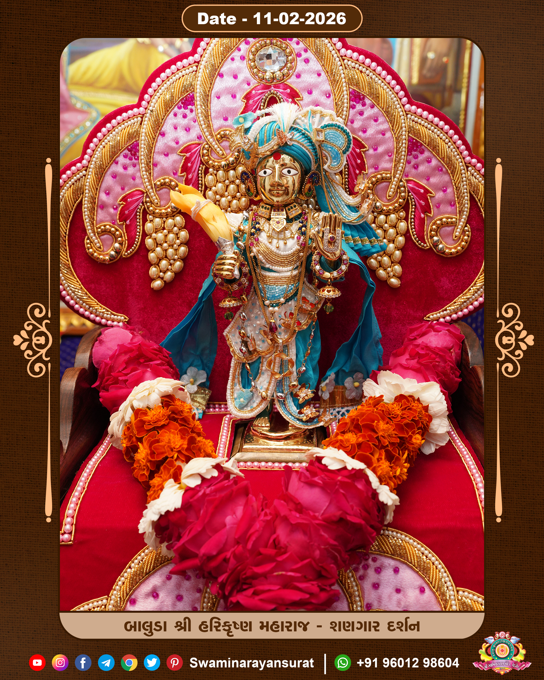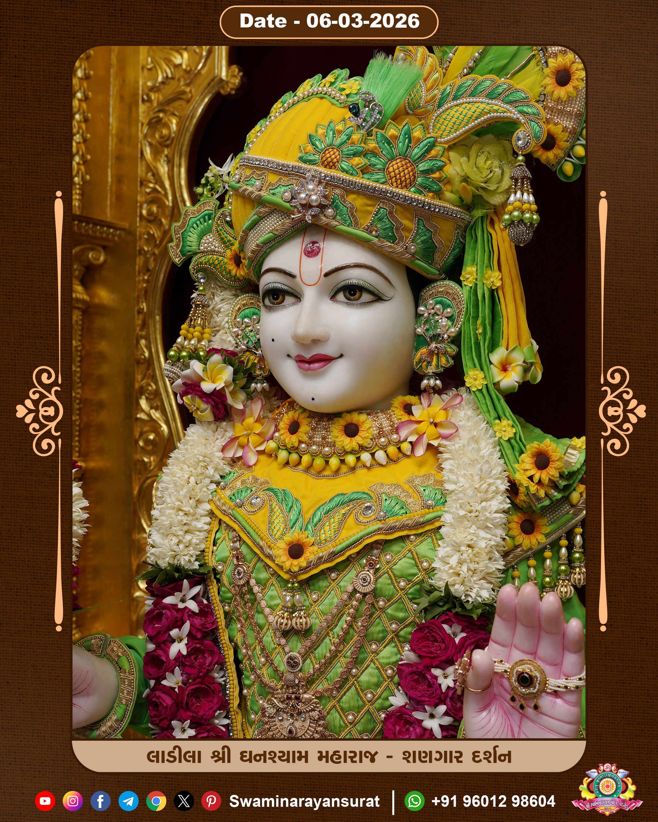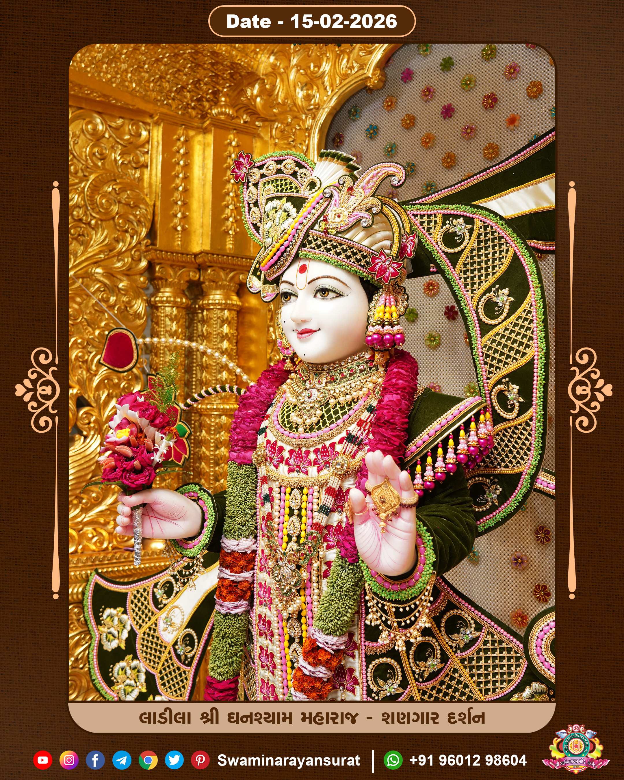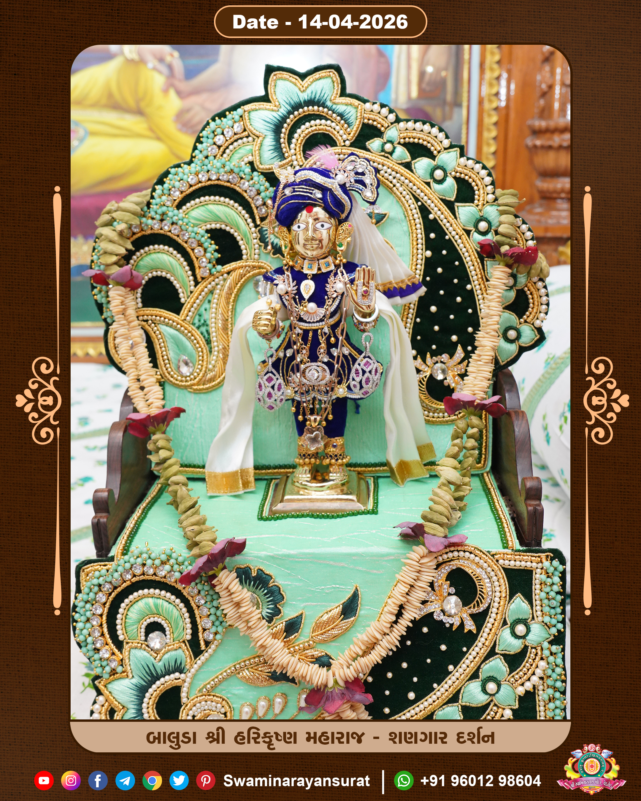 Shree Swaminarayan Temple, VedRoad is a Spiritual Organization Which falls under the region Of Vadtal Temple (The Headquarter Of Laxminarayan Dev Gadi). It is the First Organization Which is Constructed By Pink Stone With Beautiful and Marvellous Carving in Surat Of Swaminarayan Sampraday, Vadtal desh Which is increasing Pride & Prestige of Surat City, This temple contains One Main Shrine under which the idol of Ladila Shree Ghanshyam Maharaj is installed. P. Pu. Sadguru Shree Prabhucharandasji Swami is the Creator of this divine Organization. By the Several Activities & appearance Many devotees feels Easy in difficult Circumstances. He with his approx. 15 Saints & Devotees does Several Social & Spiritual Activities to fulfill the goal of Swaminarayan Sampraday, to do Worship with religious practices.