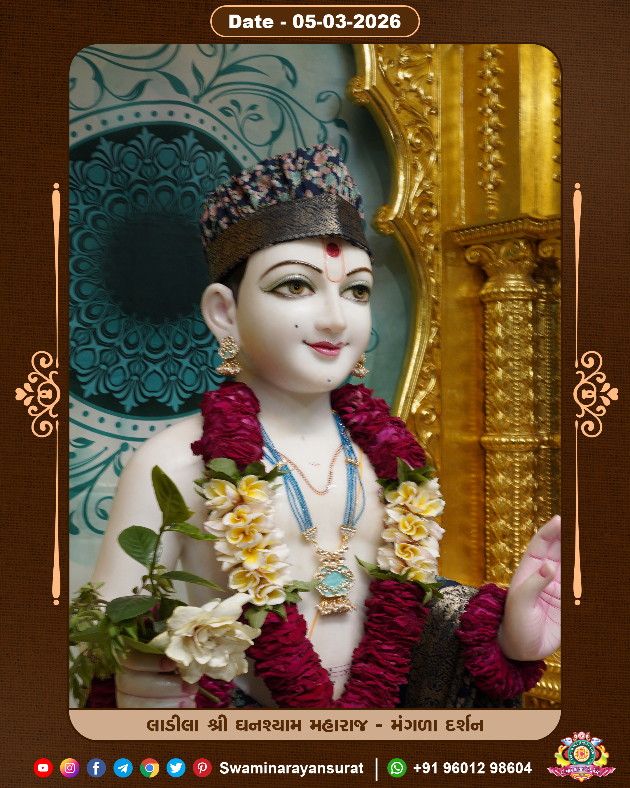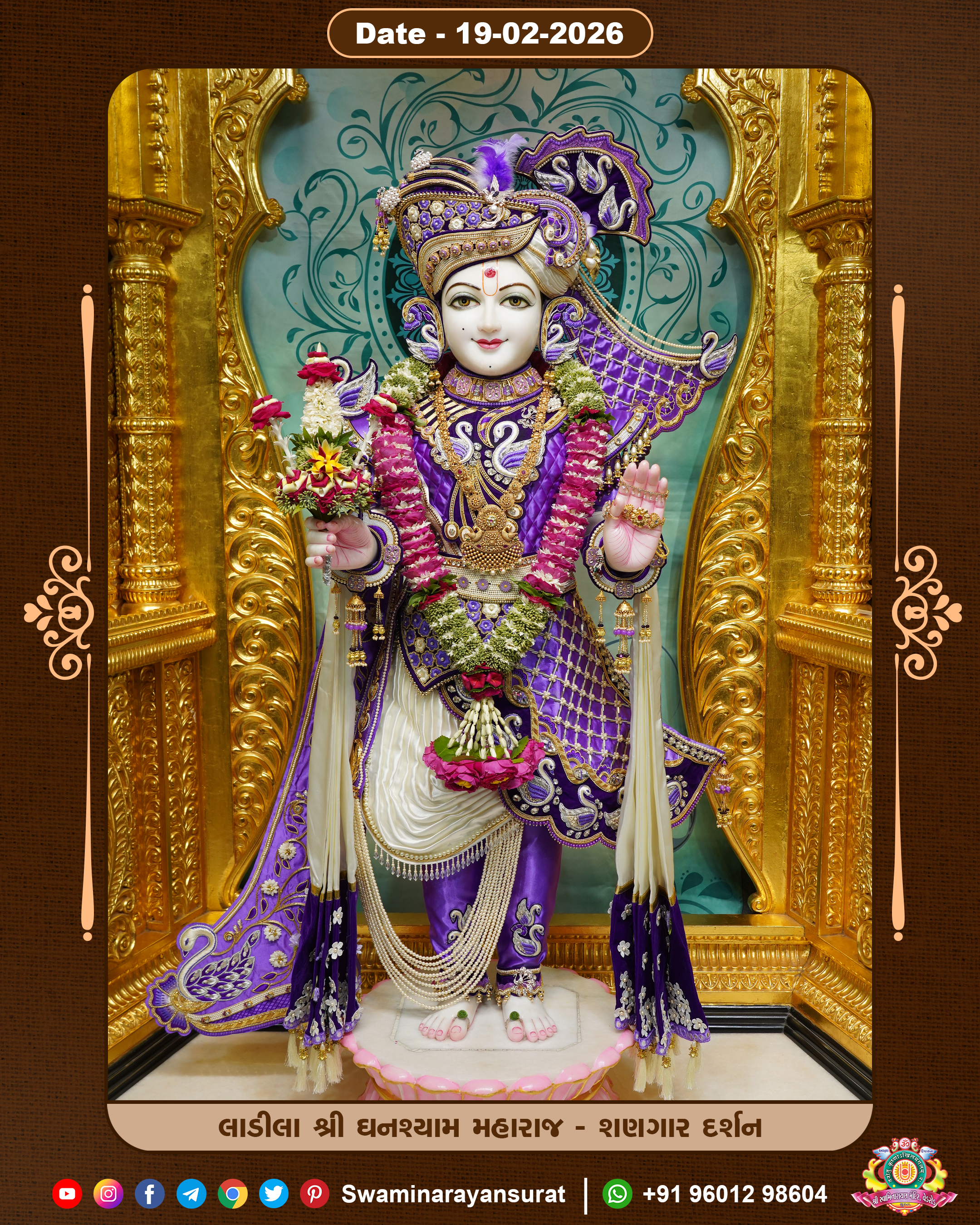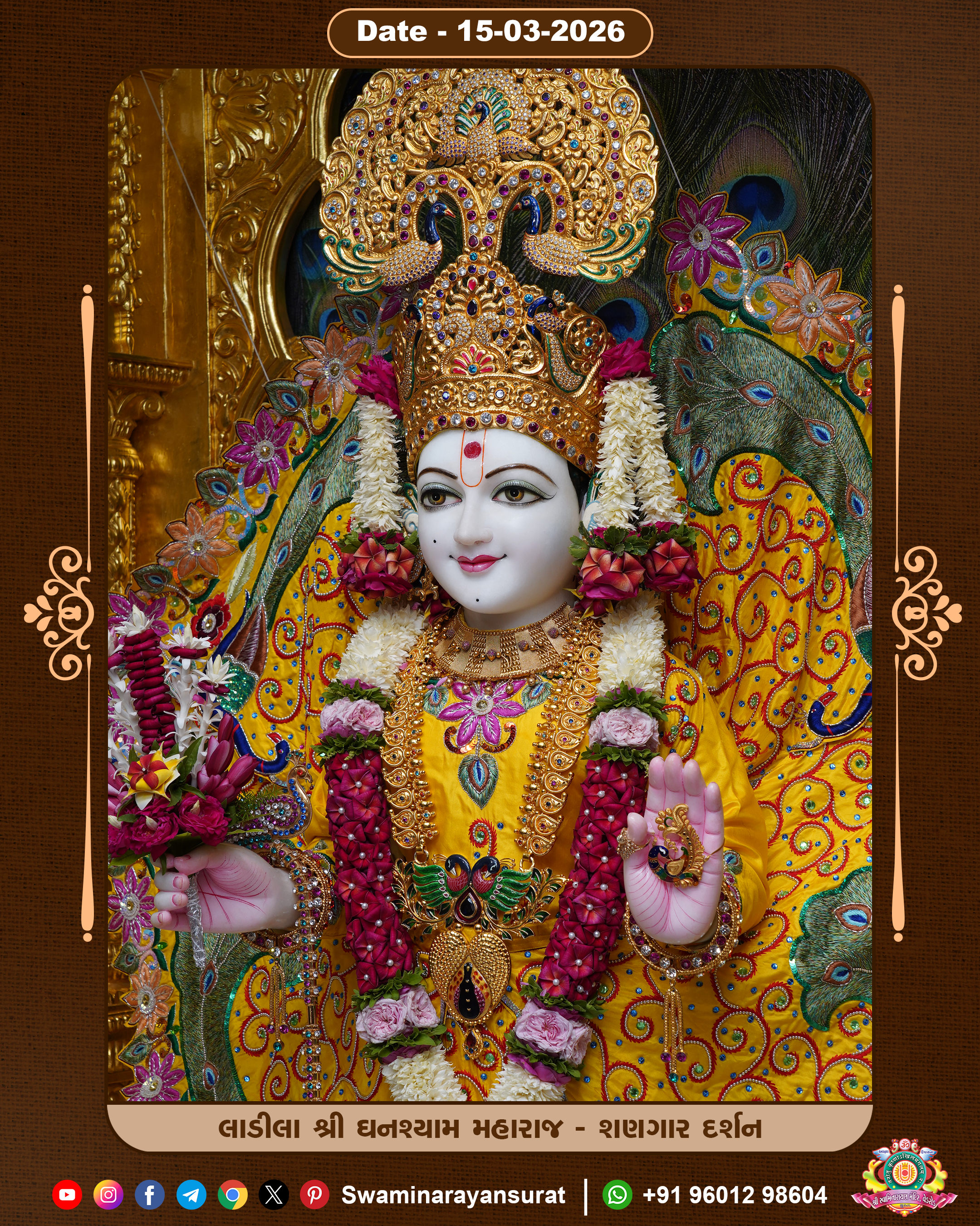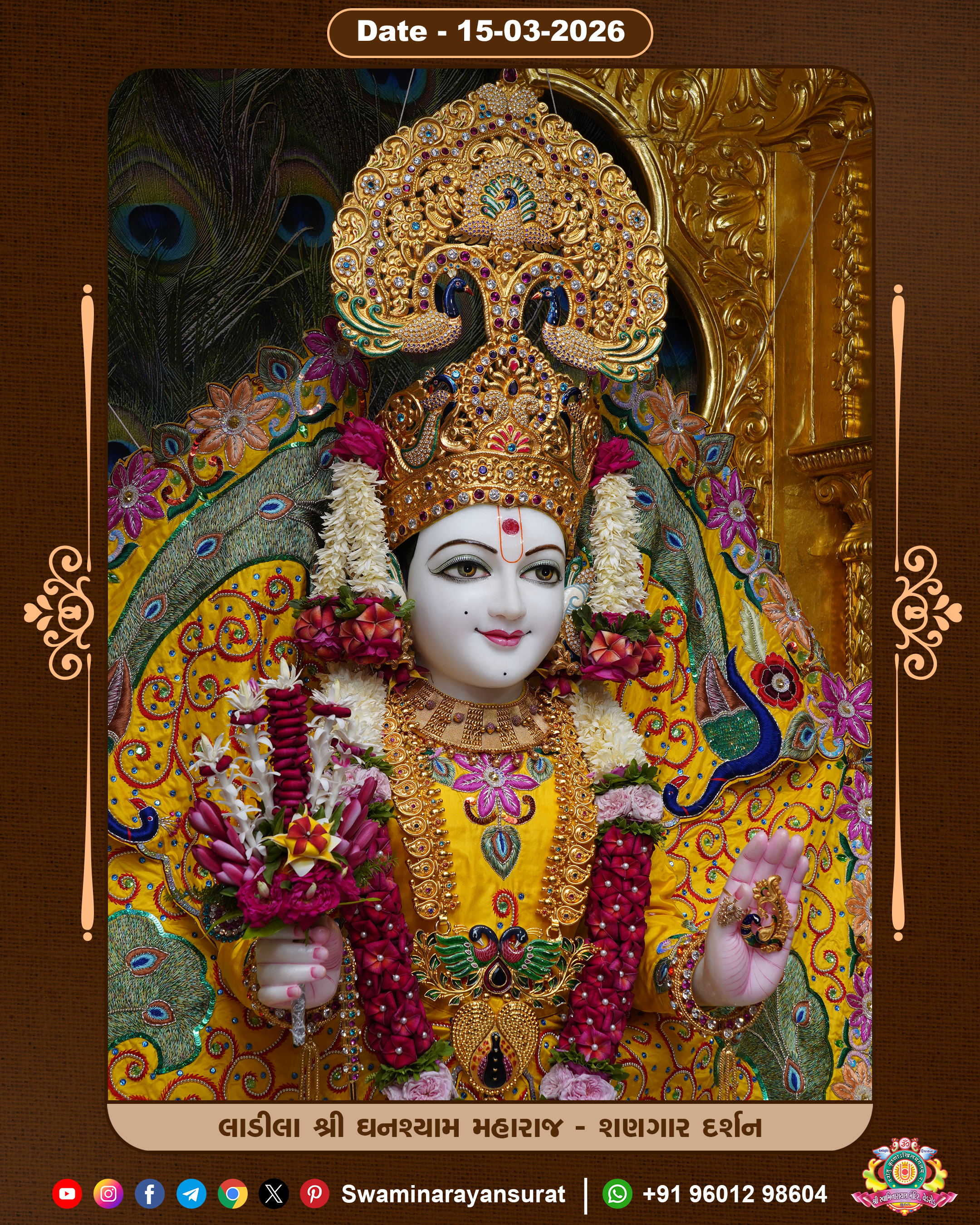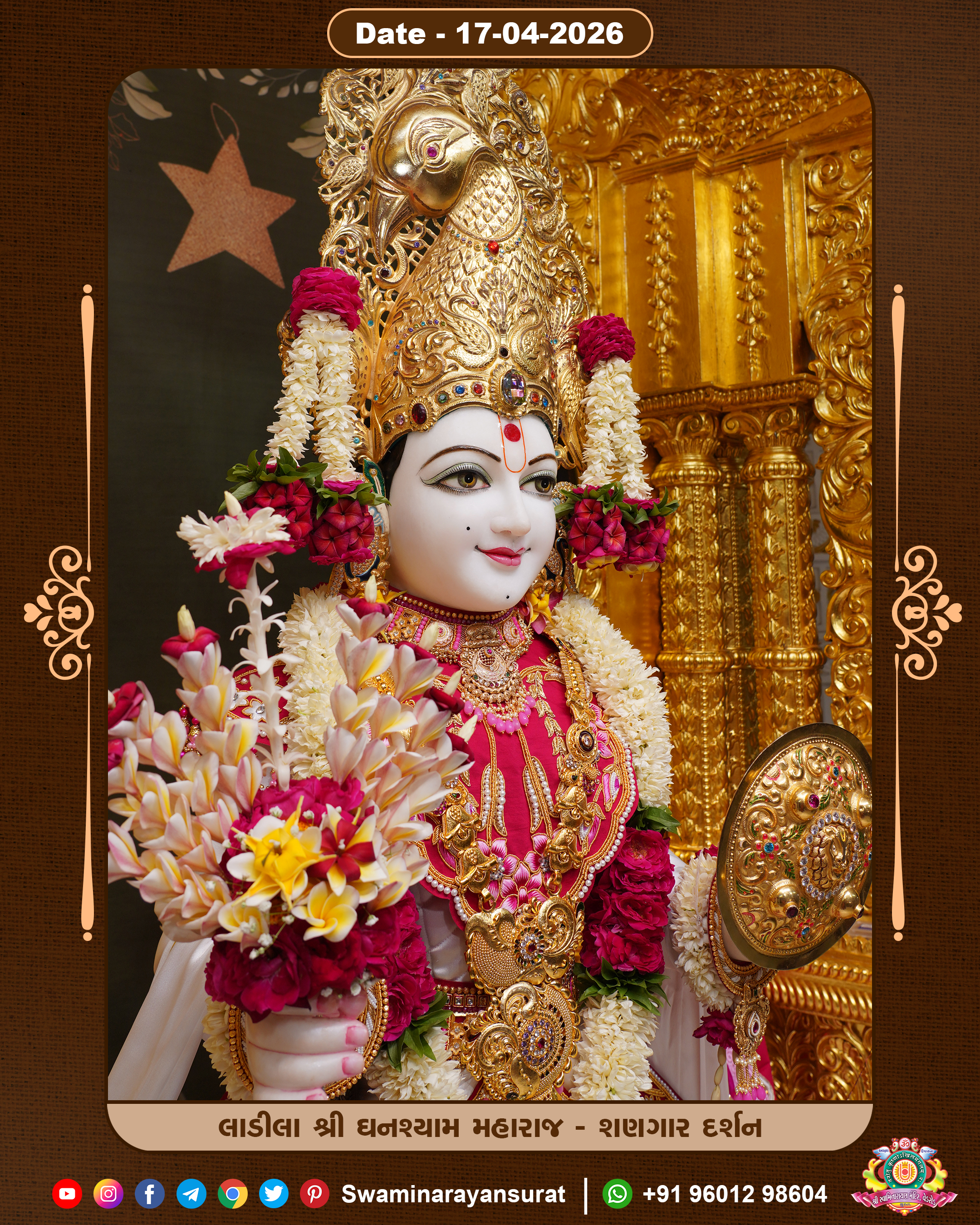 Shree Swaminarayan Temple, VedRoad is a Spiritual Organization Which falls under the region Of Vadtal Temple (The Headquarter Of Laxminarayan Dev Gadi). It is the First Organization Which is Constructed By Pink Stone With Beautiful and Marvellous Carving in Surat Of Swaminarayan Sampraday, Vadtal desh Which is increasing Pride & Prestige of Surat City, This temple contains One Main Shrine under which the idol of Ladila Shree Ghanshyam Maharaj is installed. P. Pu. Sadguru Shree Prabhucharandasji Swami is the Creator of this divine Organization. By the Several Activities & appearance Many devotees feels Easy in difficult Circumstances. He with his approx. 15 Saints & Devotees does Several Social & Spiritual Activities to fulfill the goal of Swaminarayan Sampraday, to do Worship with religious practices.
