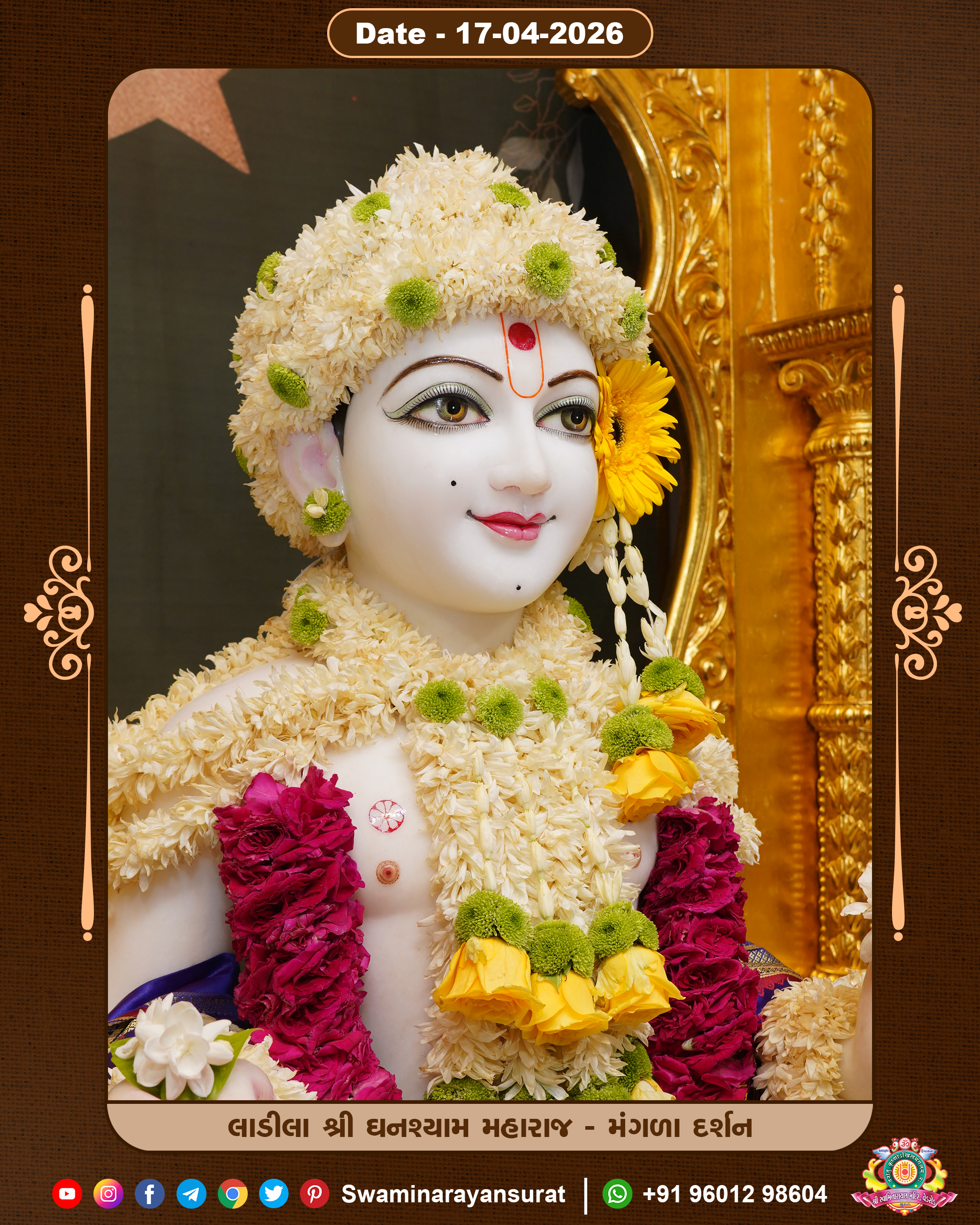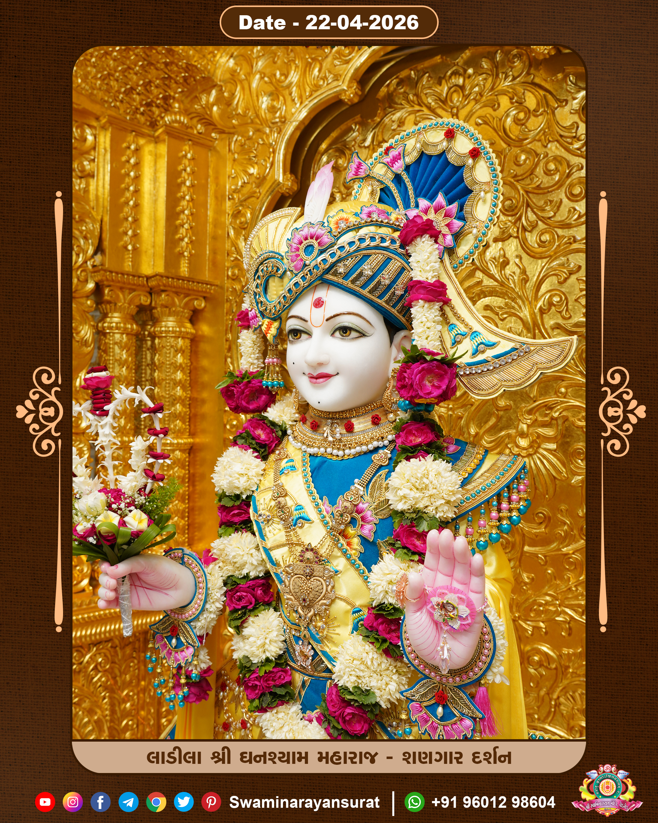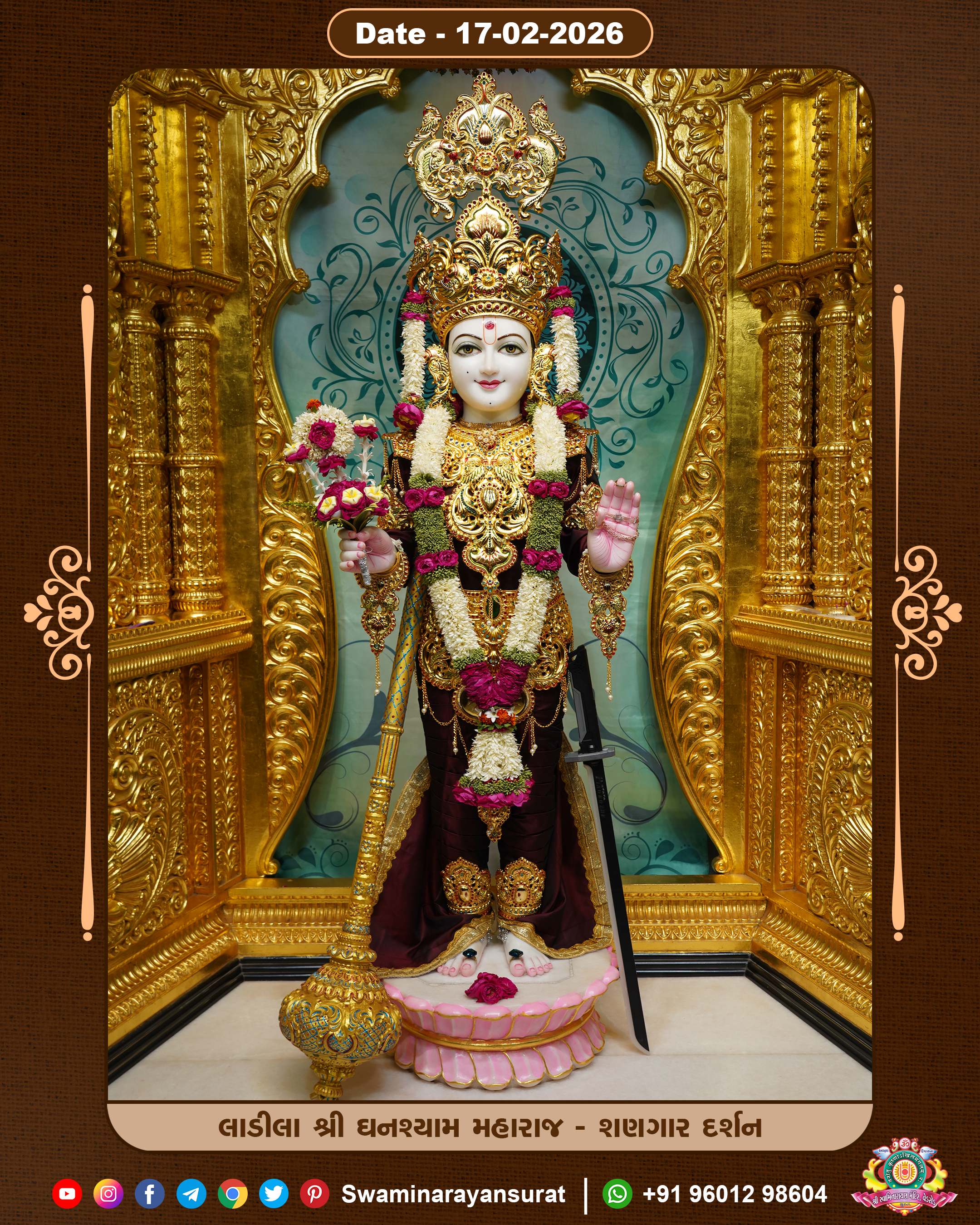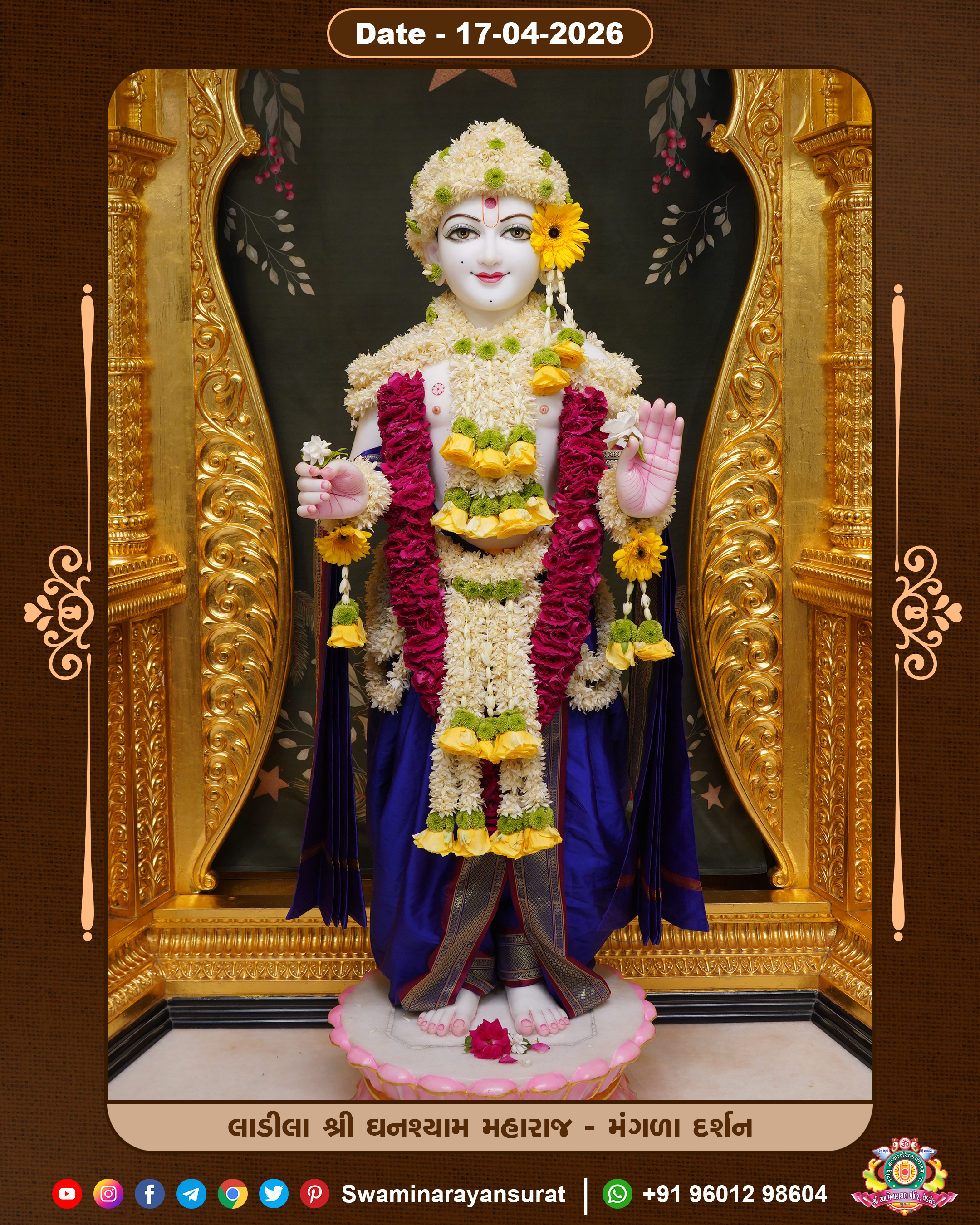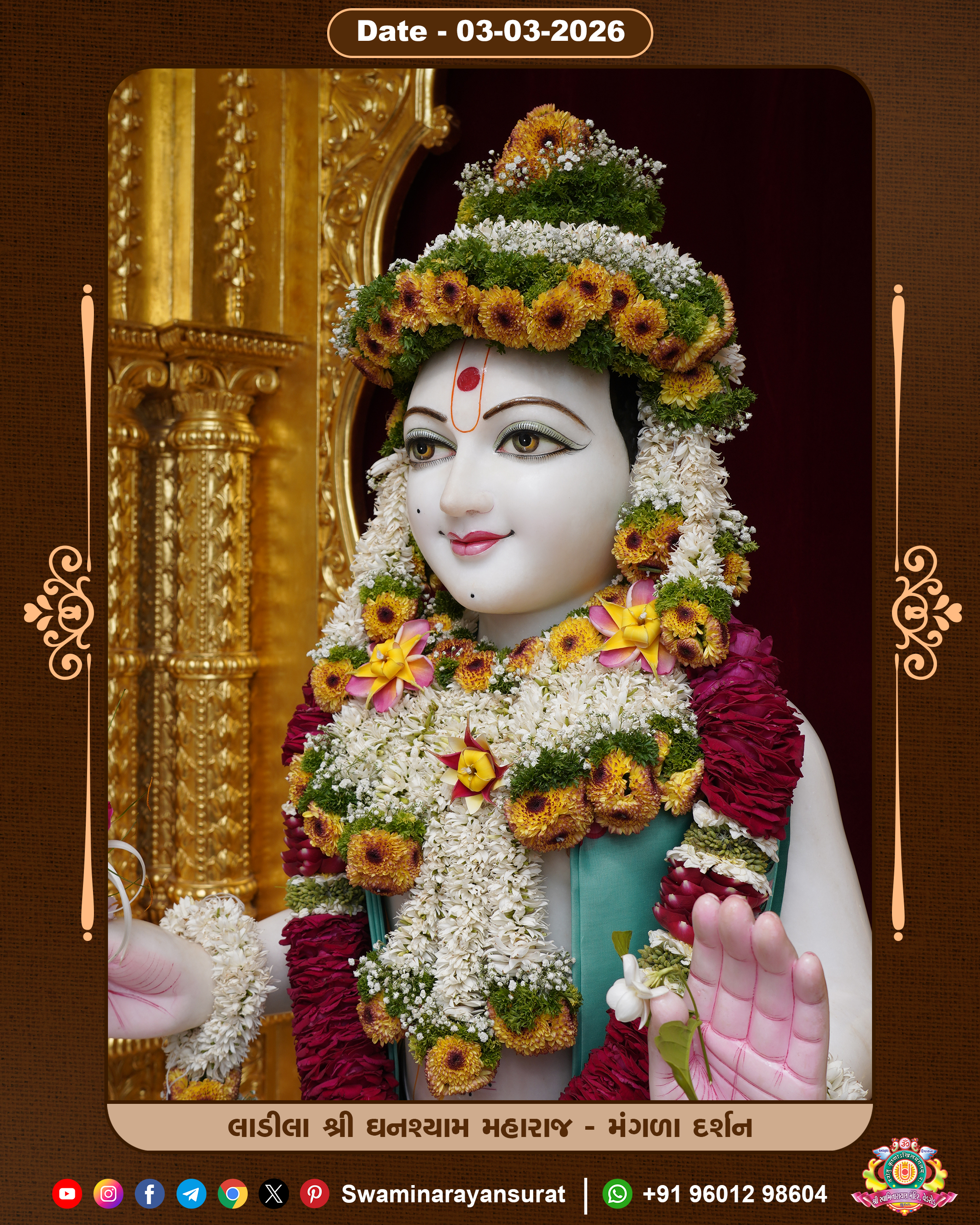 Shree Swaminarayan Temple, VedRoad is a Spiritual Organization Which falls under the region Of Vadtal Temple (The Headquarter Of Laxminarayan Dev Gadi). It is the First Organization Which is Constructed By Pink Stone With Beautiful and Marvellous Carving in Surat Of Swaminarayan Sampraday, Vadtal desh Which is increasing Pride & Prestige of Surat City, This temple contains One Main Shrine under which the idol of Ladila Shree Ghanshyam Maharaj is installed. P. Pu. Sadguru Shree Prabhucharandasji Swami is the Creator of this divine Organization. By the Several Activities & appearance Many devotees feels Easy in difficult Circumstances. He with his approx. 15 Saints & Devotees does Several Social & Spiritual Activities to fulfill the goal of Swaminarayan Sampraday, to do Worship with religious practices.