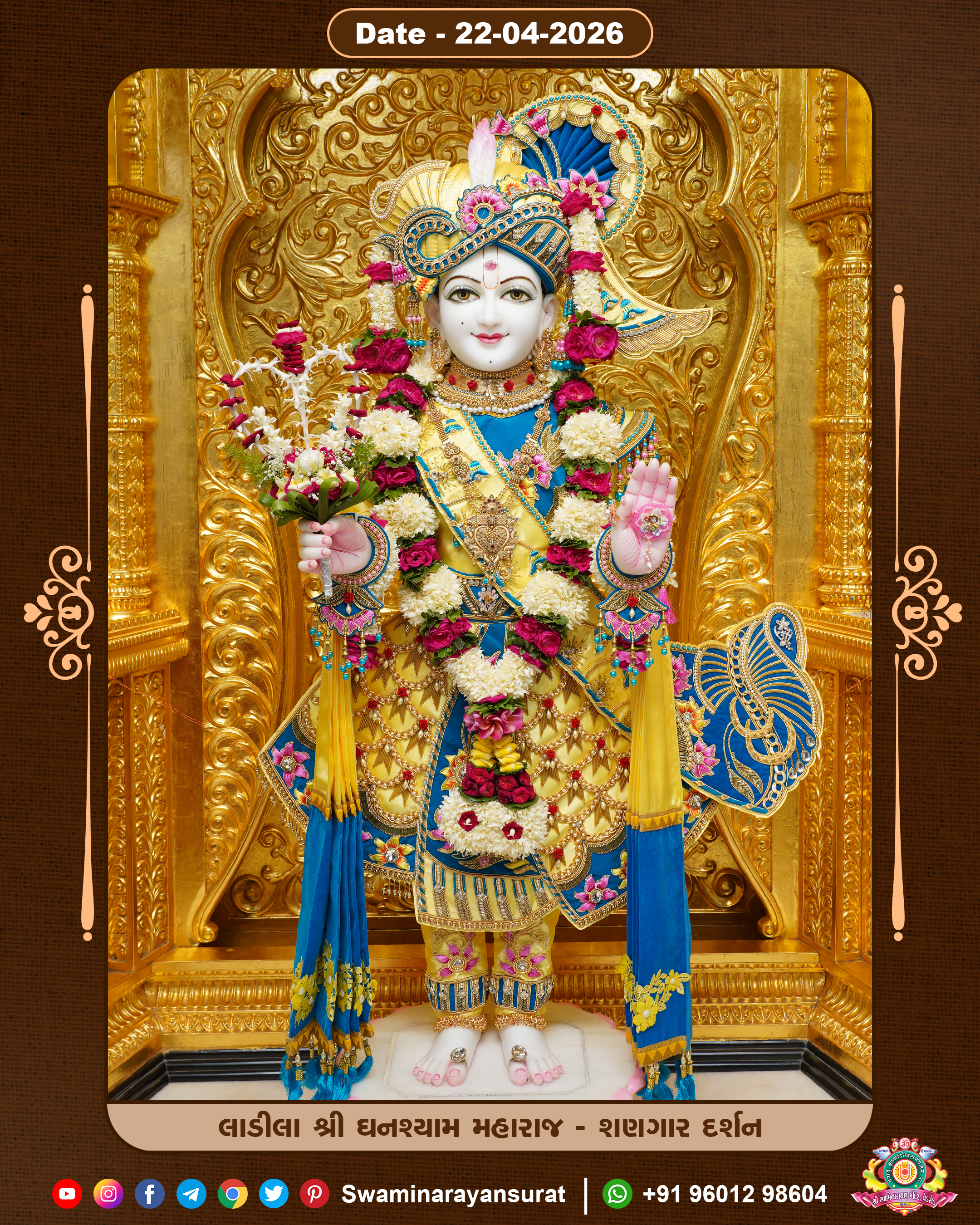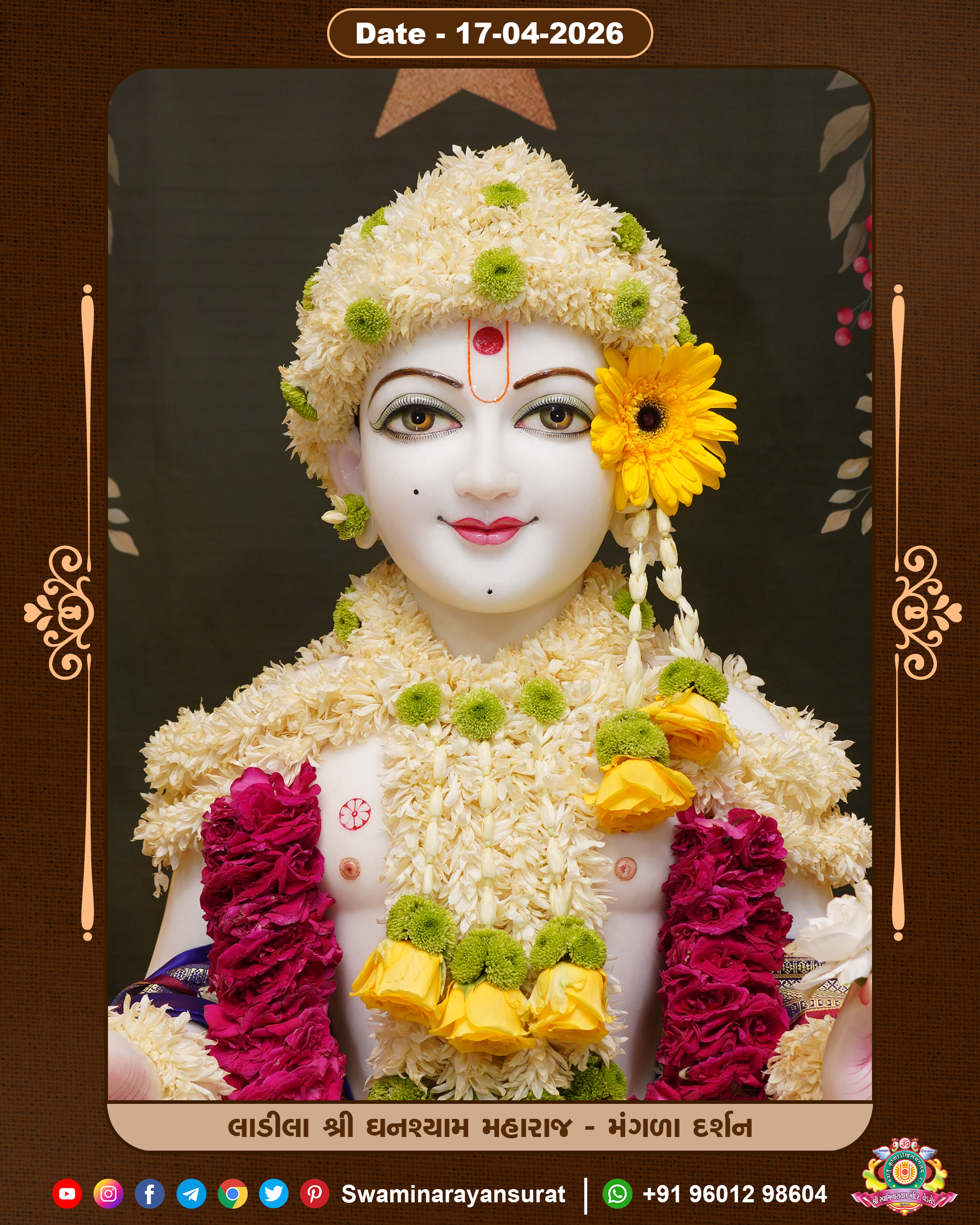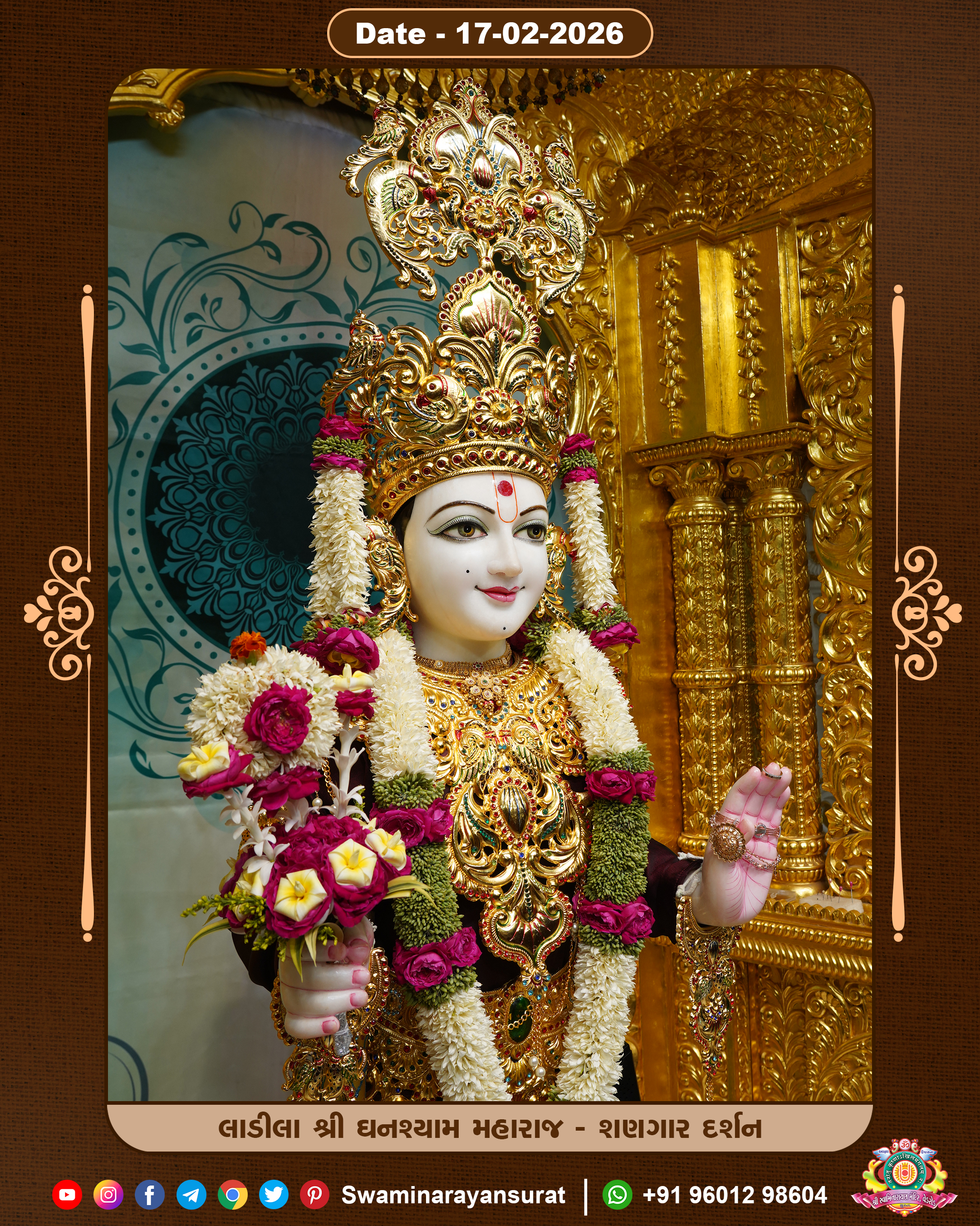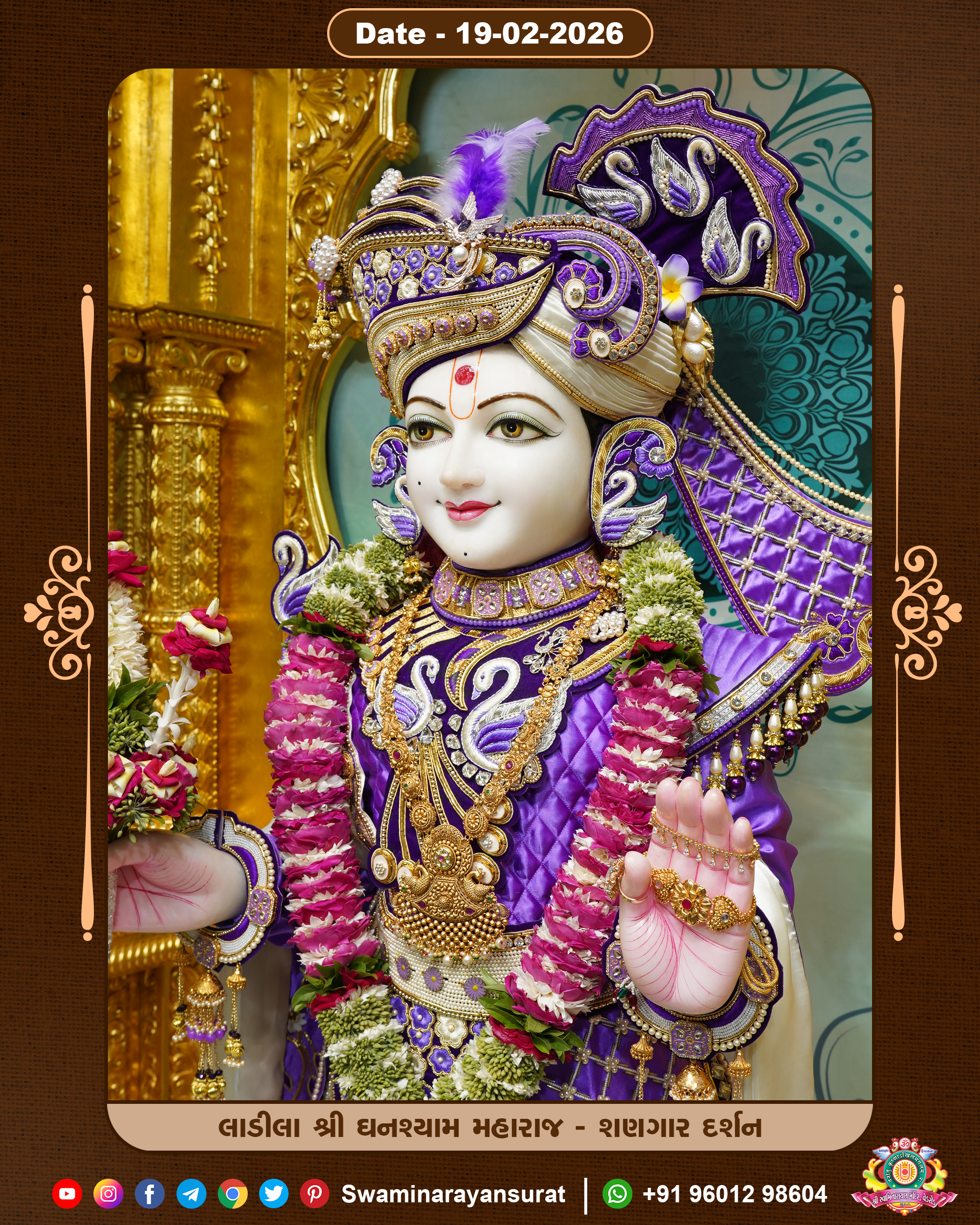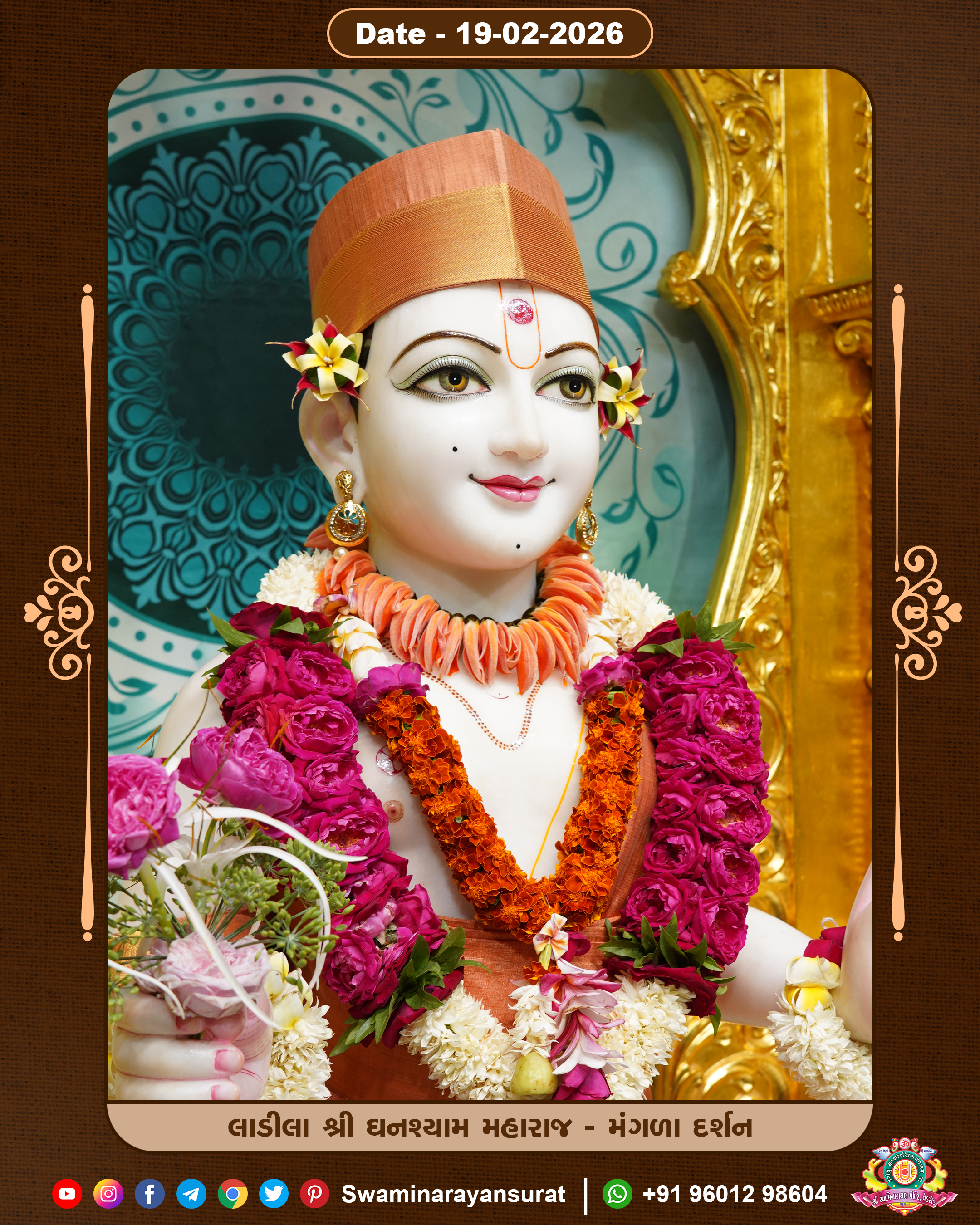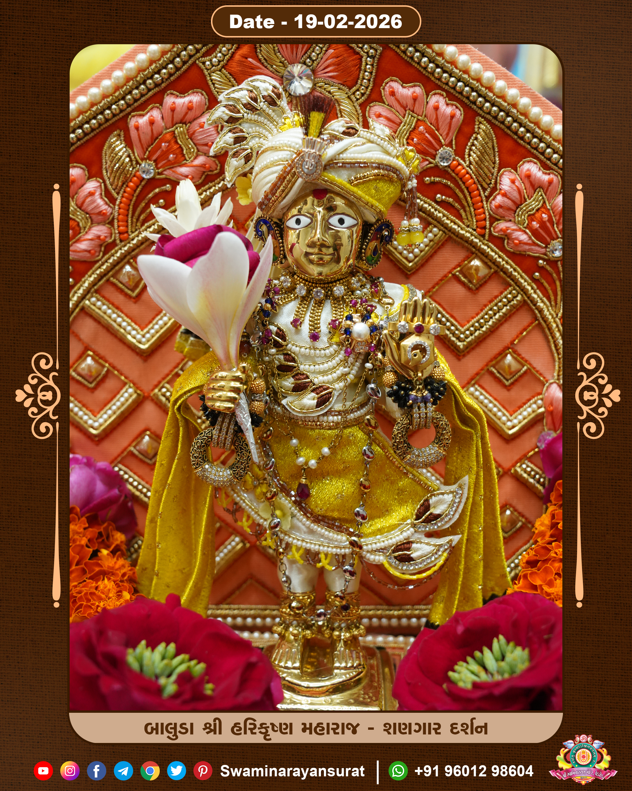 Shree Swaminarayan Temple, VedRoad is a Spiritual Organization Which falls under the region Of Vadtal Temple (The Headquarter Of Laxminarayan Dev Gadi). It is the First Organization Which is Constructed By Pink Stone With Beautiful and Marvellous Carving in Surat Of Swaminarayan Sampraday, Vadtal desh Which is increasing Pride & Prestige of Surat City, This temple contains One Main Shrine under which the idol of Ladila Shree Ghanshyam Maharaj is installed. P. Pu. Sadguru Shree Prabhucharandasji Swami is the Creator of this divine Organization. By the Several Activities & appearance Many devotees feels Easy in difficult Circumstances. He with his approx. 15 Saints & Devotees does Several Social & Spiritual Activities to fulfill the goal of Swaminarayan Sampraday, to do Worship with religious practices.
