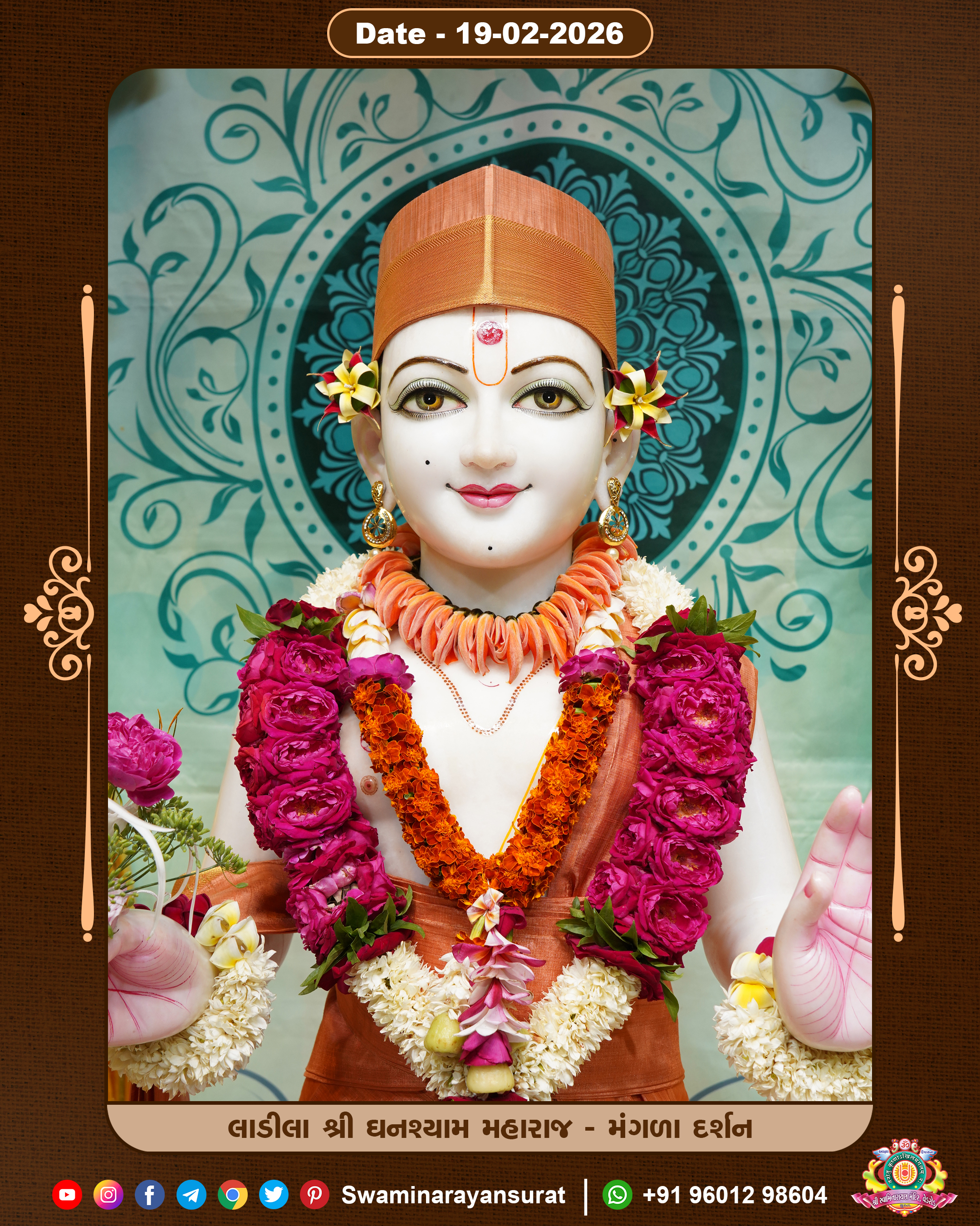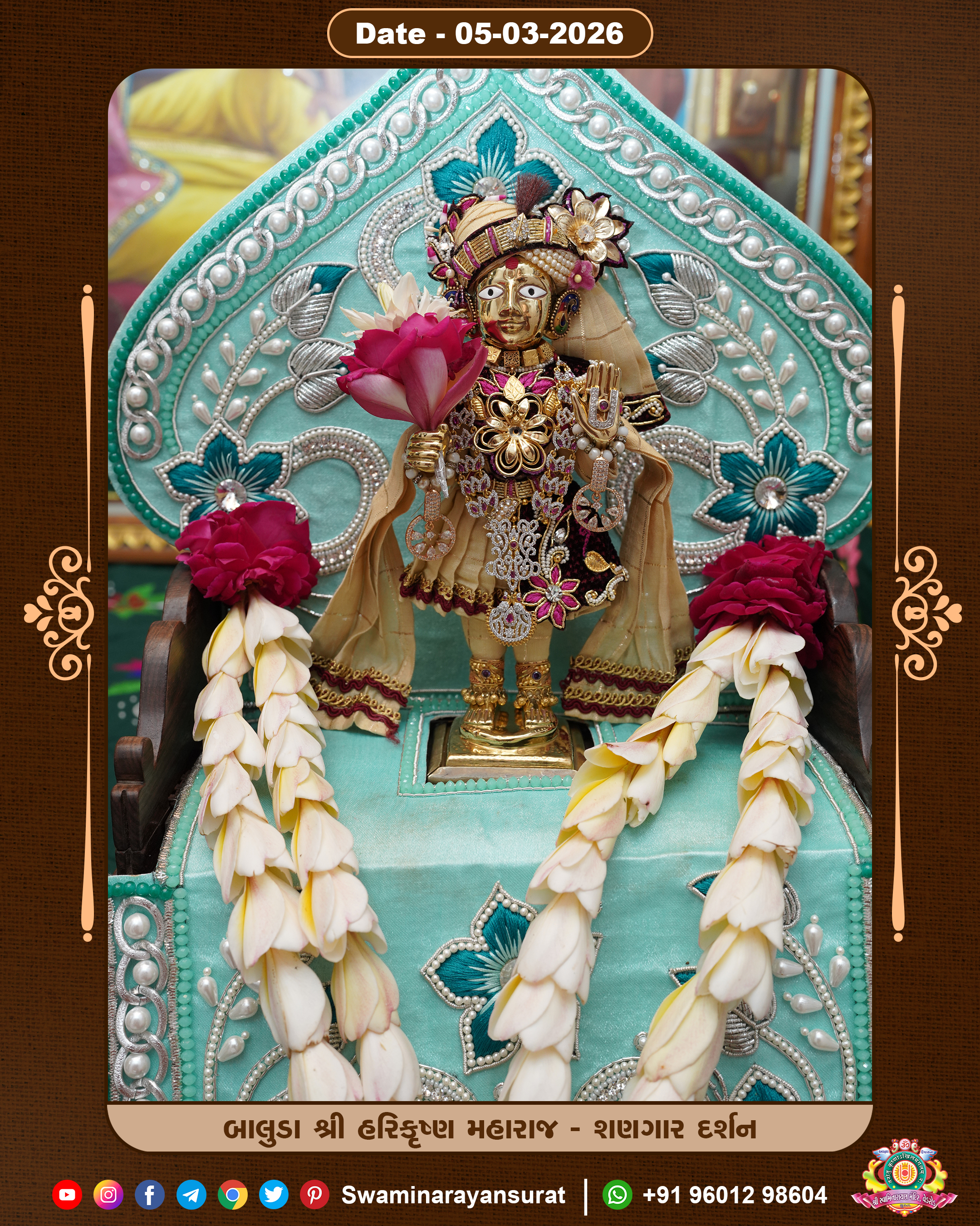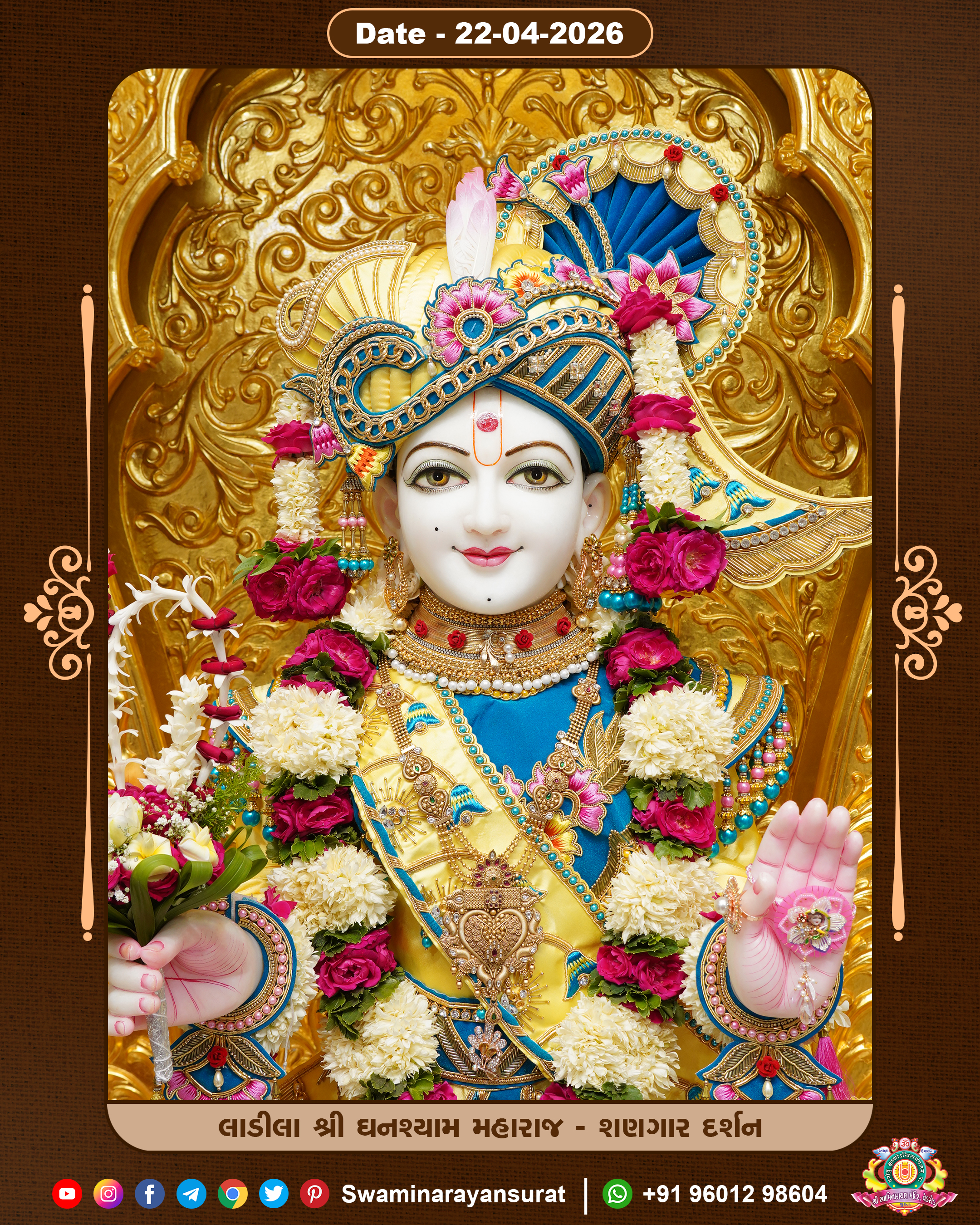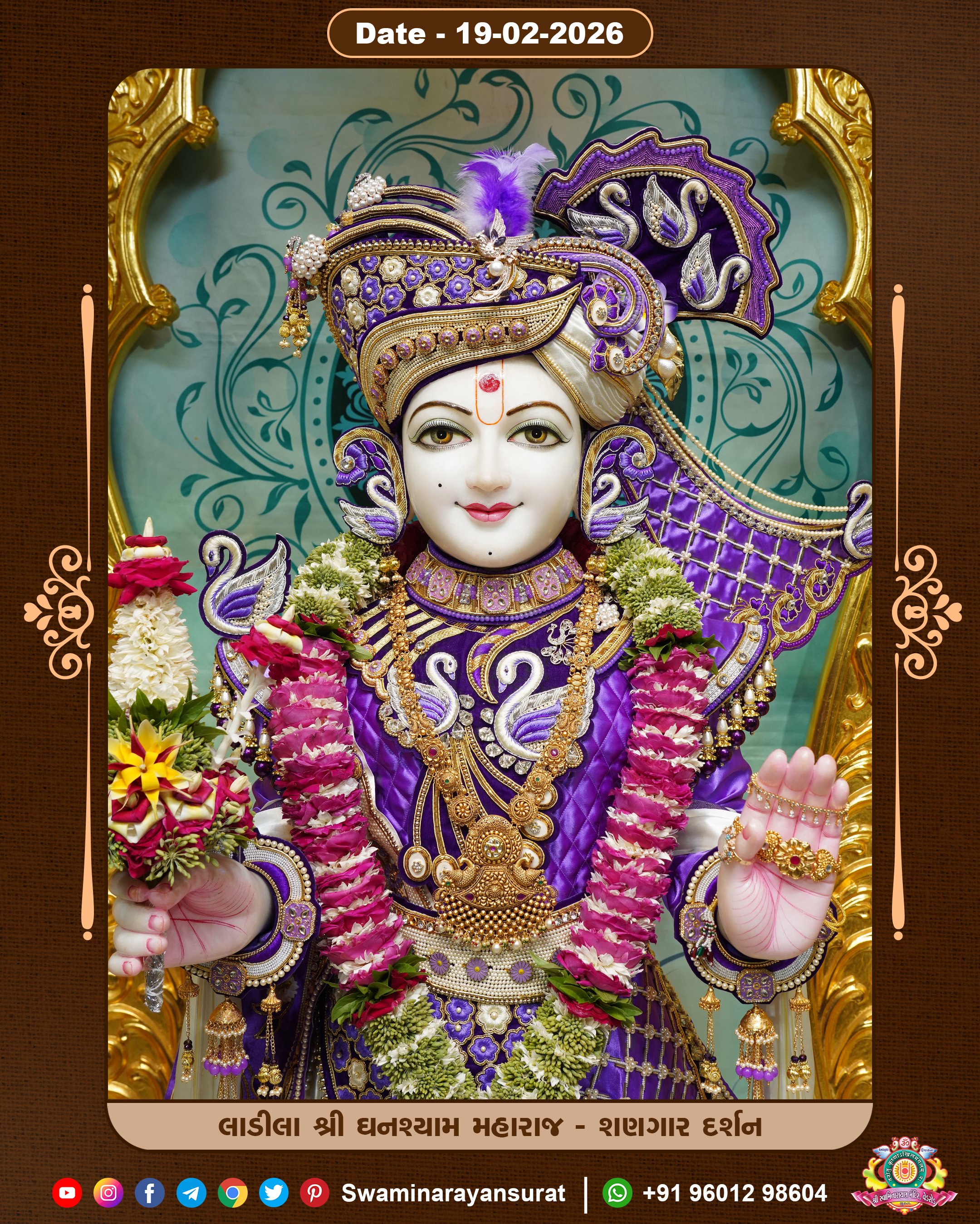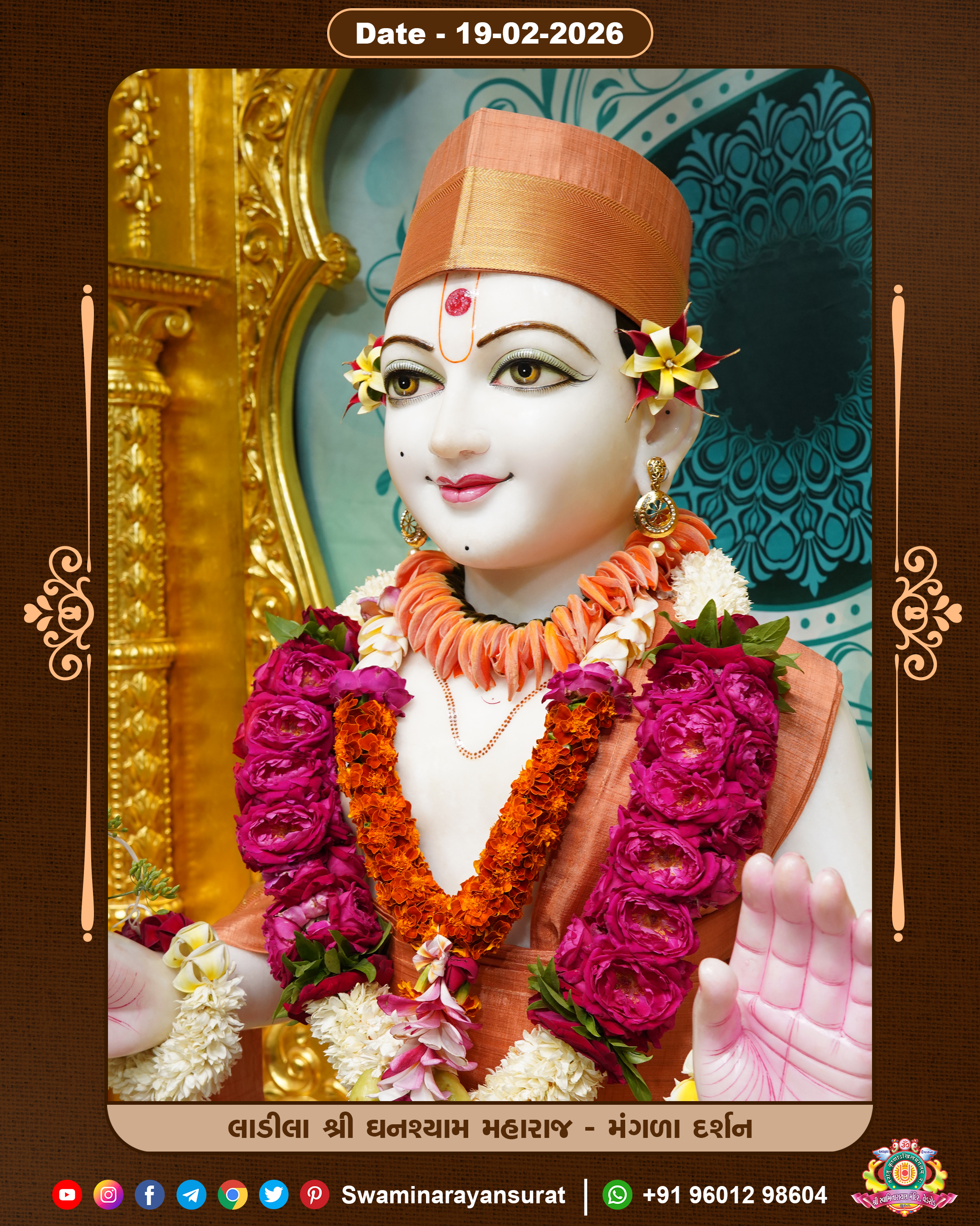 Shree Swaminarayan Temple, VedRoad is a Spiritual Organization Which falls under the region Of Vadtal Temple (The Headquarter Of Laxminarayan Dev Gadi). It is the First Organization Which is Constructed By Pink Stone With Beautiful and Marvellous Carving in Surat Of Swaminarayan Sampraday, Vadtal desh Which is increasing Pride & Prestige of Surat City, This temple contains One Main Shrine under which the idol of Ladila Shree Ghanshyam Maharaj is installed. P. Pu. Sadguru Shree Prabhucharandasji Swami is the Creator of this divine Organization. By the Several Activities & appearance Many devotees feels Easy in difficult Circumstances. He with his approx. 15 Saints & Devotees does Several Social & Spiritual Activities to fulfill the goal of Swaminarayan Sampraday, to do Worship with religious practices.