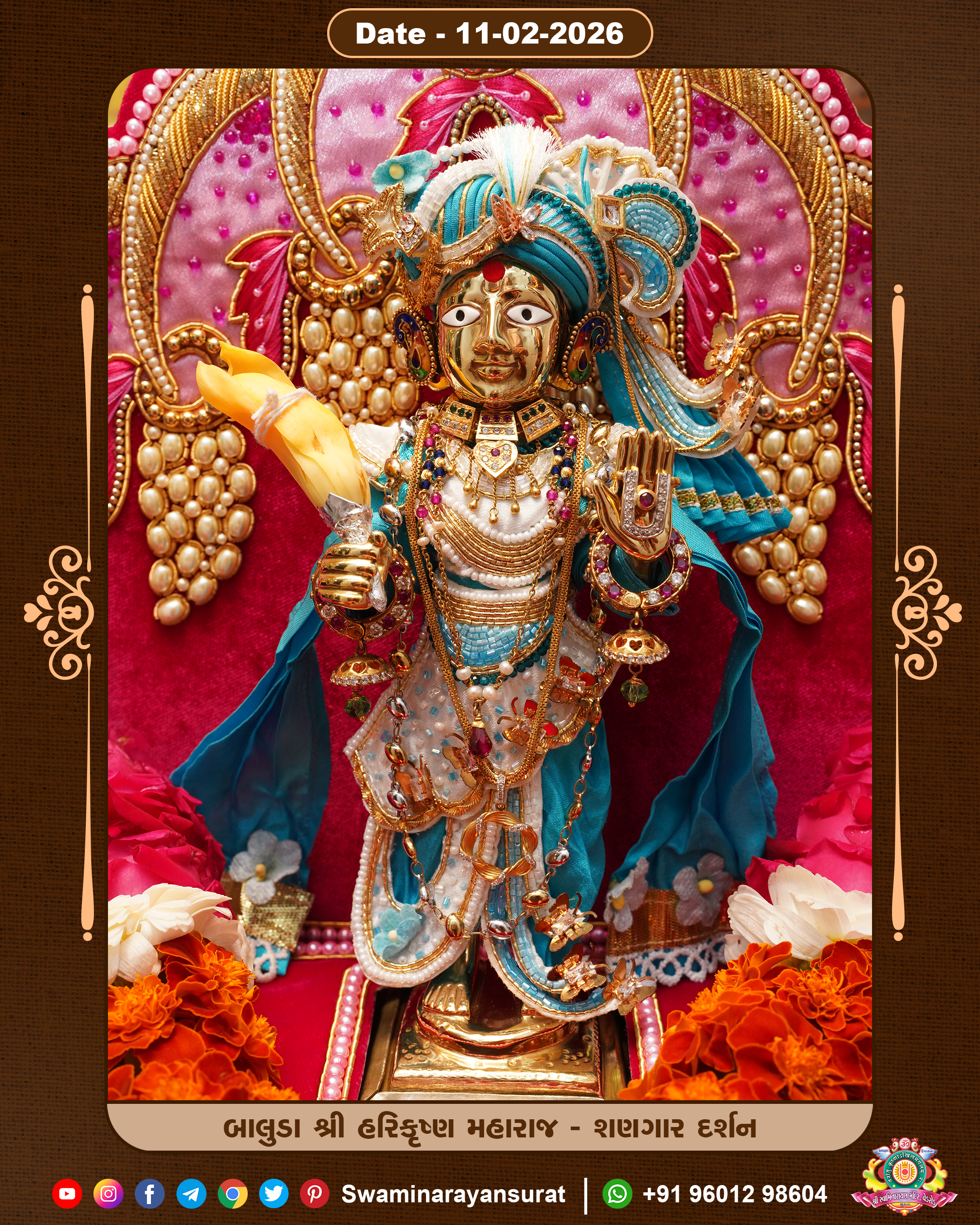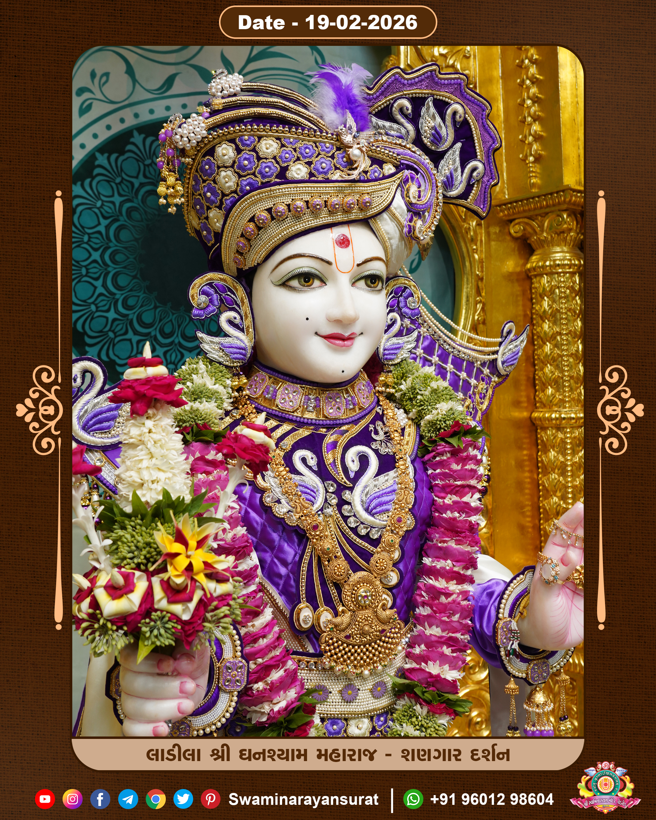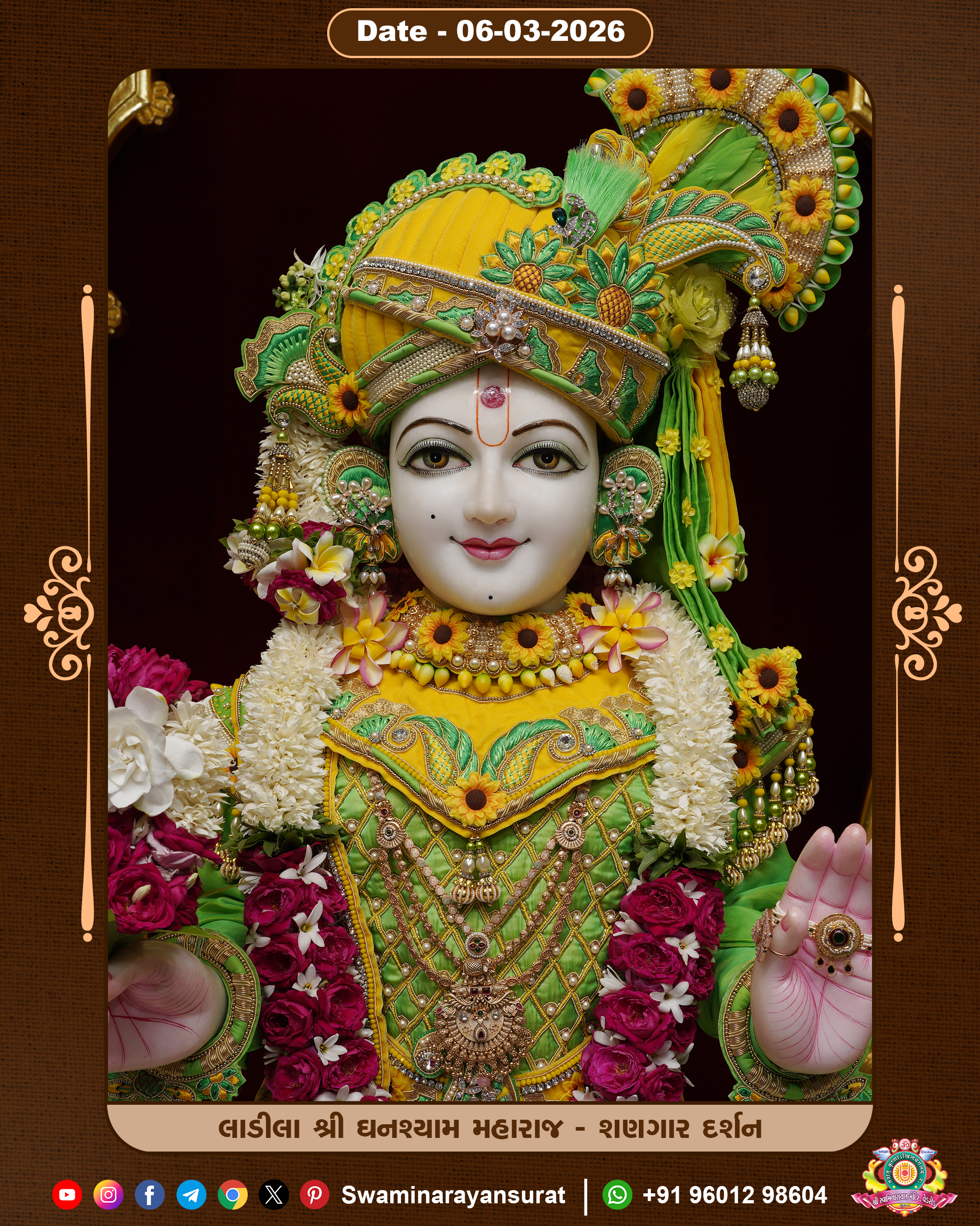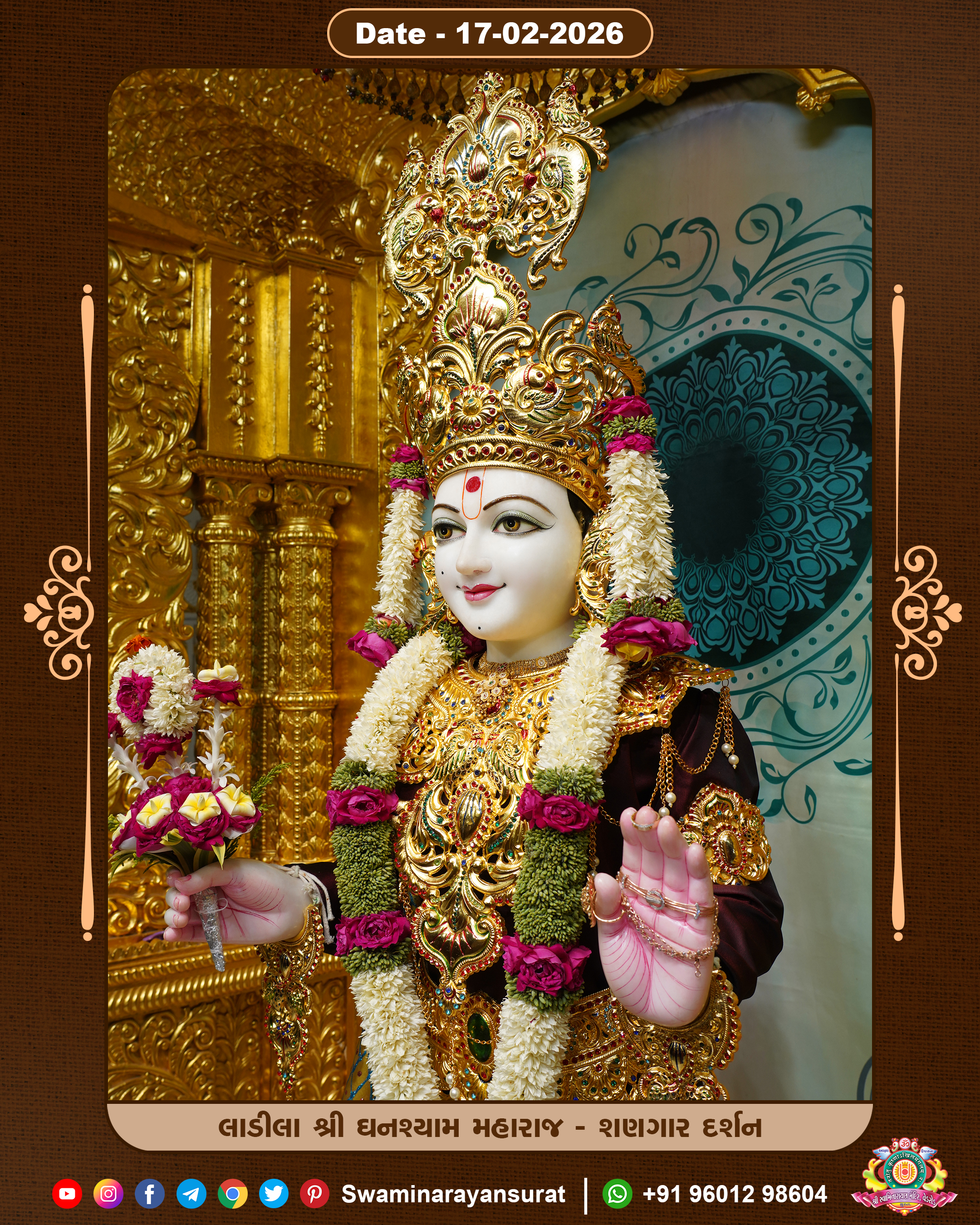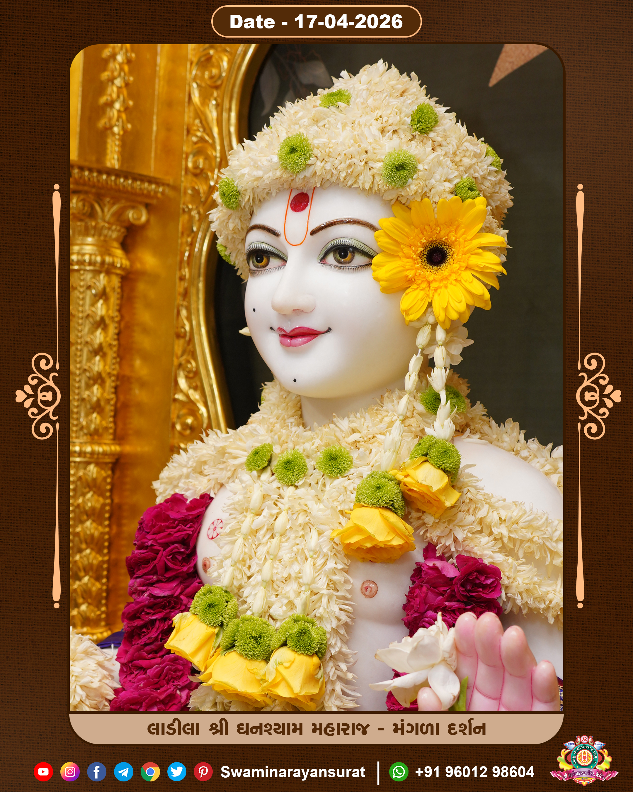 Shree Swaminarayan Temple, VedRoad is a Spiritual Organization Which falls under the region Of Vadtal Temple (The Headquarter Of Laxminarayan Dev Gadi). It is the First Organization Which is Constructed By Pink Stone With Beautiful and Marvellous Carving in Surat Of Swaminarayan Sampraday, Vadtal desh Which is increasing Pride & Prestige of Surat City, This temple contains One Main Shrine under which the idol of Ladila Shree Ghanshyam Maharaj is installed. P. Pu. Sadguru Shree Prabhucharandasji Swami is the Creator of this divine Organization. By the Several Activities & appearance Many devotees feels Easy in difficult Circumstances. He with his approx. 15 Saints & Devotees does Several Social & Spiritual Activities to fulfill the goal of Swaminarayan Sampraday, to do Worship with religious practices.